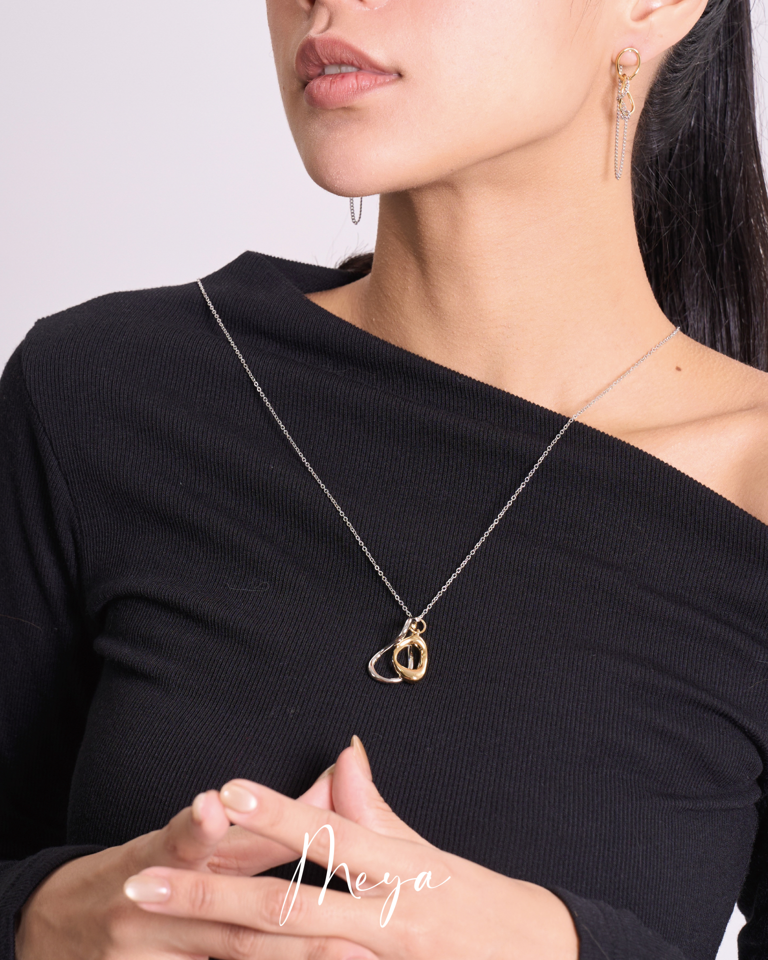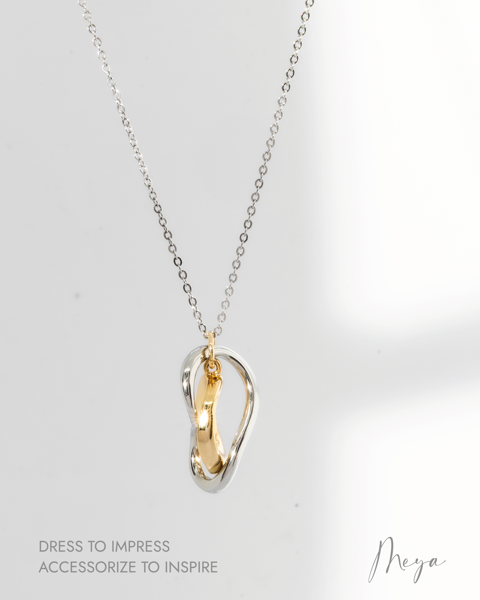兩雙色不規則圈吊墜長項鏈 / 銀色鏈