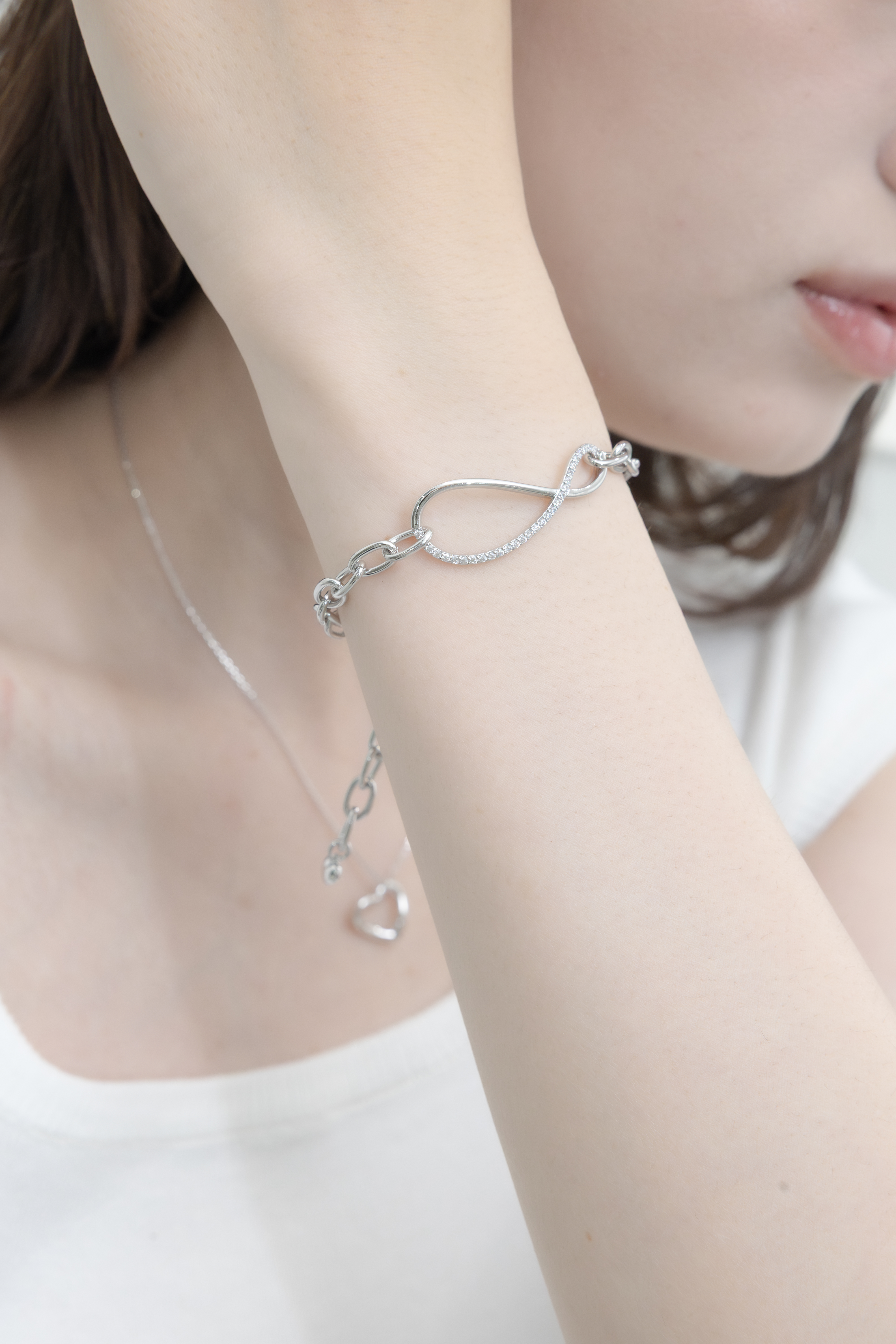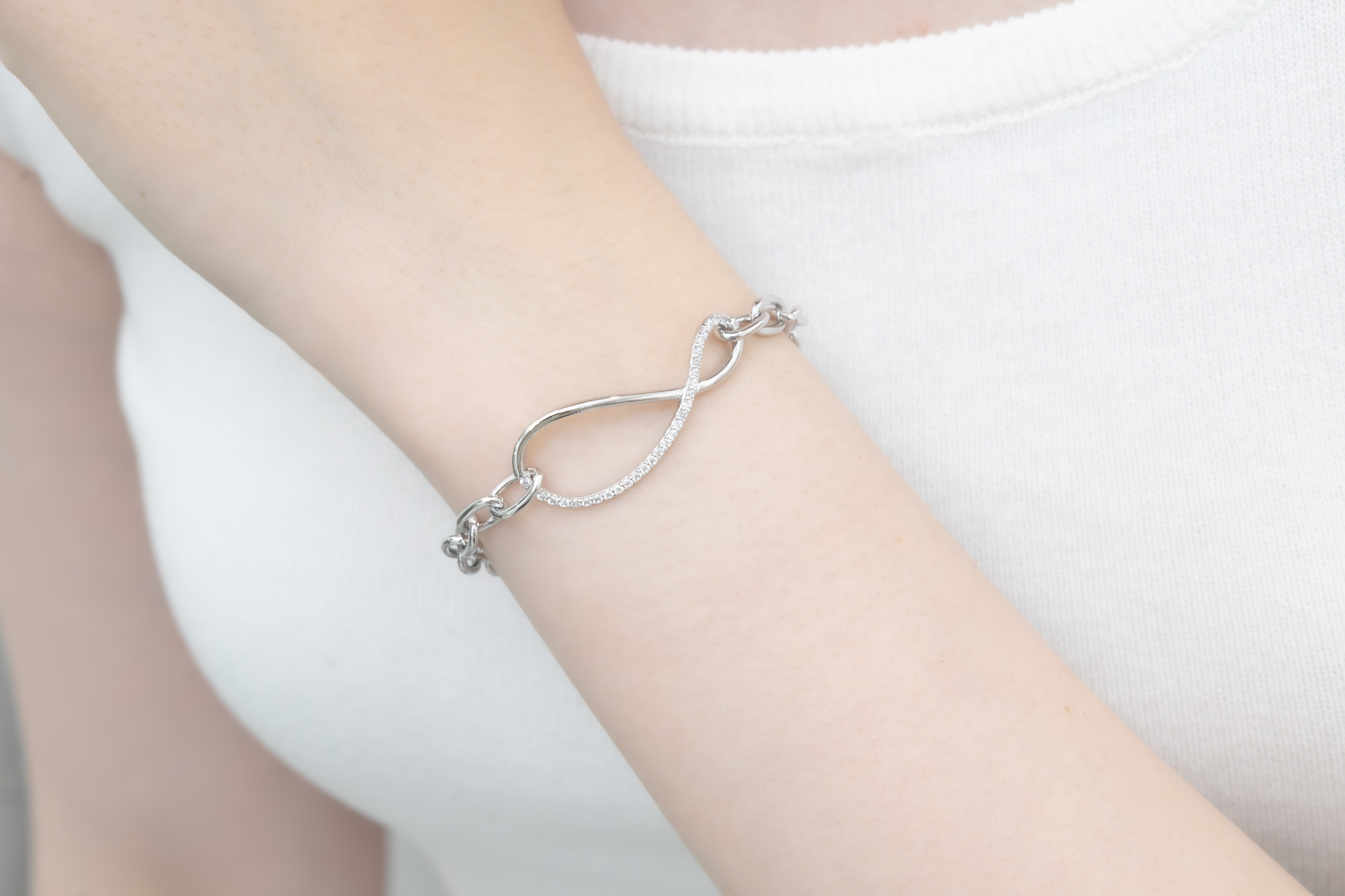 八字結鑲鋯石手鏈/銀色