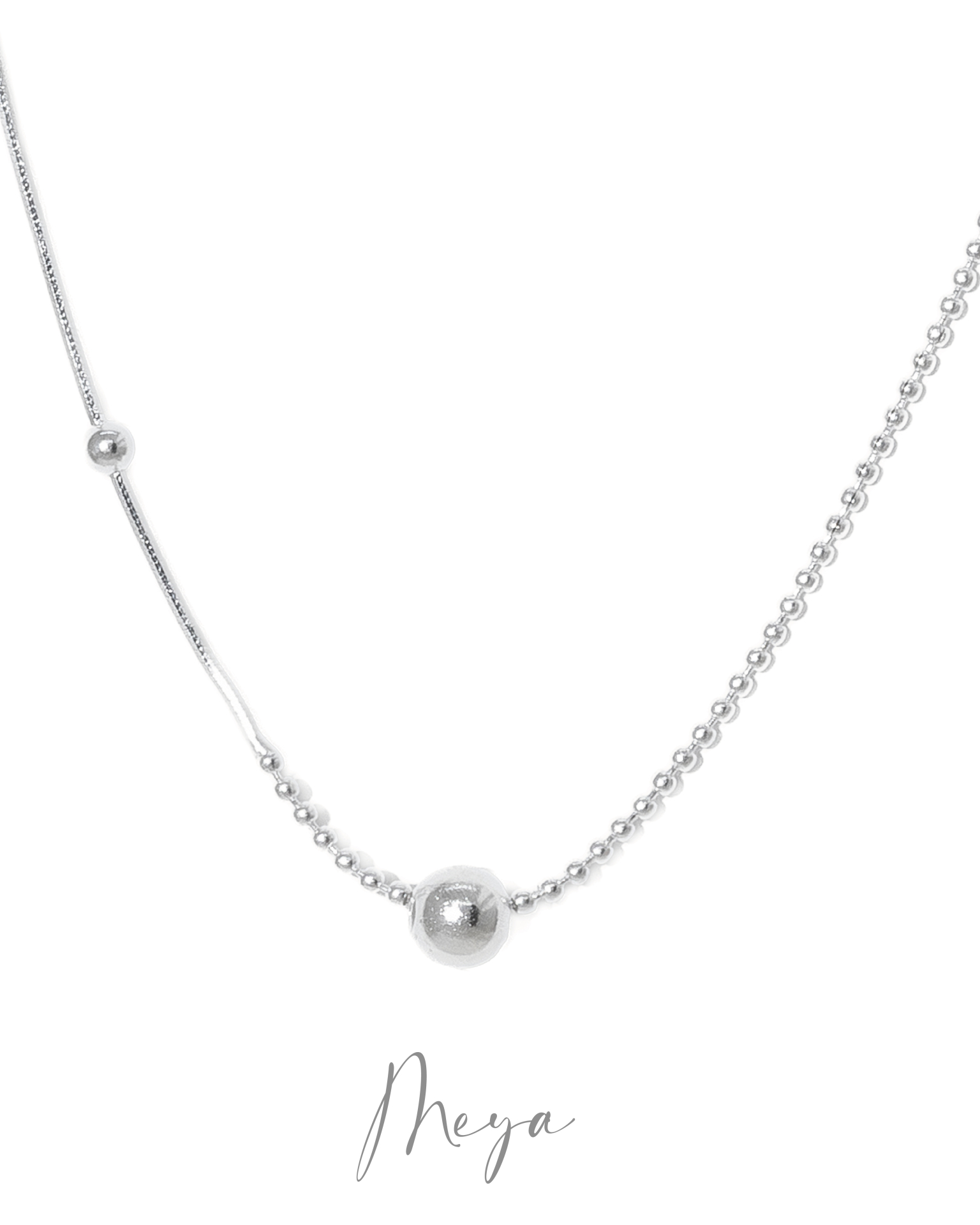 小圓珠鍊拼長間隔圓珠鍊 項鍊/銀色