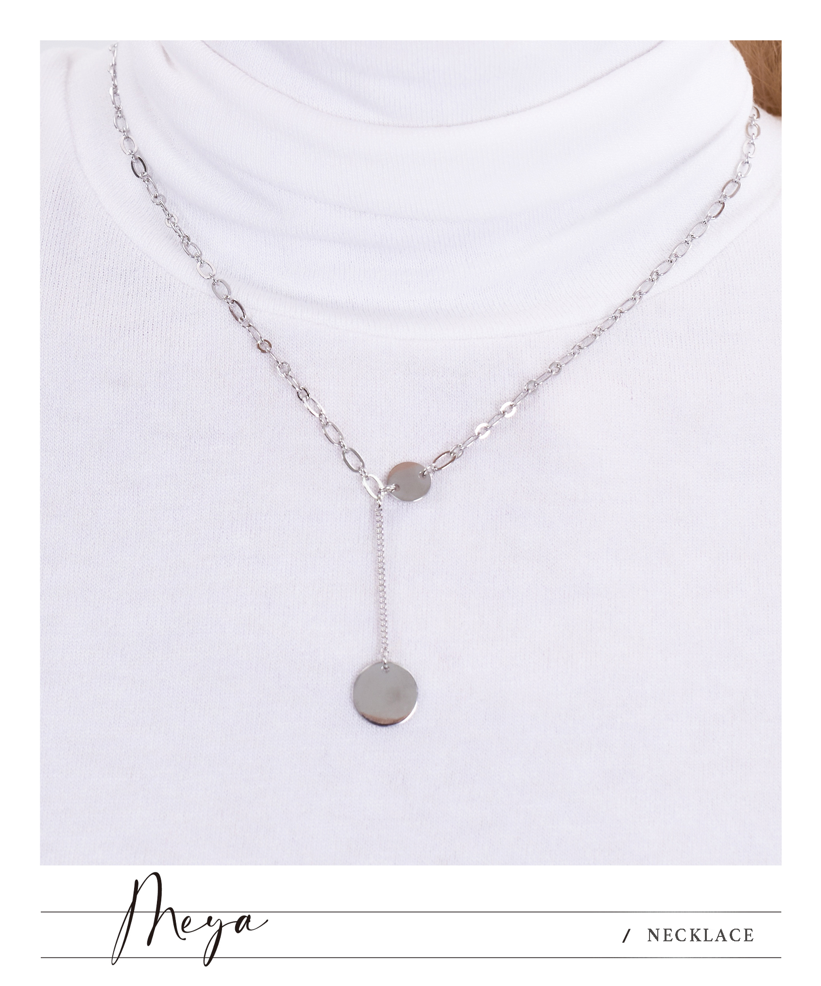 小扁圓片 吊墜大扁圓片橢圓鏈 項鏈/銀色