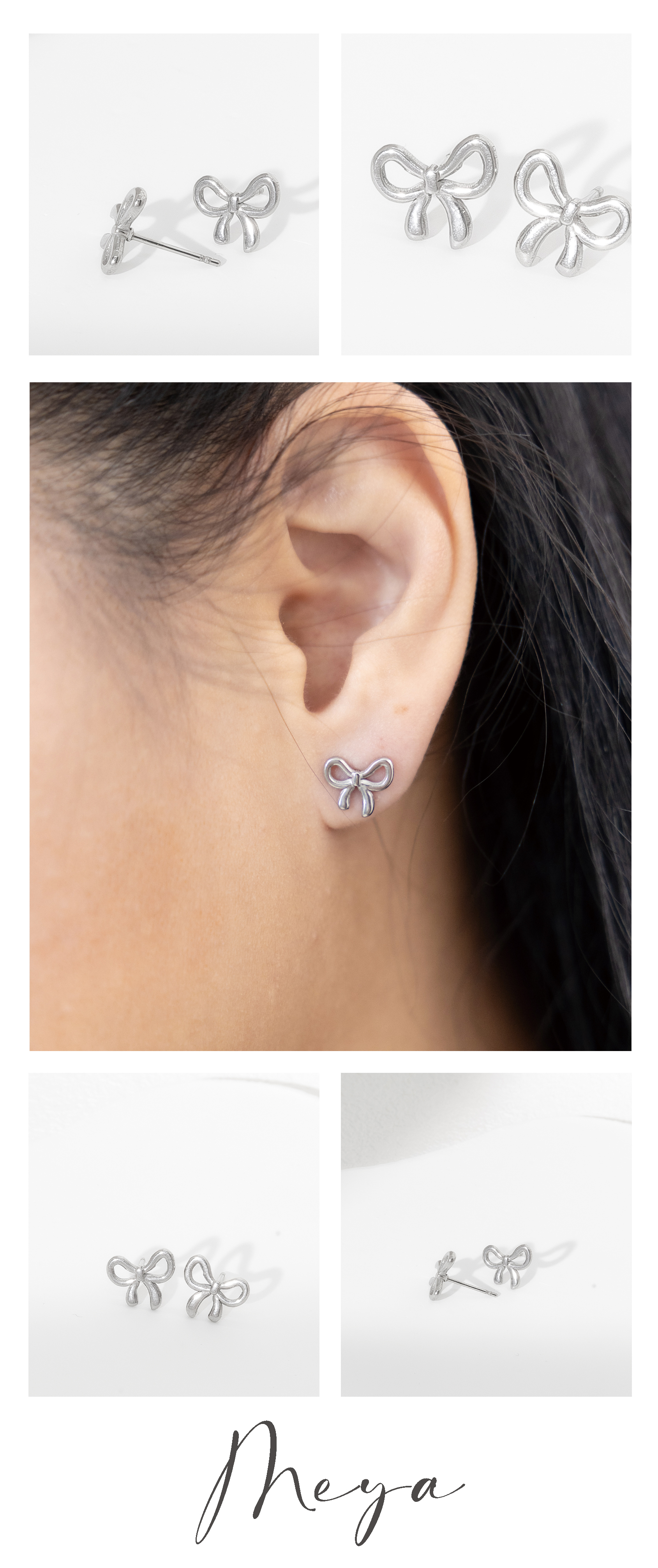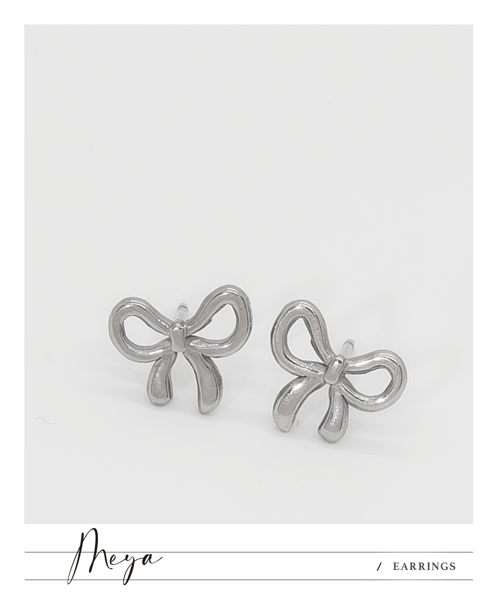 小蝴蝶結 耳環/銀色