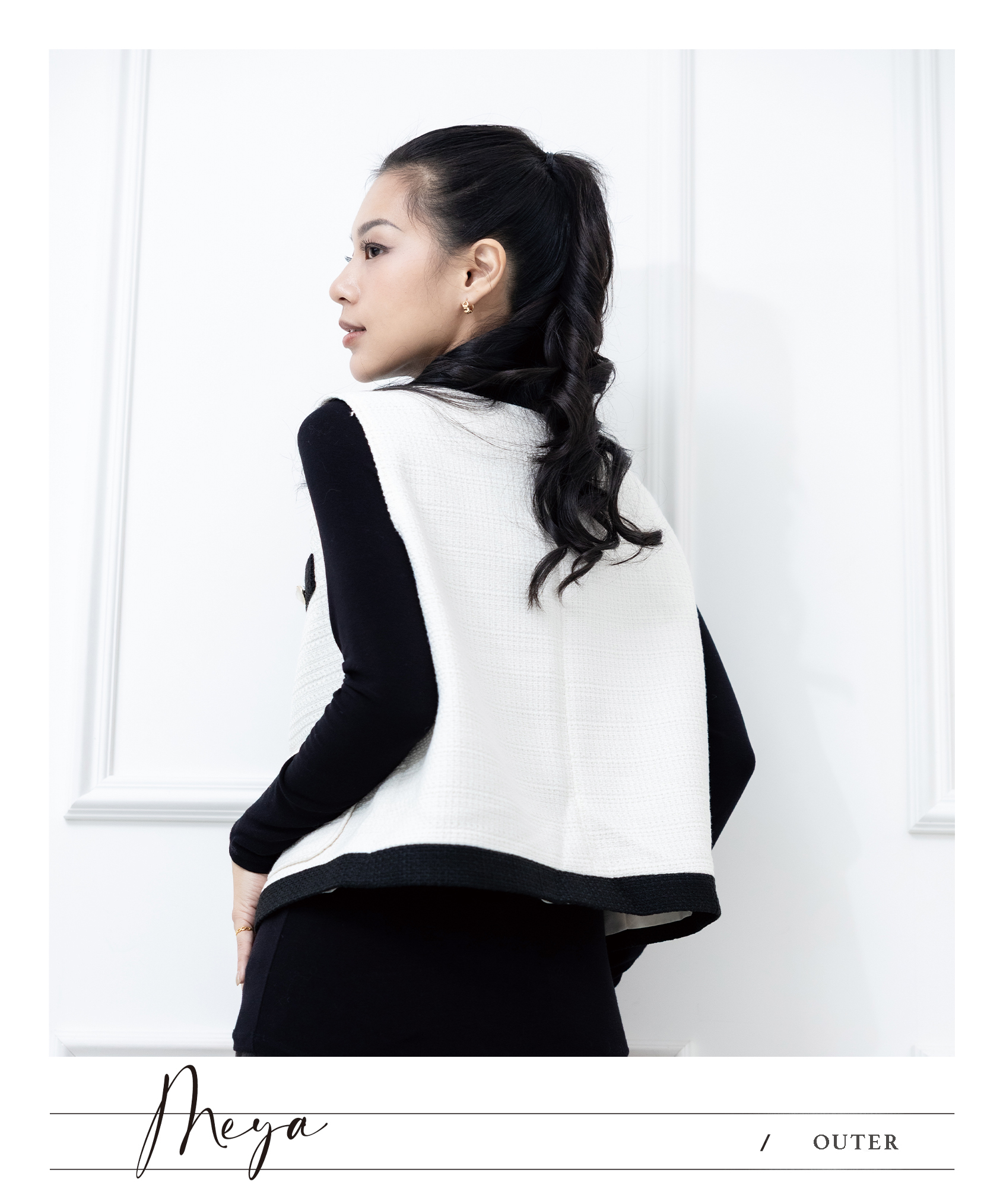 小香風拚色針織背心 / 白底黑色邊