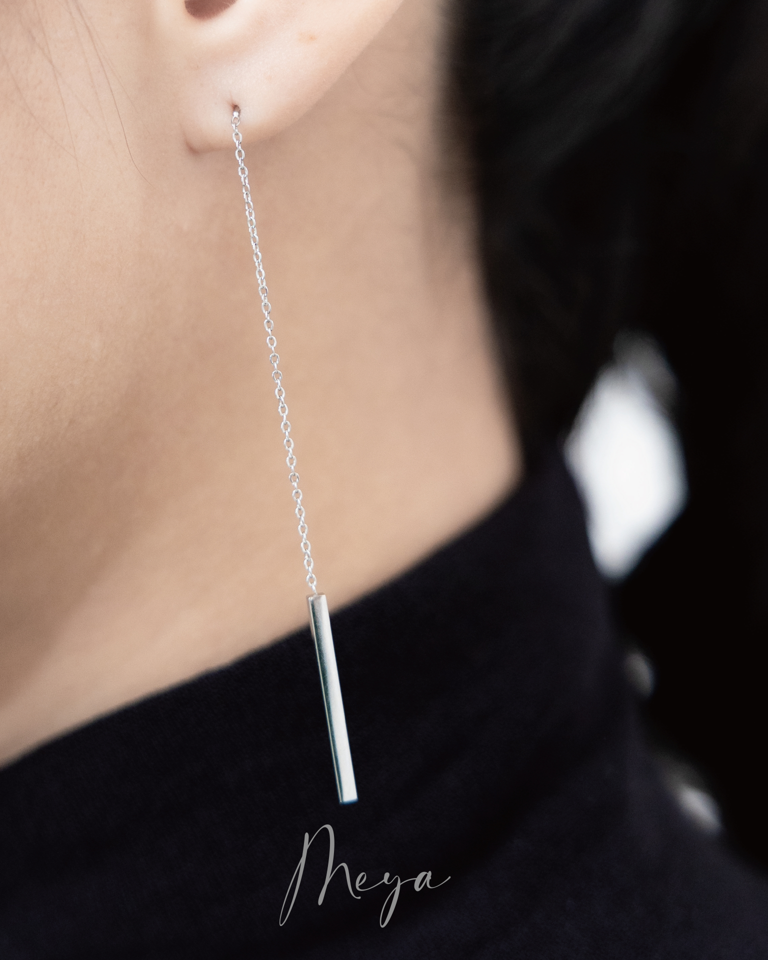 細小豆鏈接長方柱體 垂墜式耳環/銀色