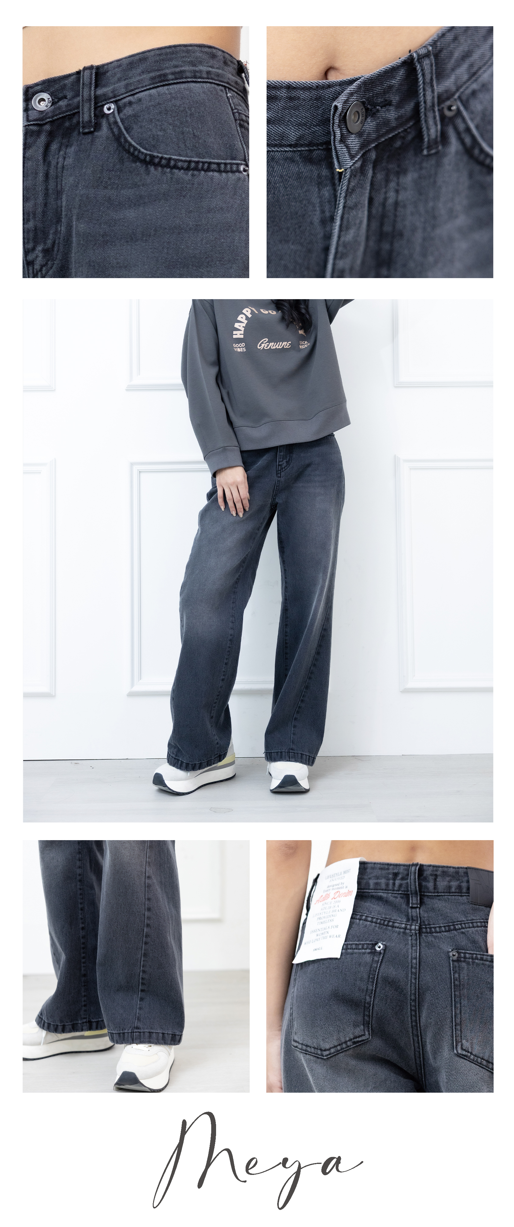 褲管立體剪裁刷色長褲 / 黑灰色