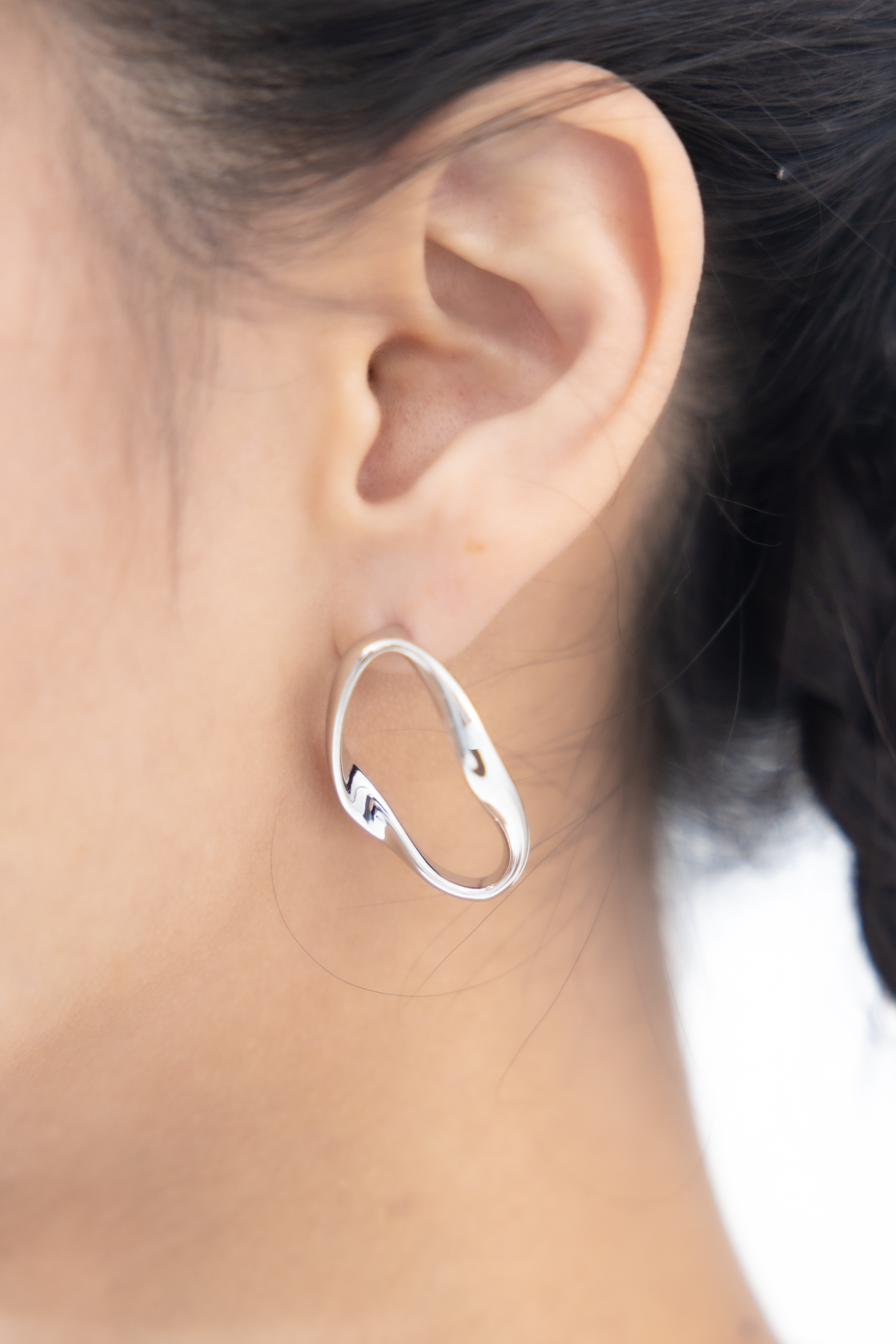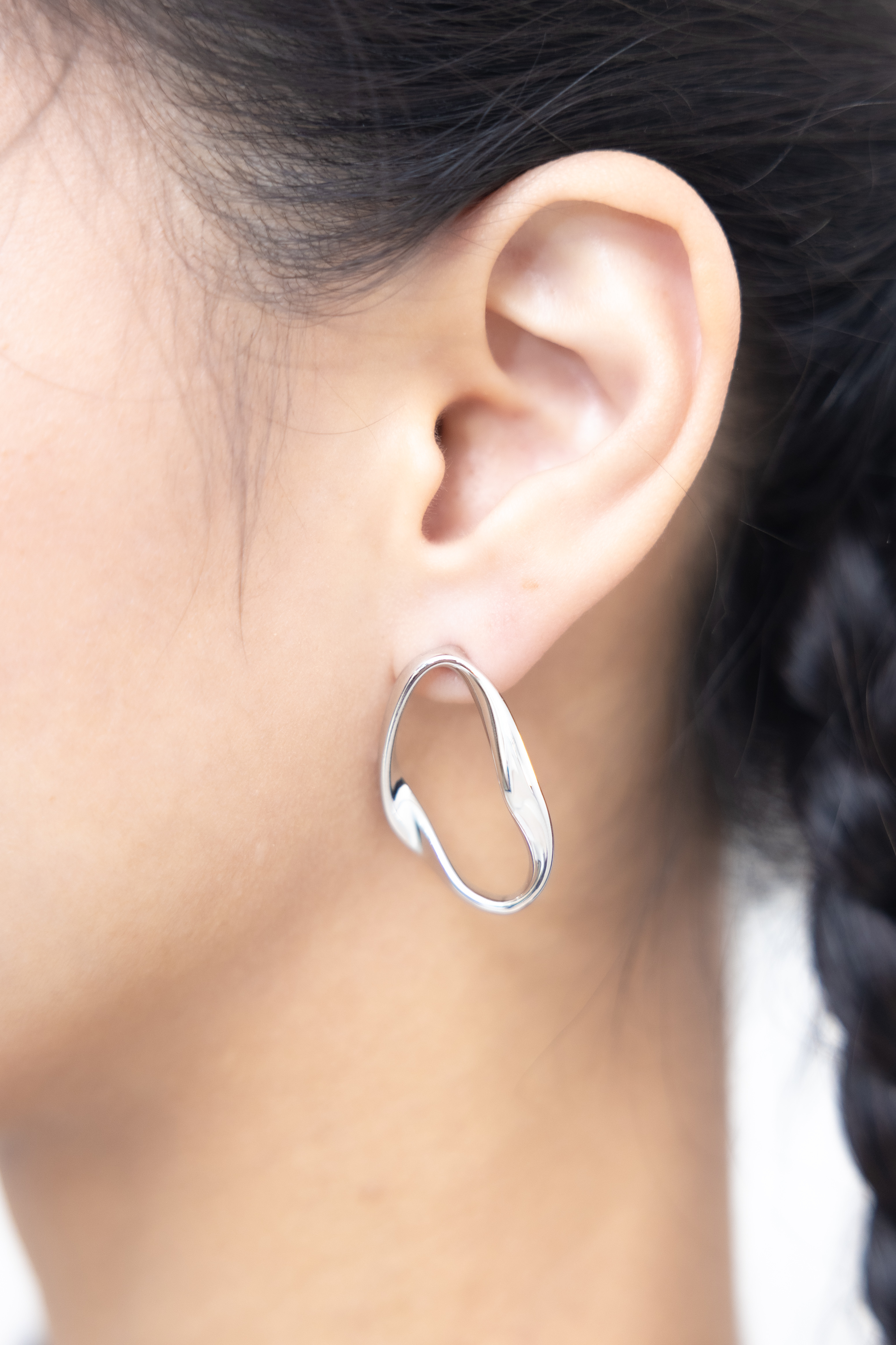 귀걸이 不規則扭曲大圈耳環 / 銀色