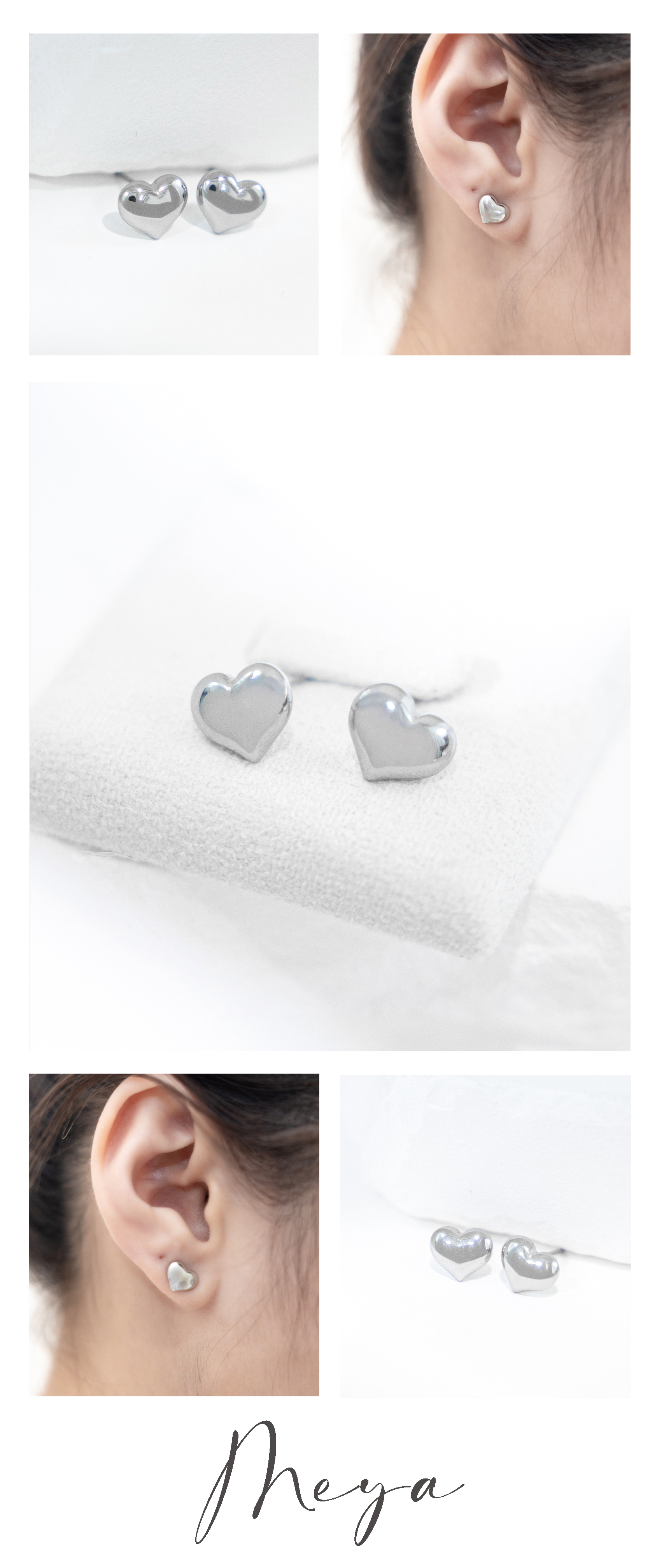 귀걸이 前凸後平小愛心耳環 / 銀色
