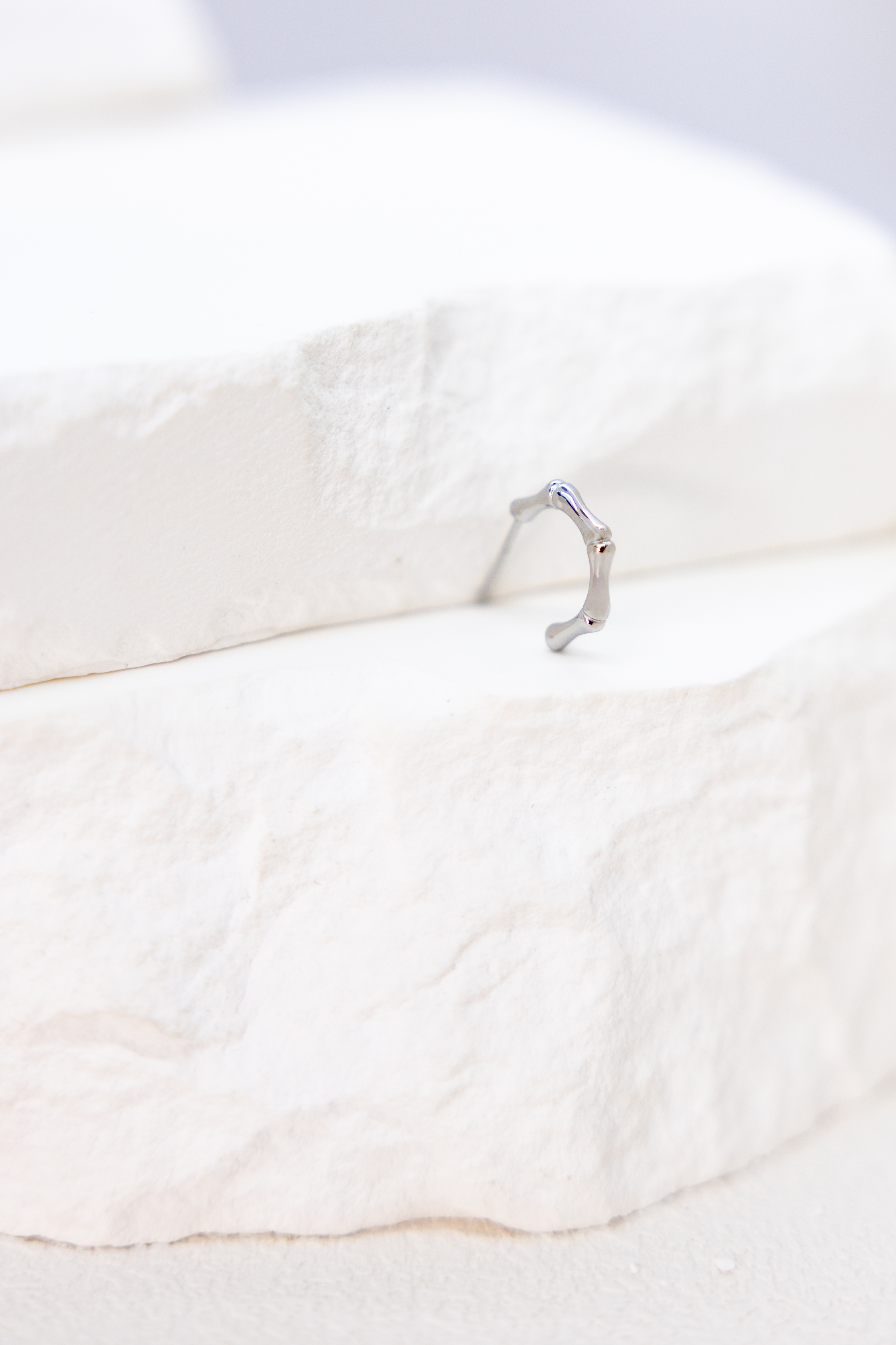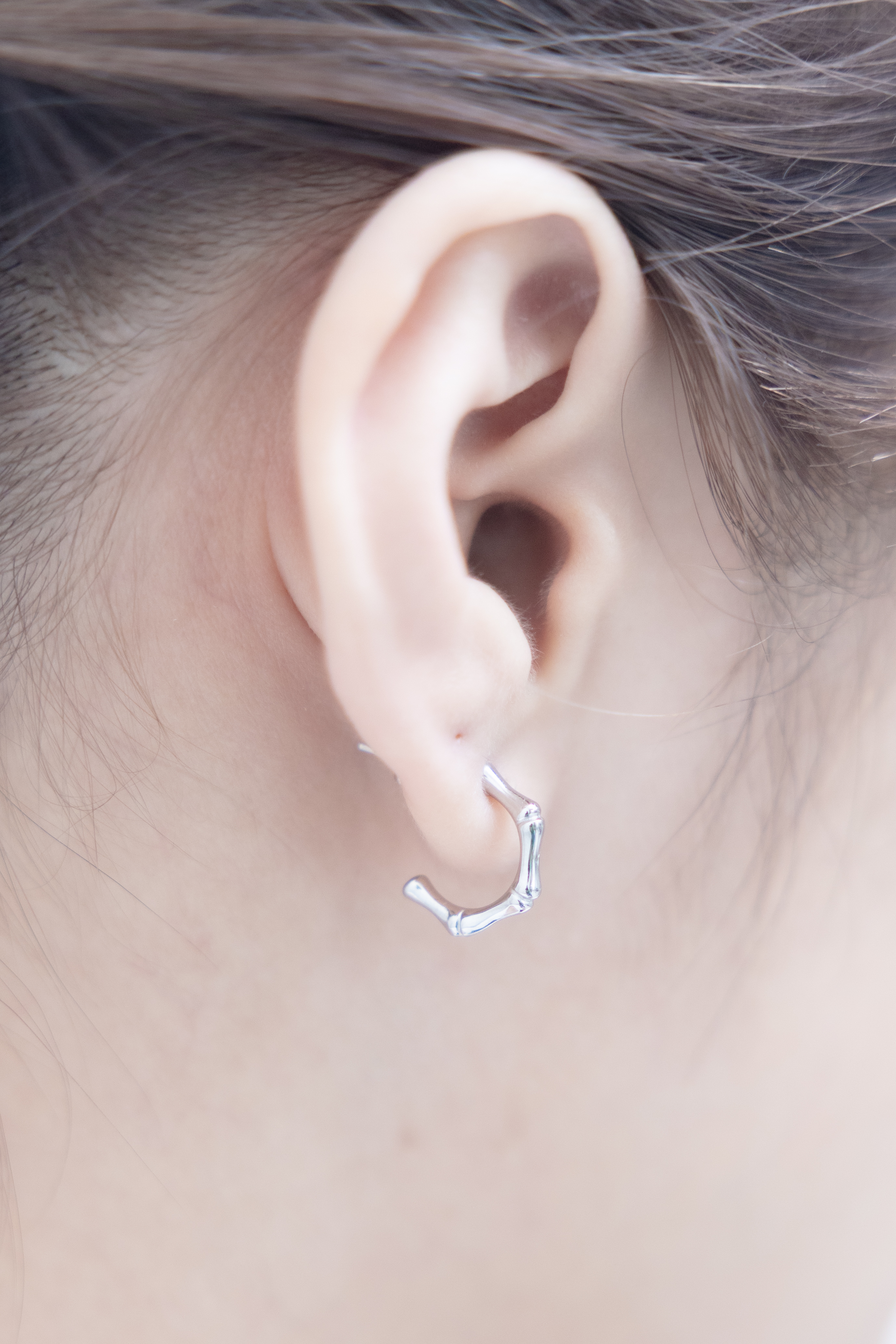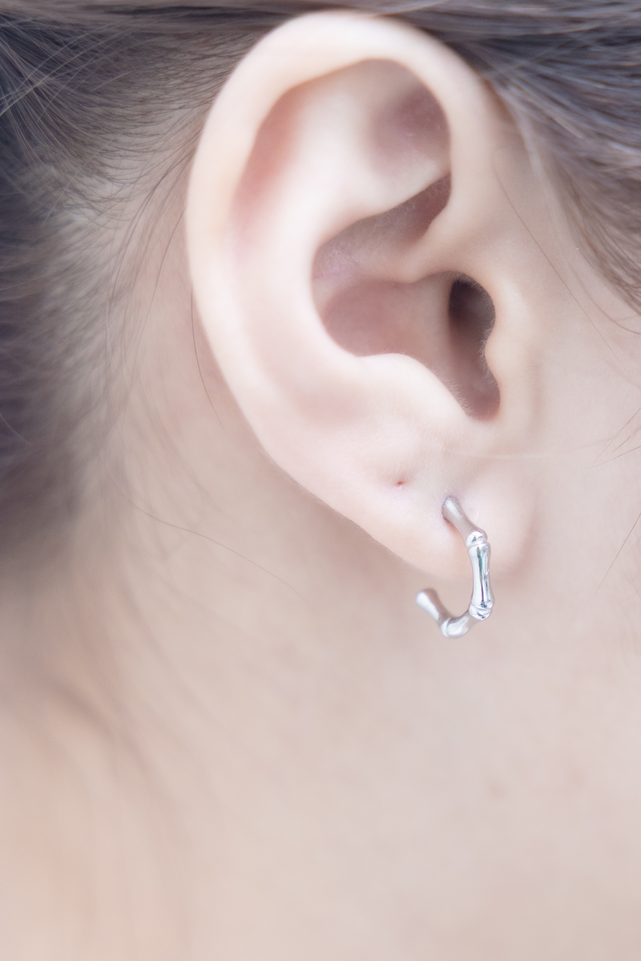 귀걸이 半圈細骨節耳環 / 銀色
