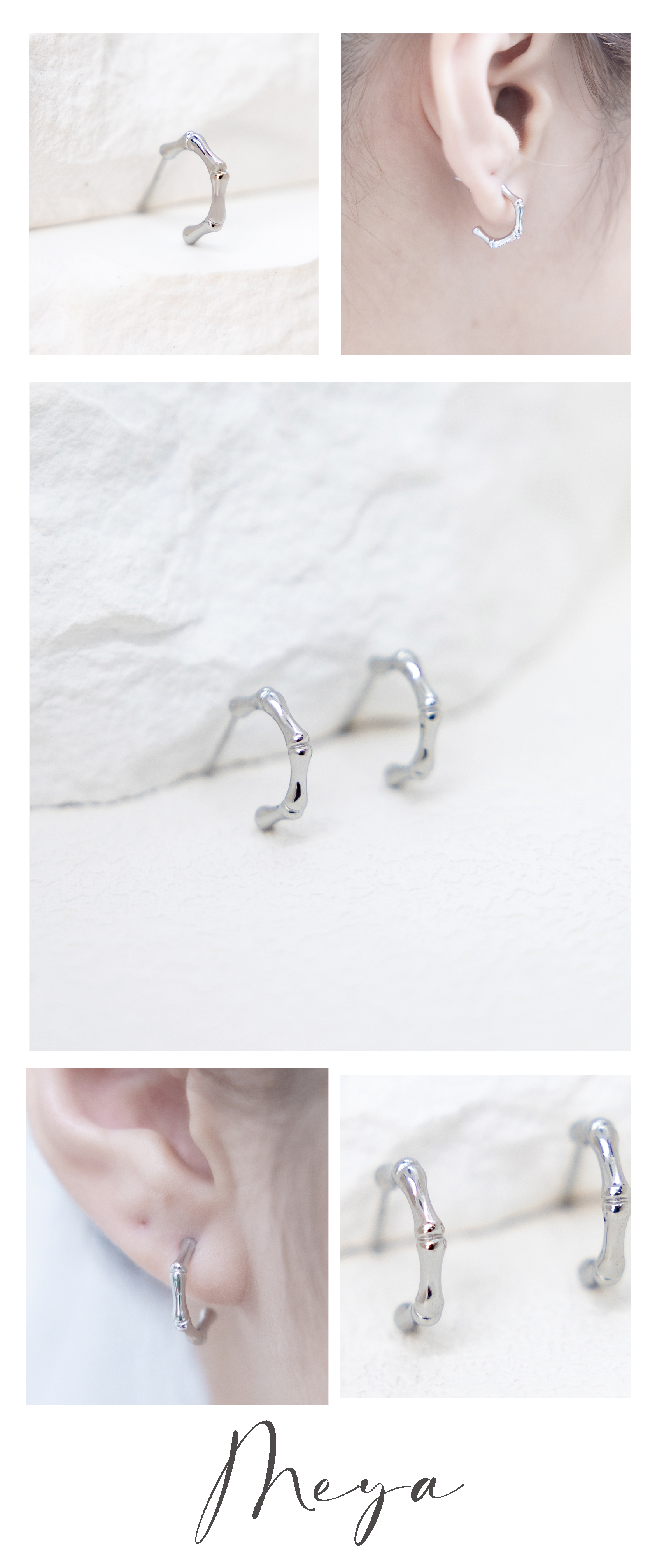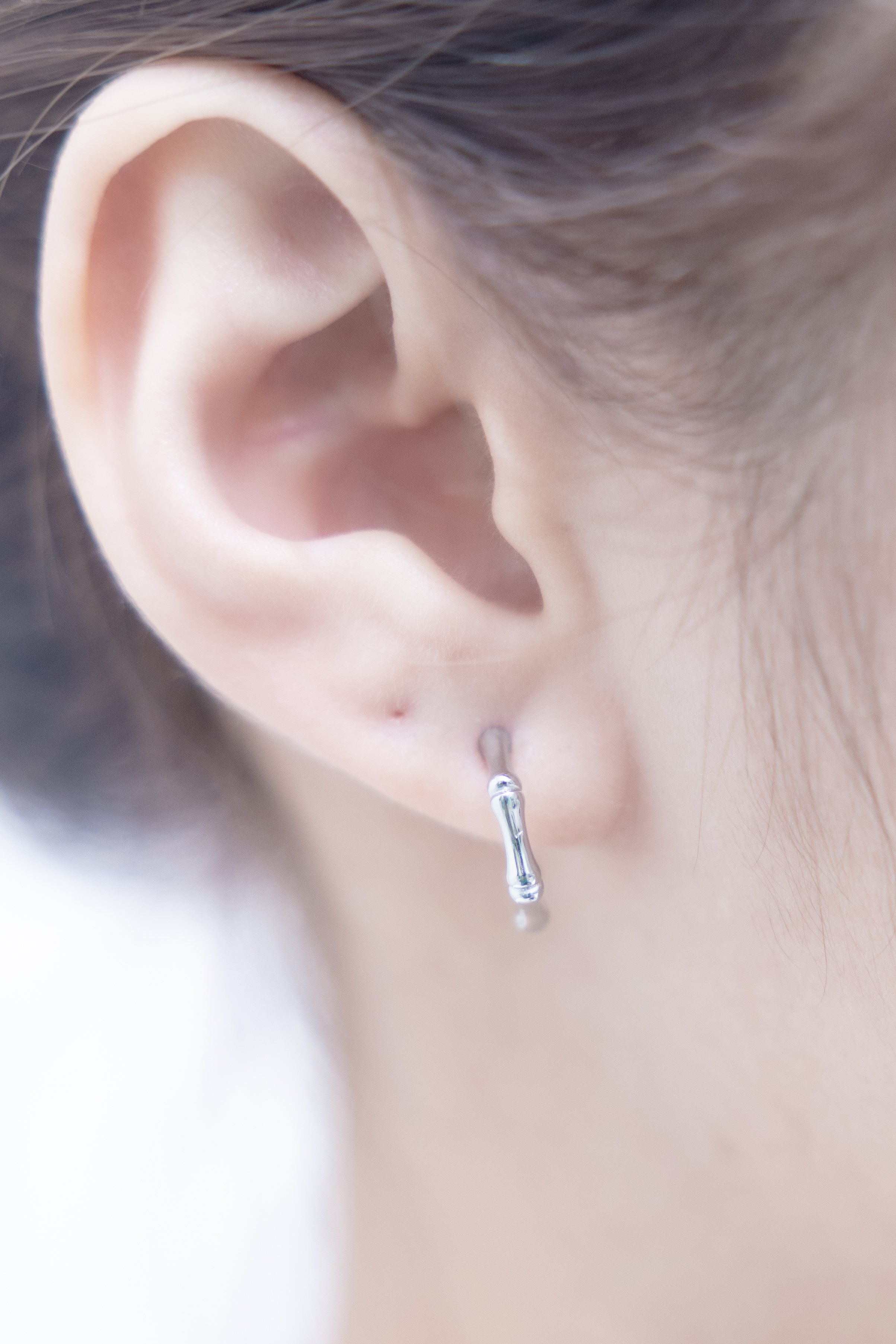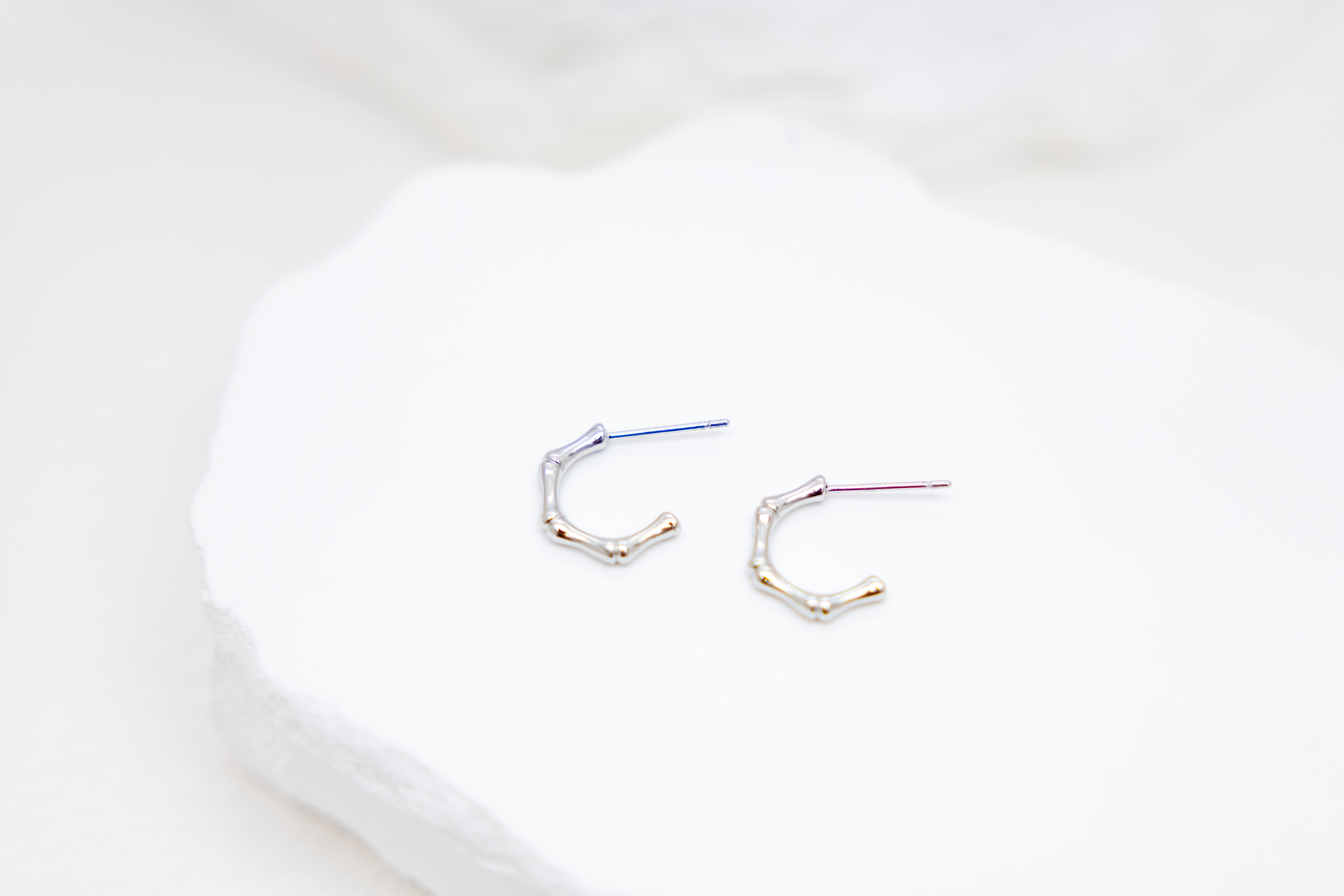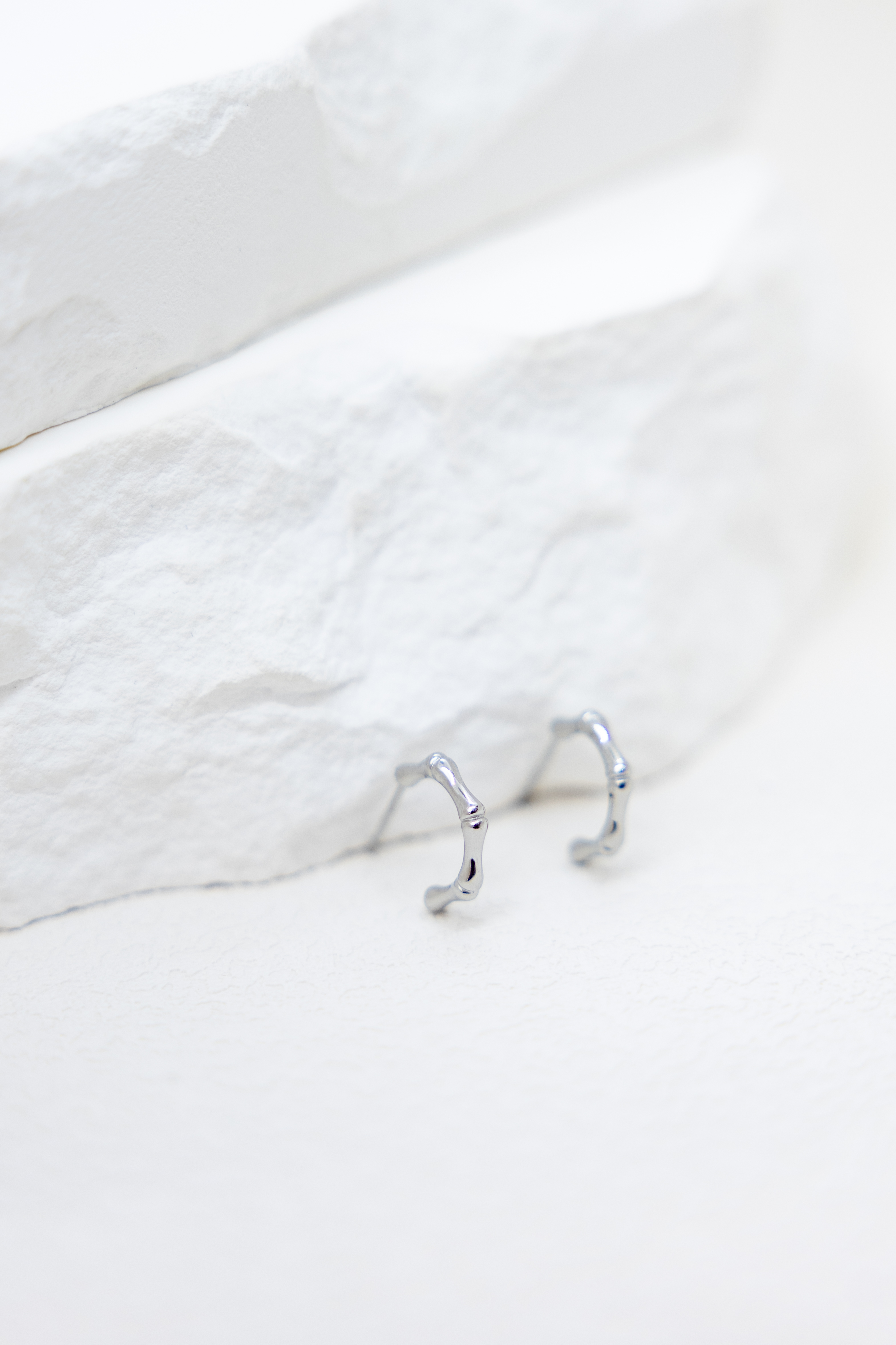 귀걸이 半圈細骨節耳環 / 銀色