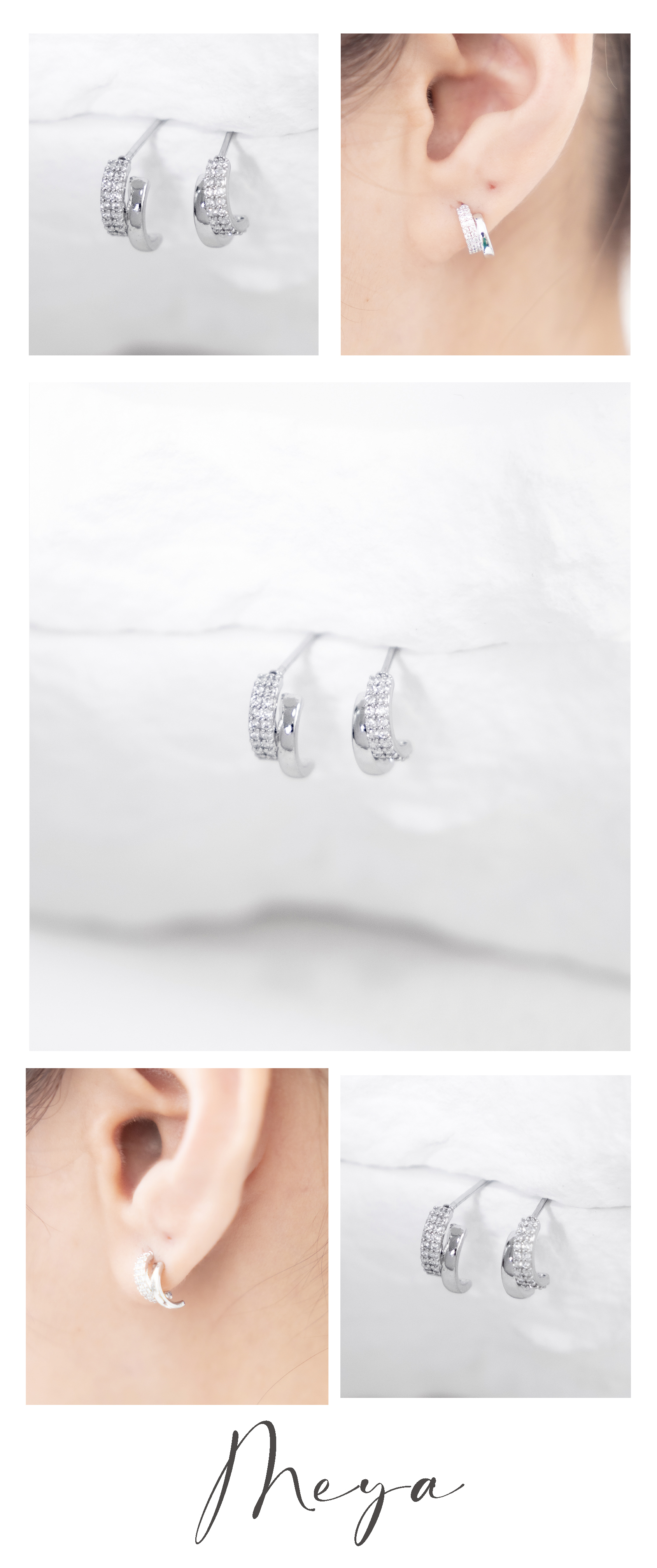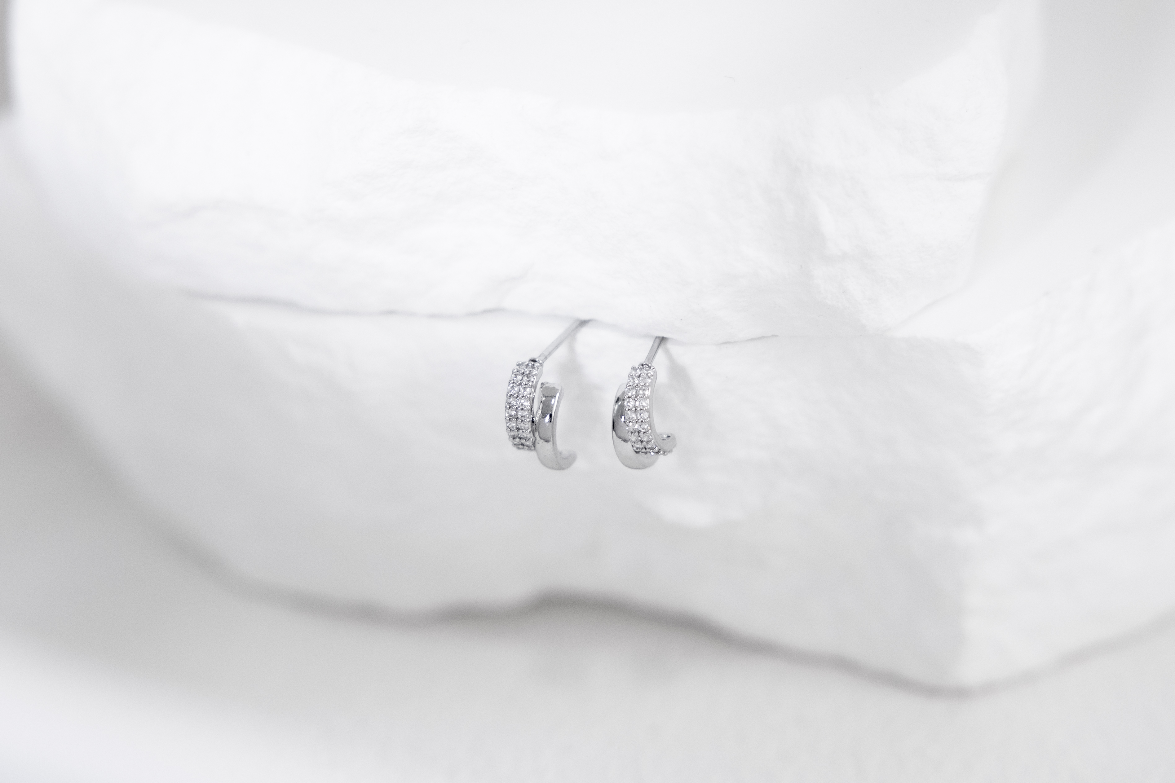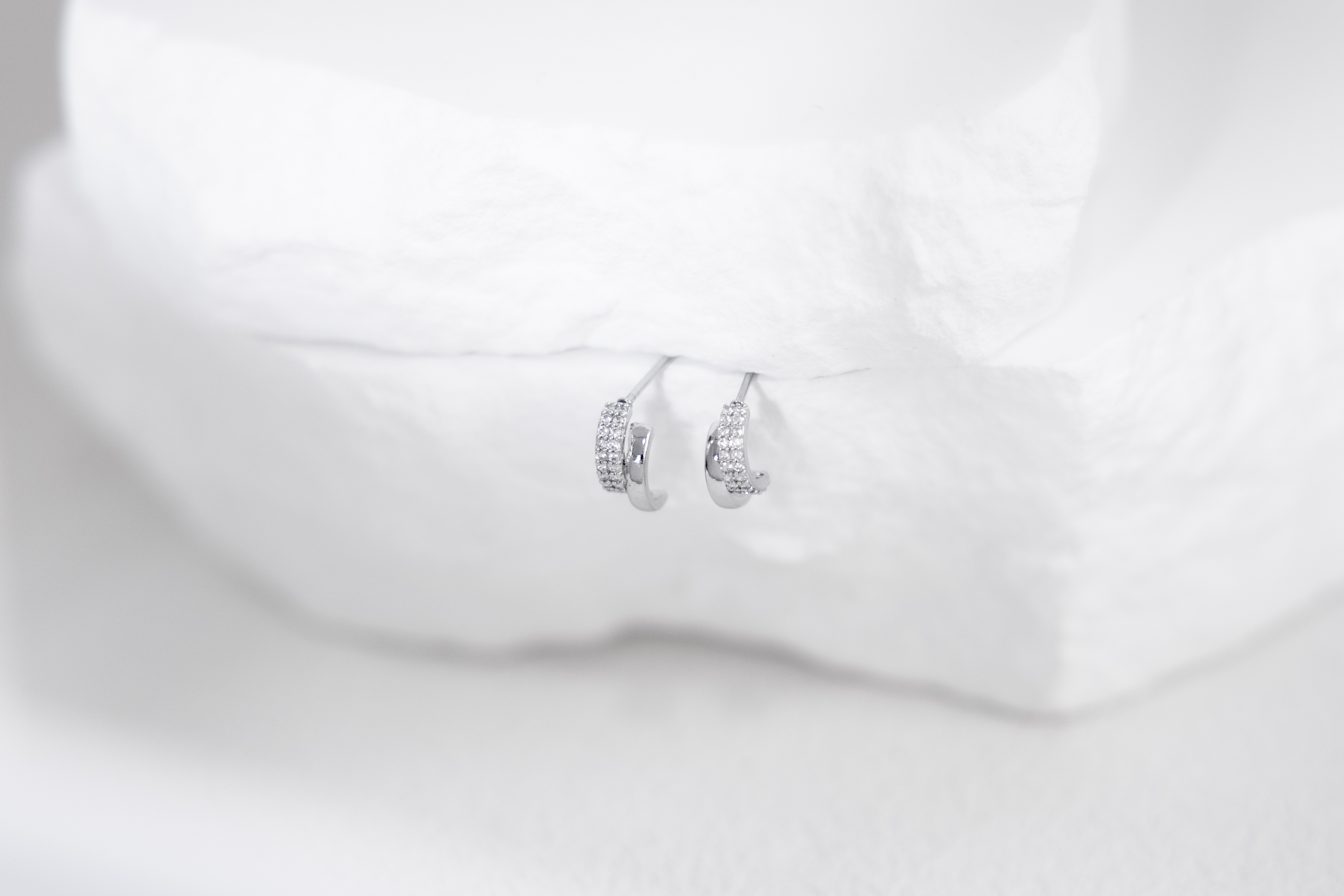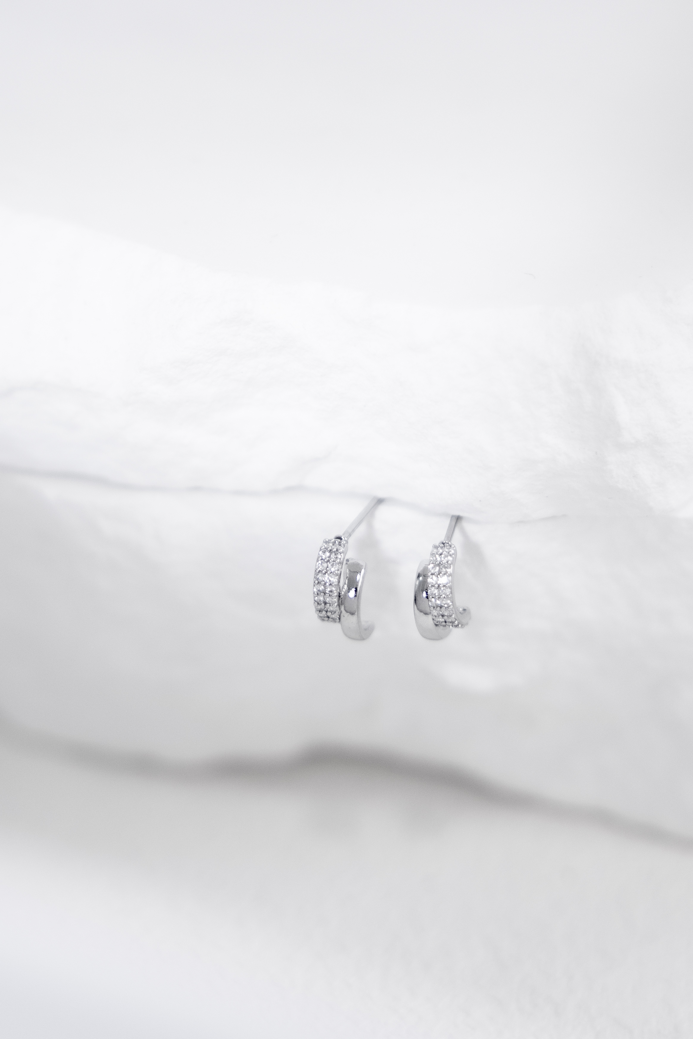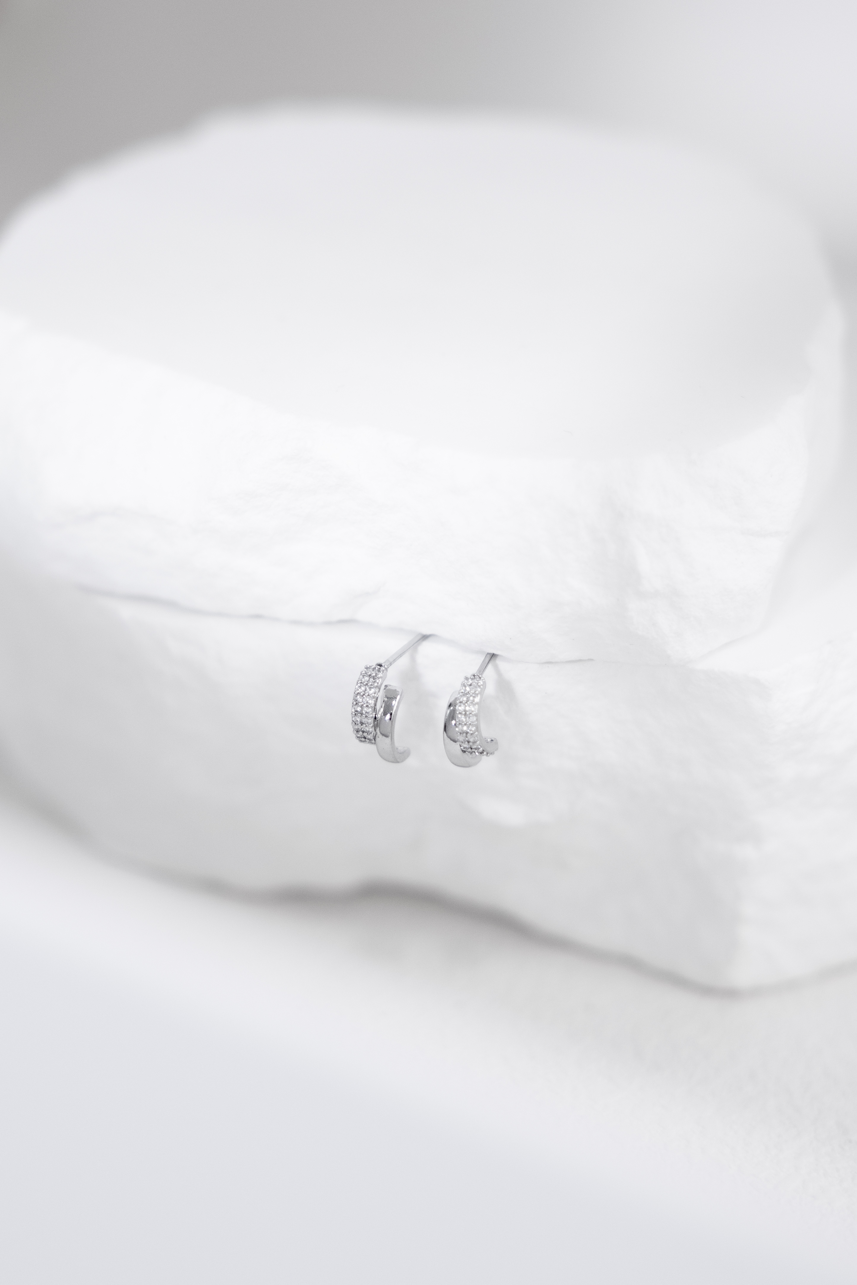 귀걸이 半圓弧小鋯石耳環 / 銀色