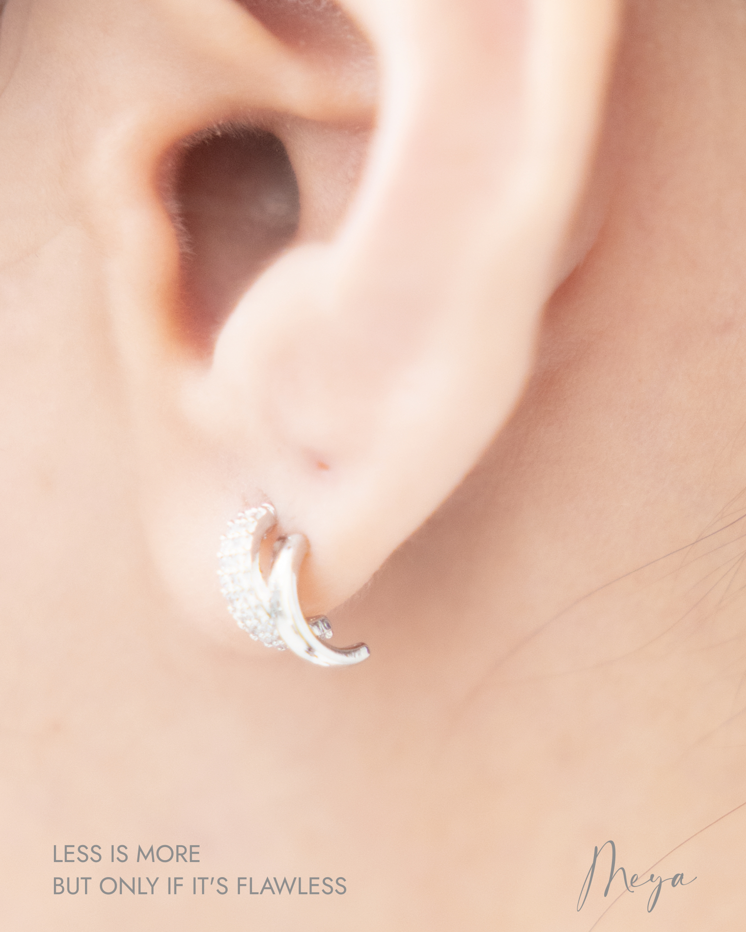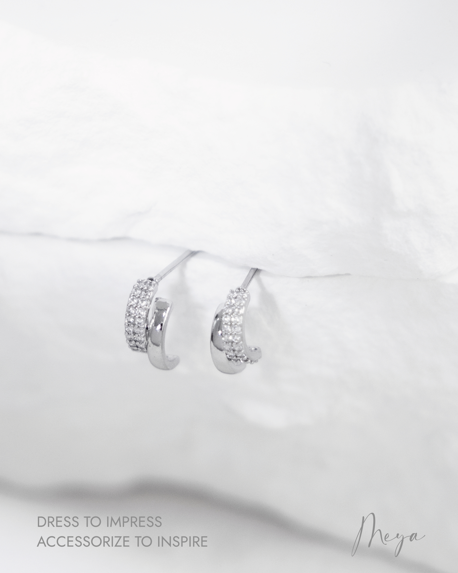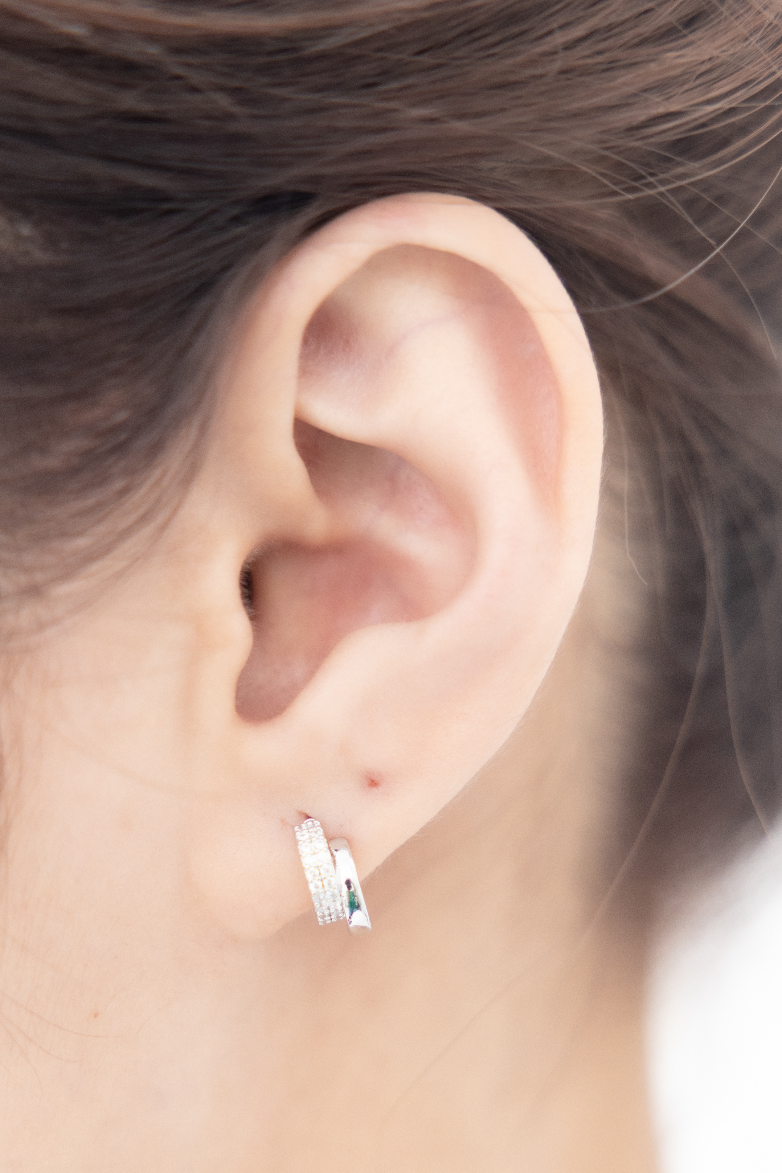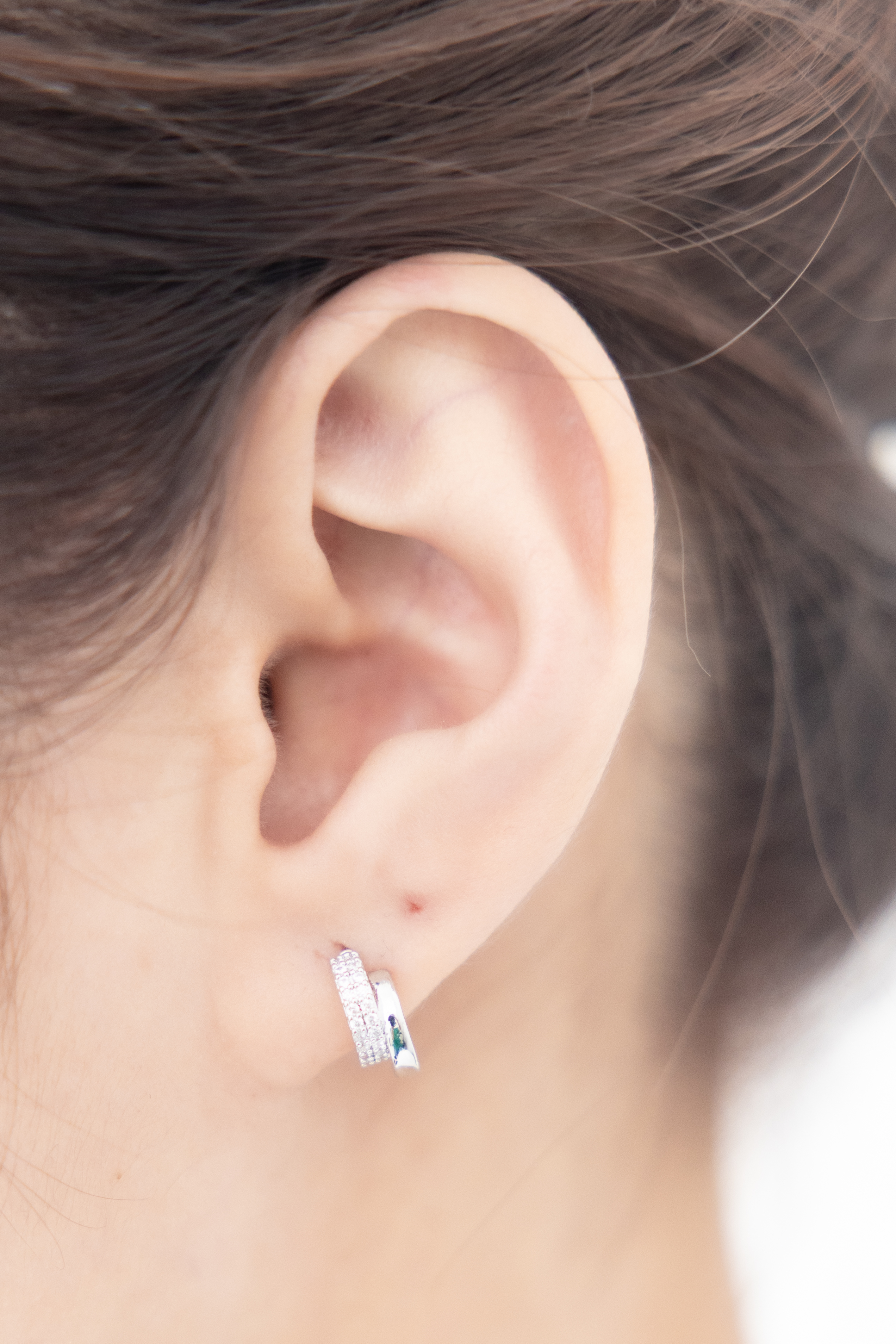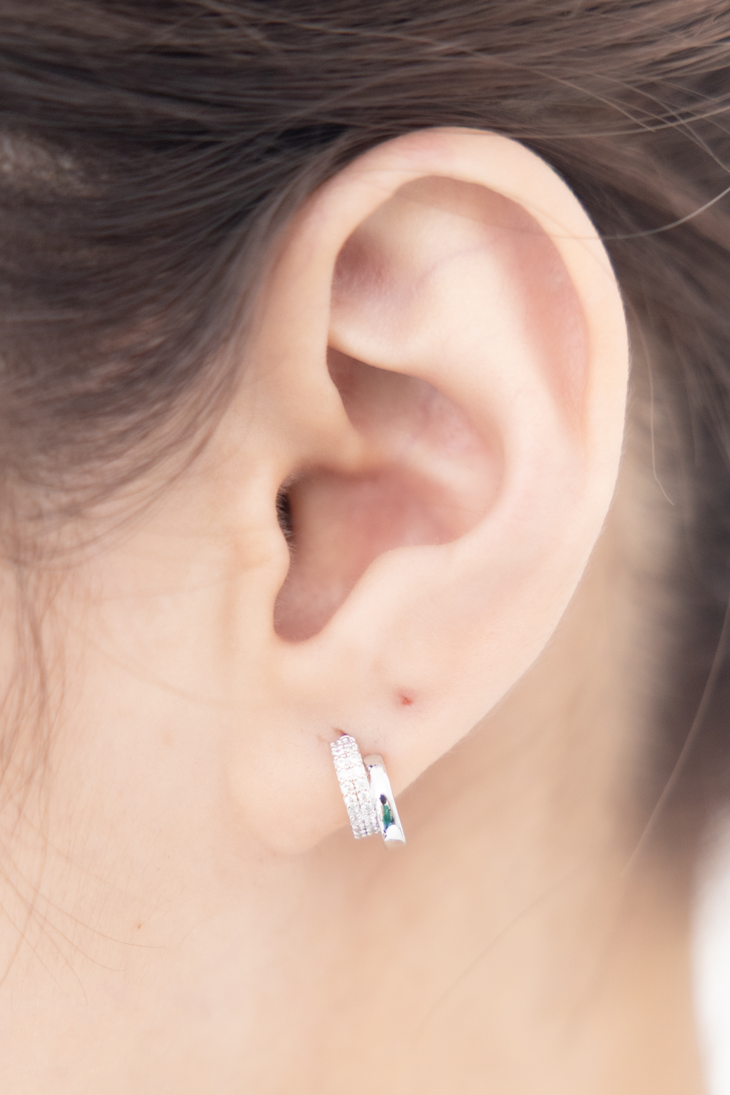 귀걸이 半圓弧小鋯石耳環 / 銀色