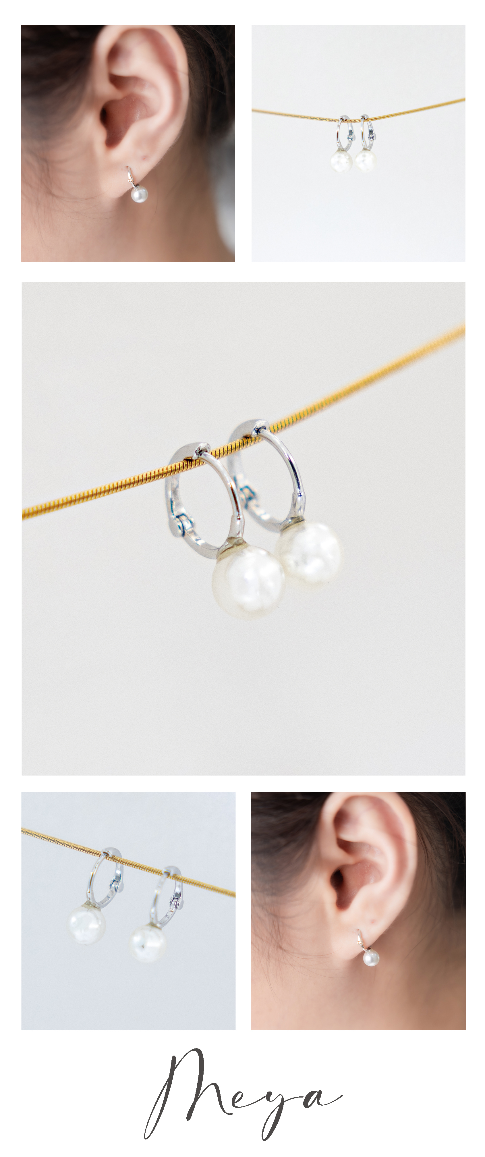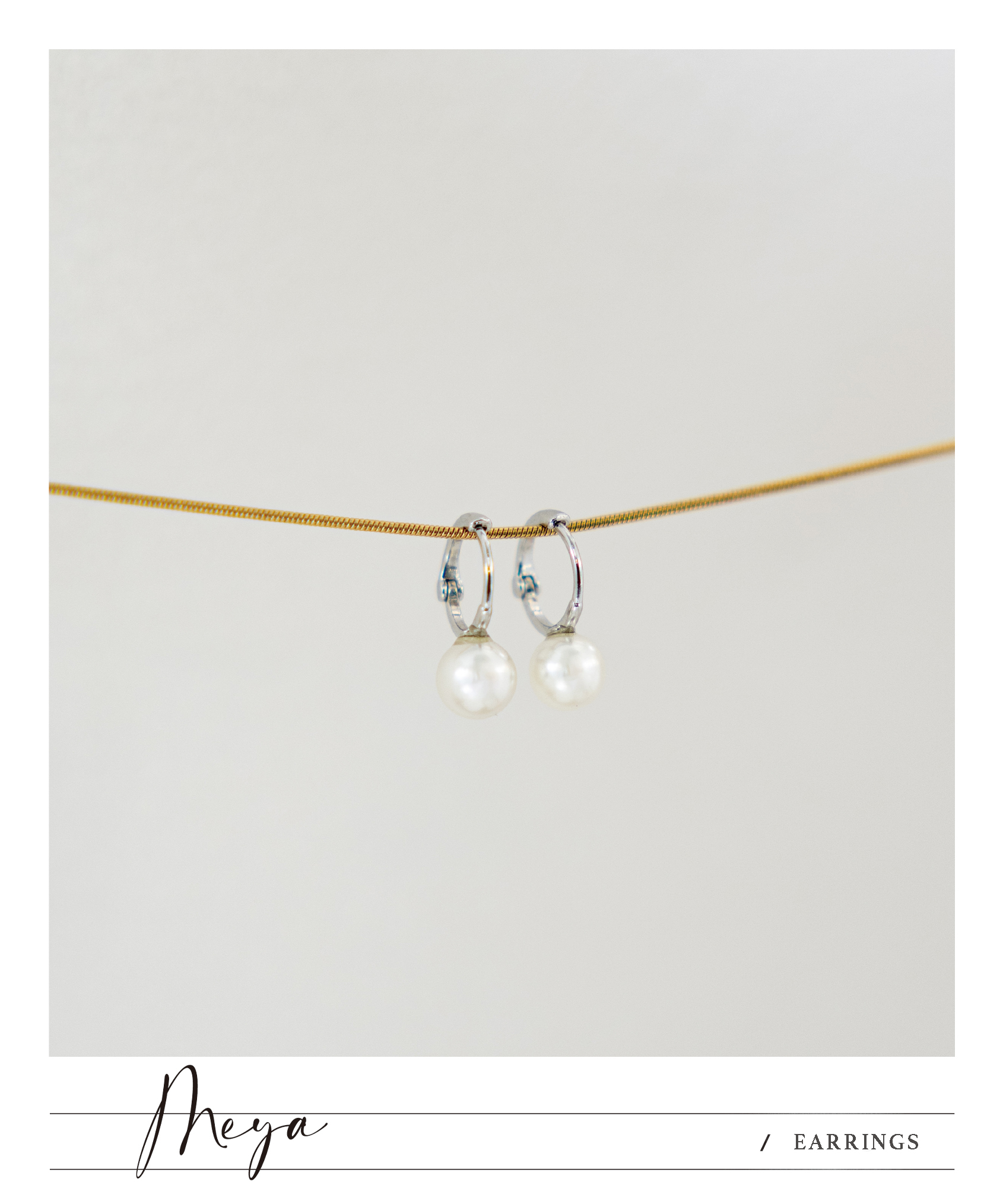 귀걸이 單顆珍珠圈型耳環 / 銀色
