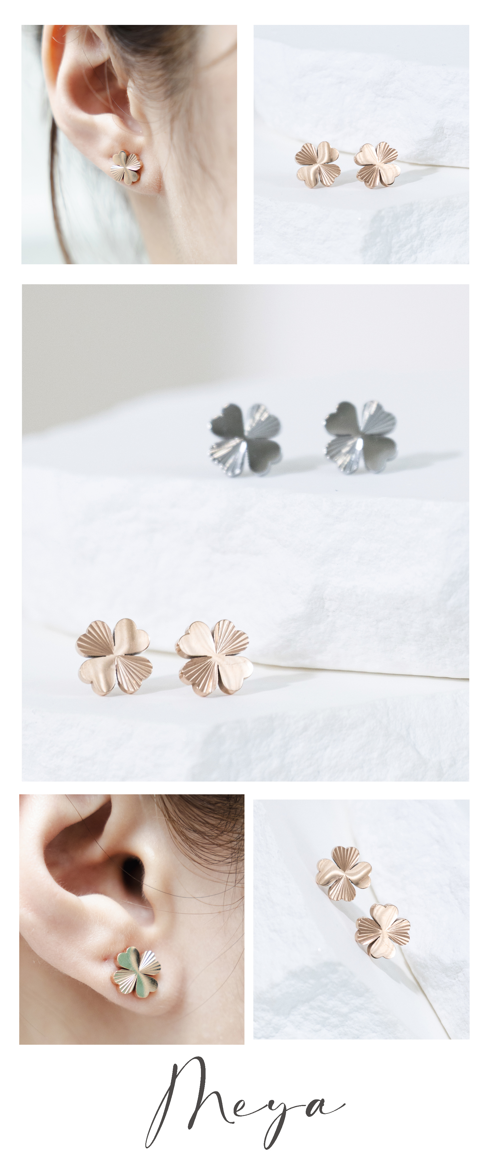 귀걸이 四葉幸運草耳環 / 玫瑰金色