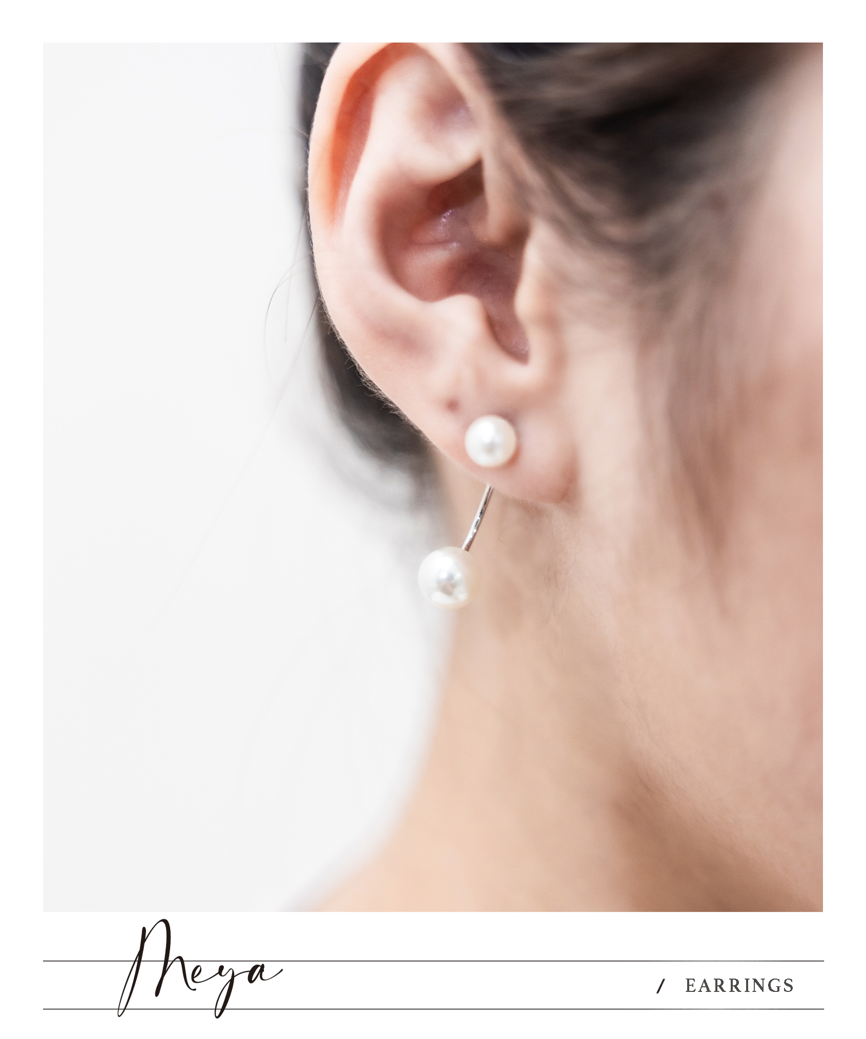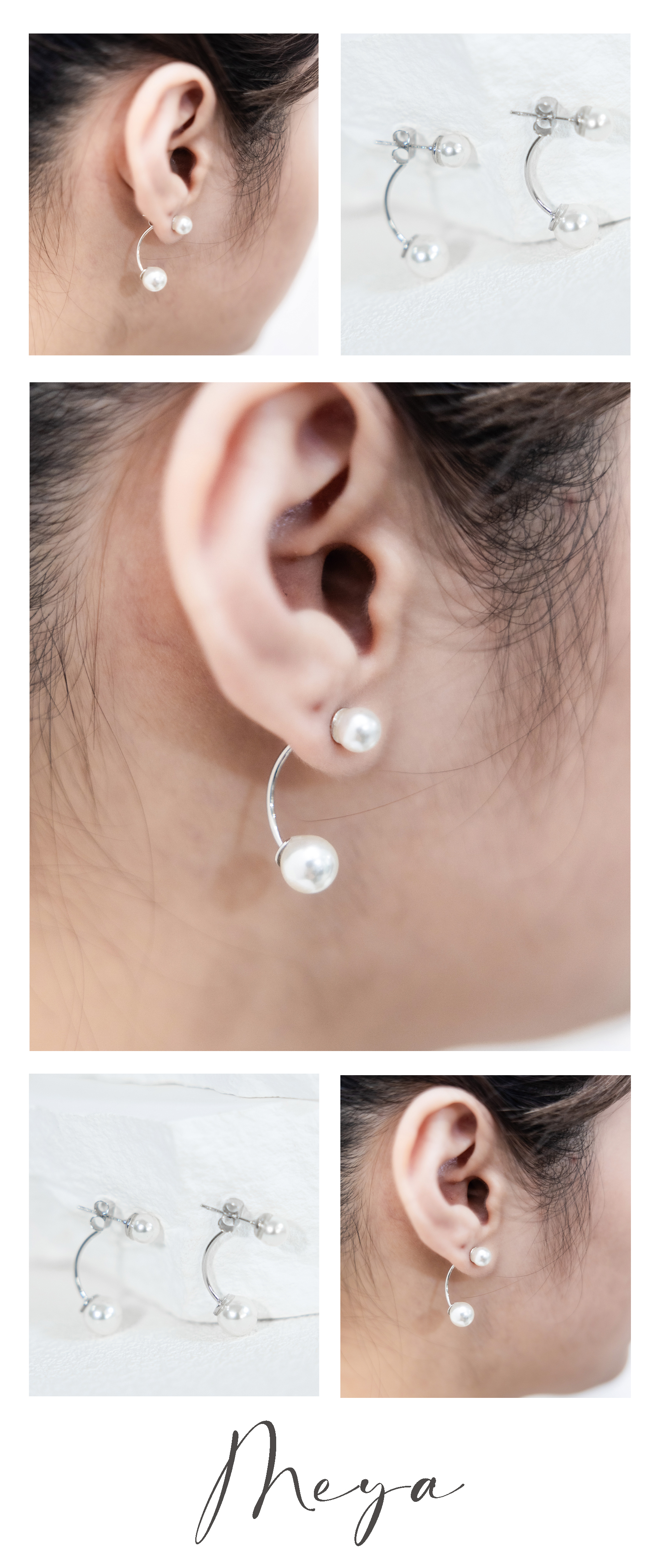 귀걸이 圓弧連接大小珍珠耳環 / 銀色