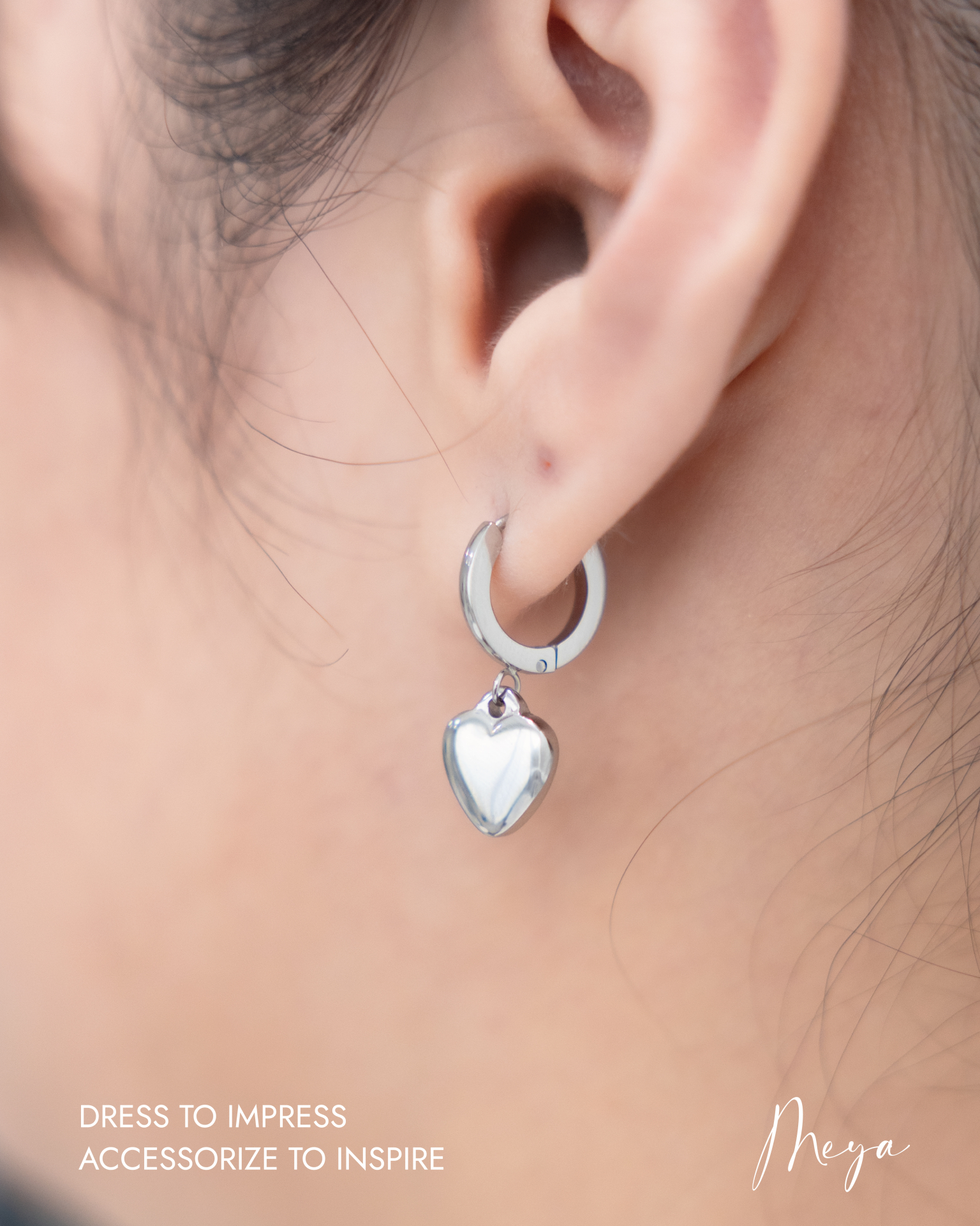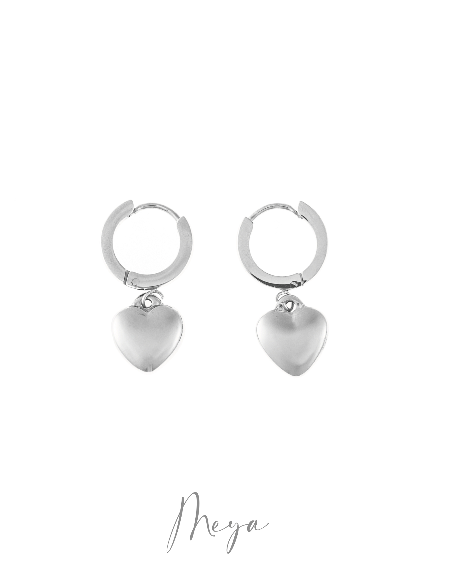 귀걸이 垂墜式立體小愛心圈型耳環 / 銀色
