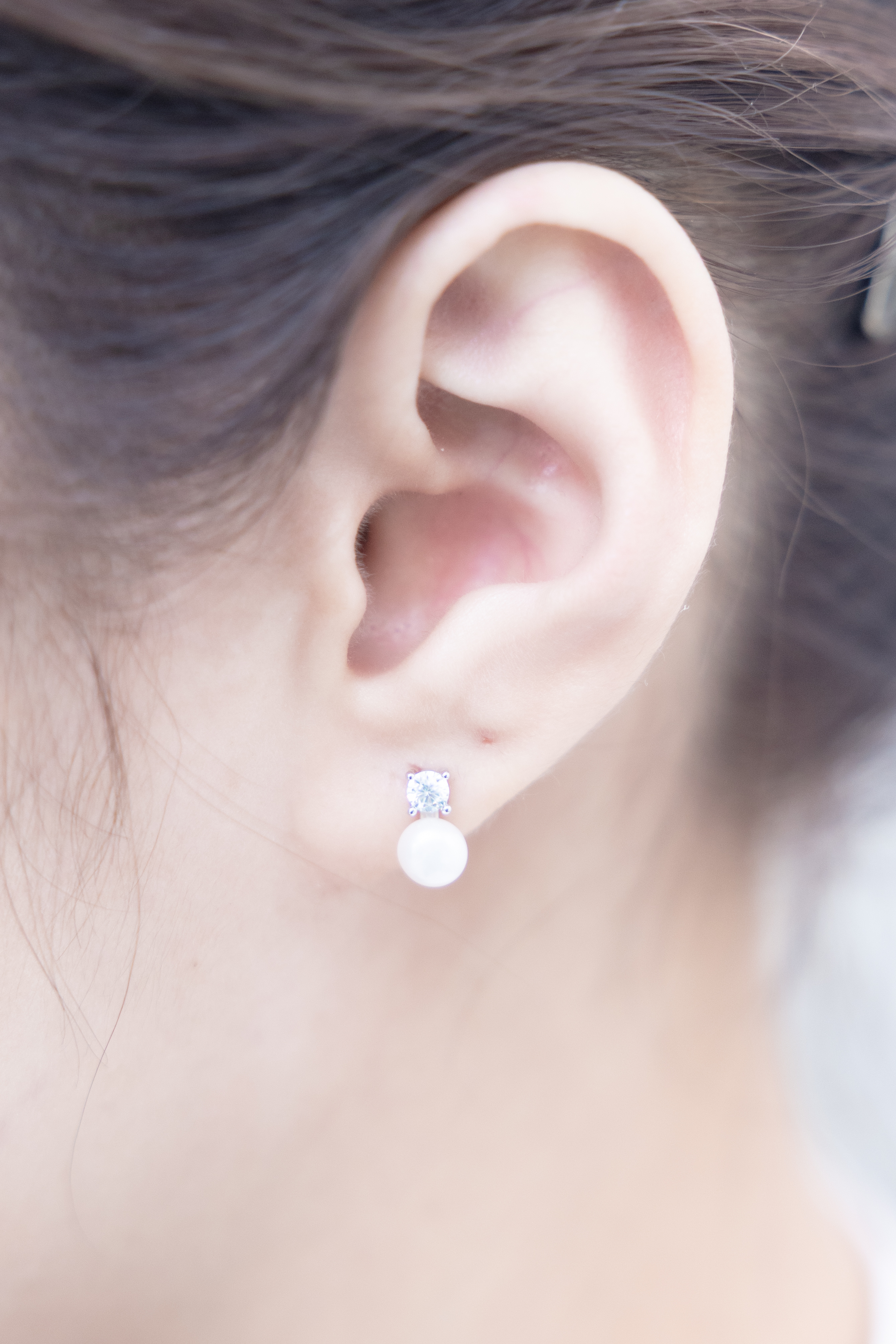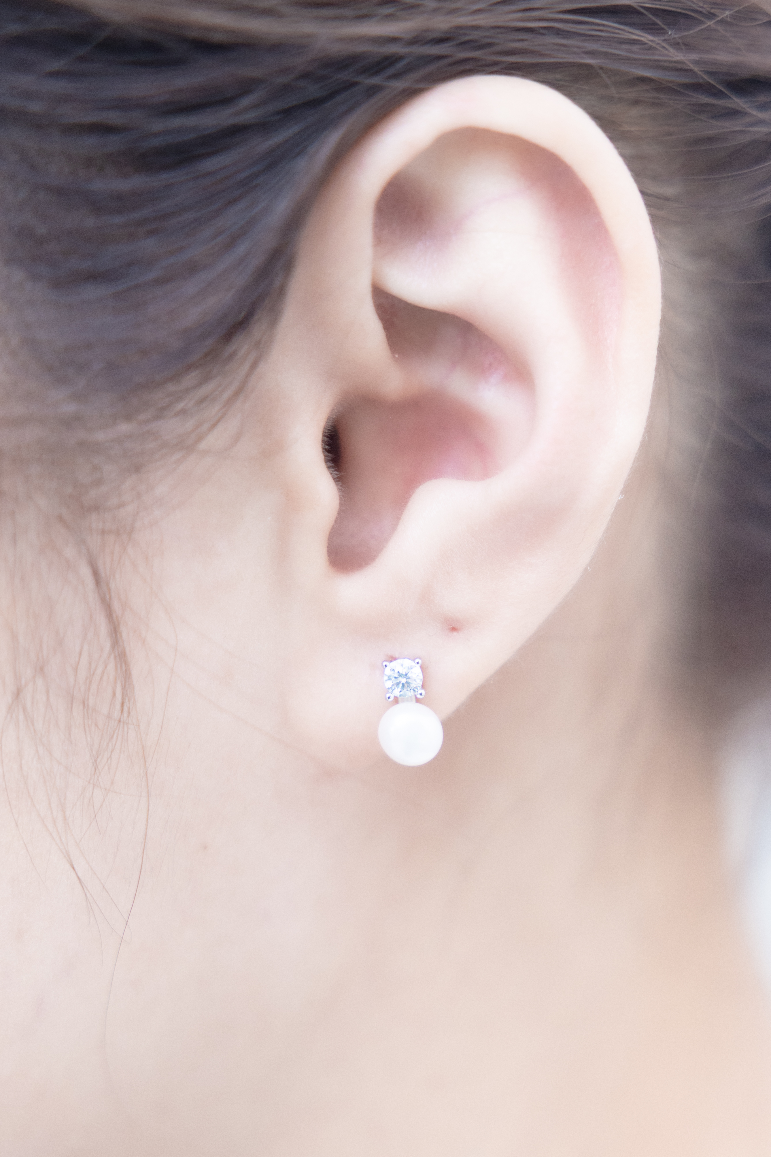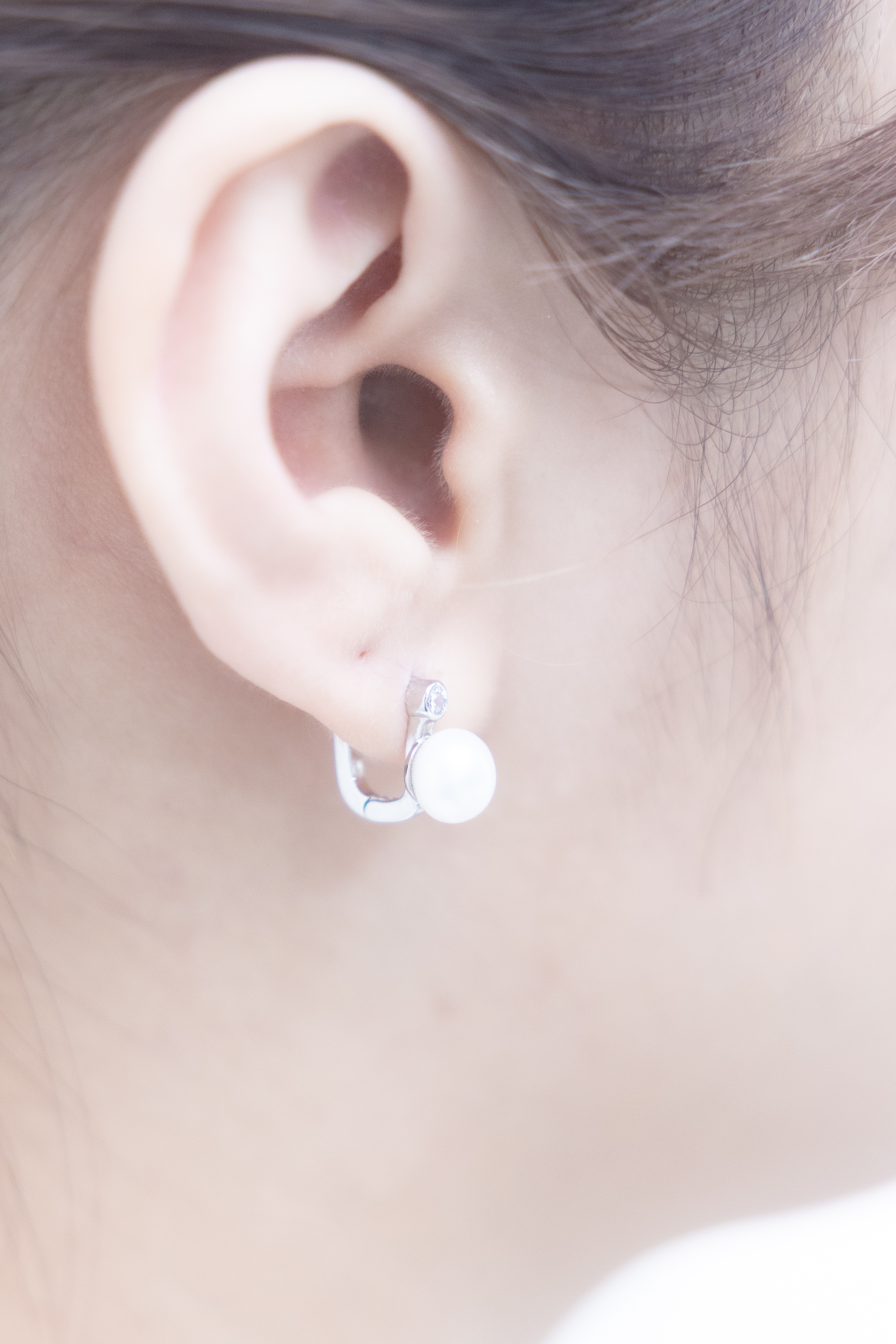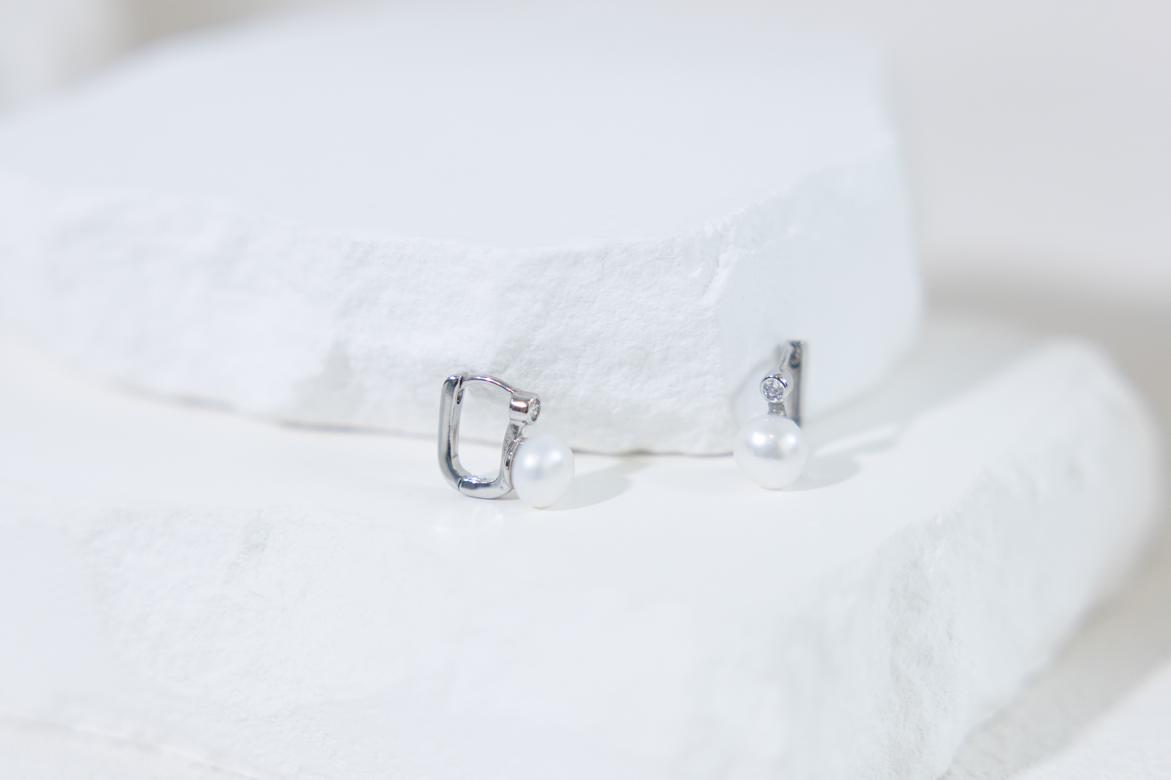 귀걸이 小鋯石U型圈型耳環 / 銀色