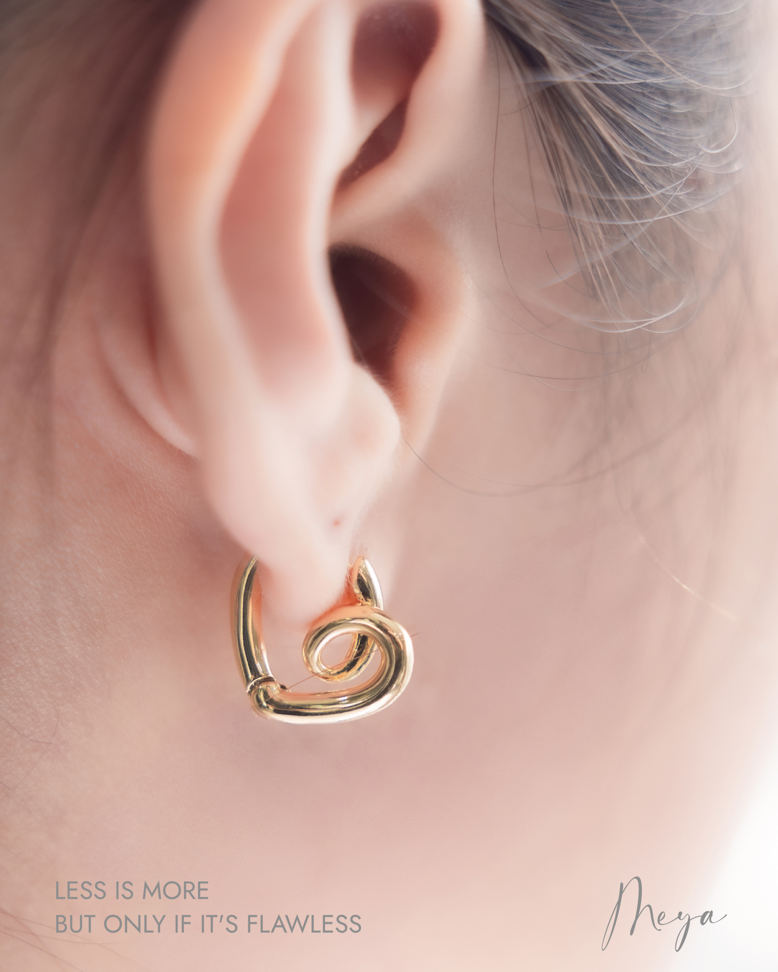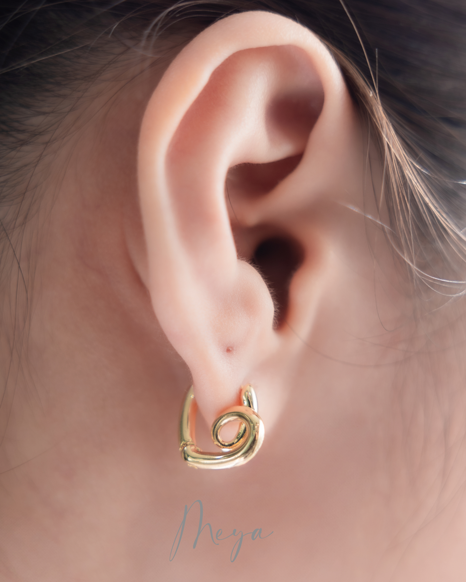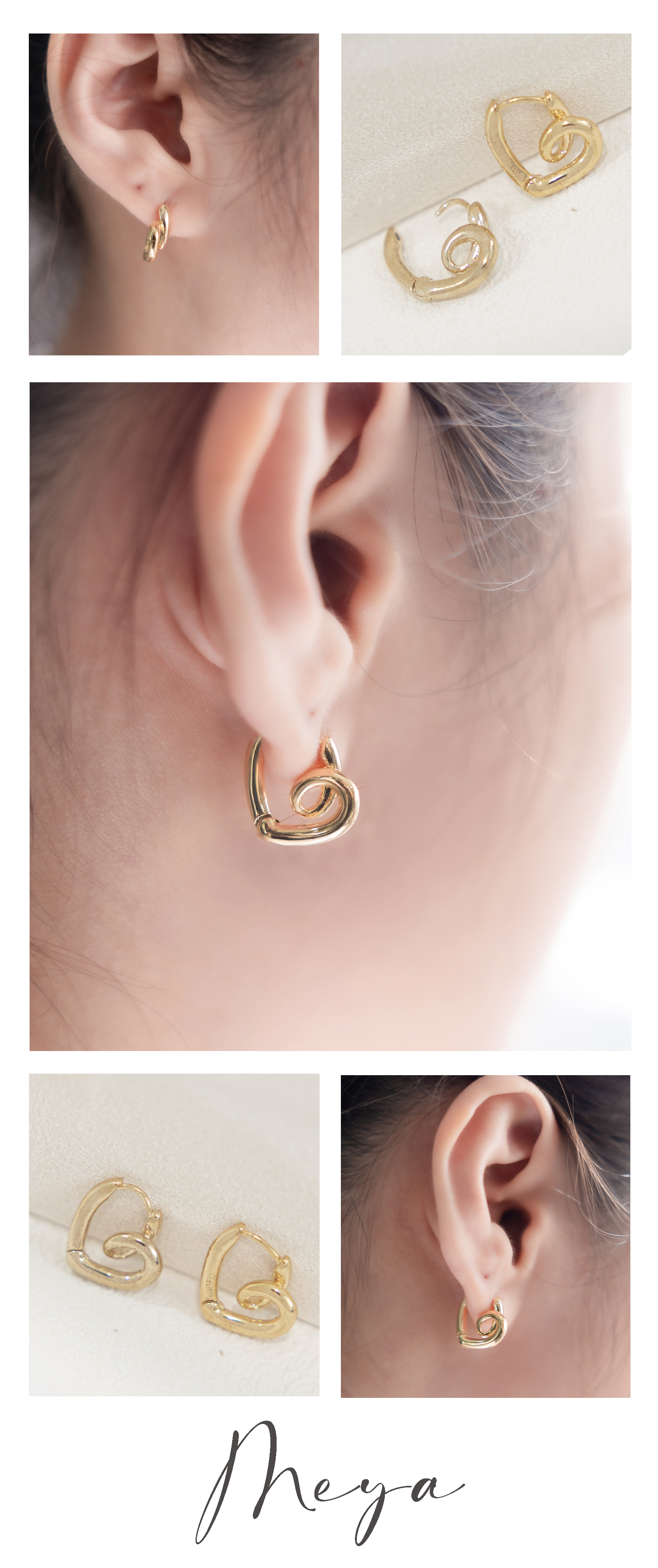 귀걸이 彎曲小空心愛心圈型耳環 / 金色