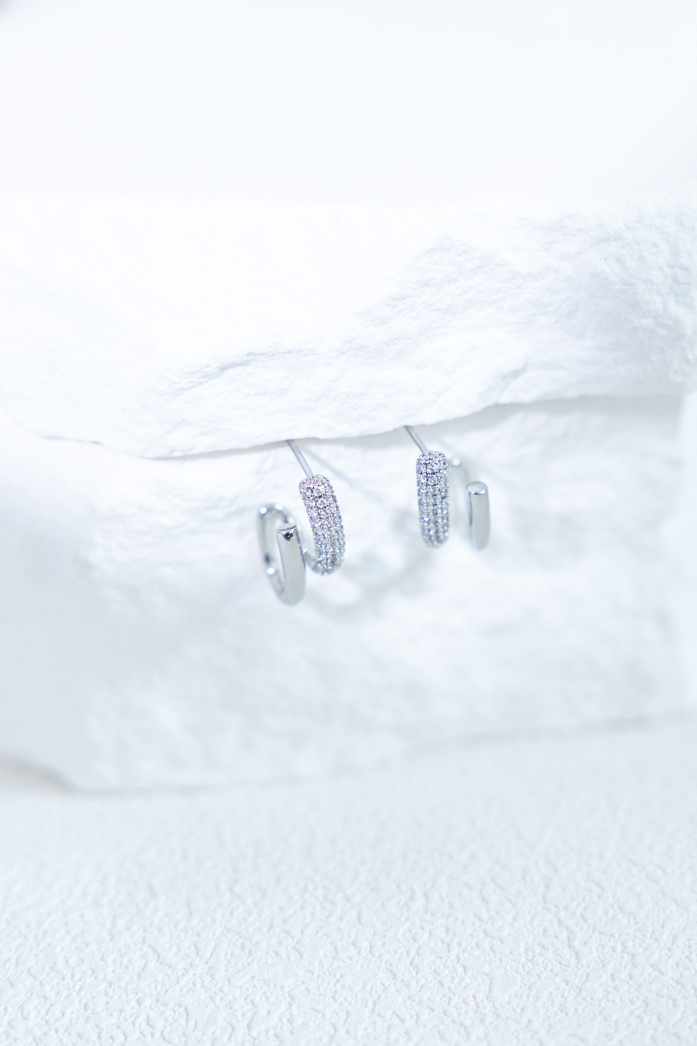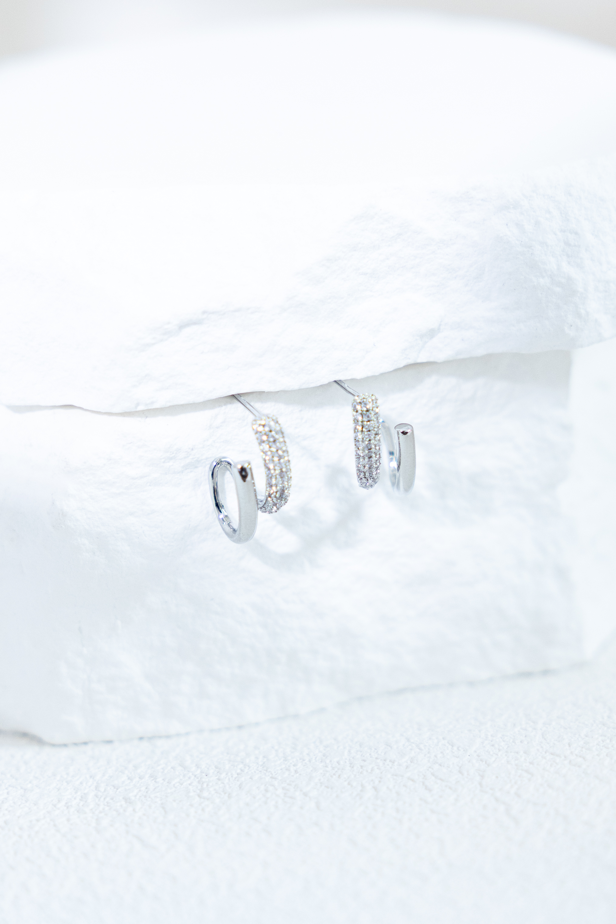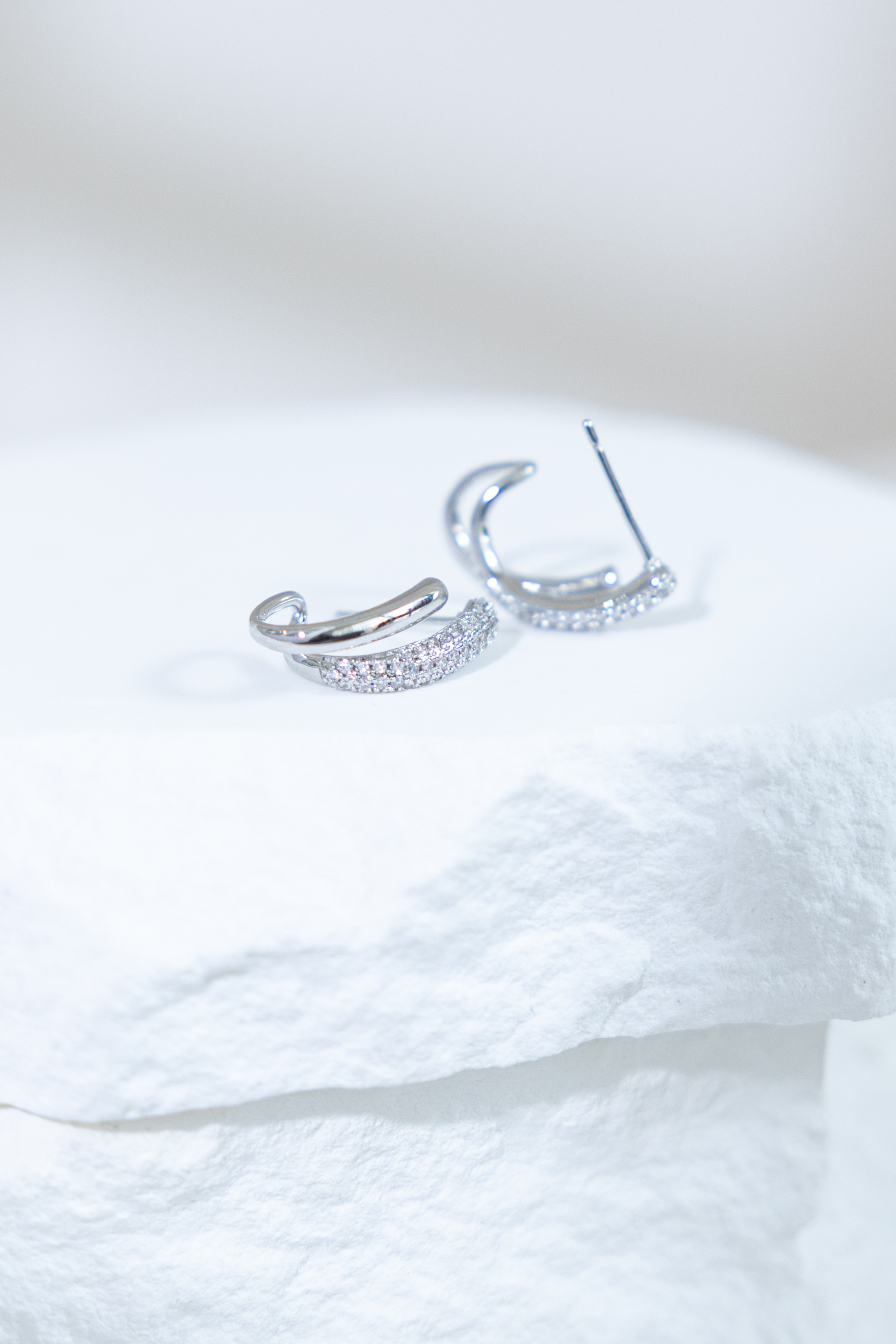 귀걸이 彎曲U字型小鋯石耳環 / 銀色