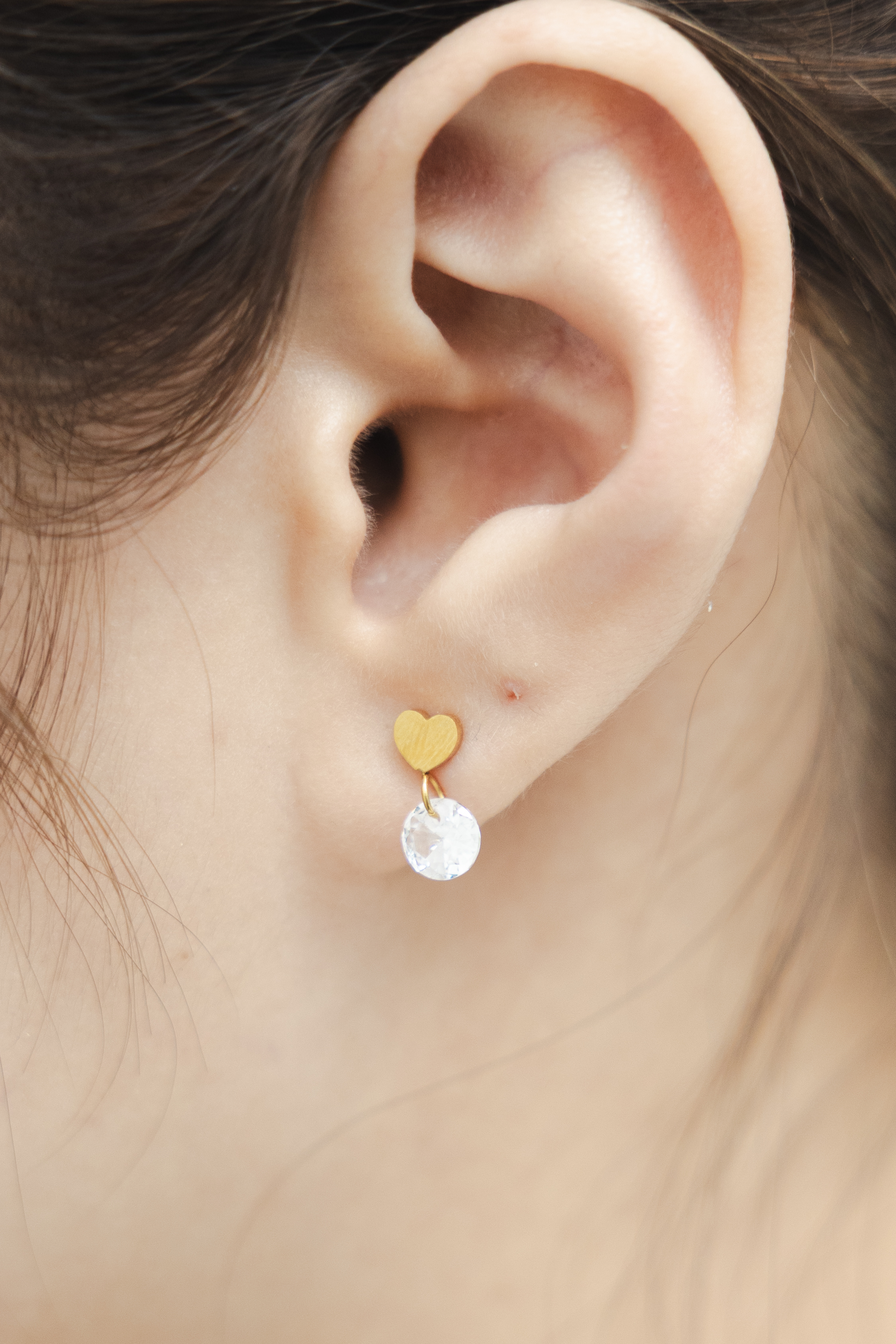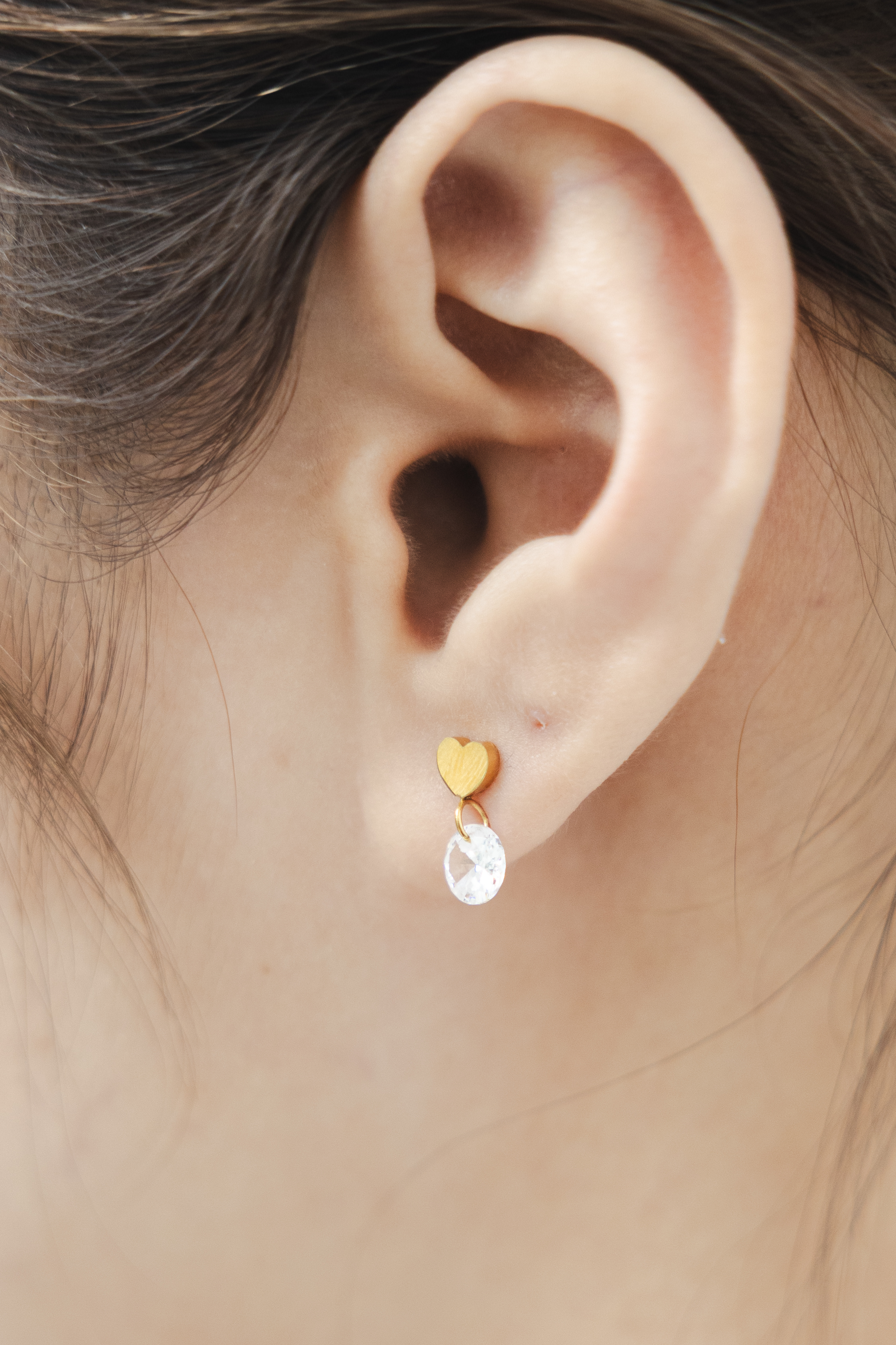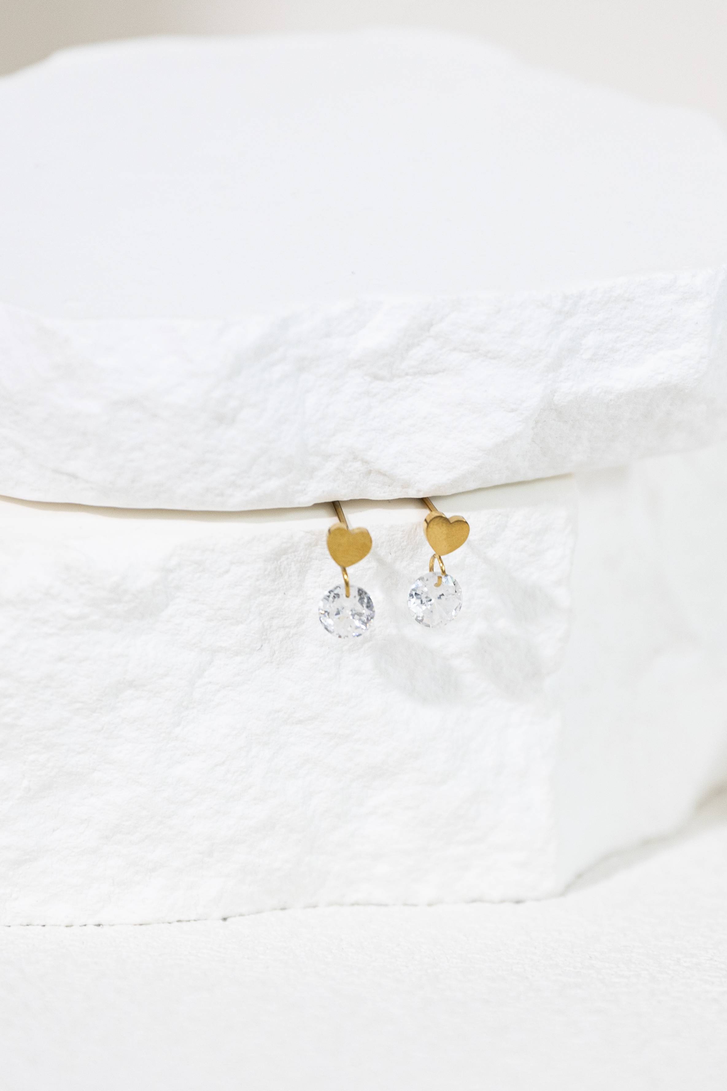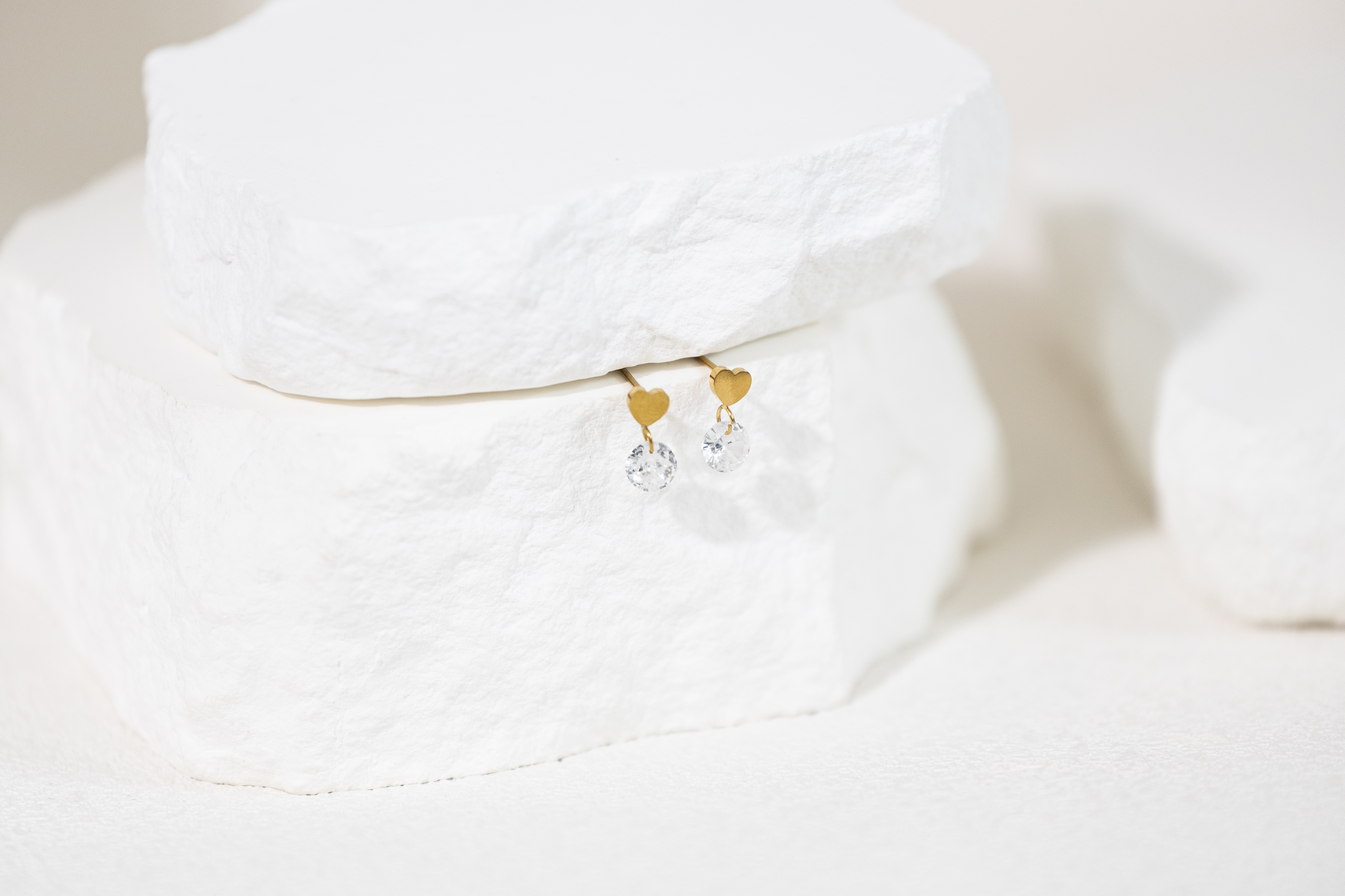 귀걸이 愛心墜鋯石垂墜耳環 / 金色