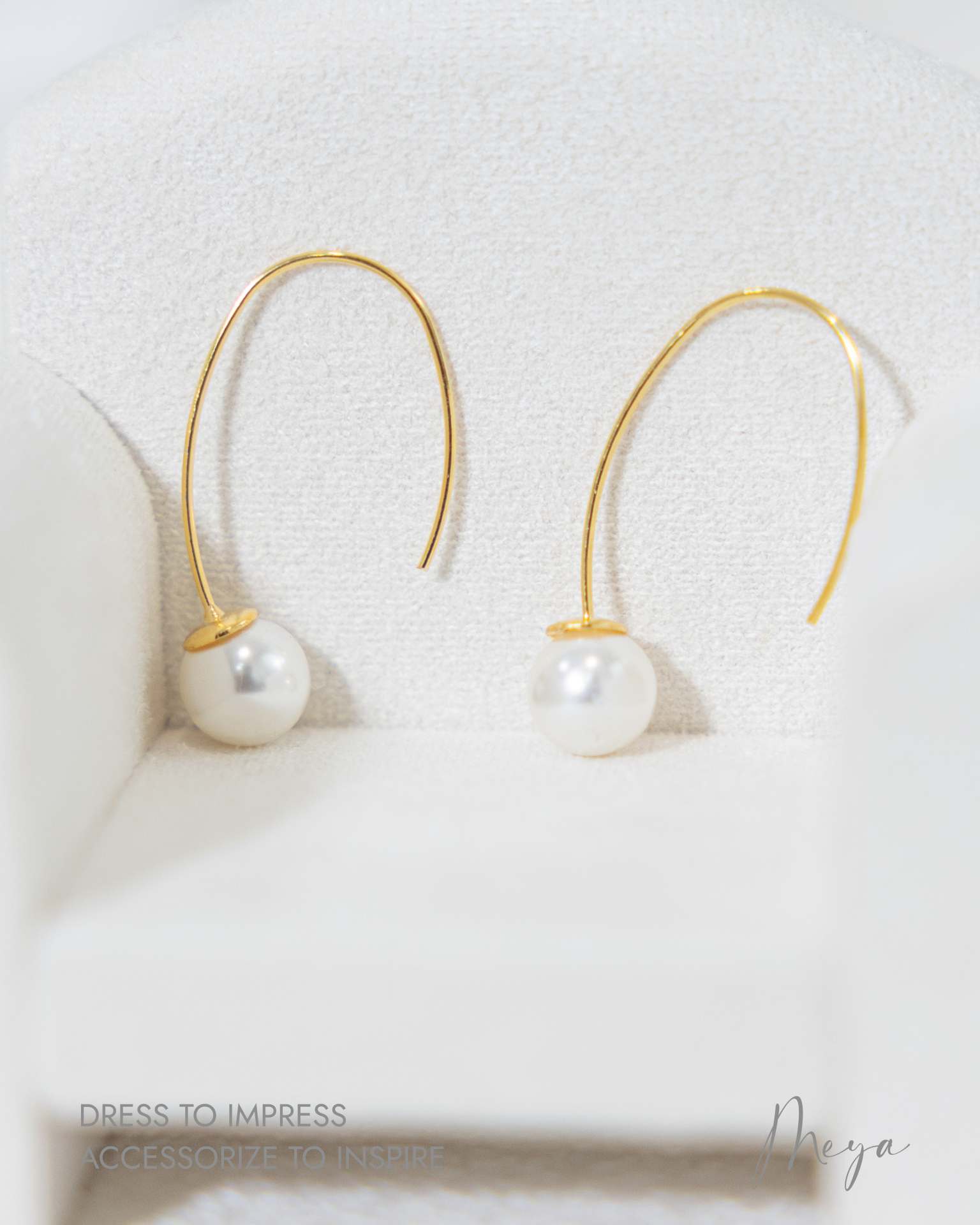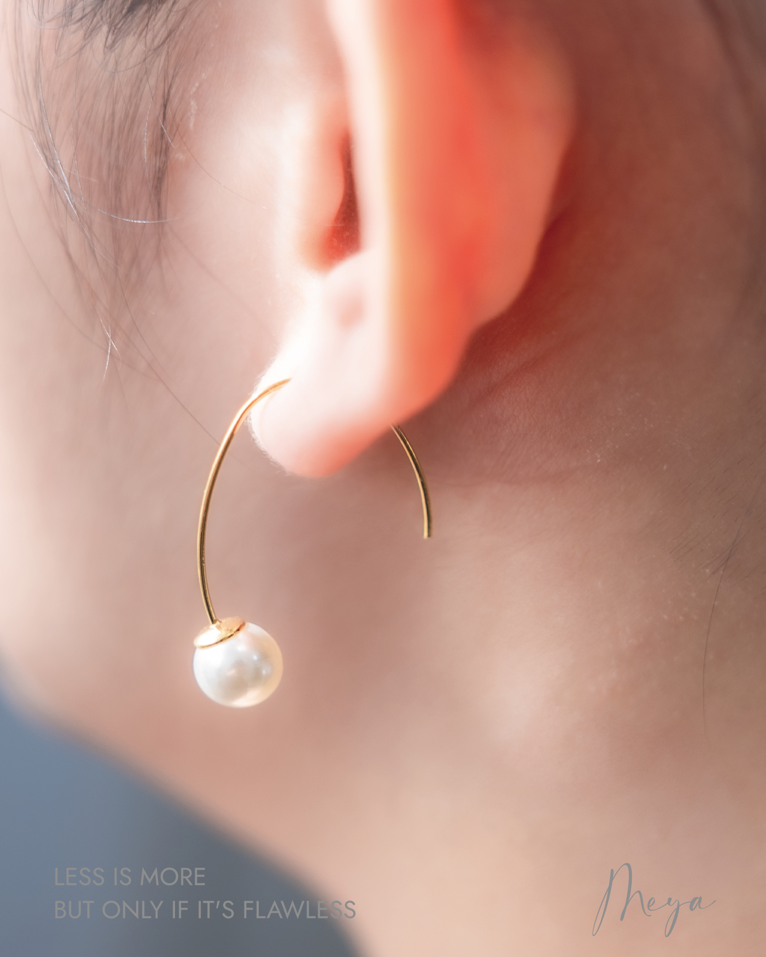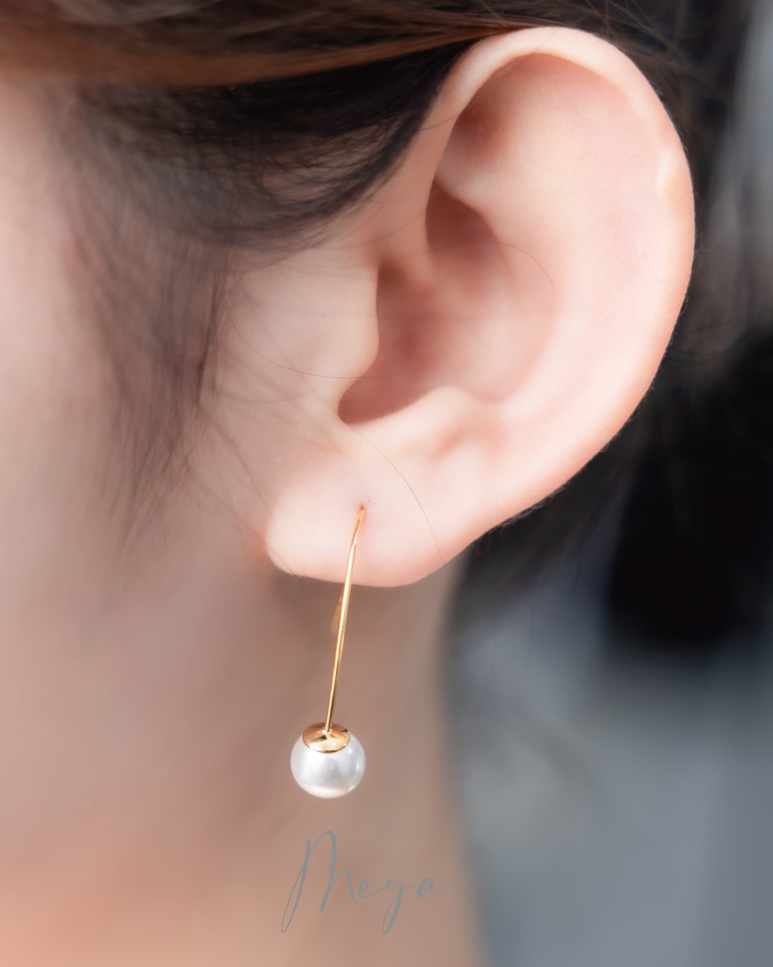 귀걸이 懸掛珍珠勾式耳環 / 金色