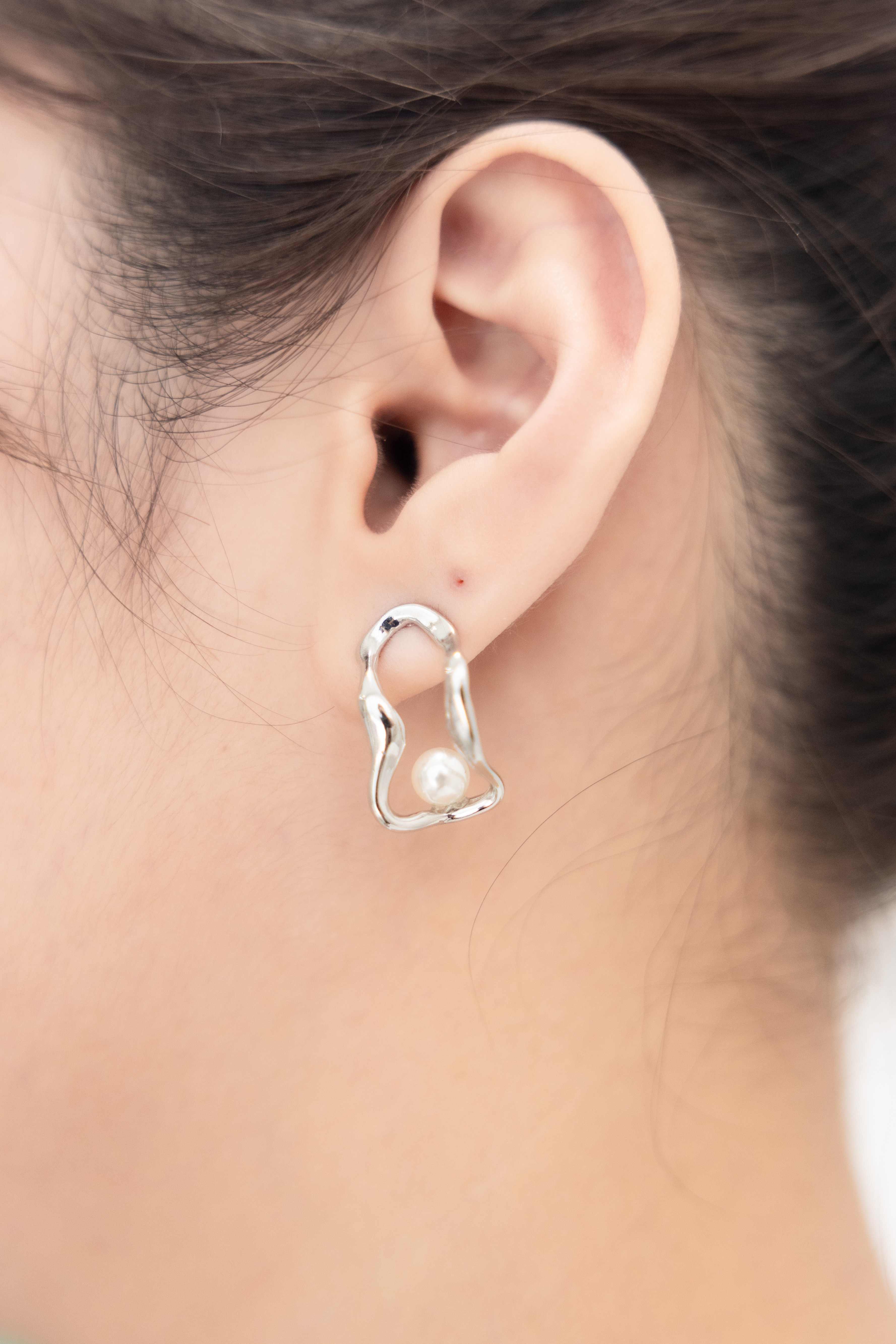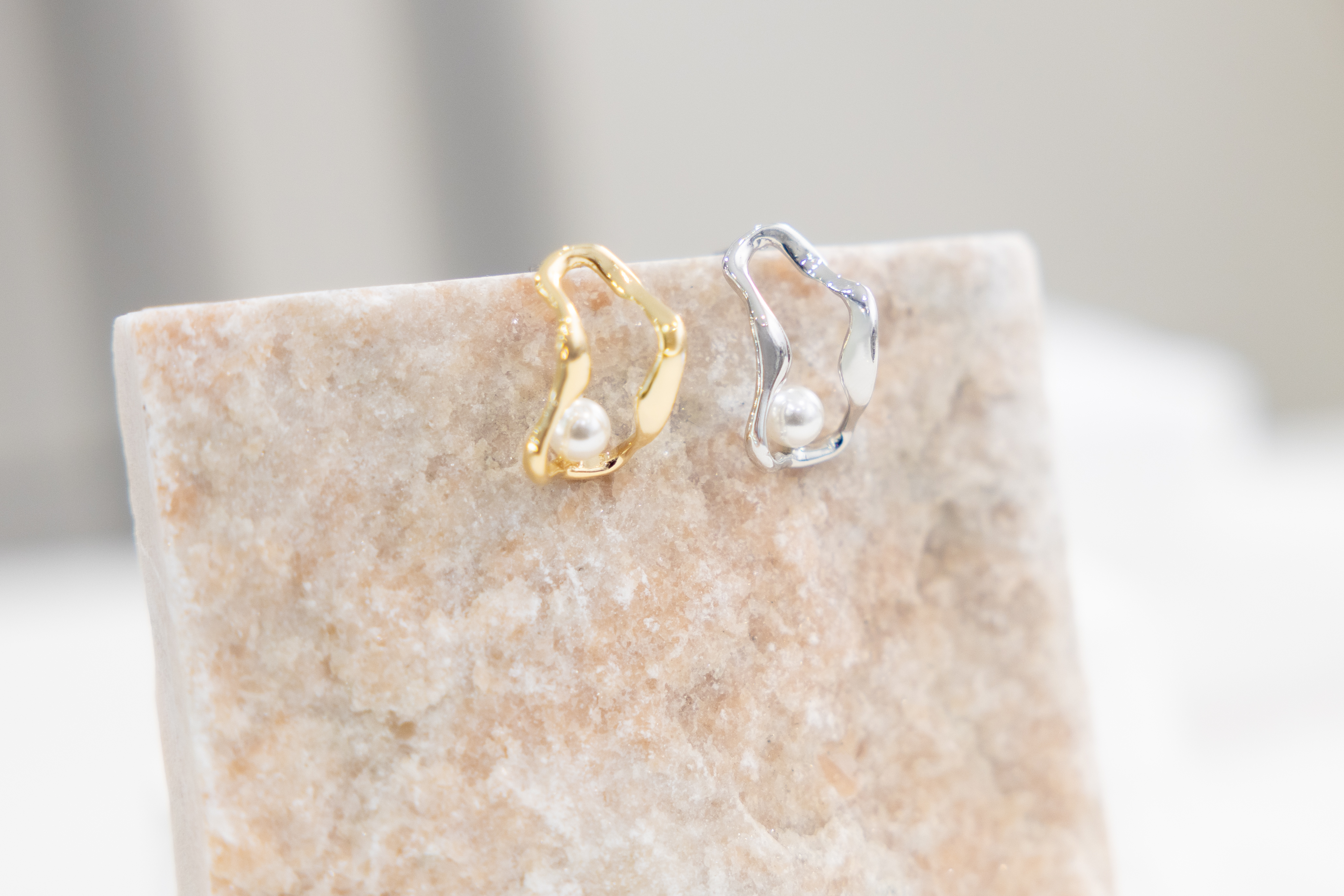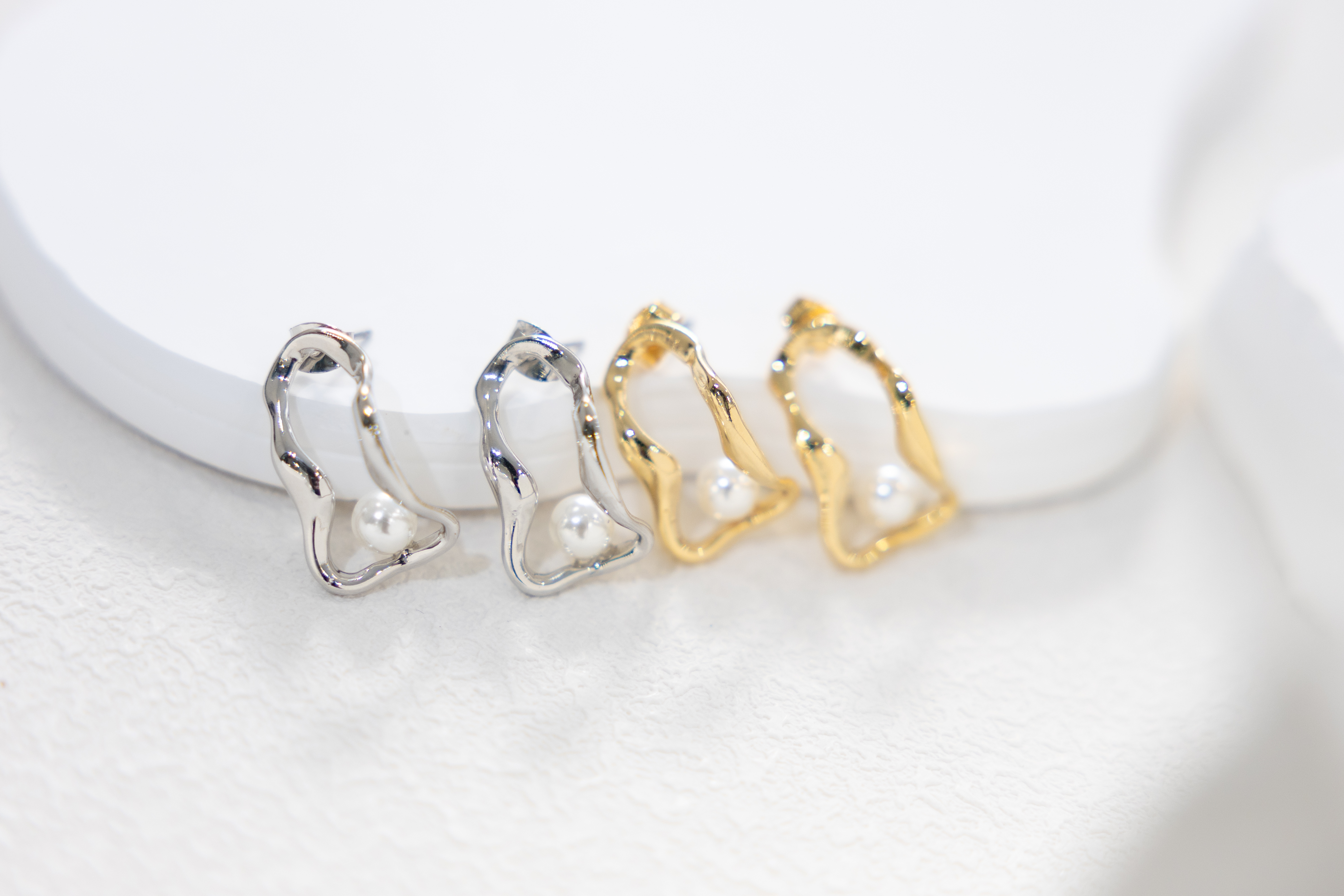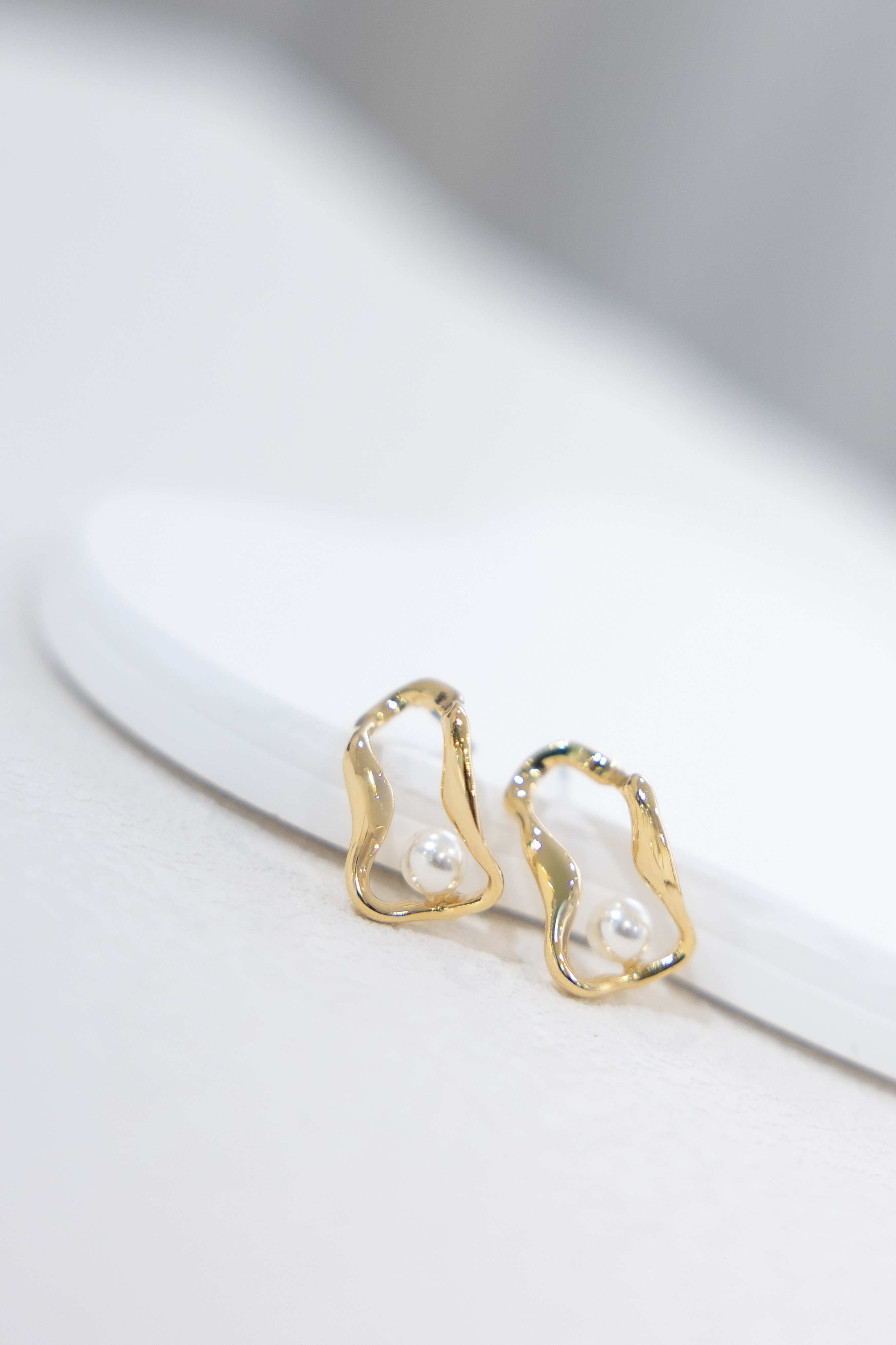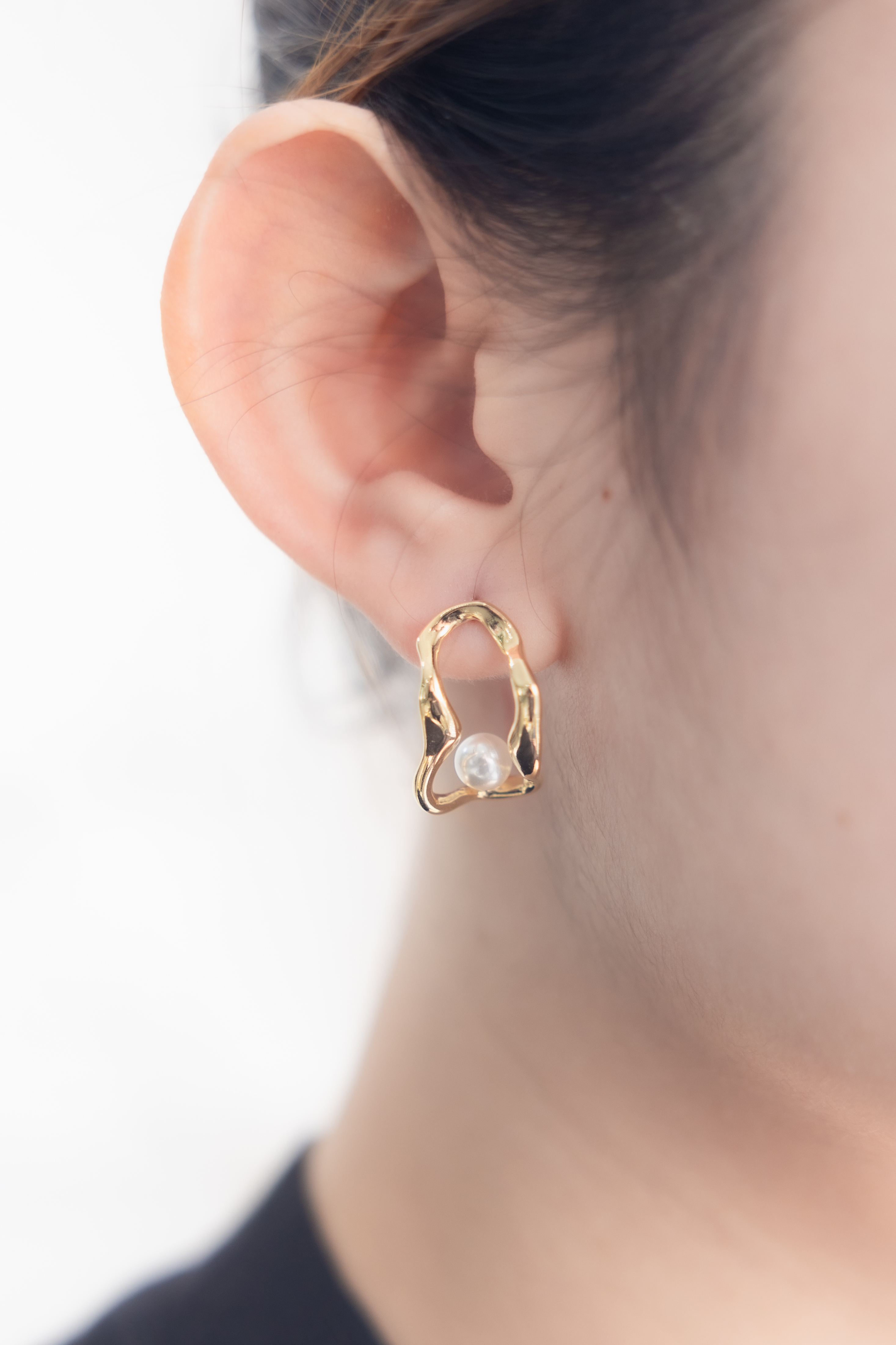 귀걸이 扭曲長空心橢圓珍珠耳環 / 金色