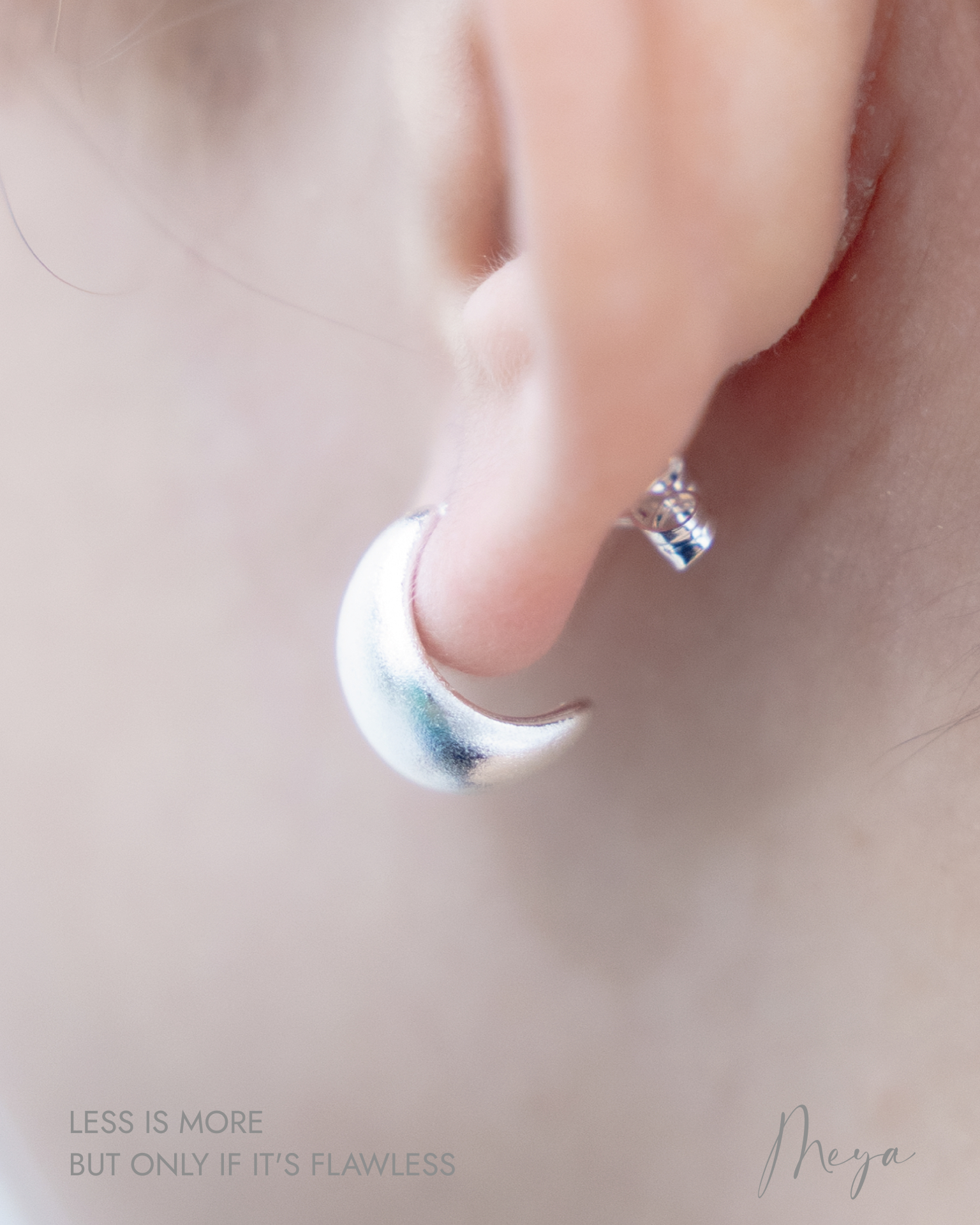 귀걸이 立體上弦月耳環 / 銀色