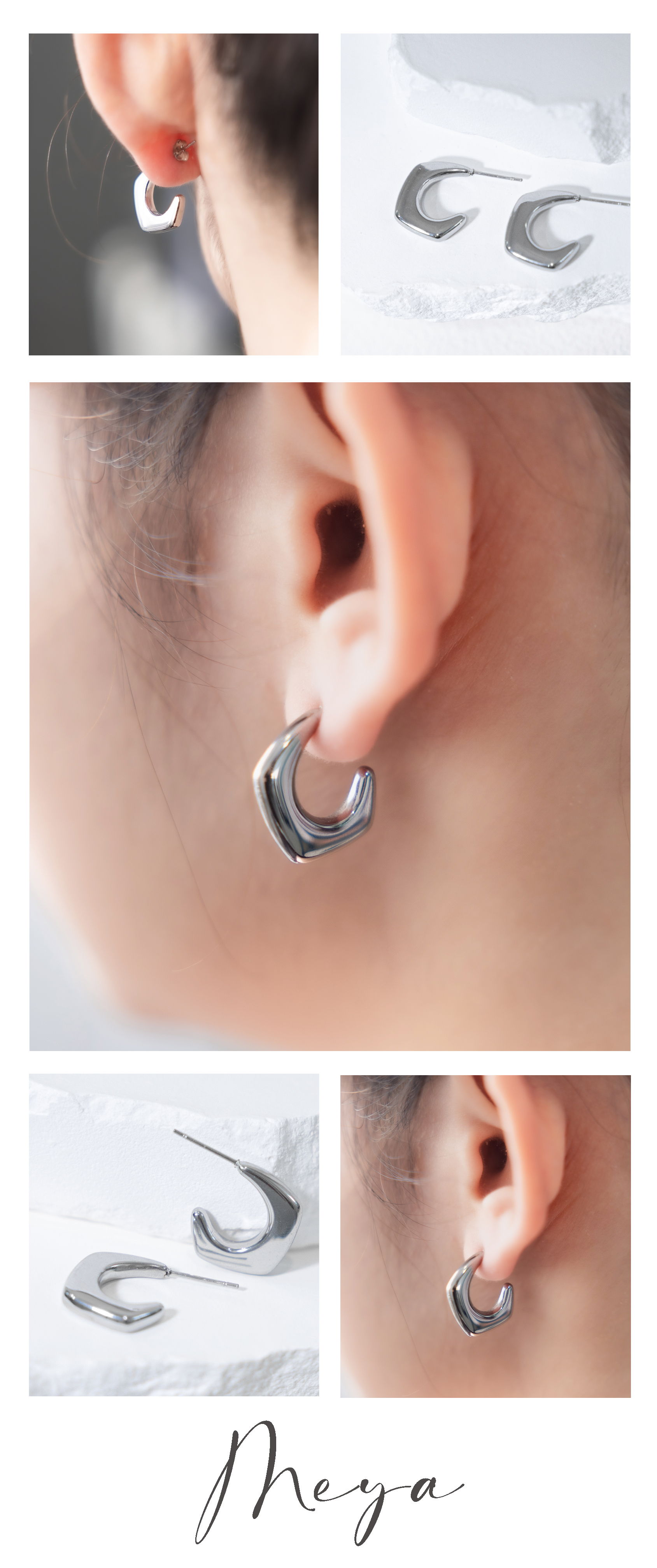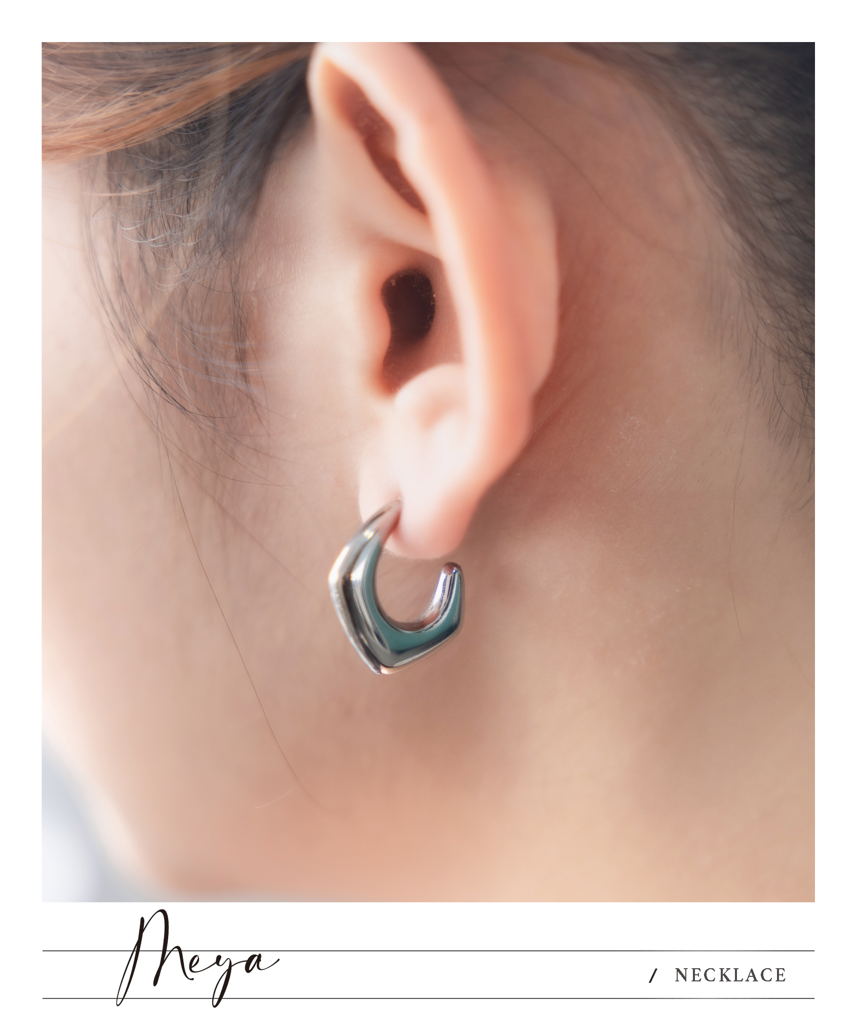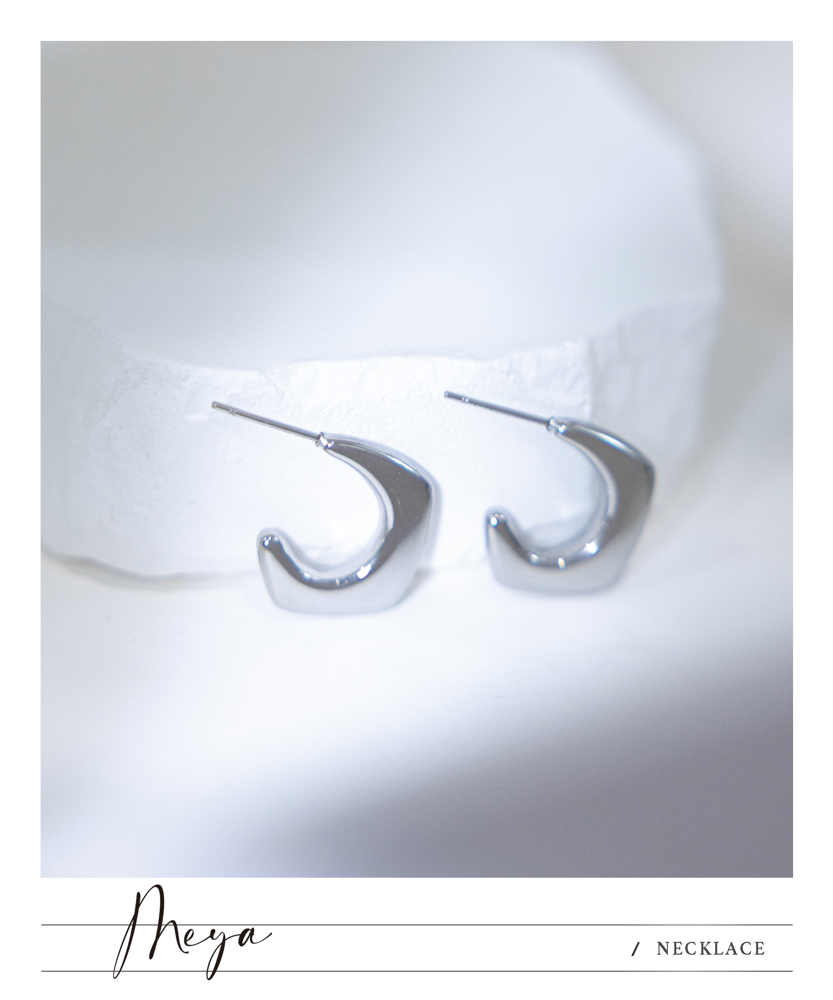 귀걸이 粗扁不規則半圓弧耳環 / 銀色