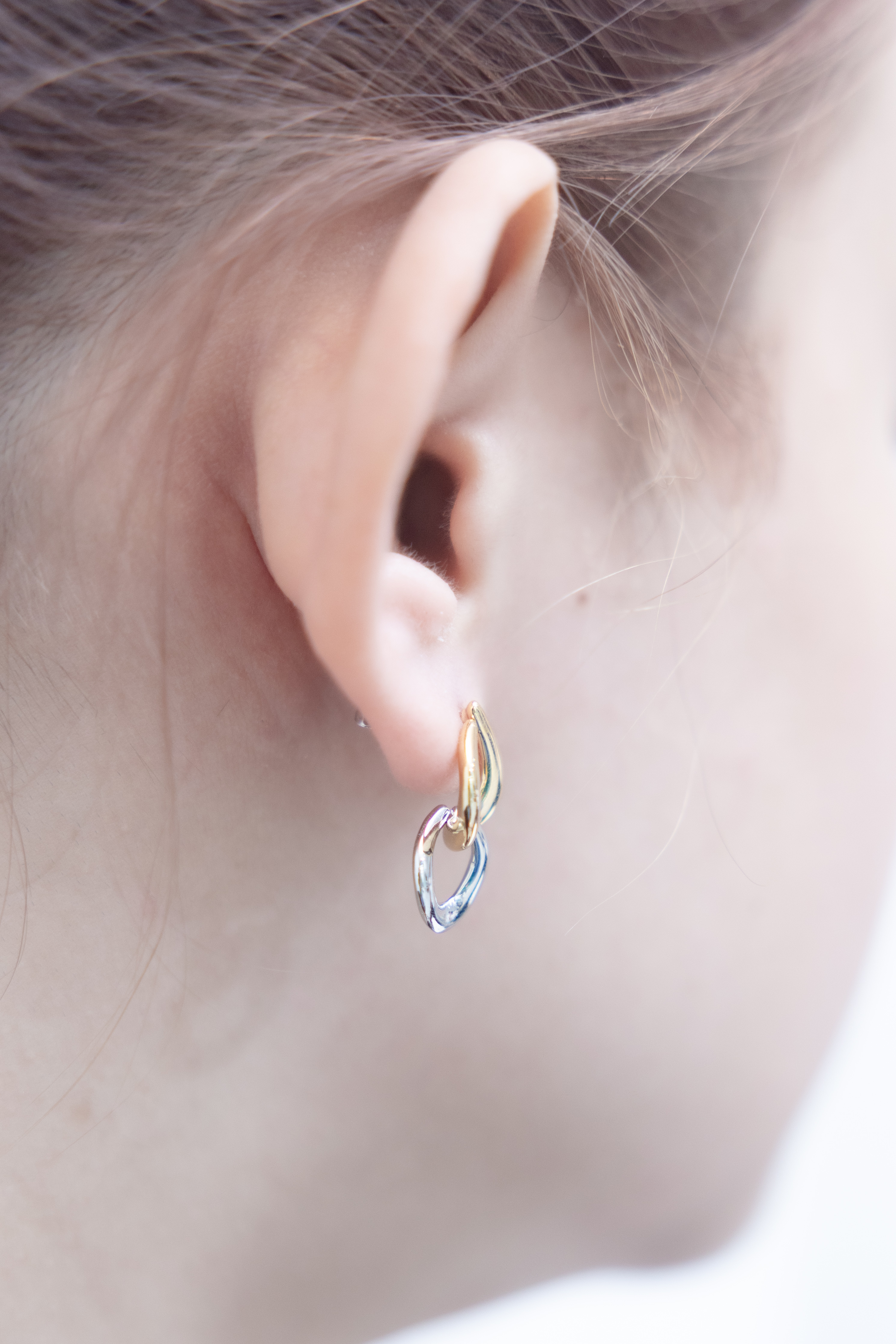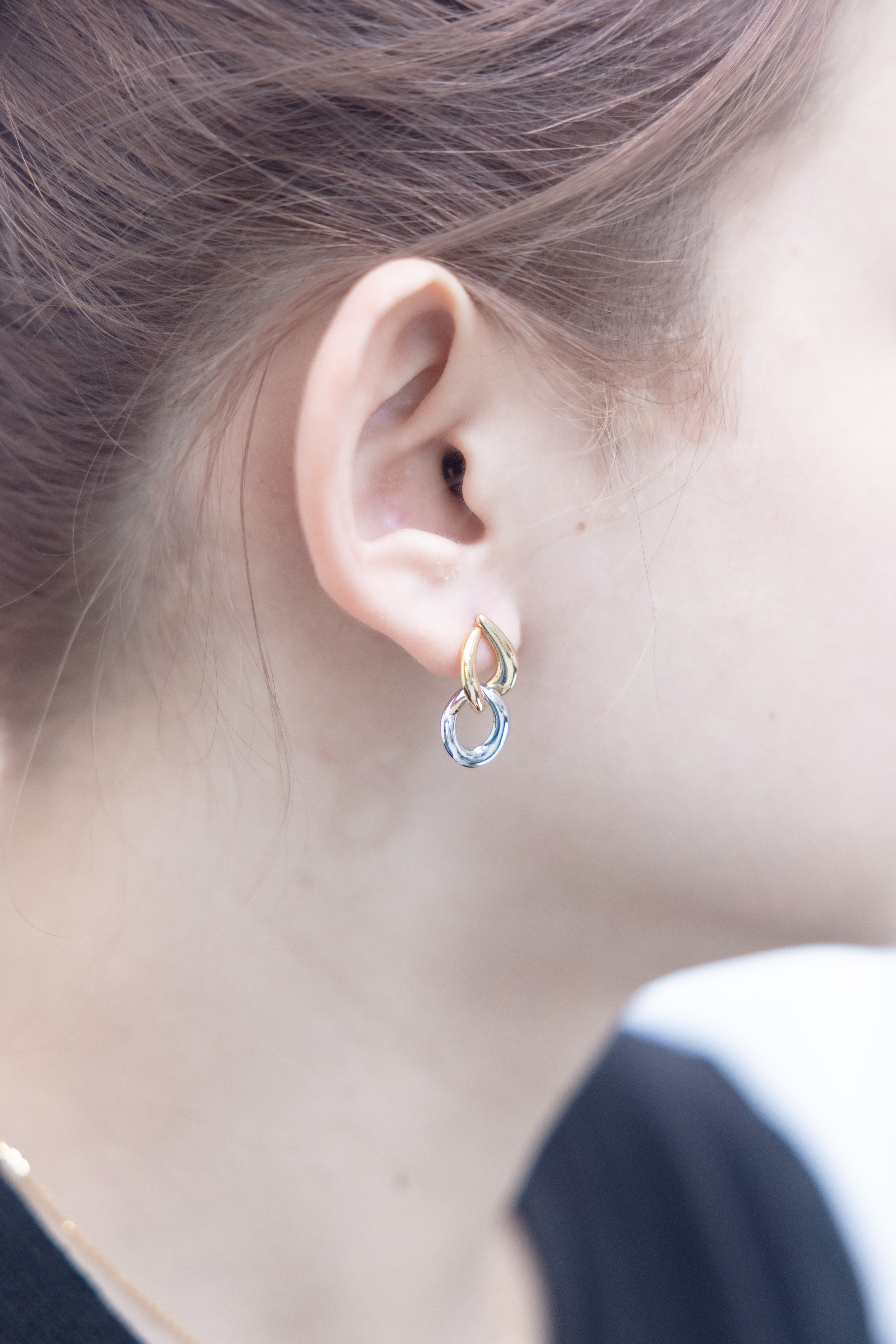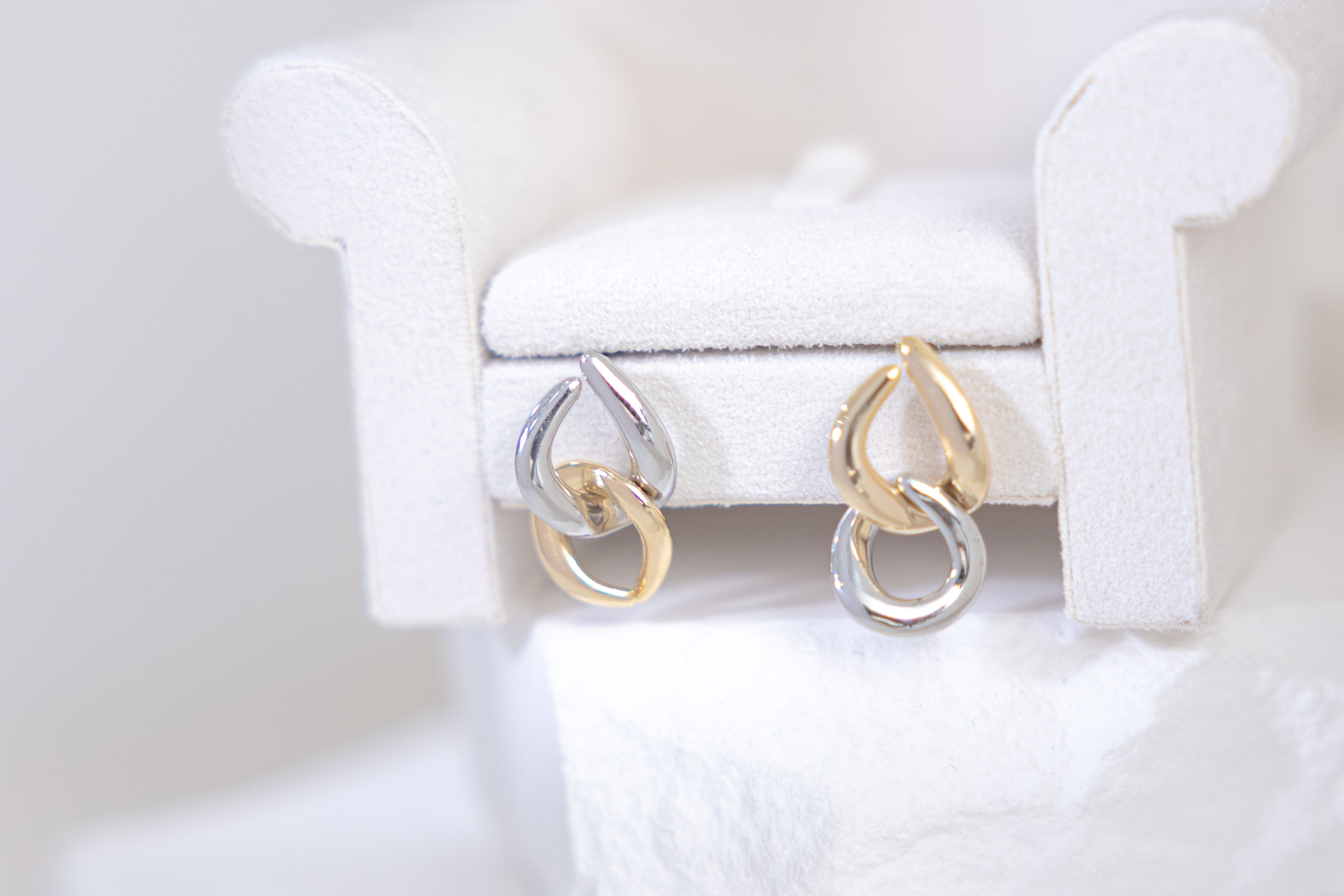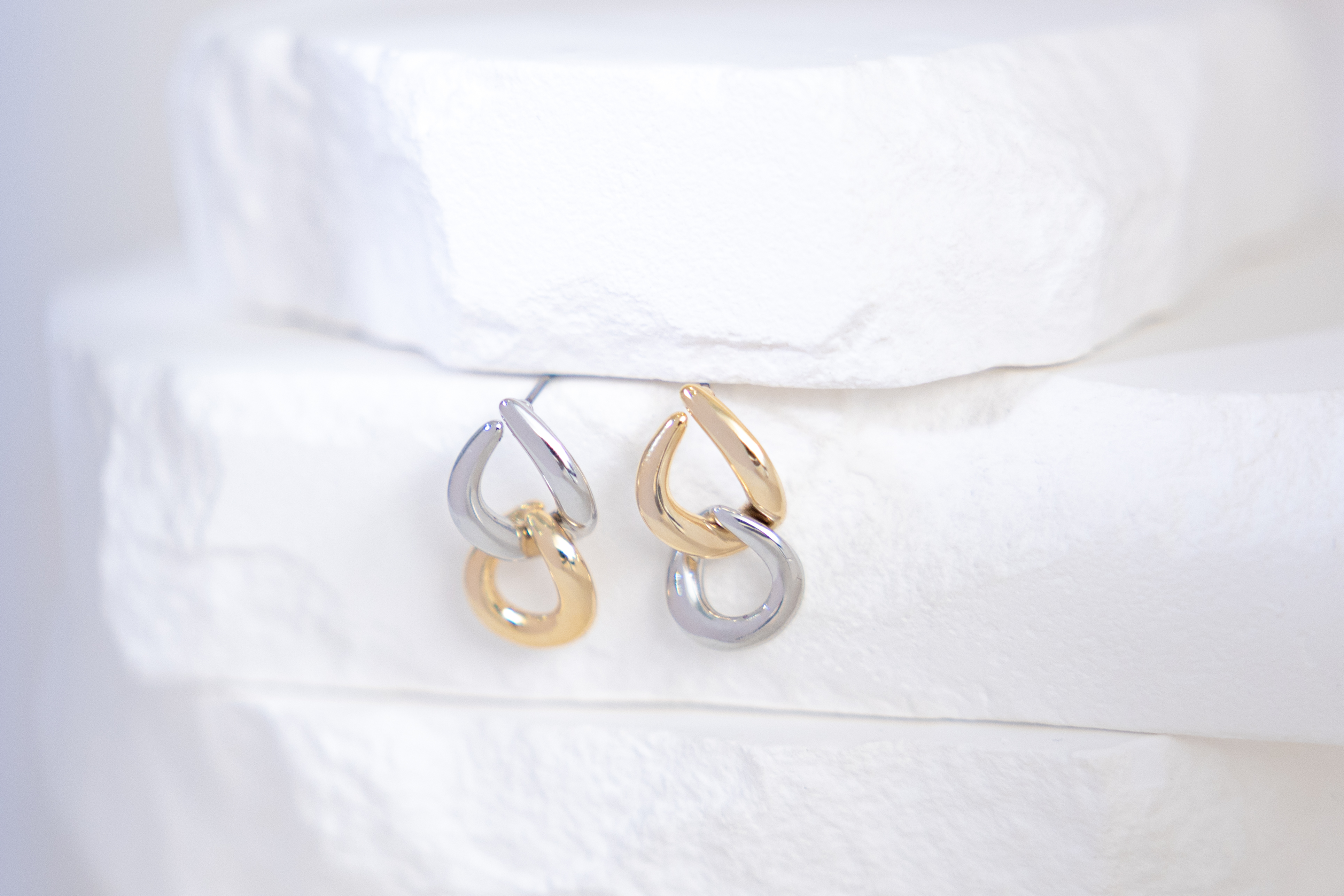 귀걸이 金銀雙色扁寬空心小水滴耳環