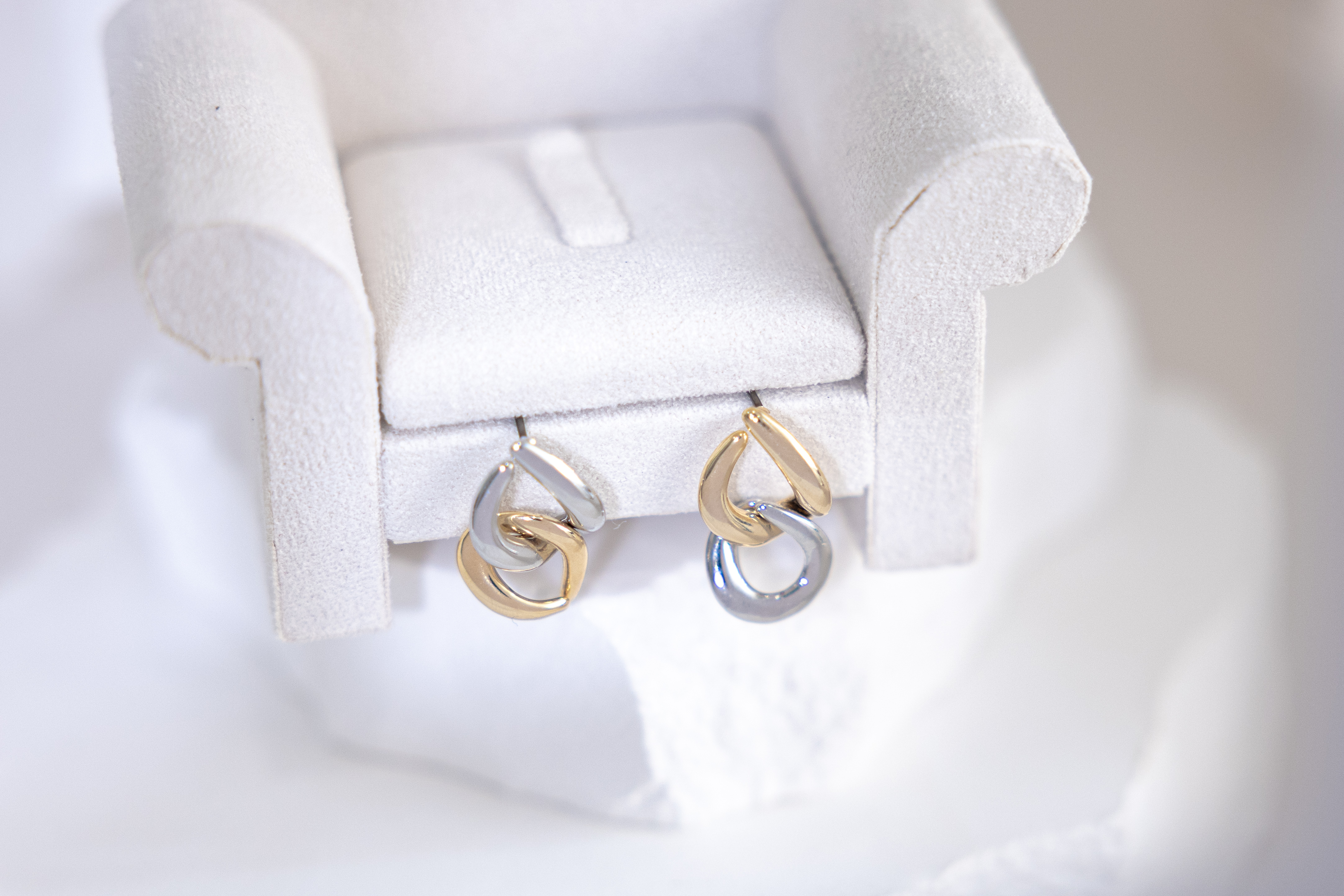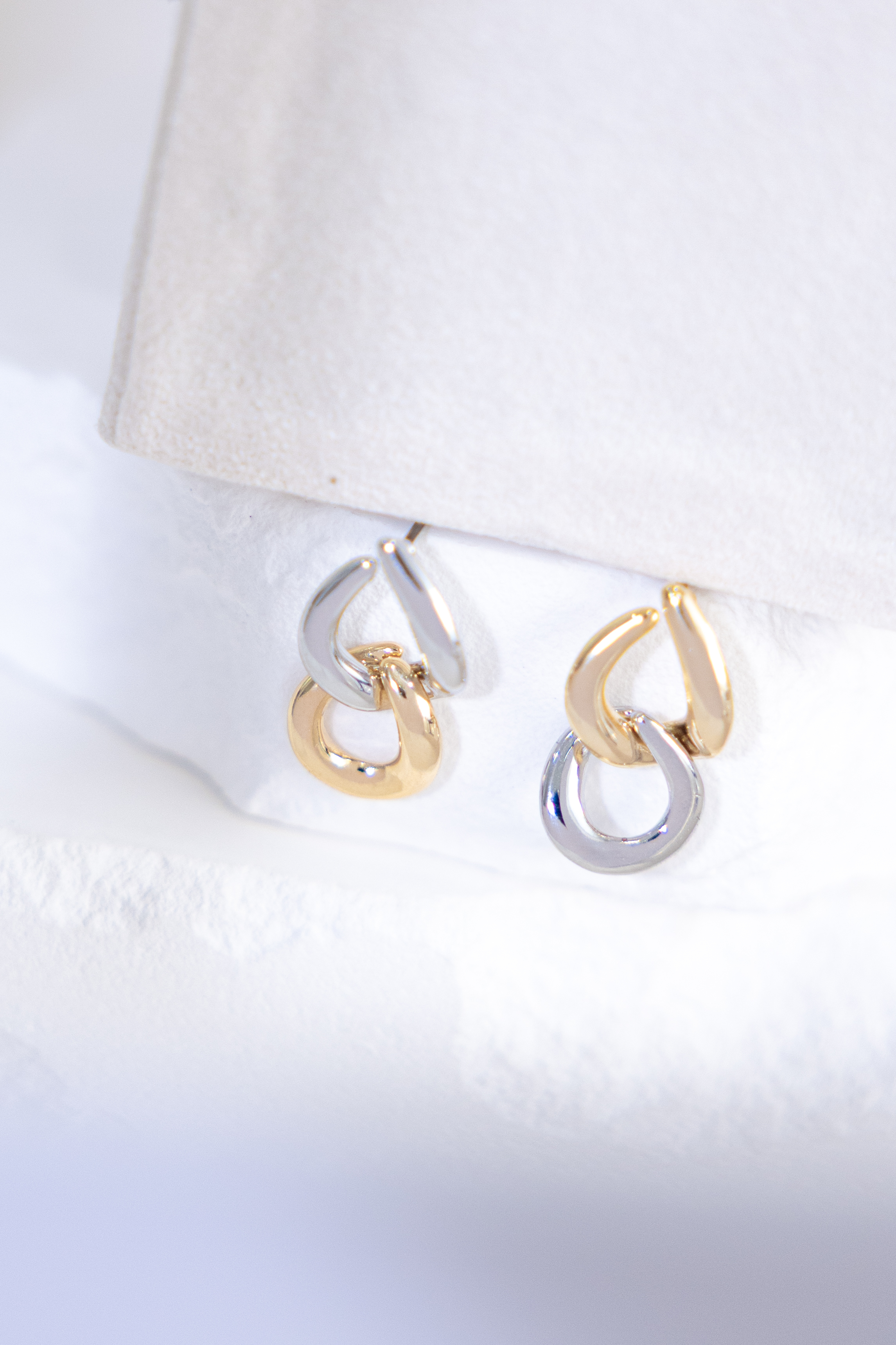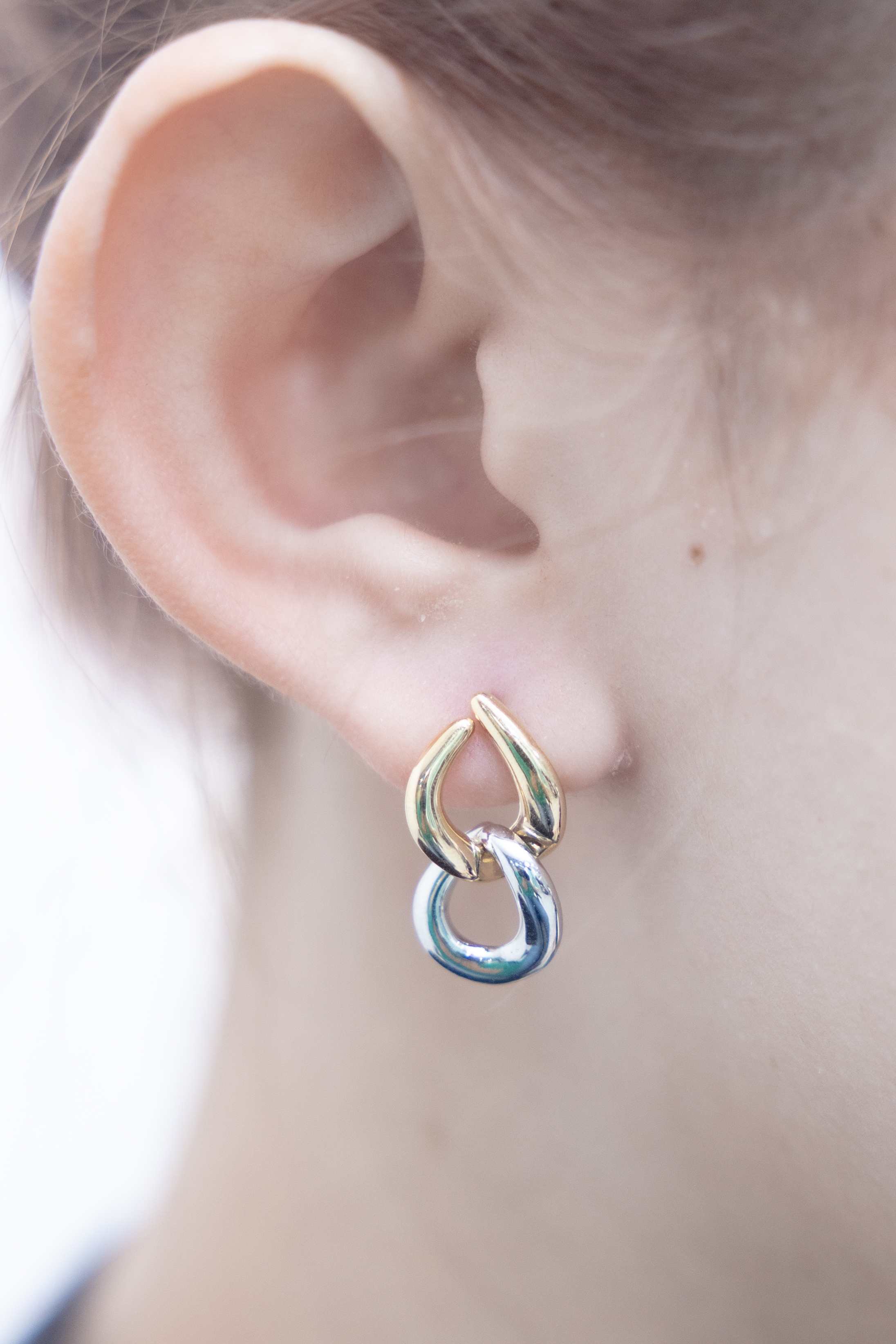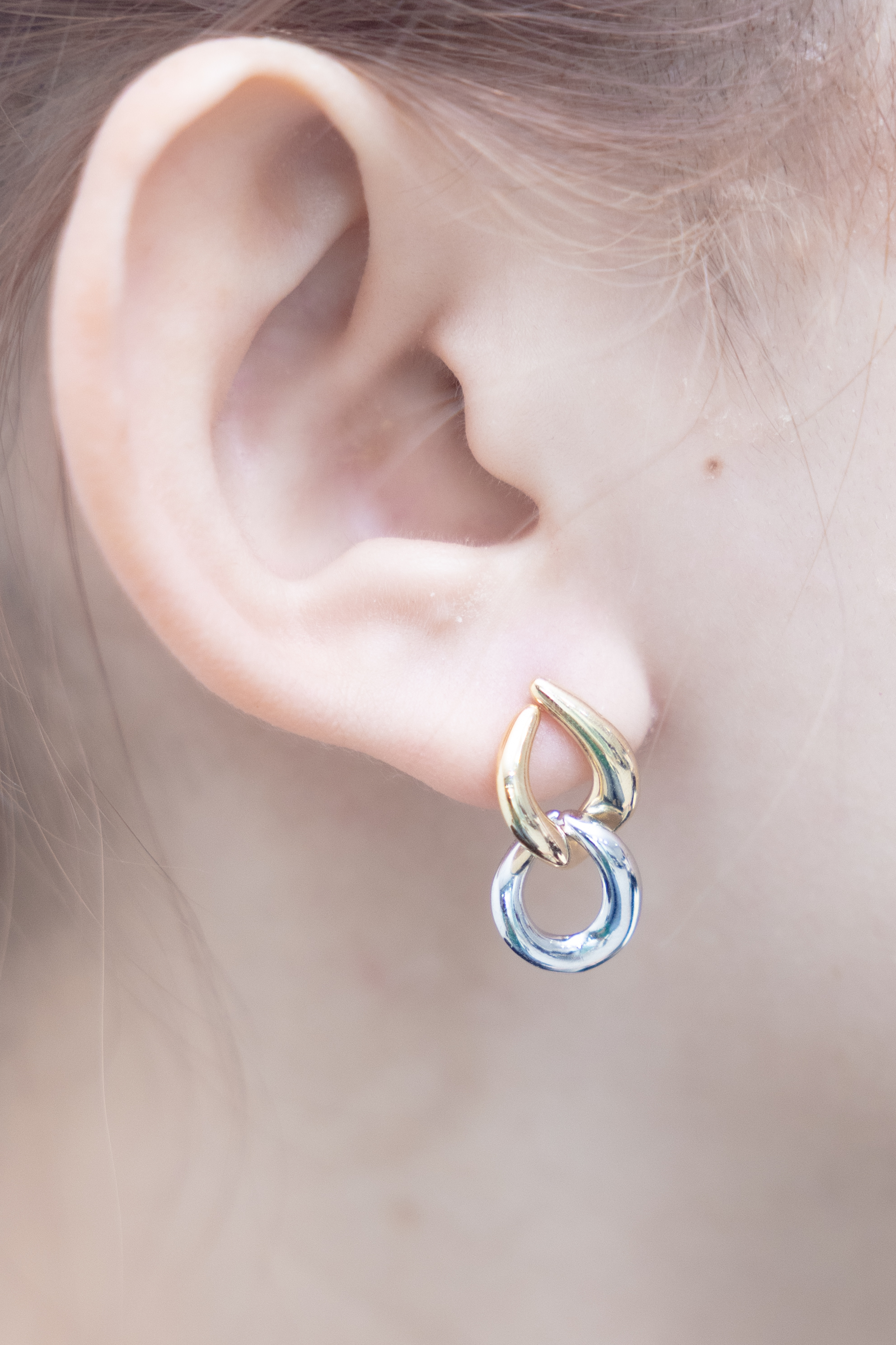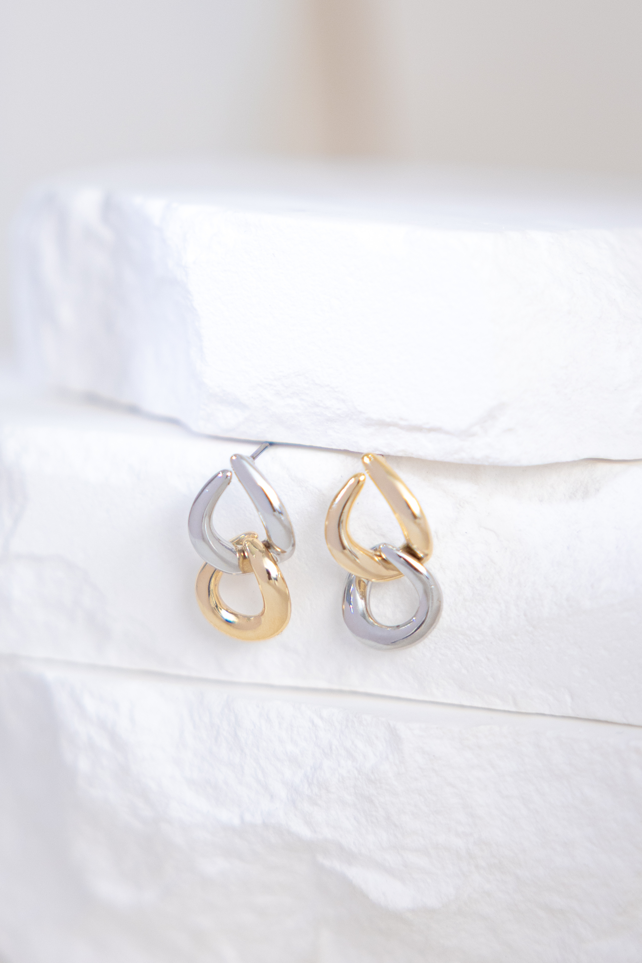 귀걸이 金銀雙色扁寬空心小水滴耳環