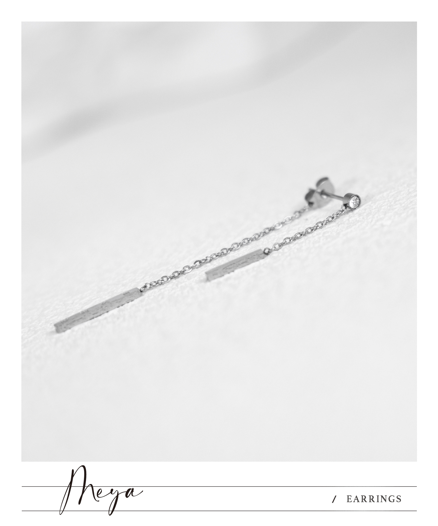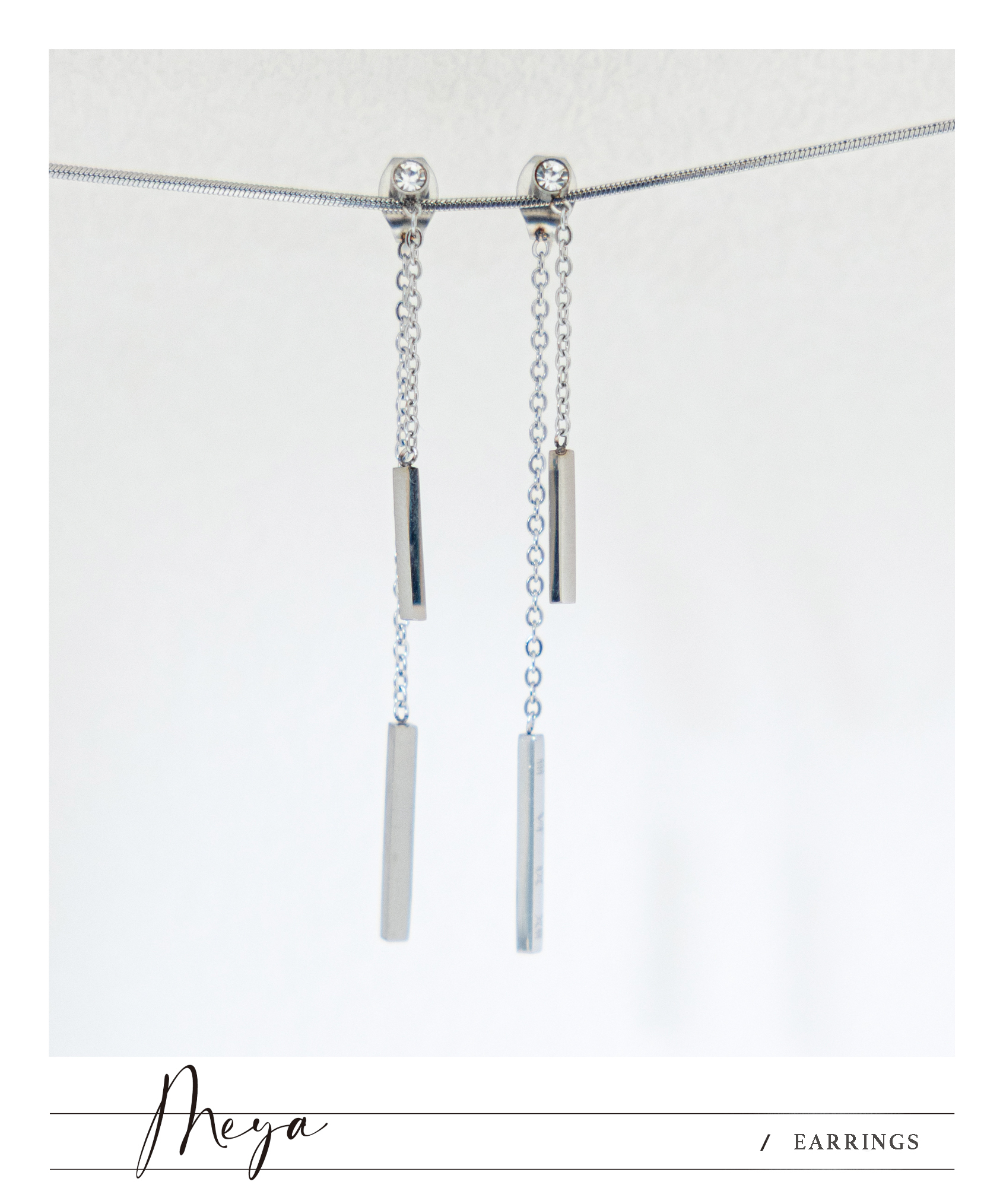귀걸이 長柱體小鋯石垂墜式耳環 / 銀色