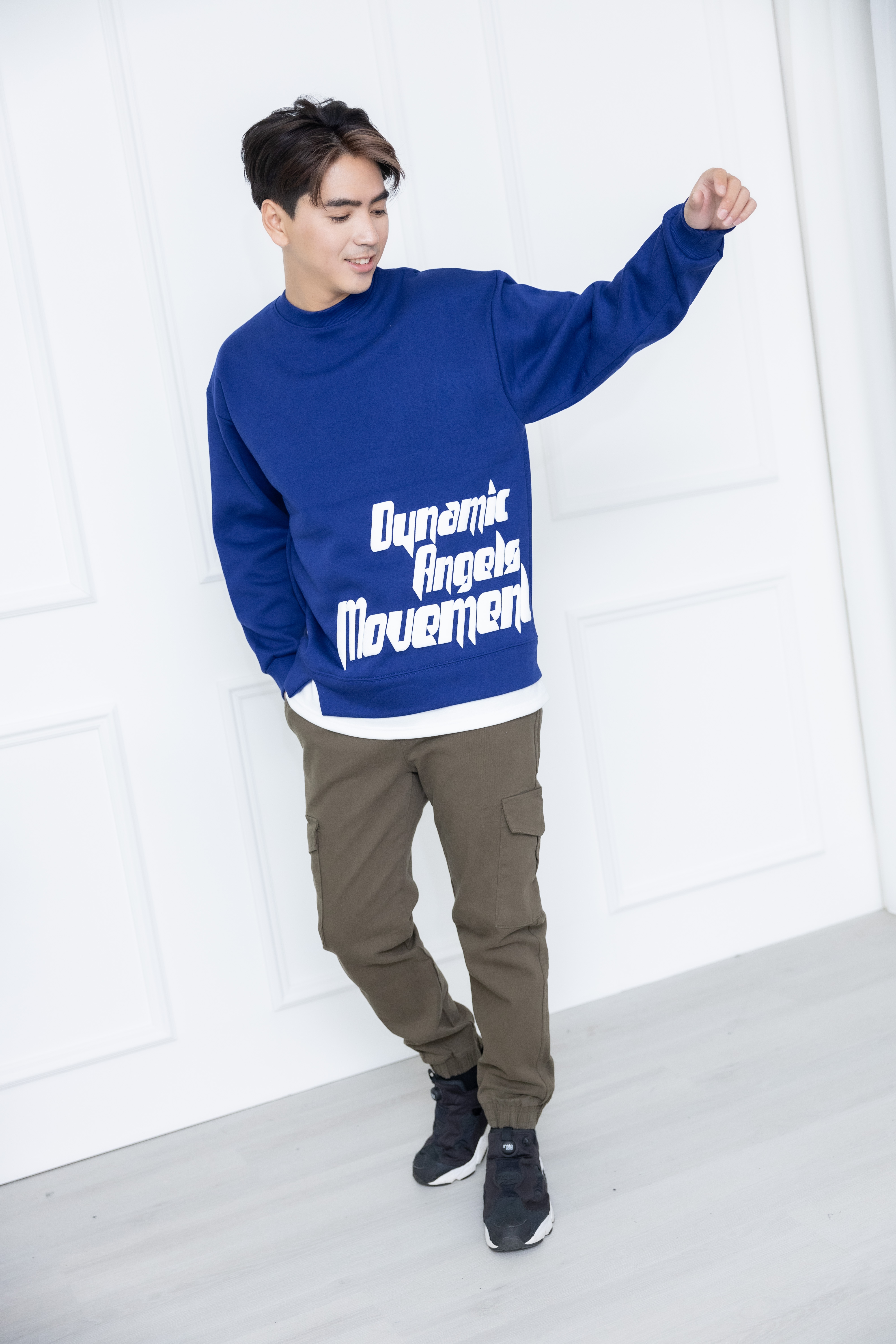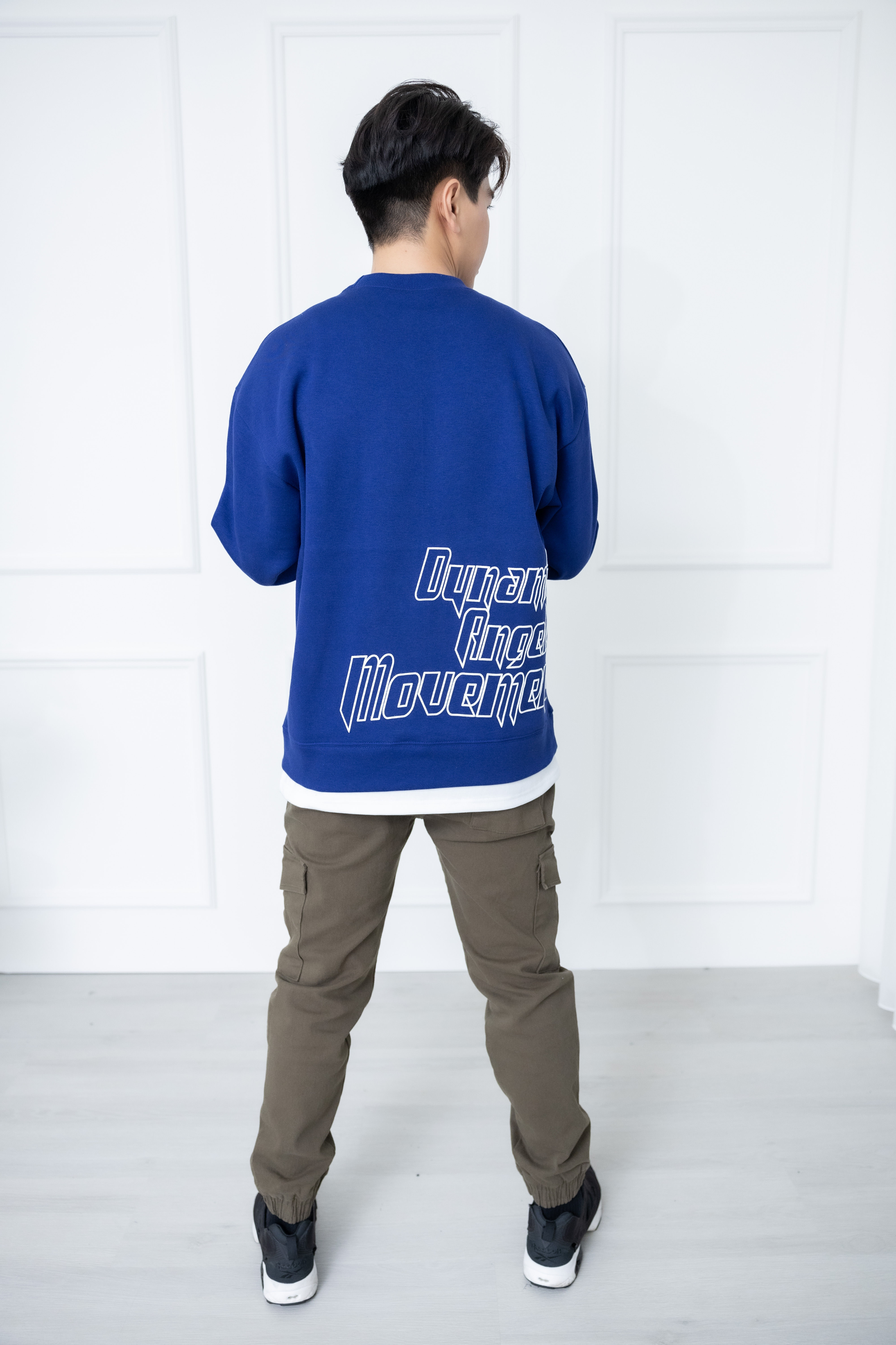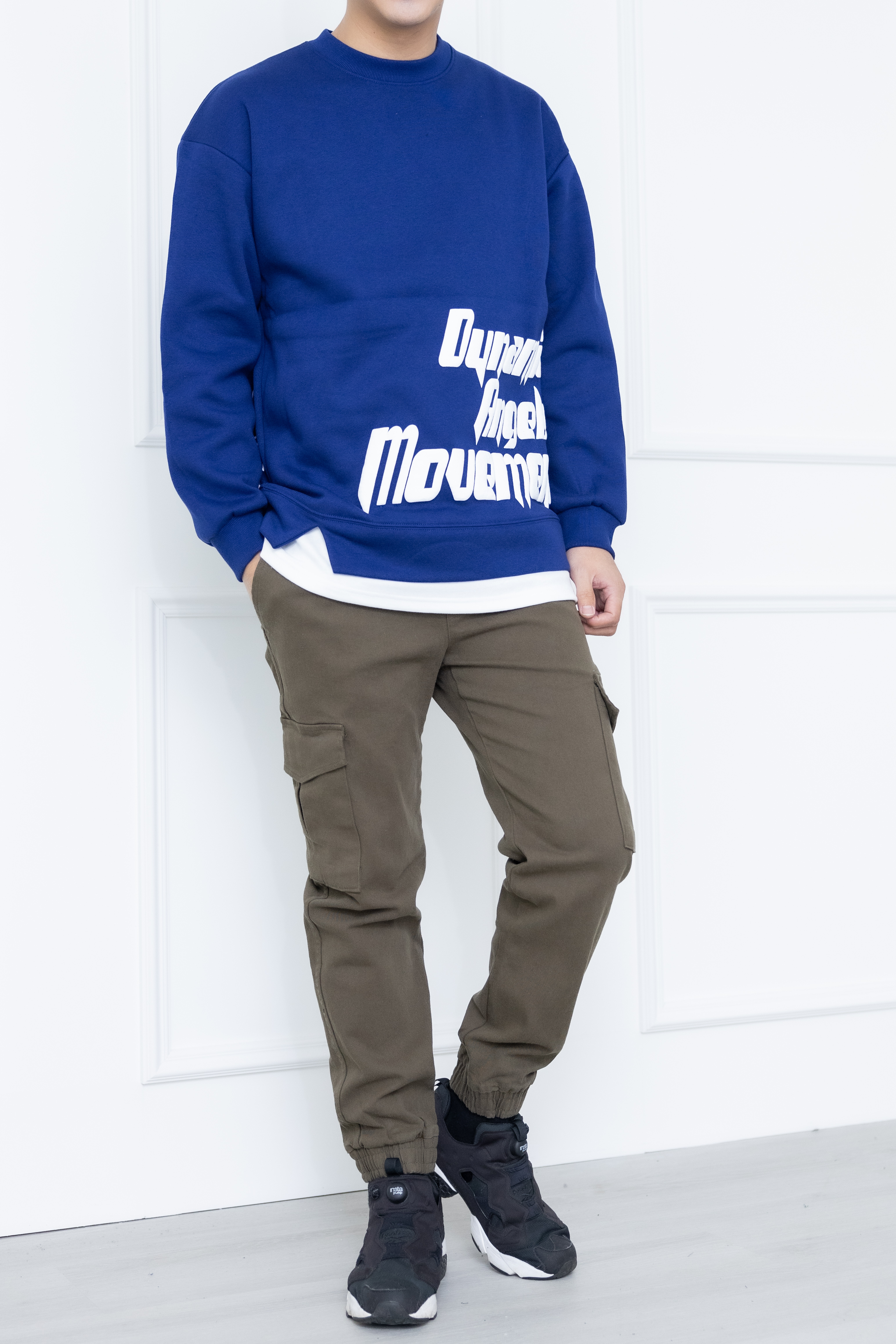긴팔 下擺拼接內刷毛長袖上衣/藍色