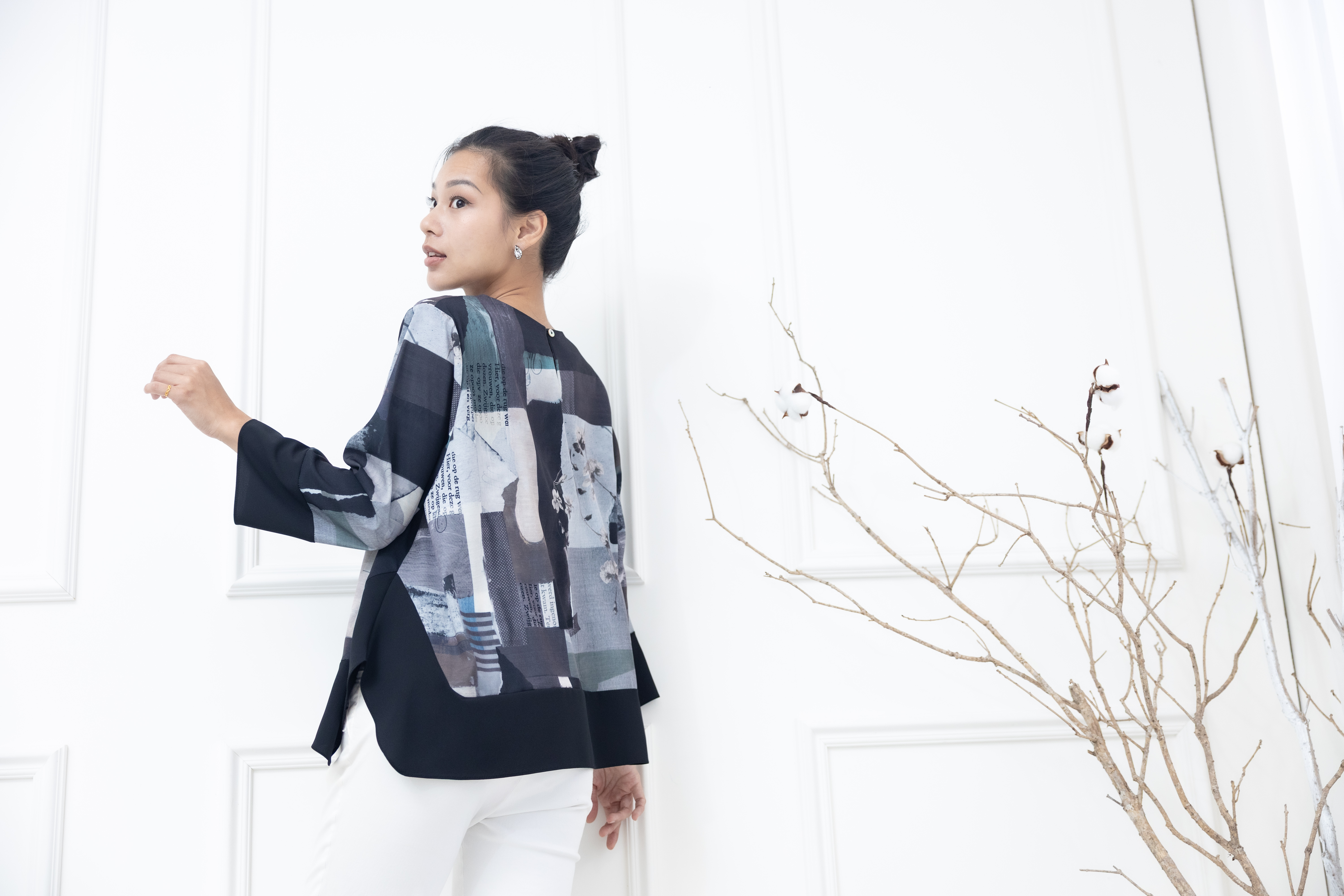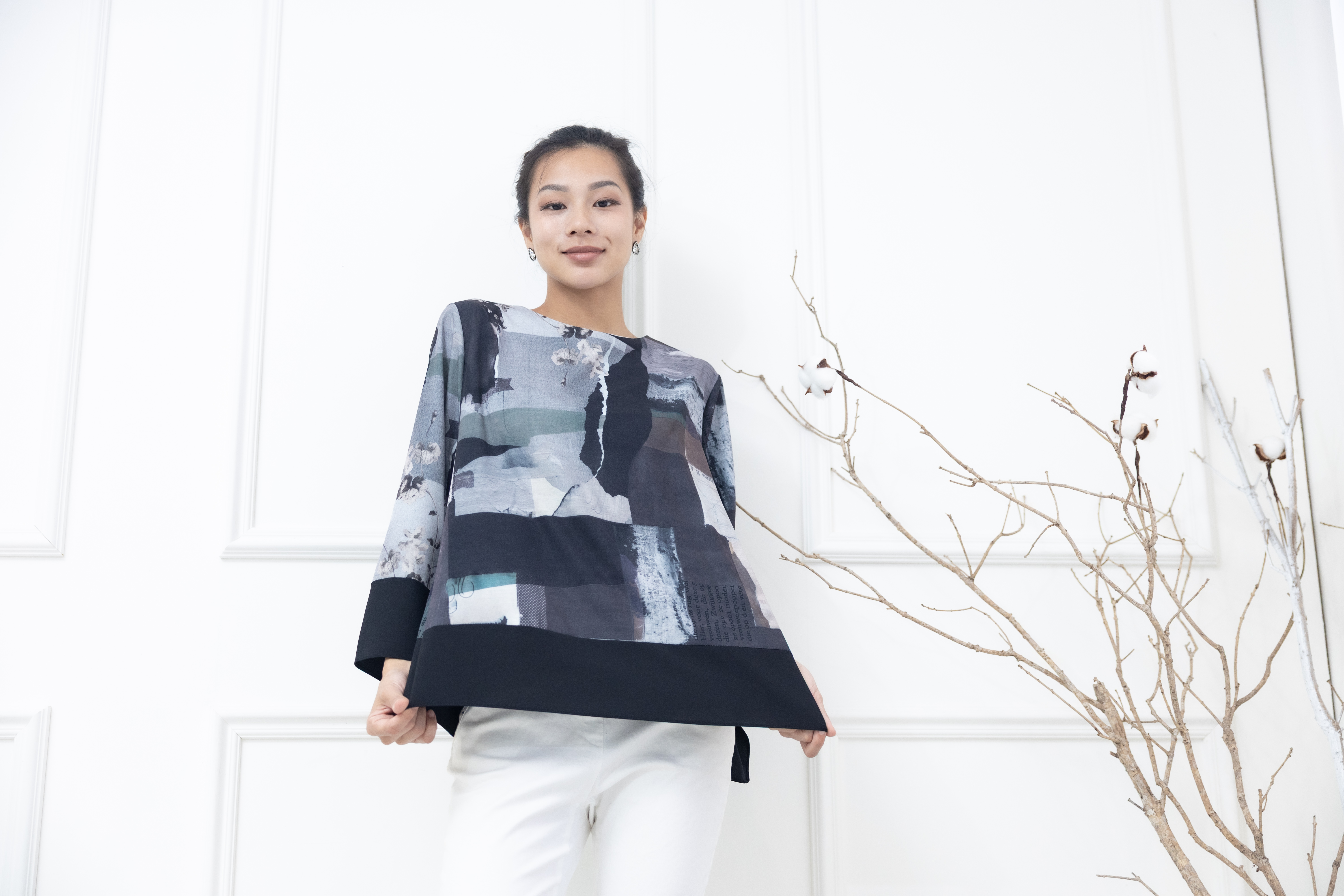 긴팔 手帳素材袖口.下擺拼黑色長袖上衣 / 黑色