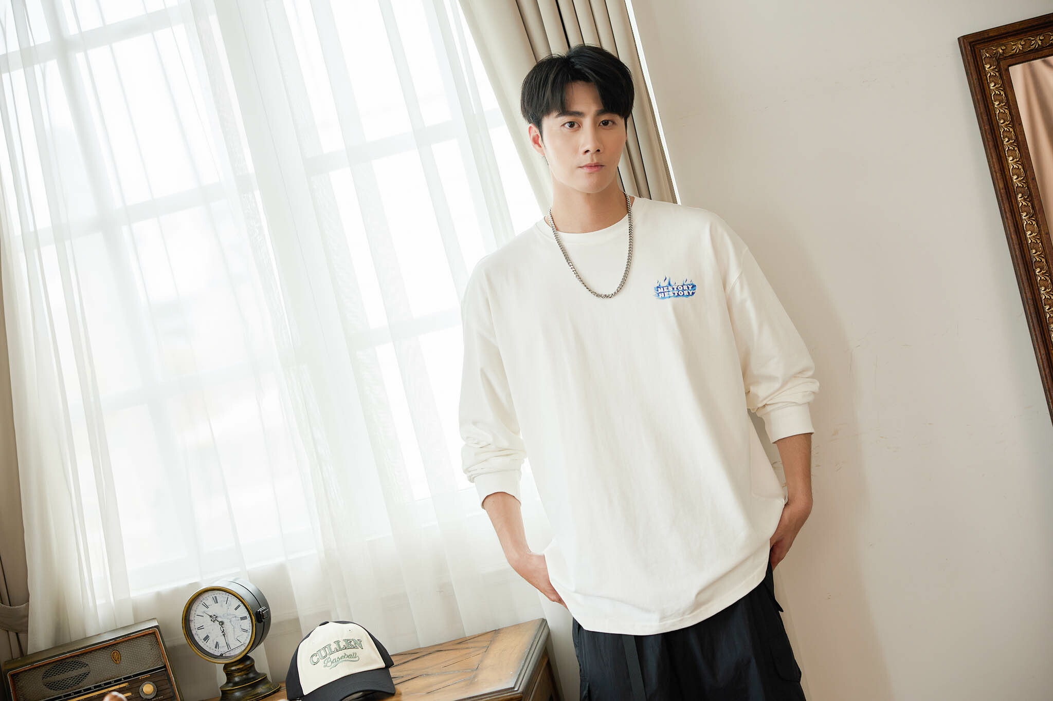 긴팔 火焰長袖上衣/白色