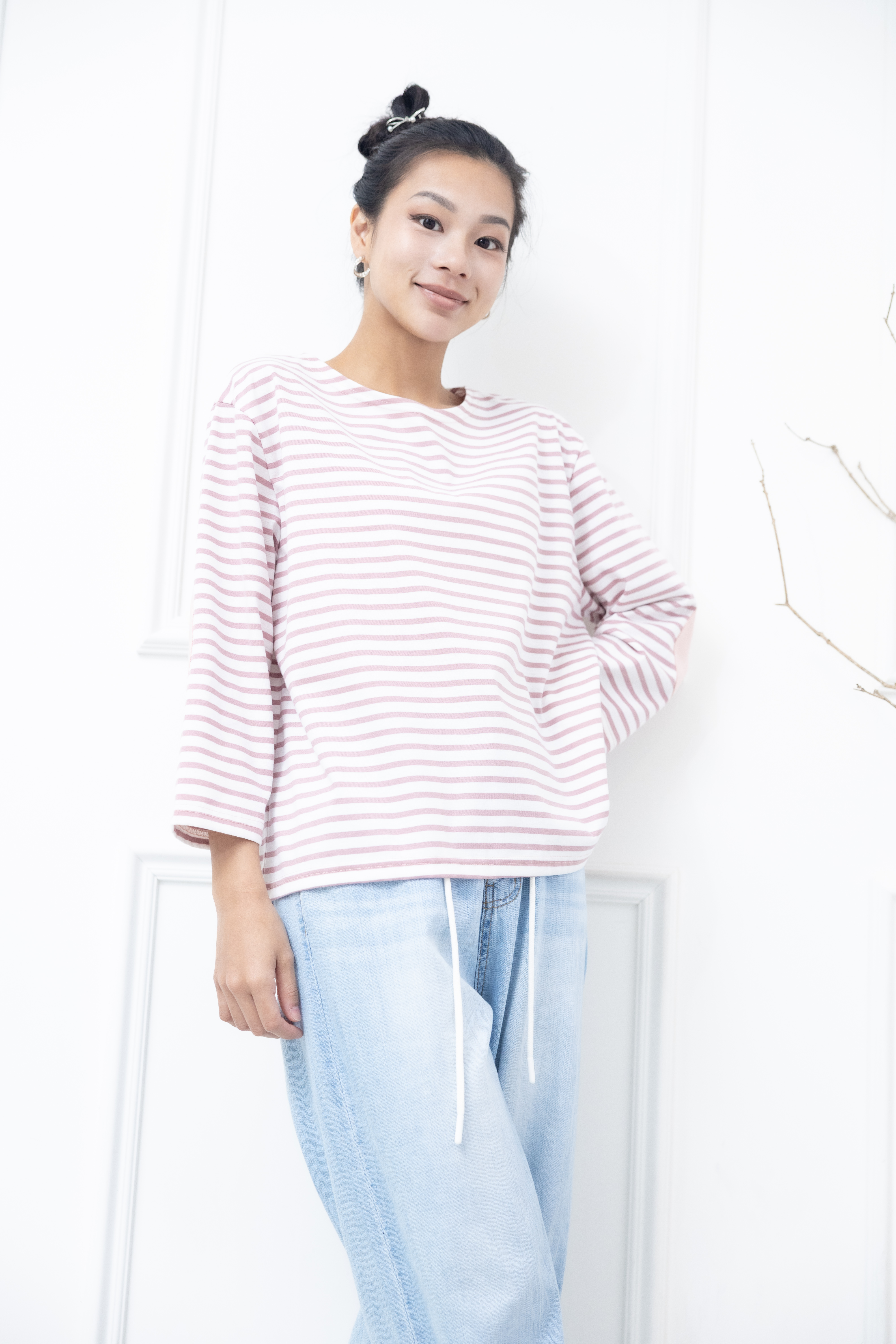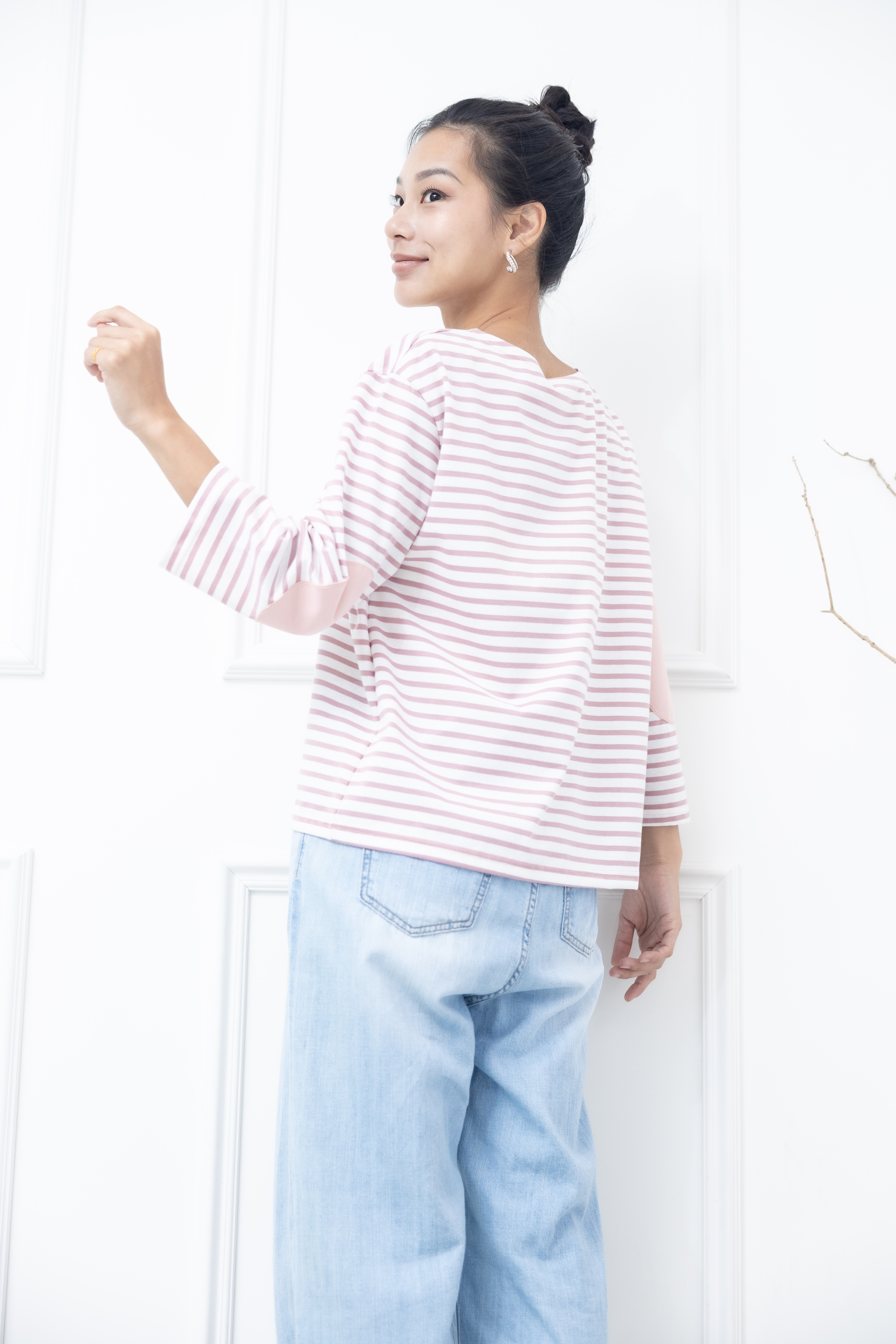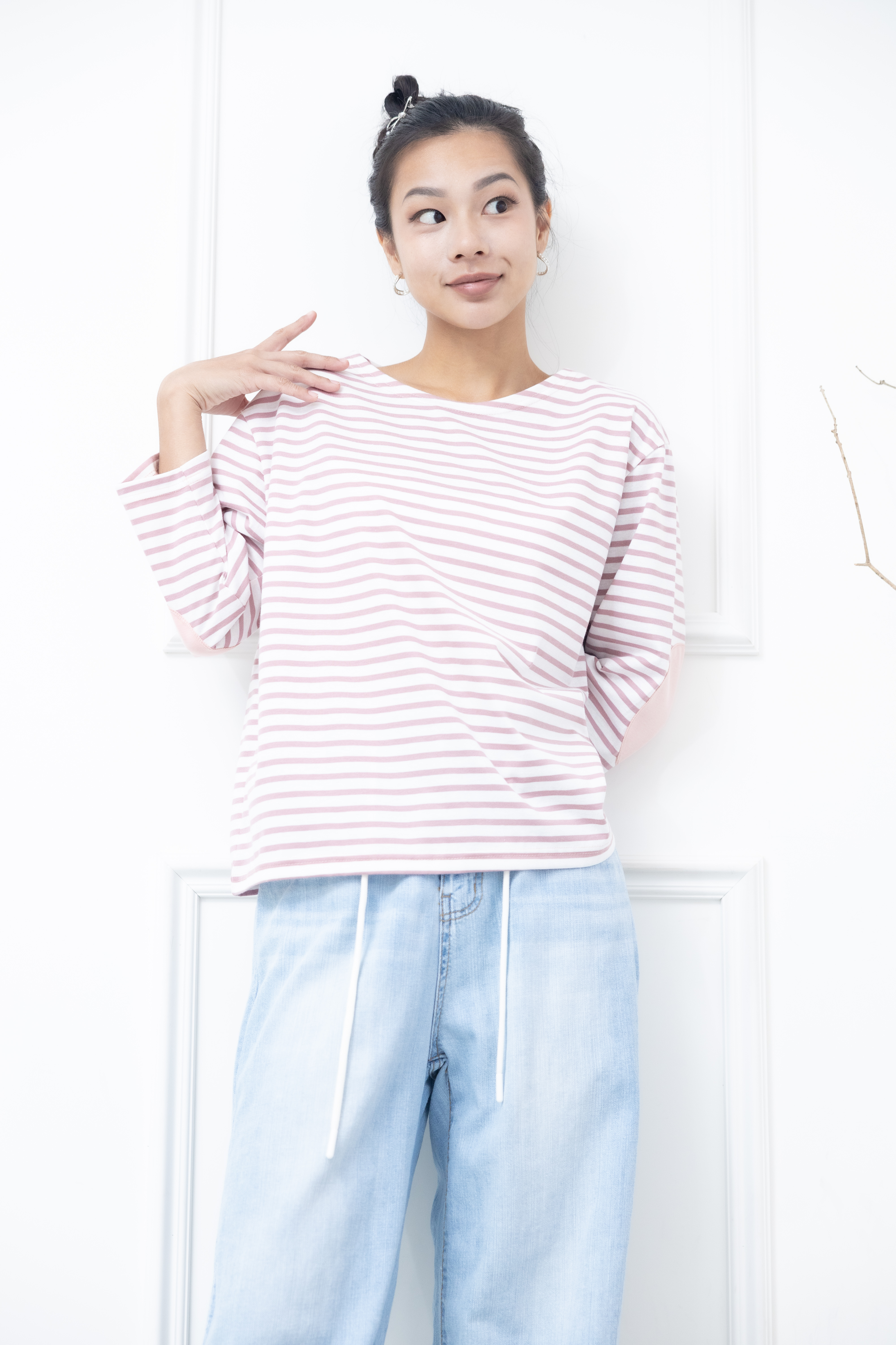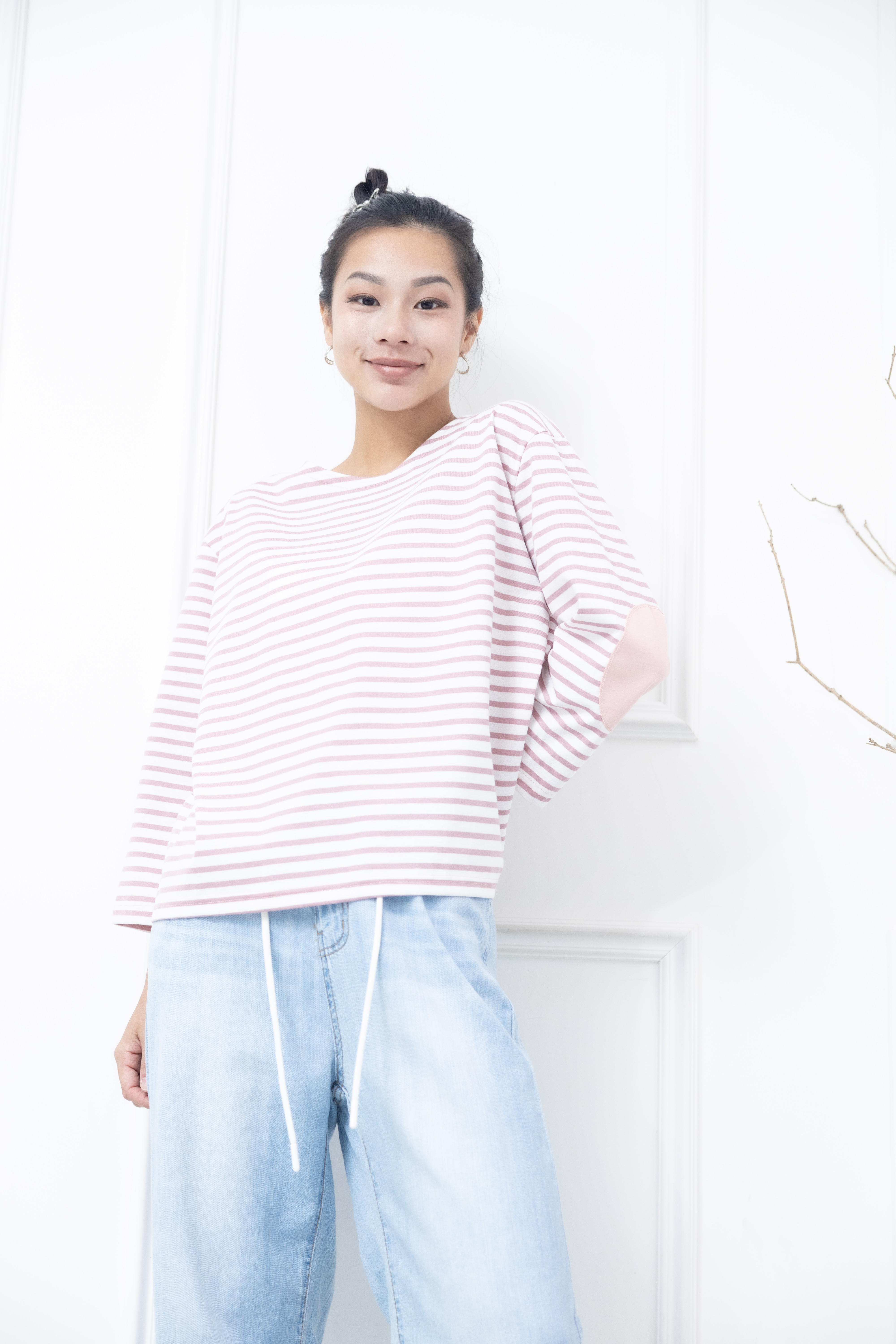 긴팔 粉白細條紋長袖上衣
