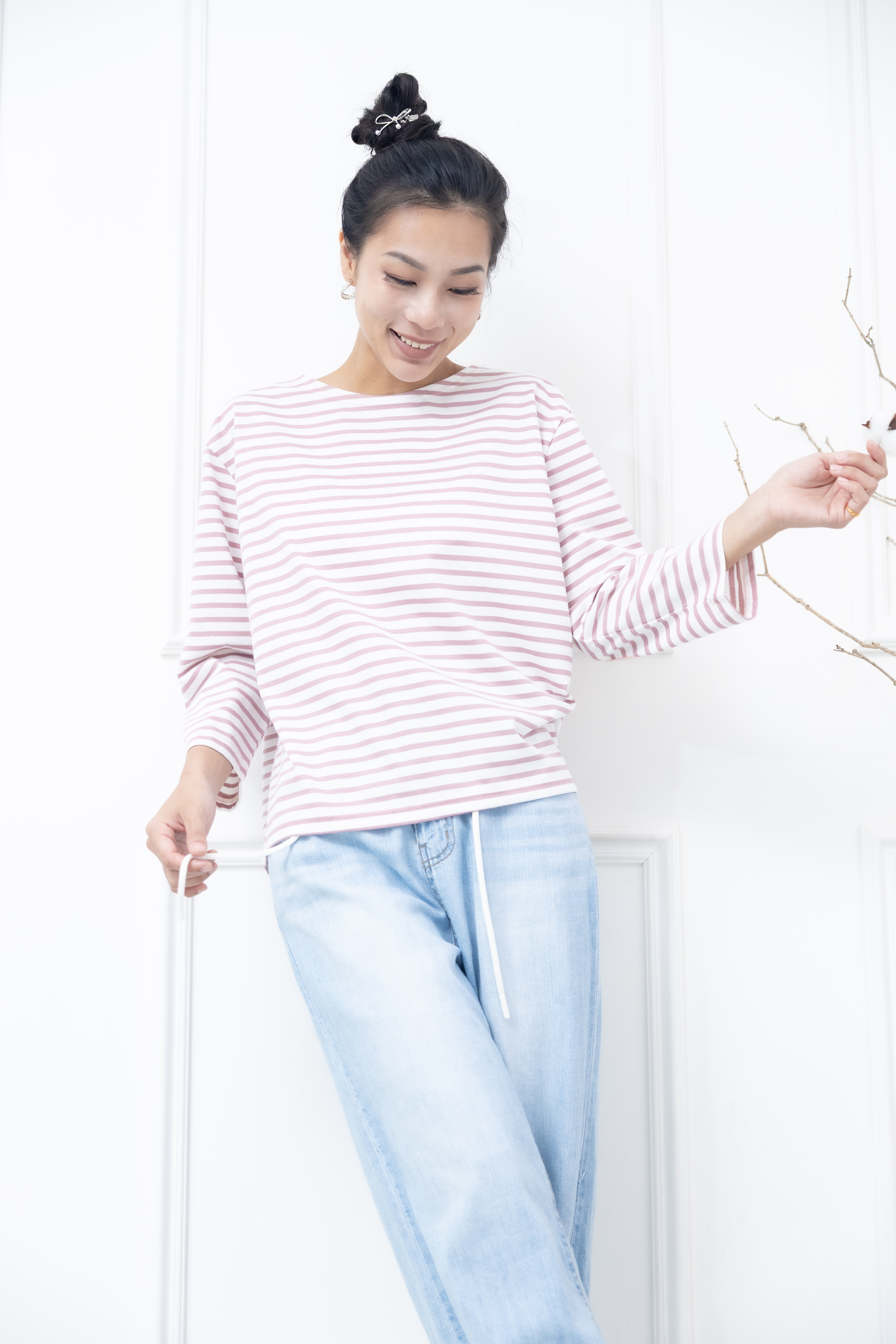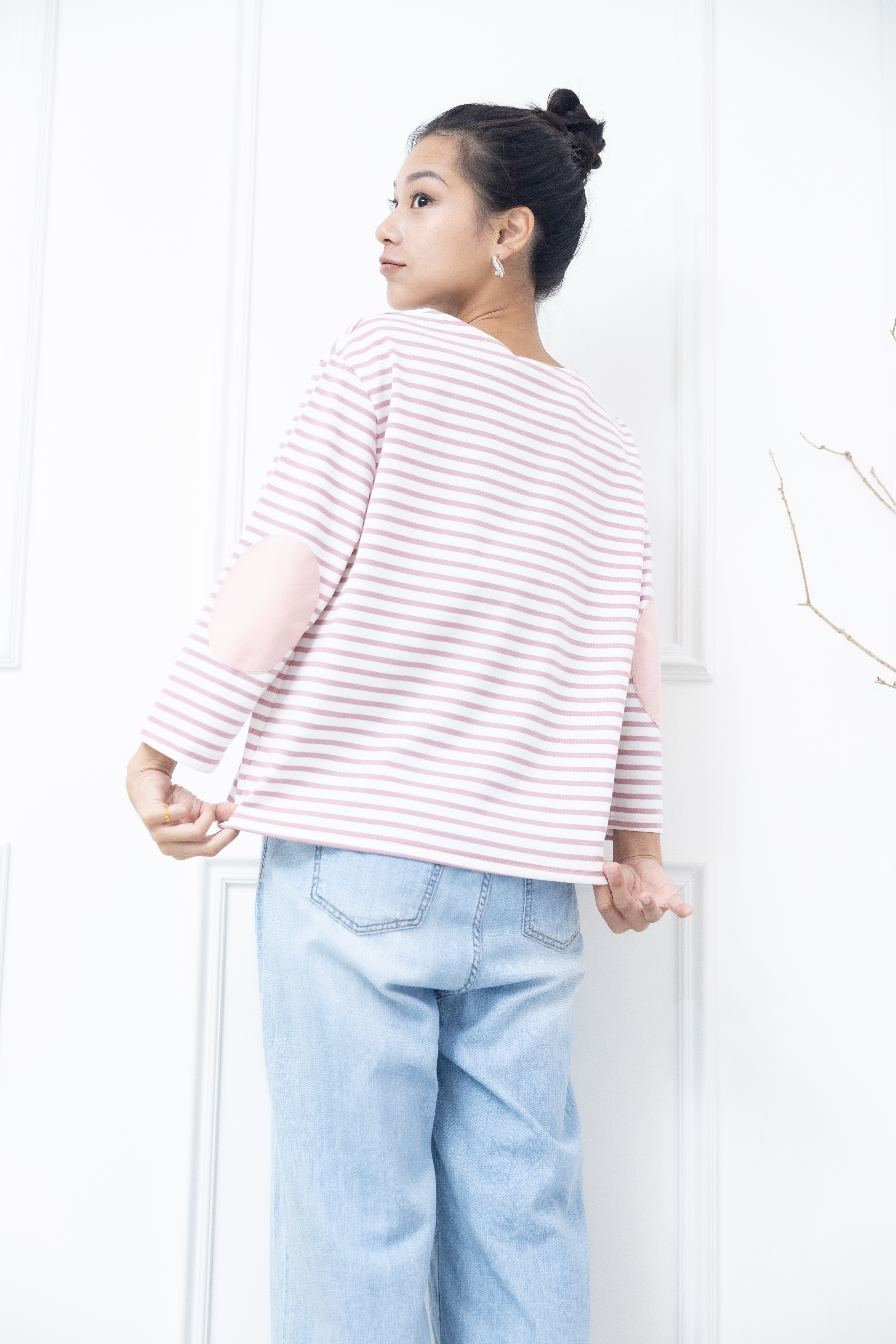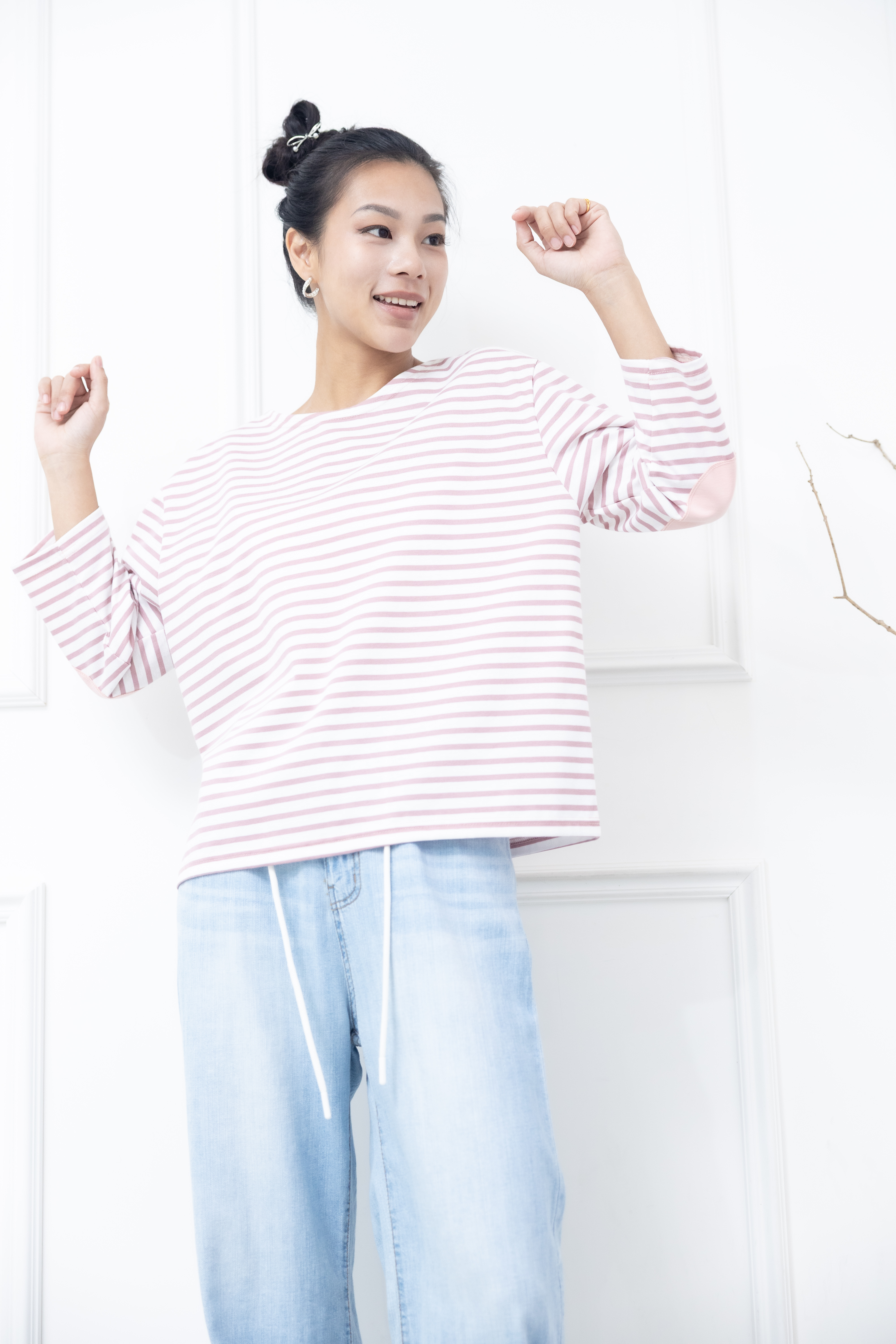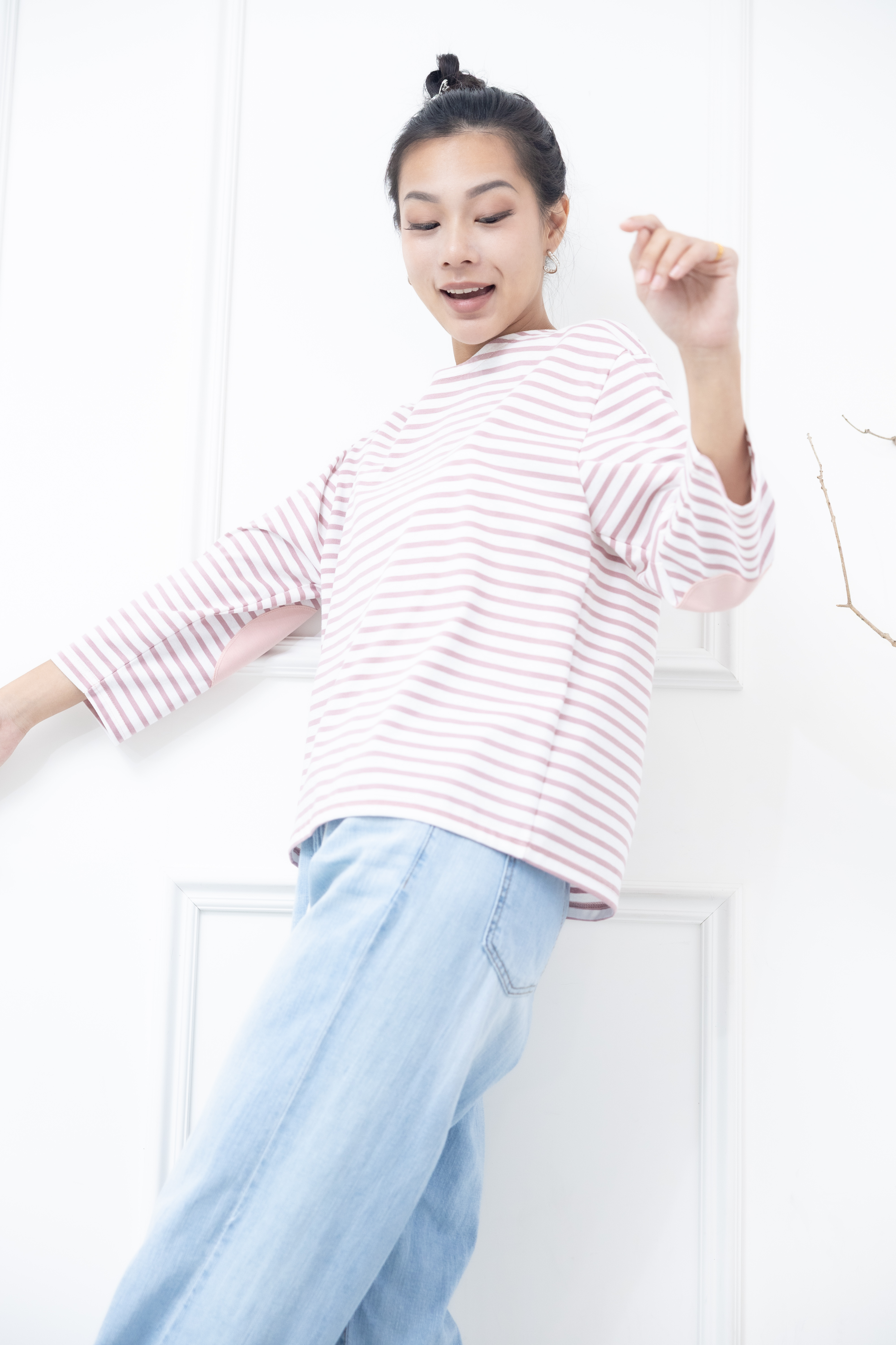 긴팔 粉白細條紋長袖上衣