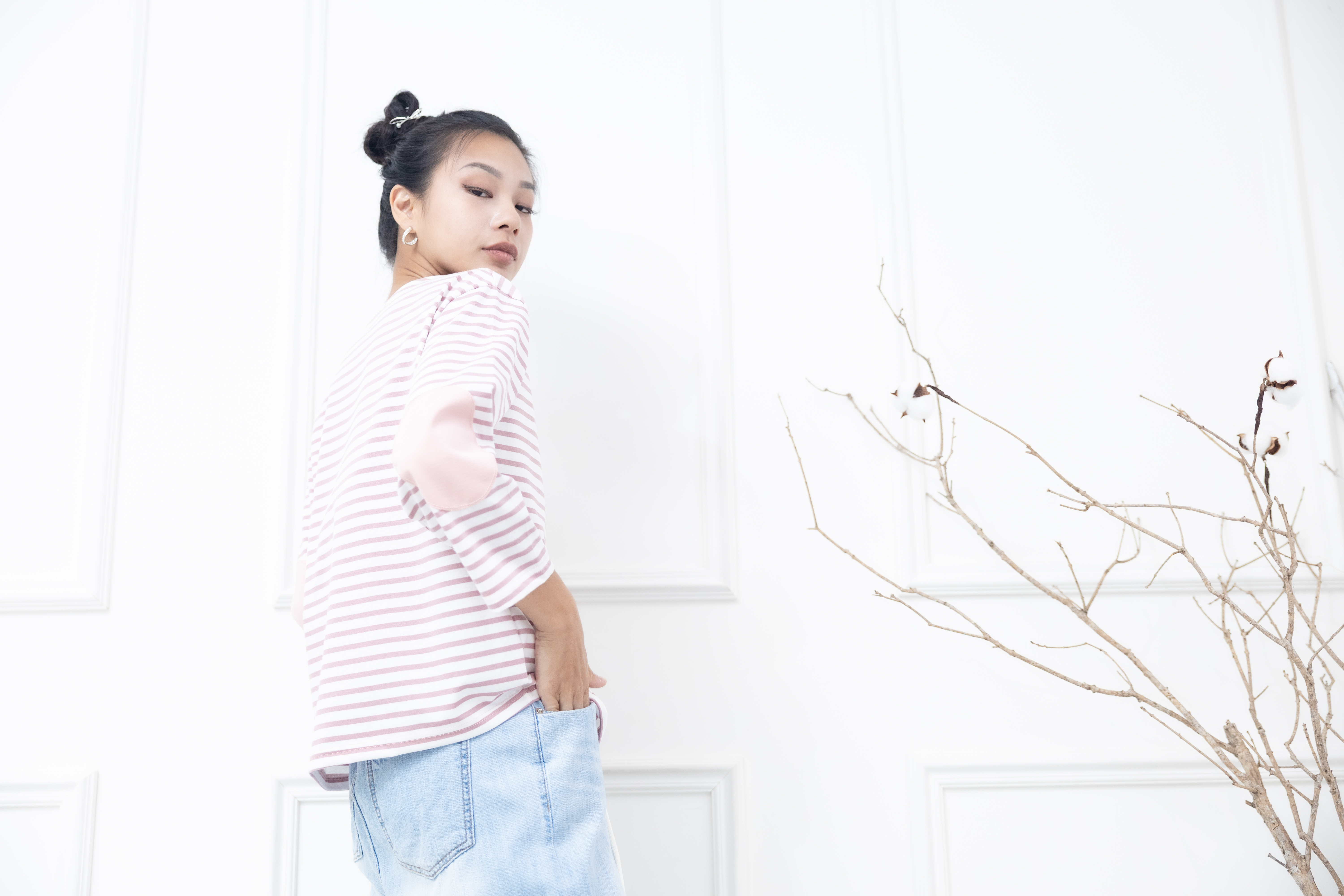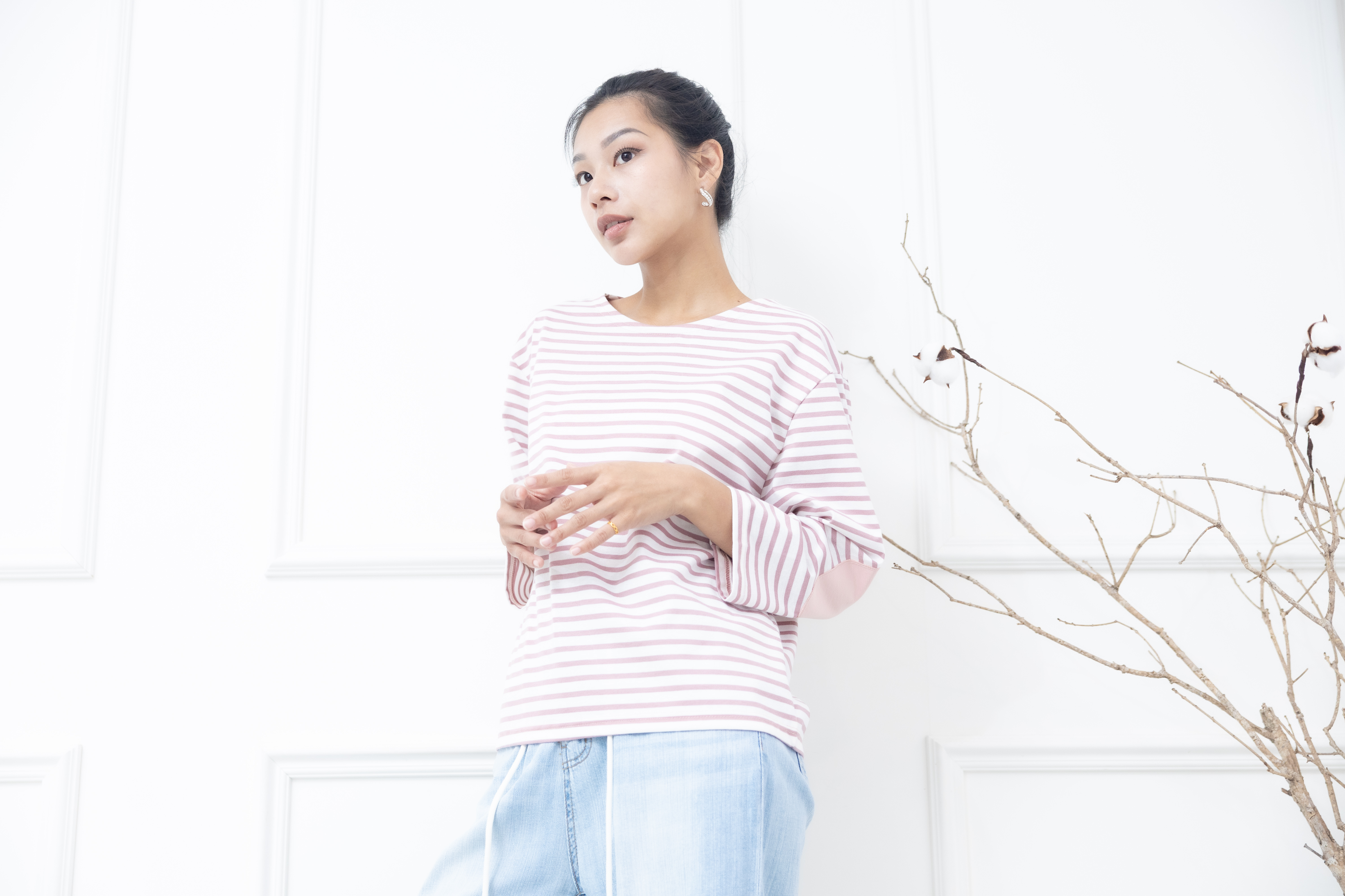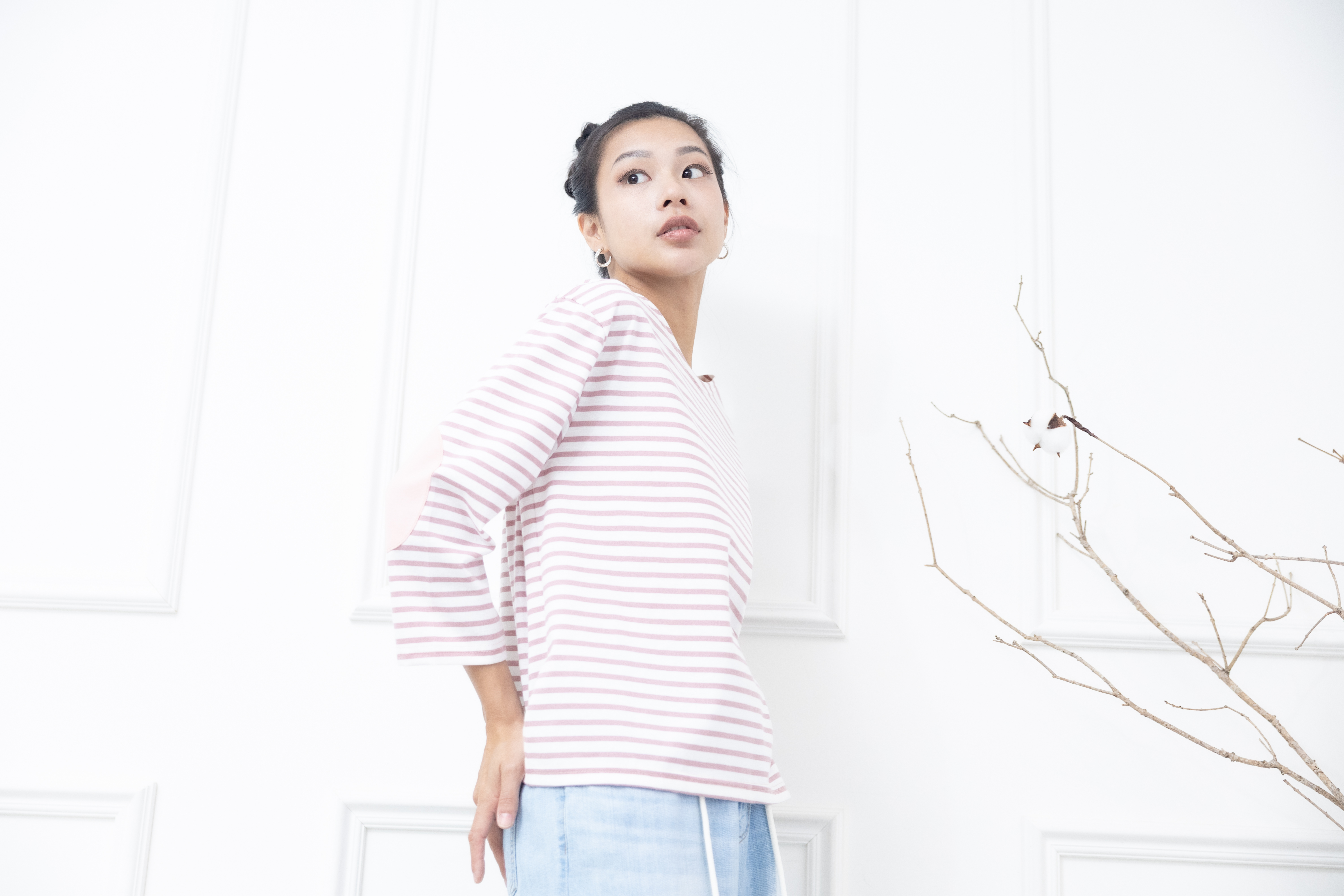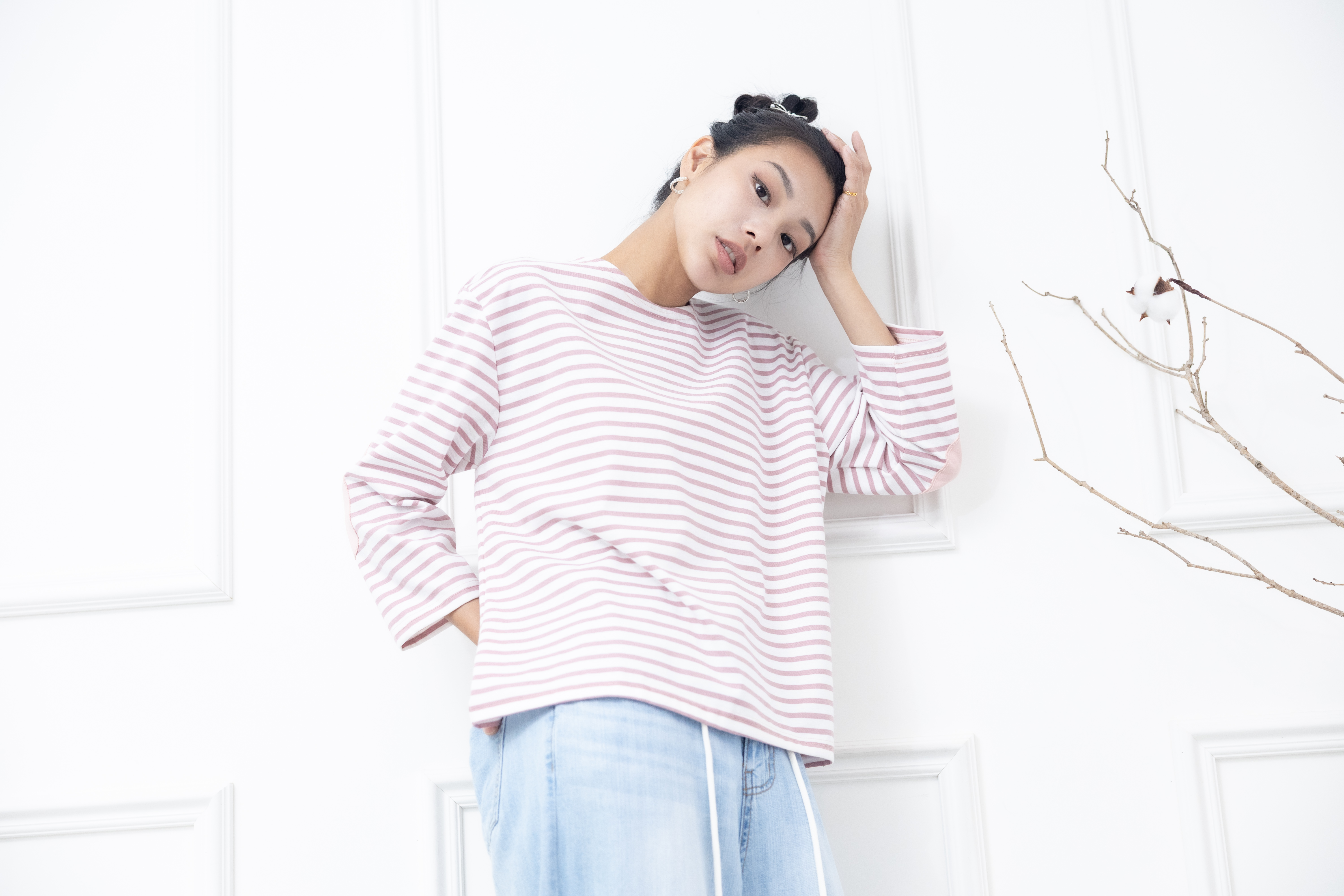 긴팔 粉白細條紋長袖上衣