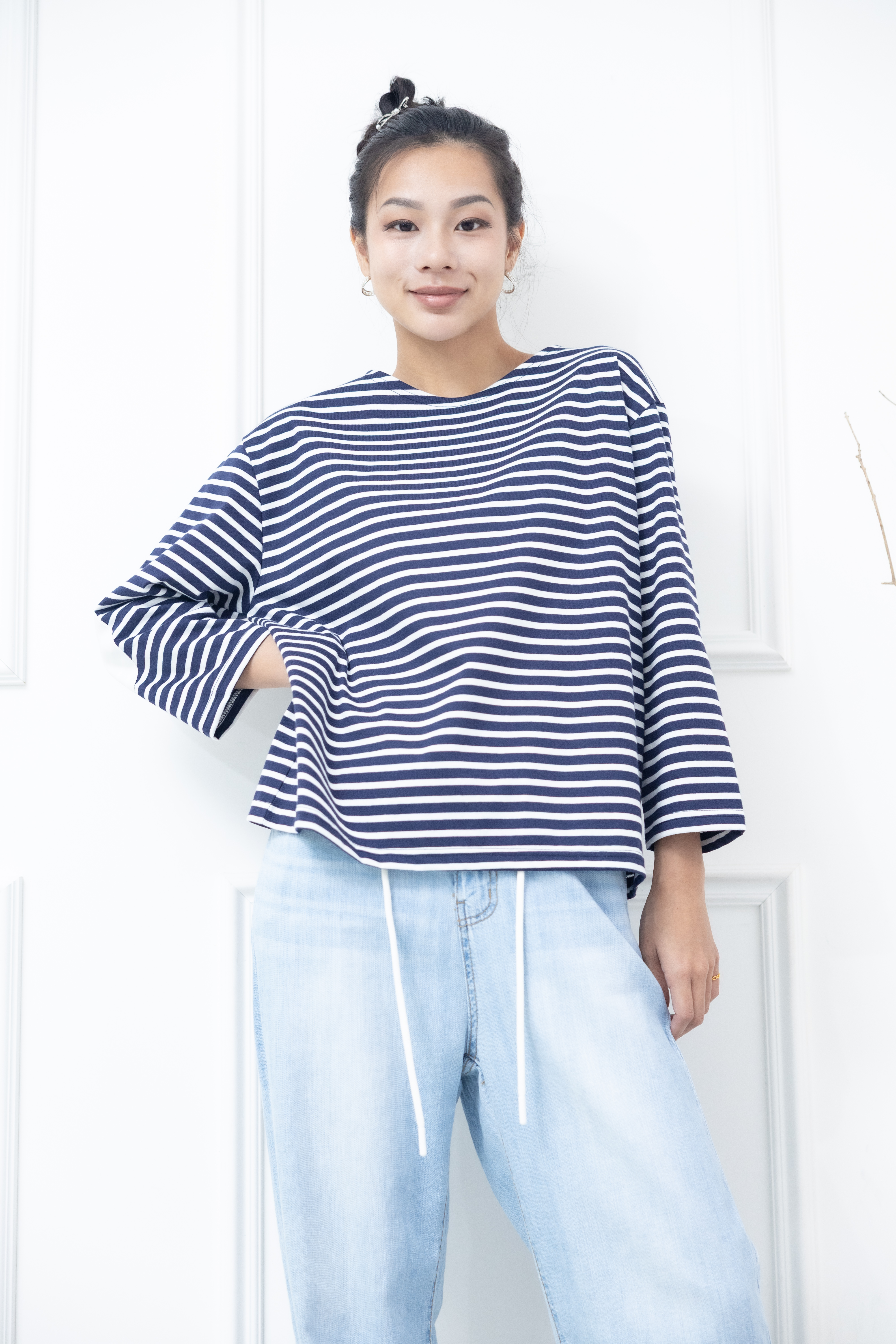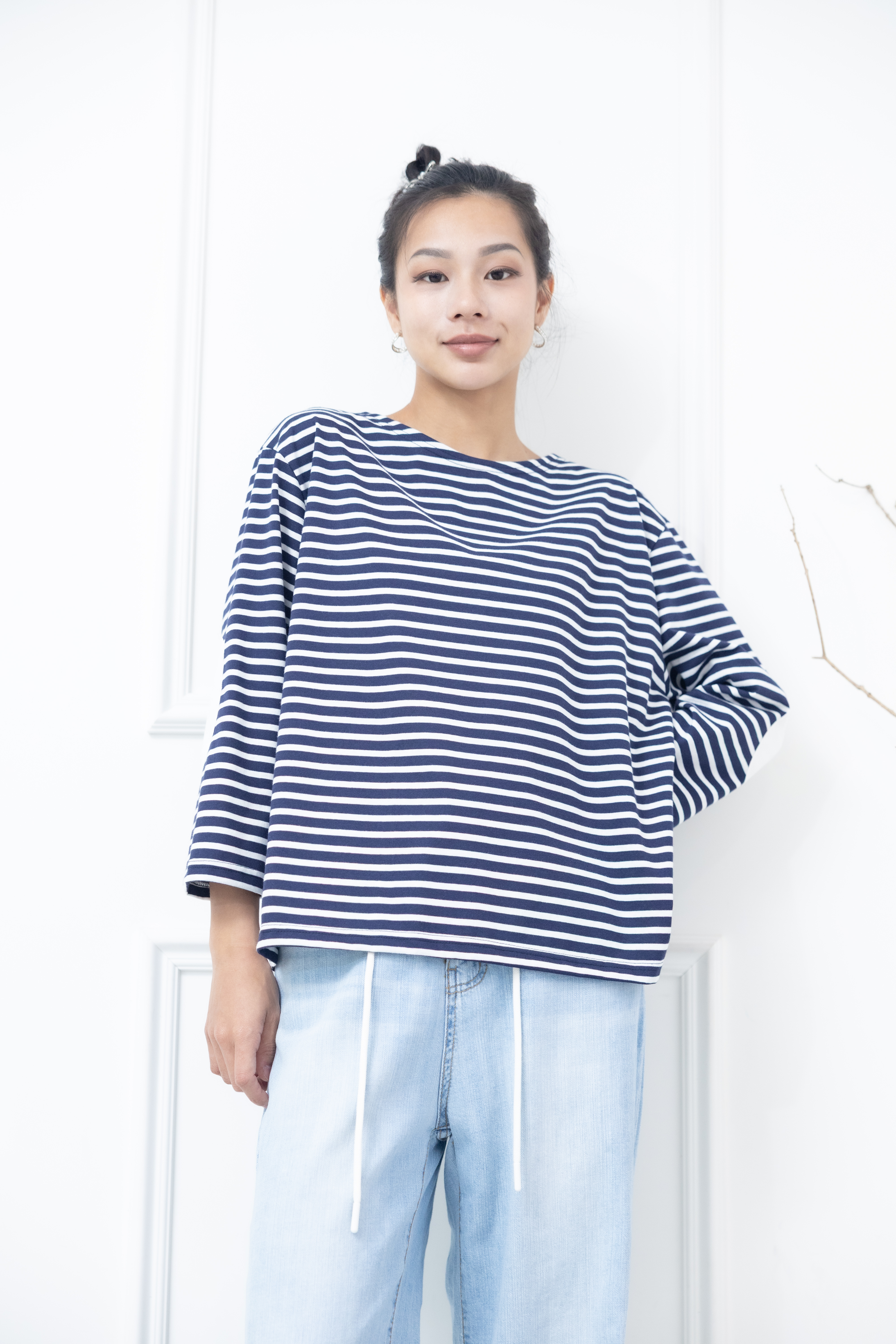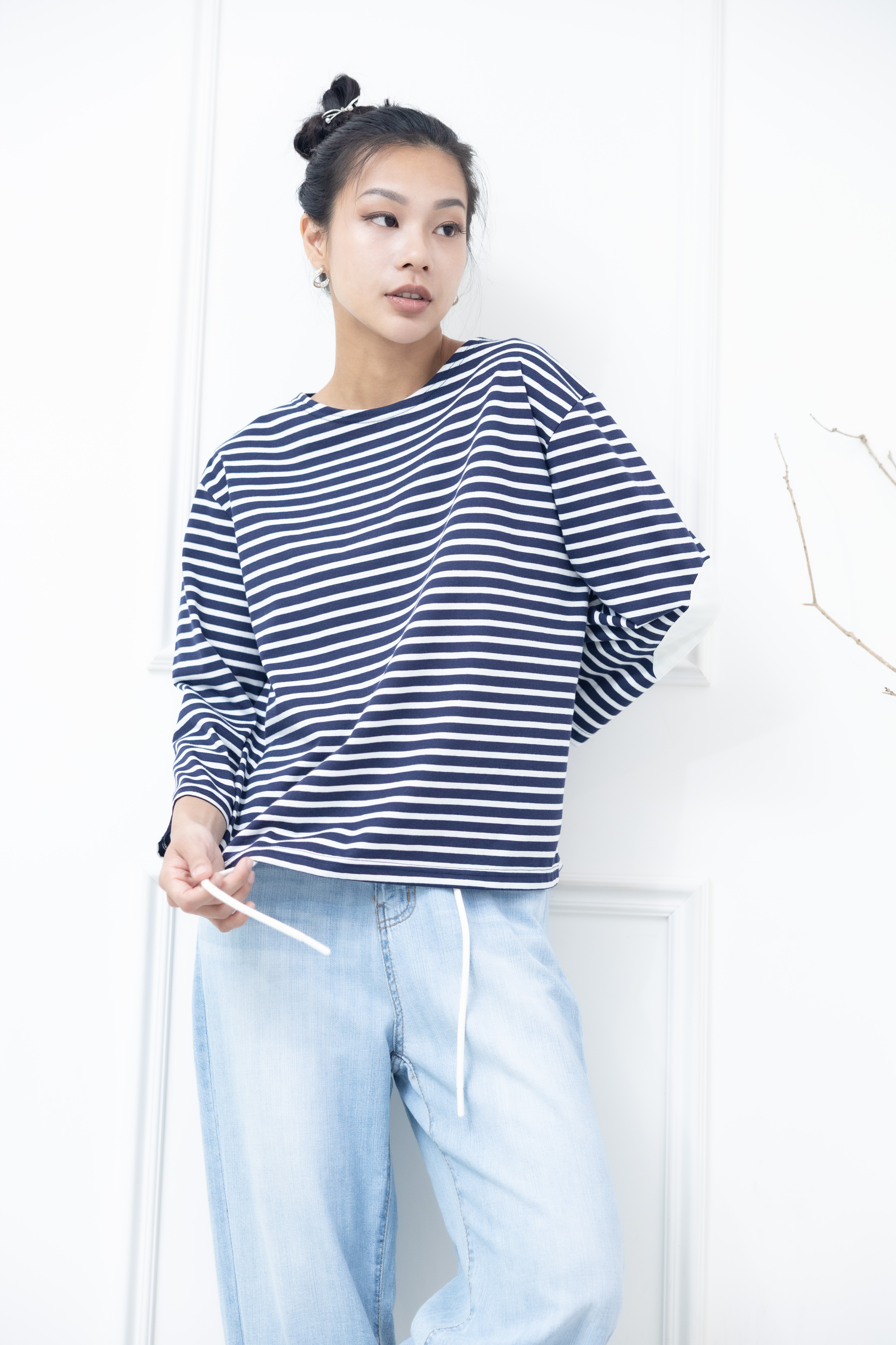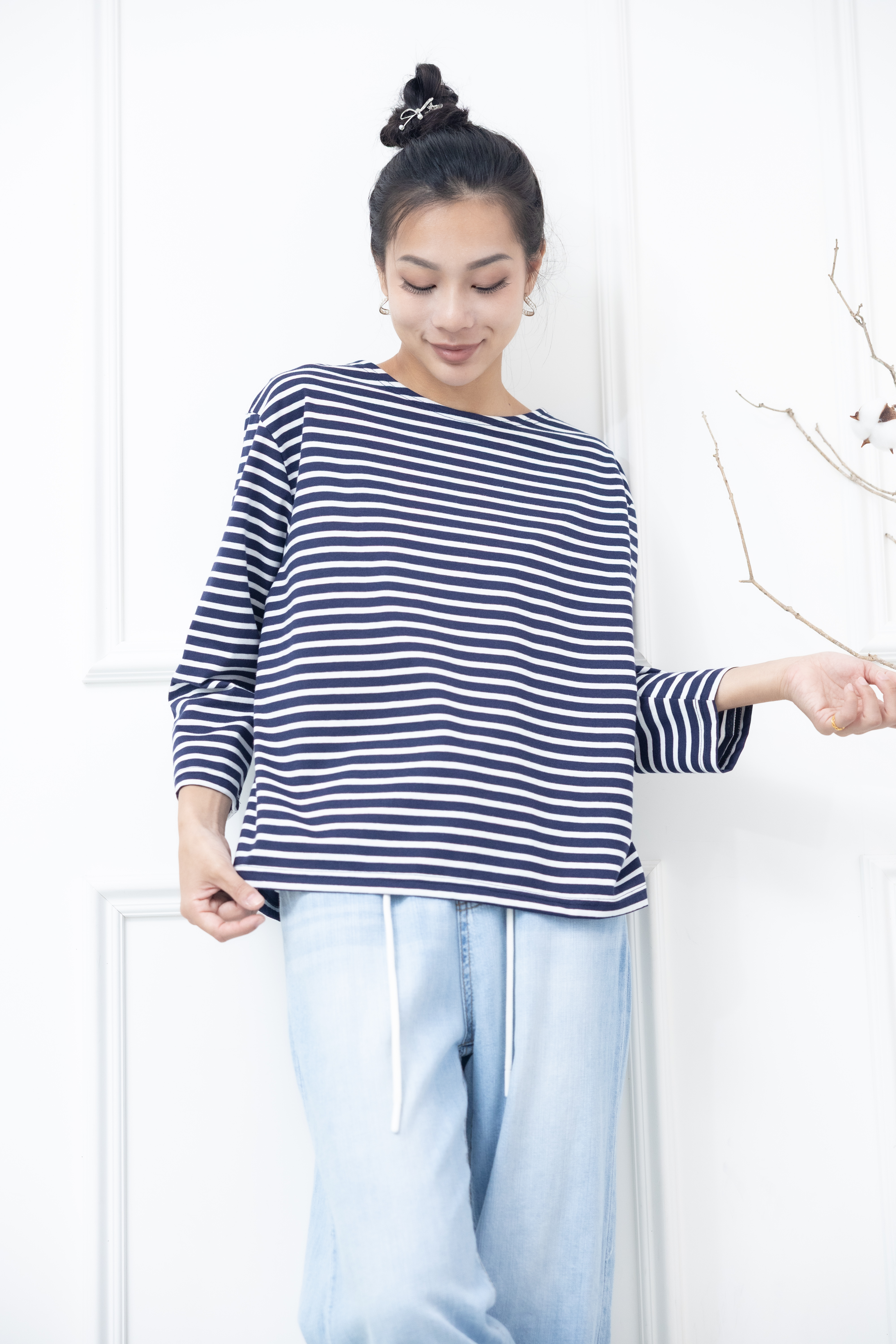 긴팔 藍白細條紋長袖上衣