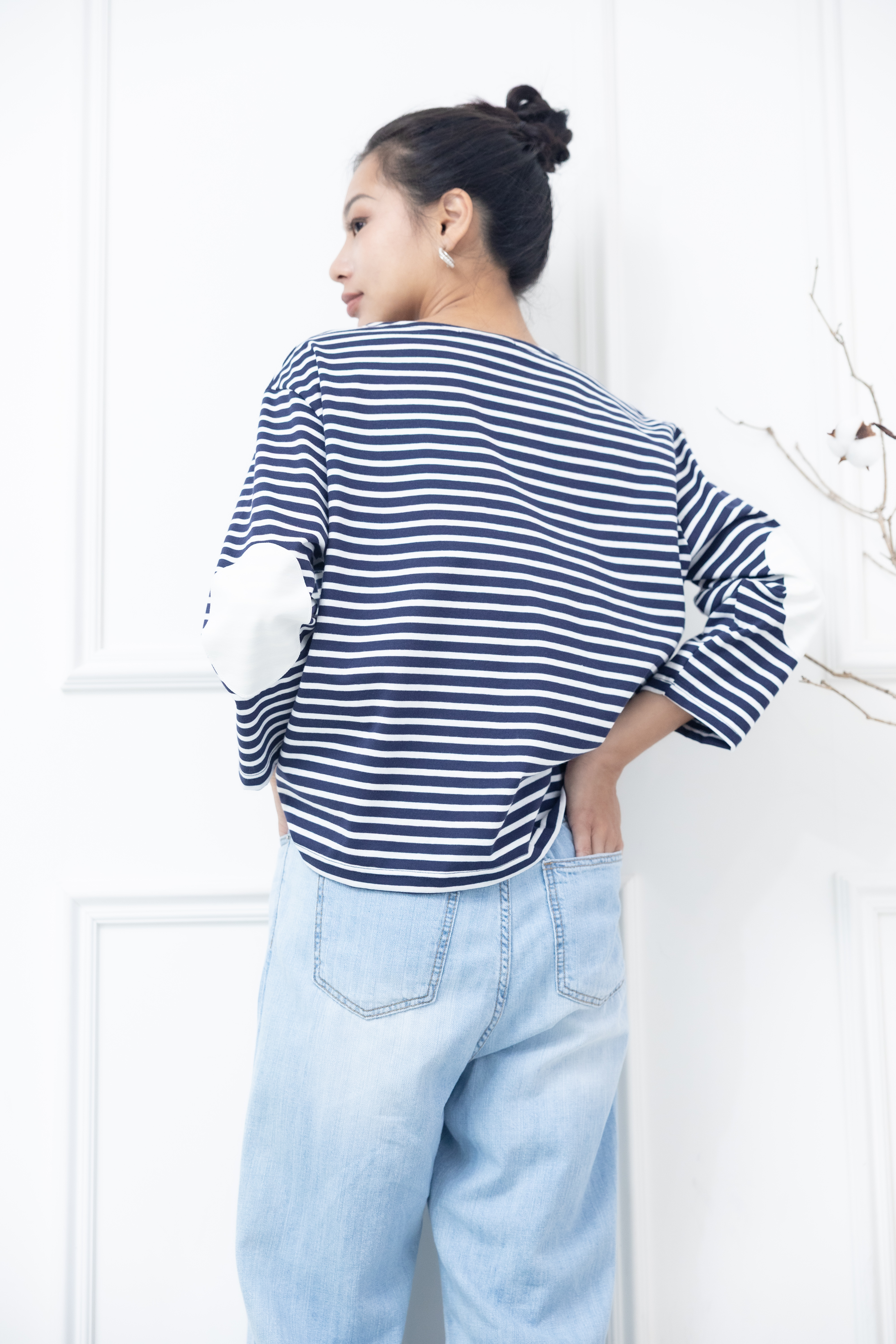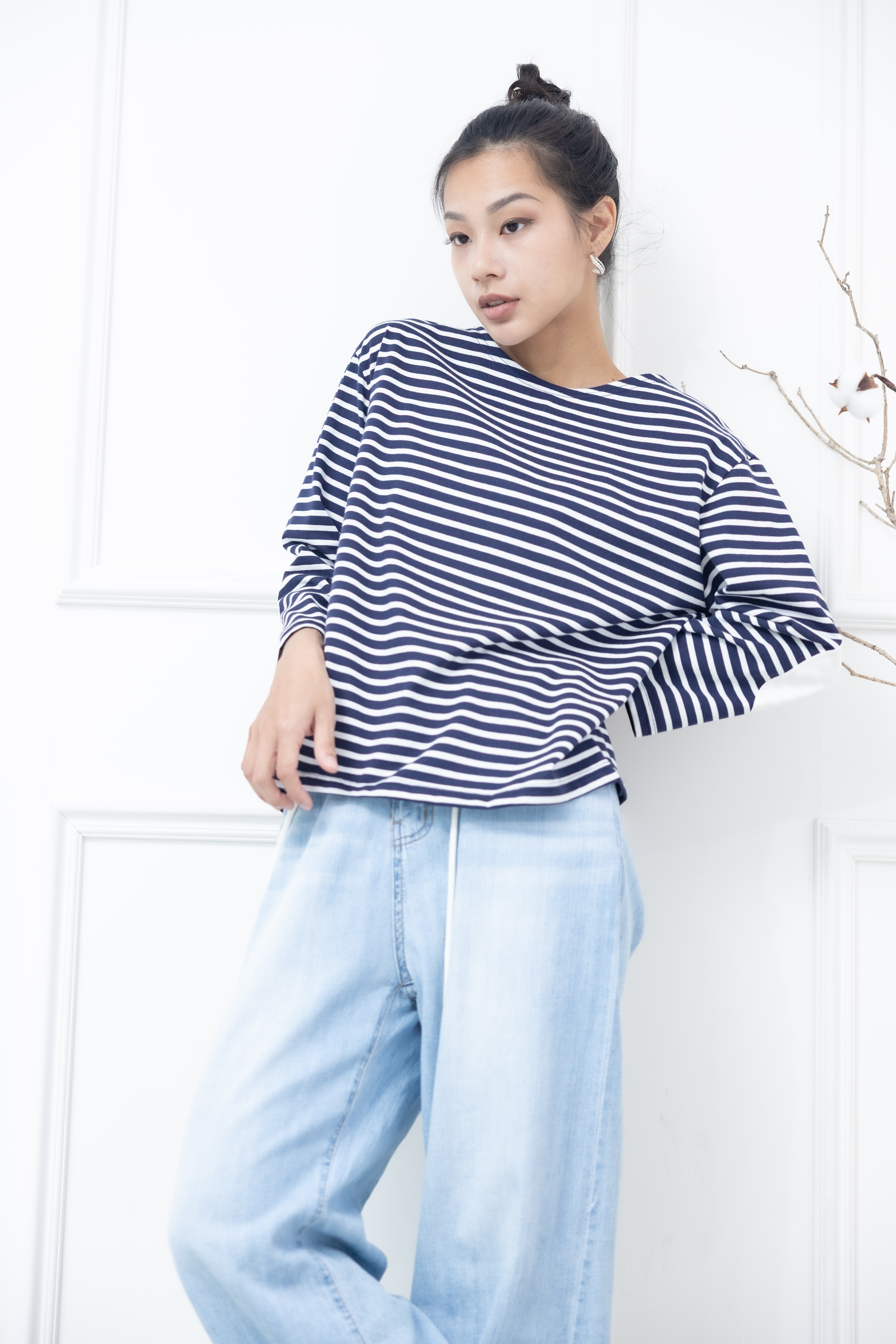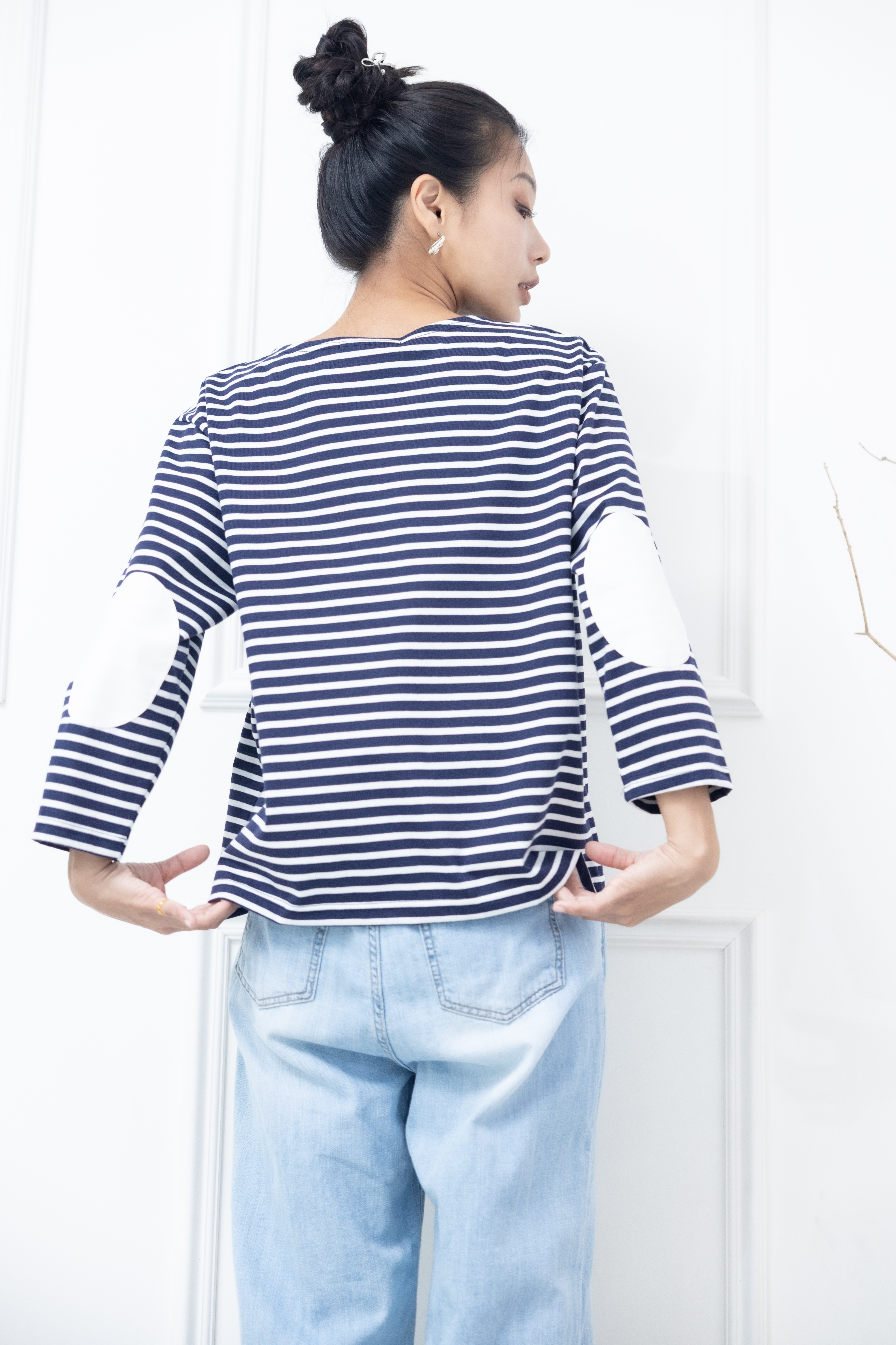 긴팔 藍白細條紋長袖上衣