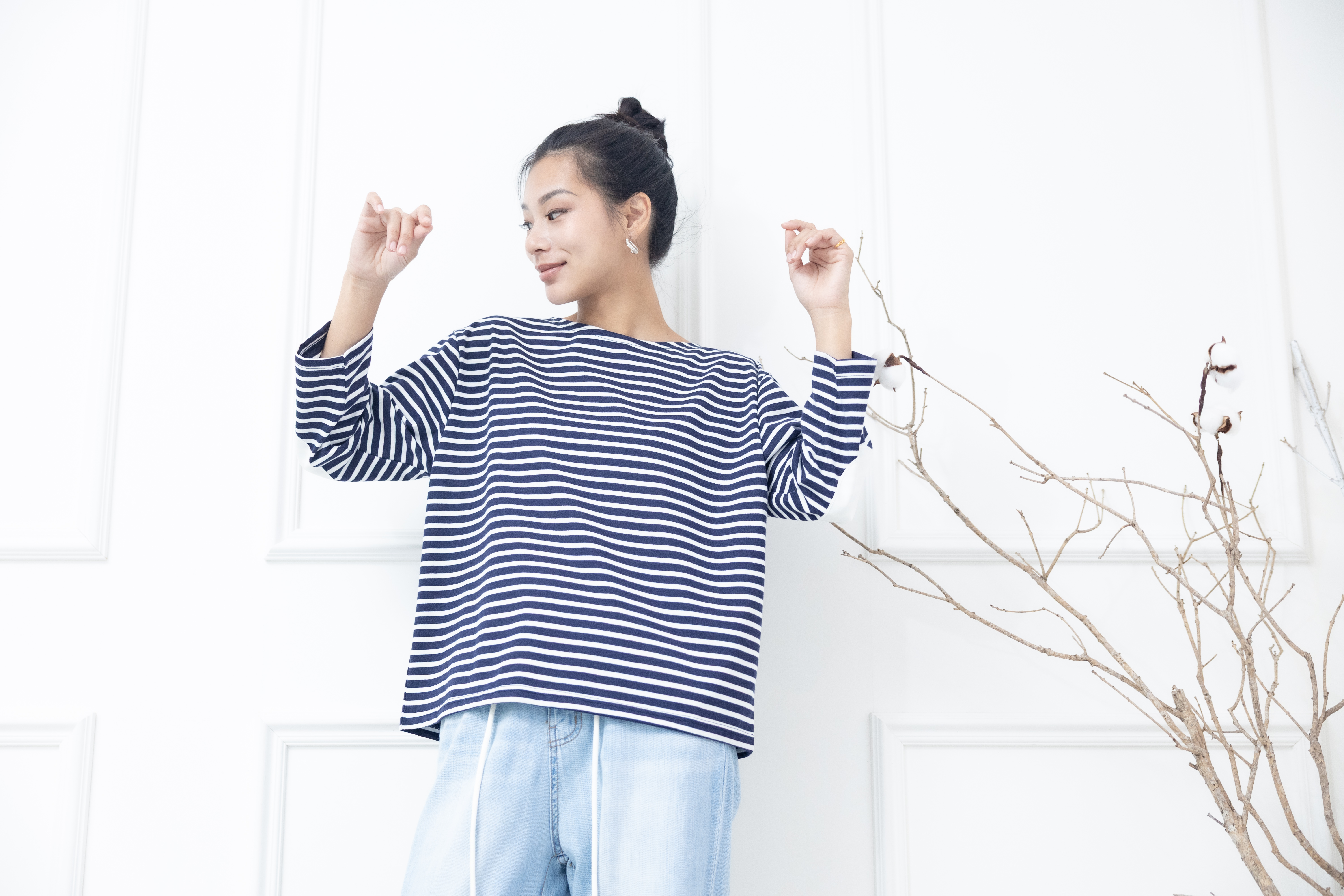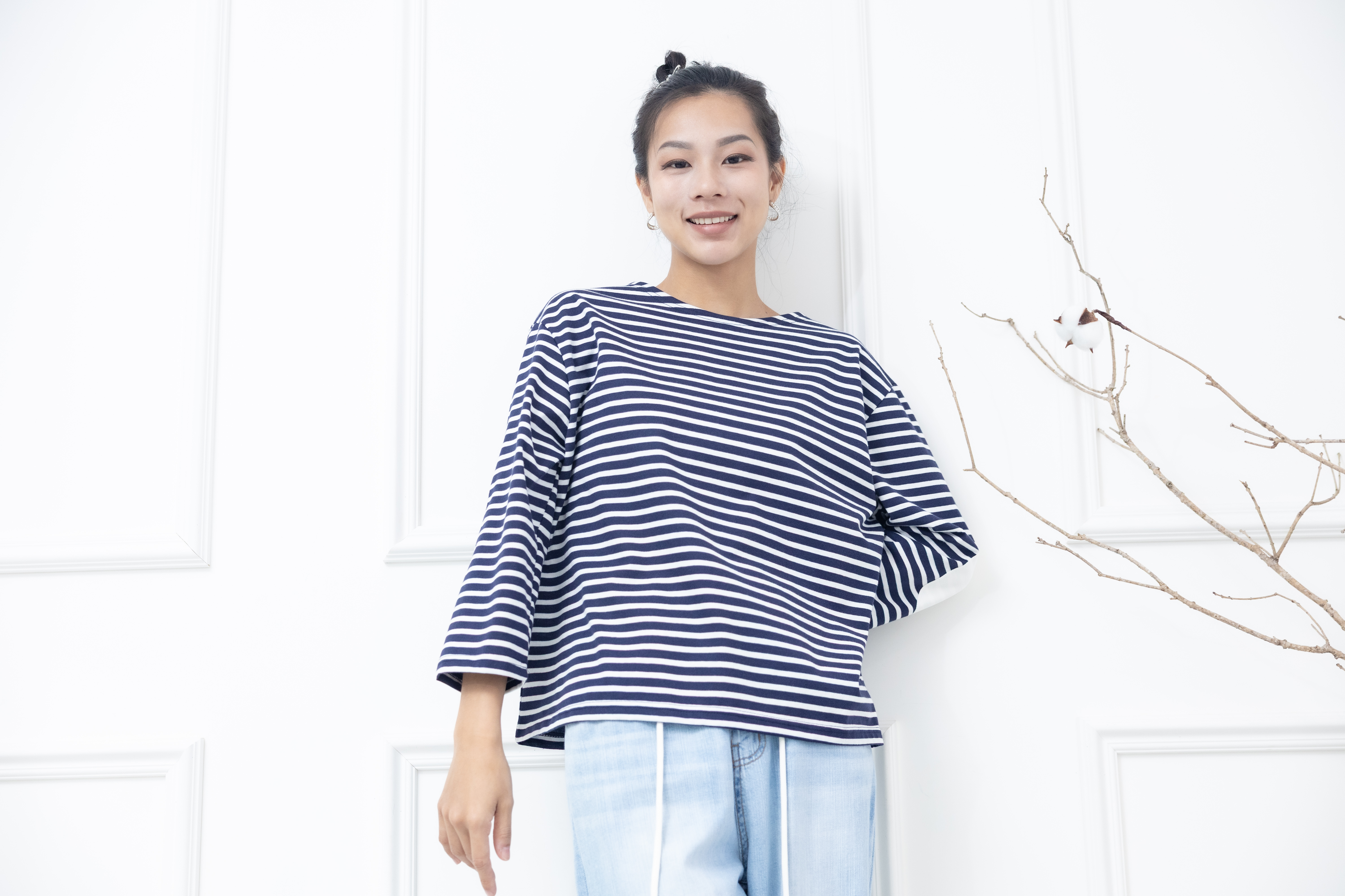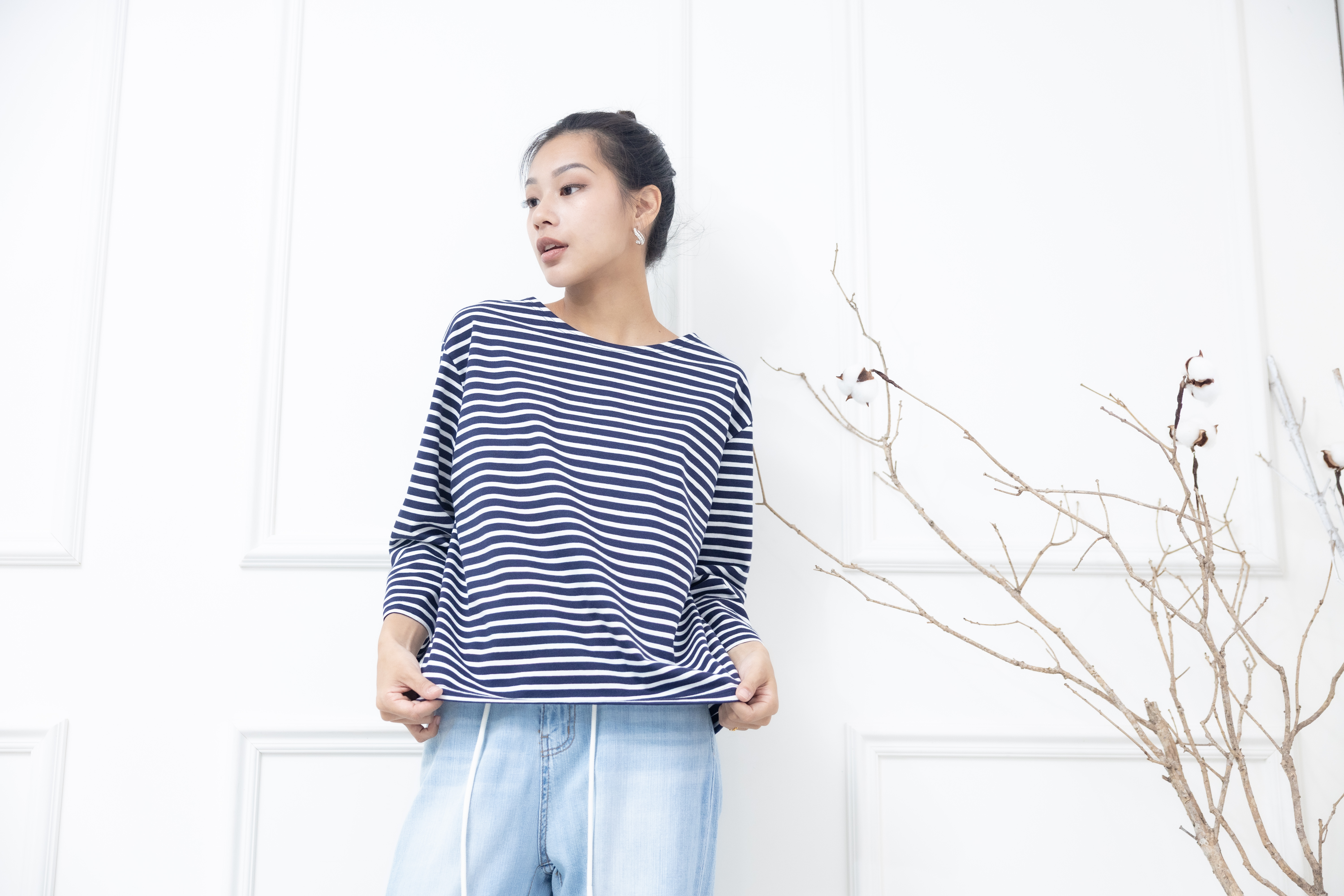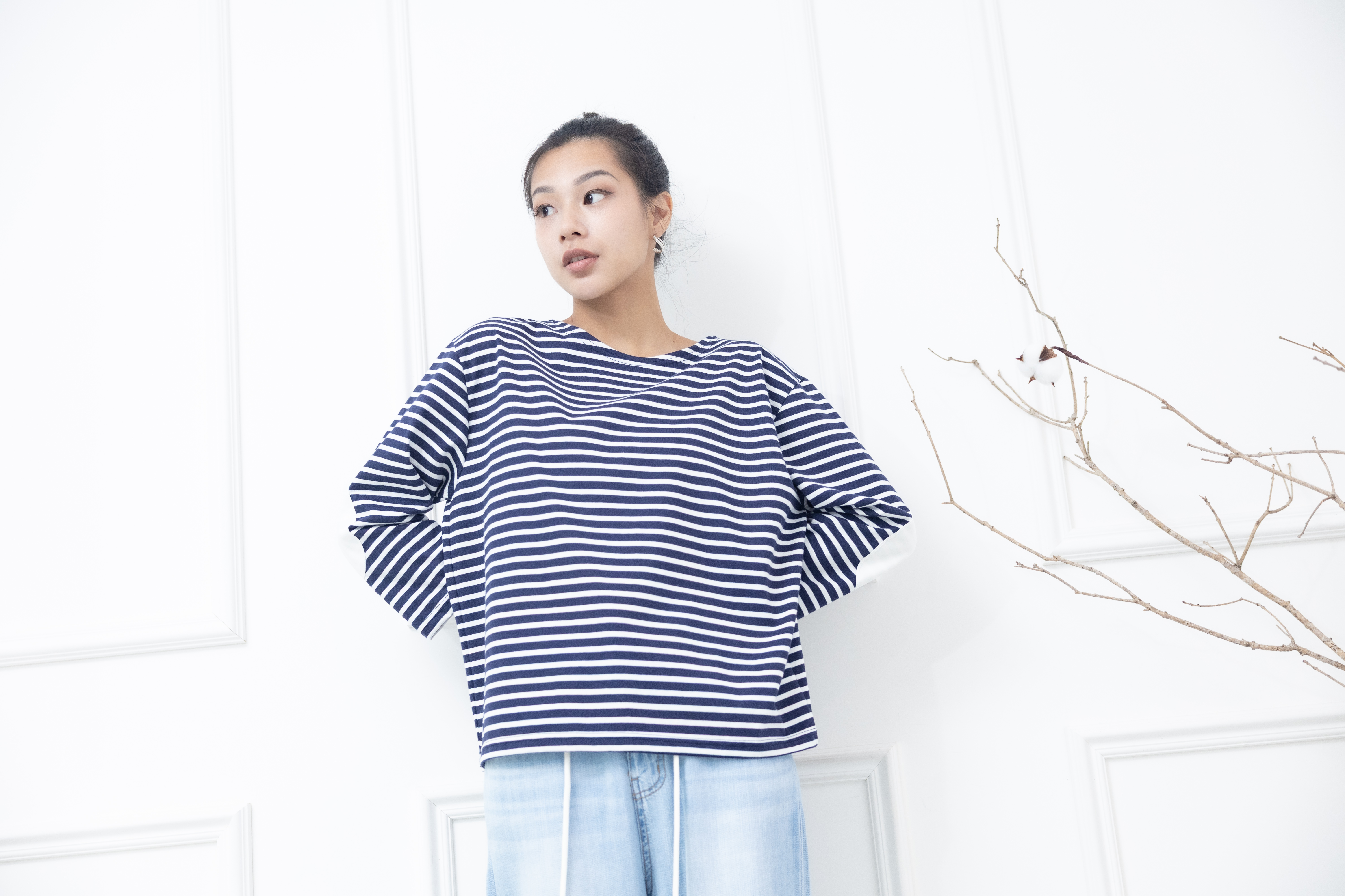 긴팔 藍白細條紋長袖上衣