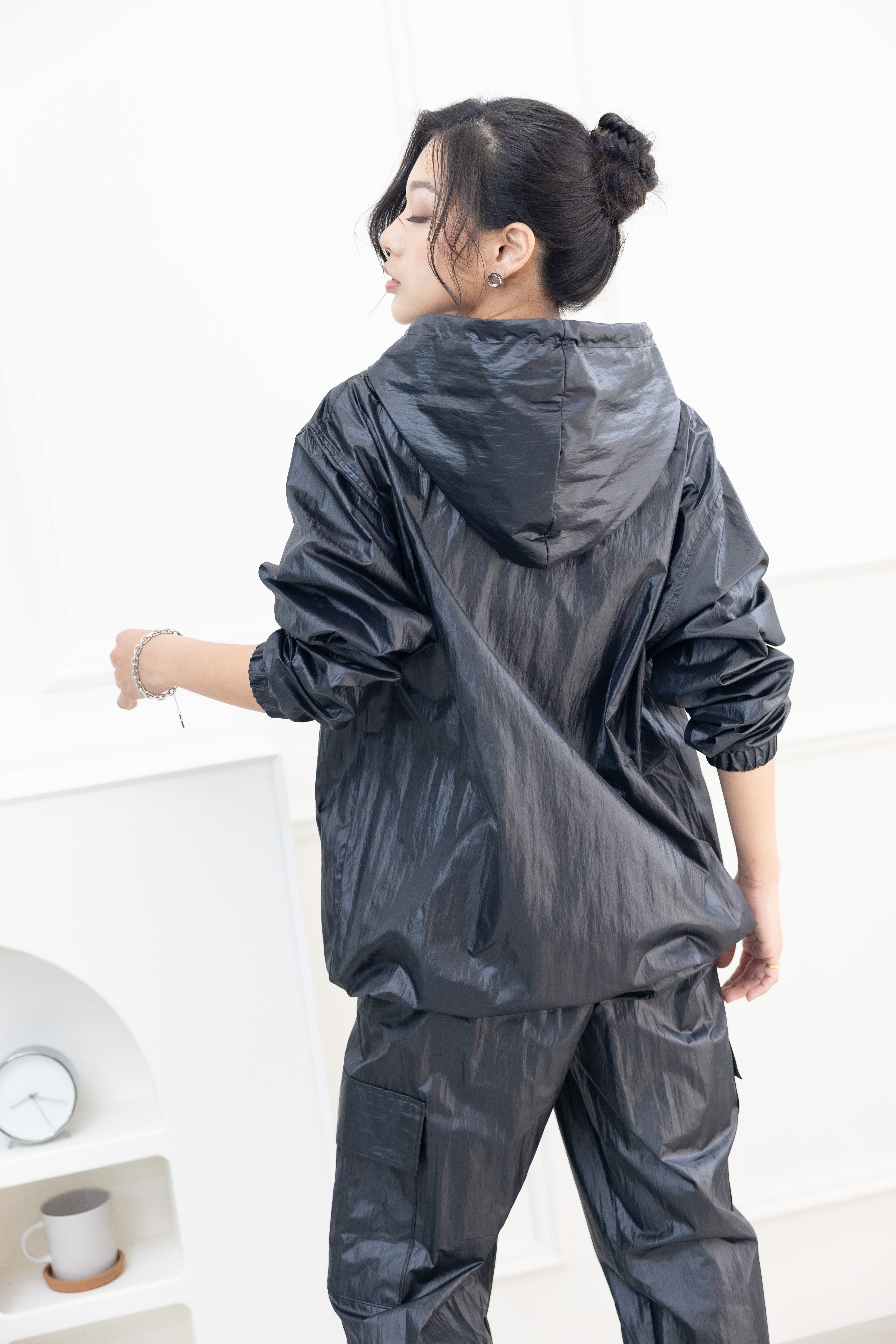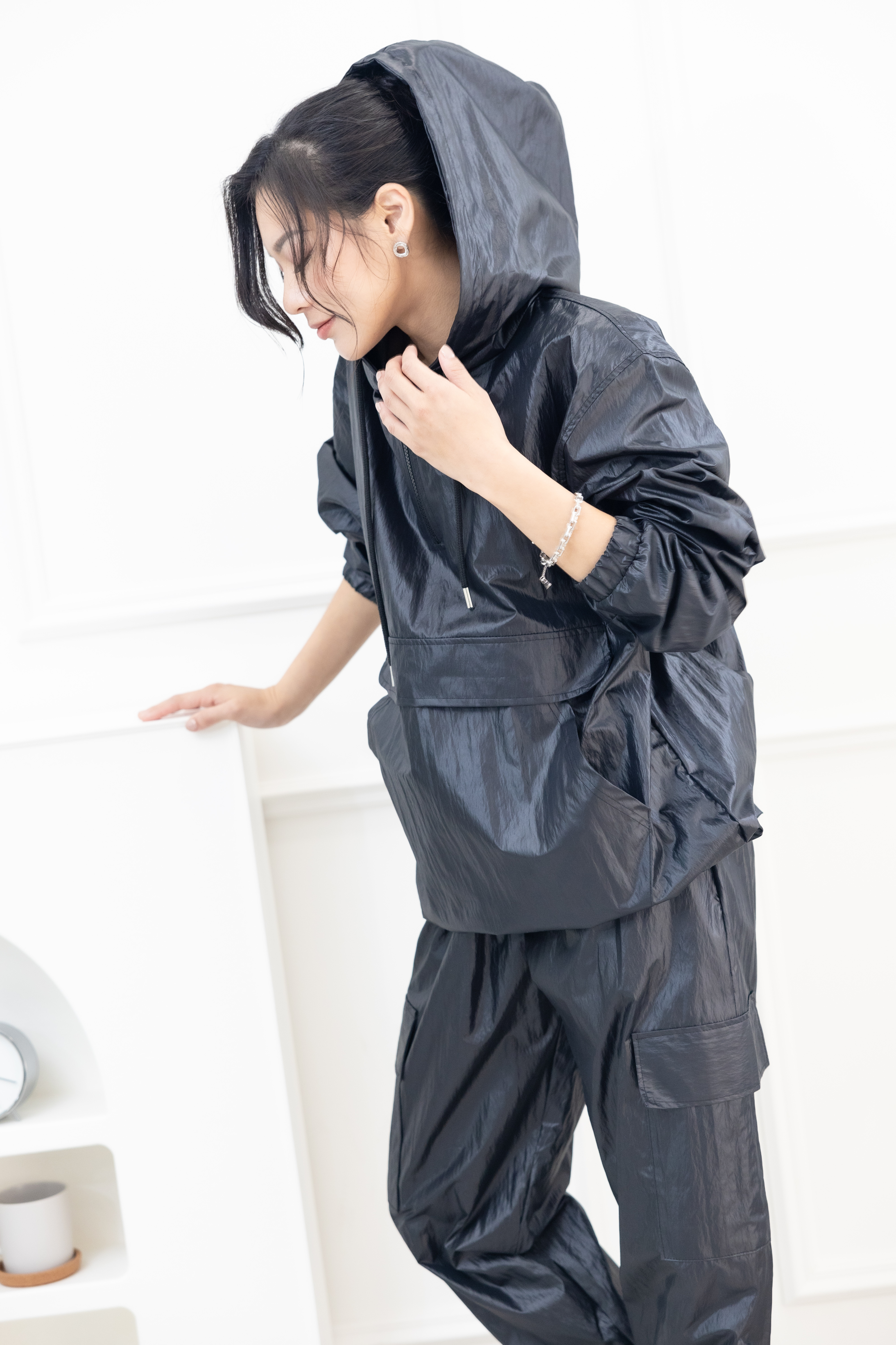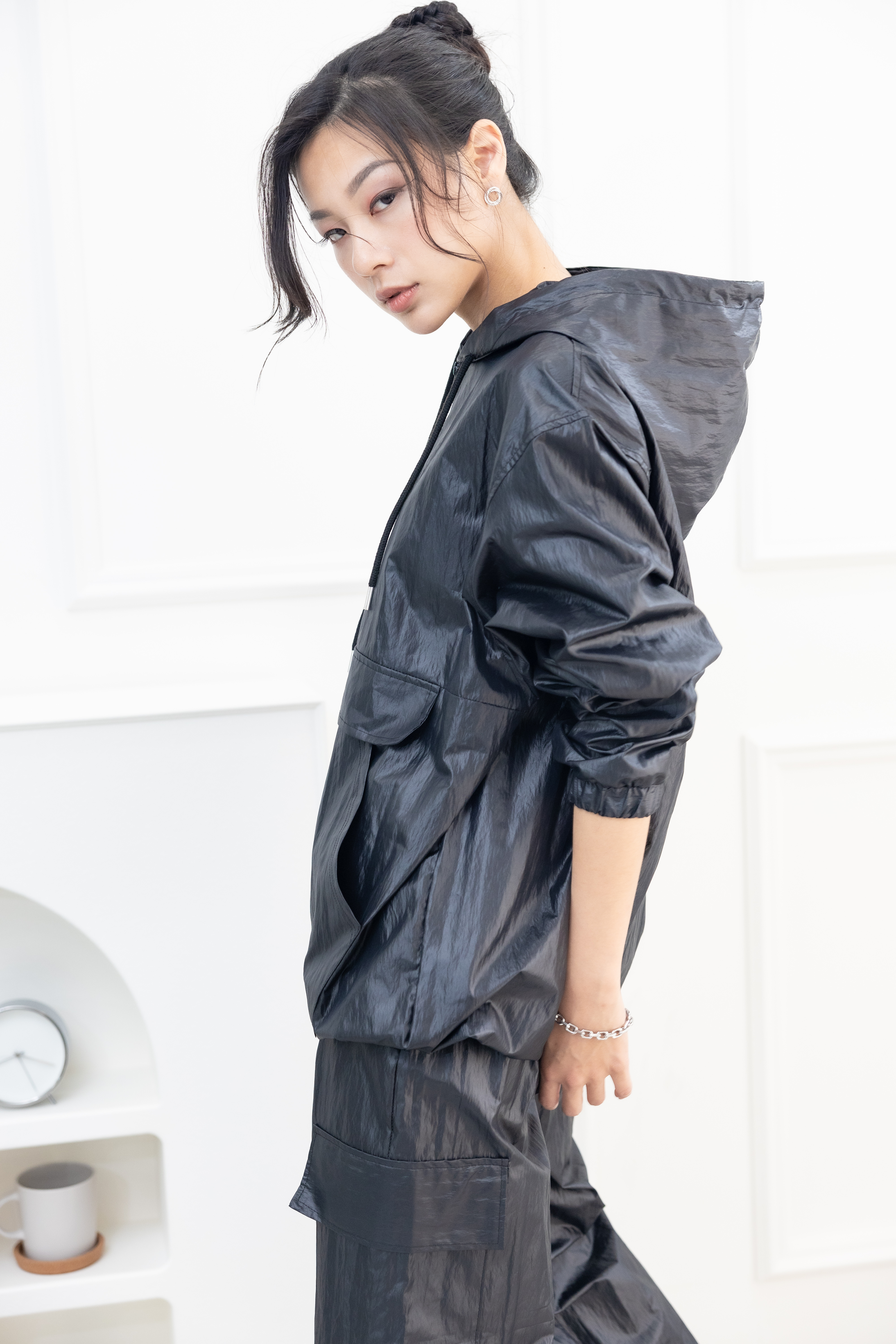 긴팔 防潑水連帽長袖上衣 / 黑色