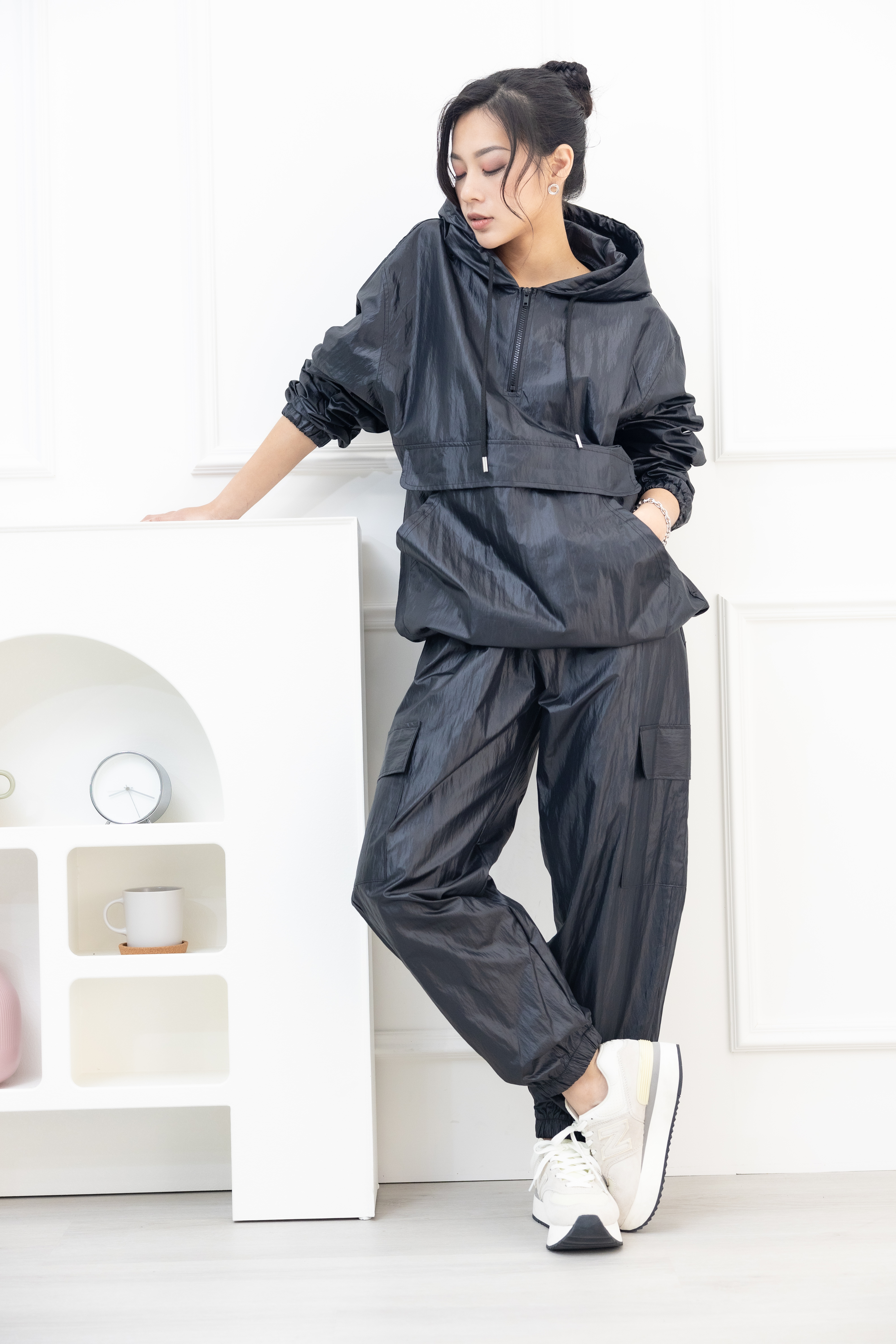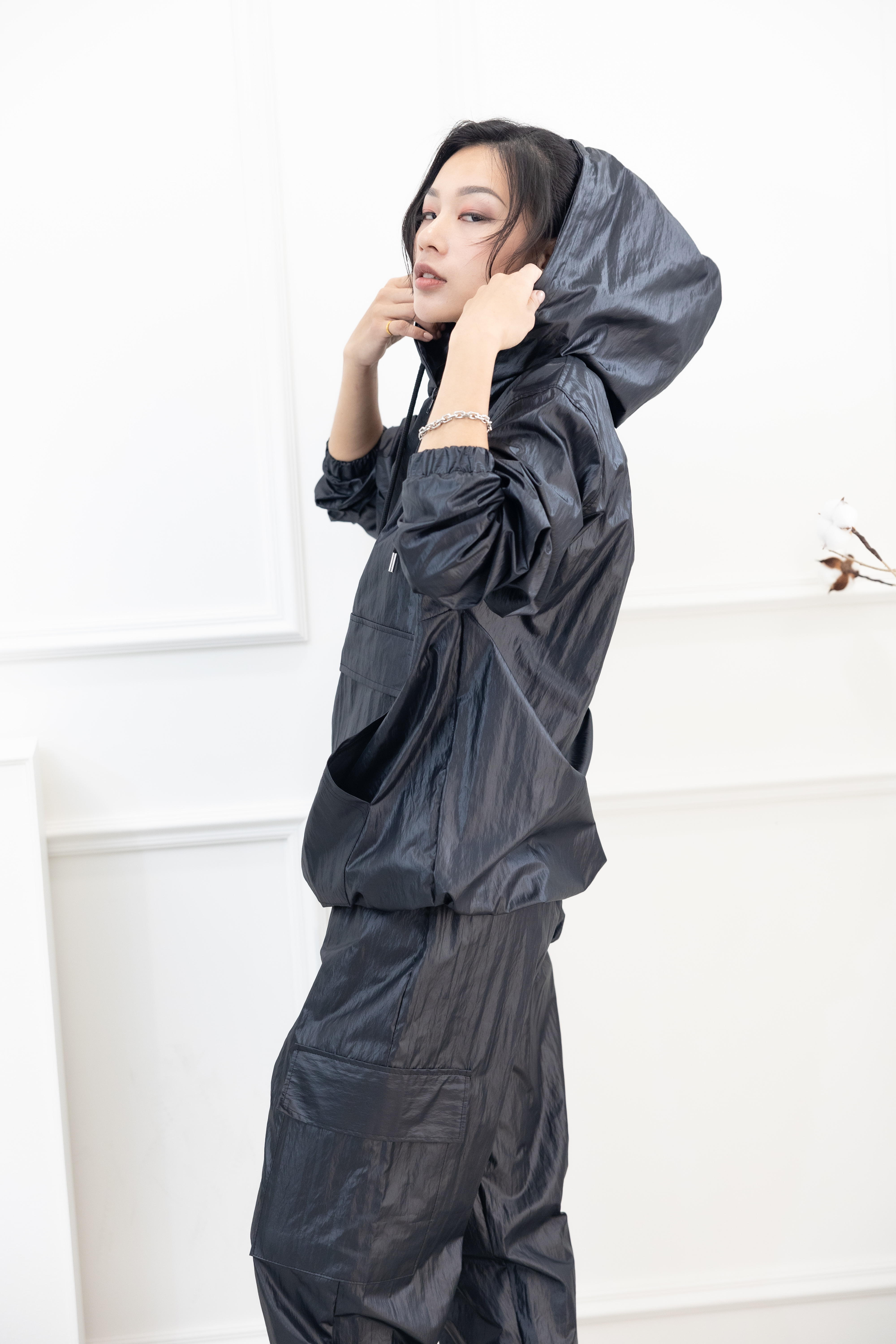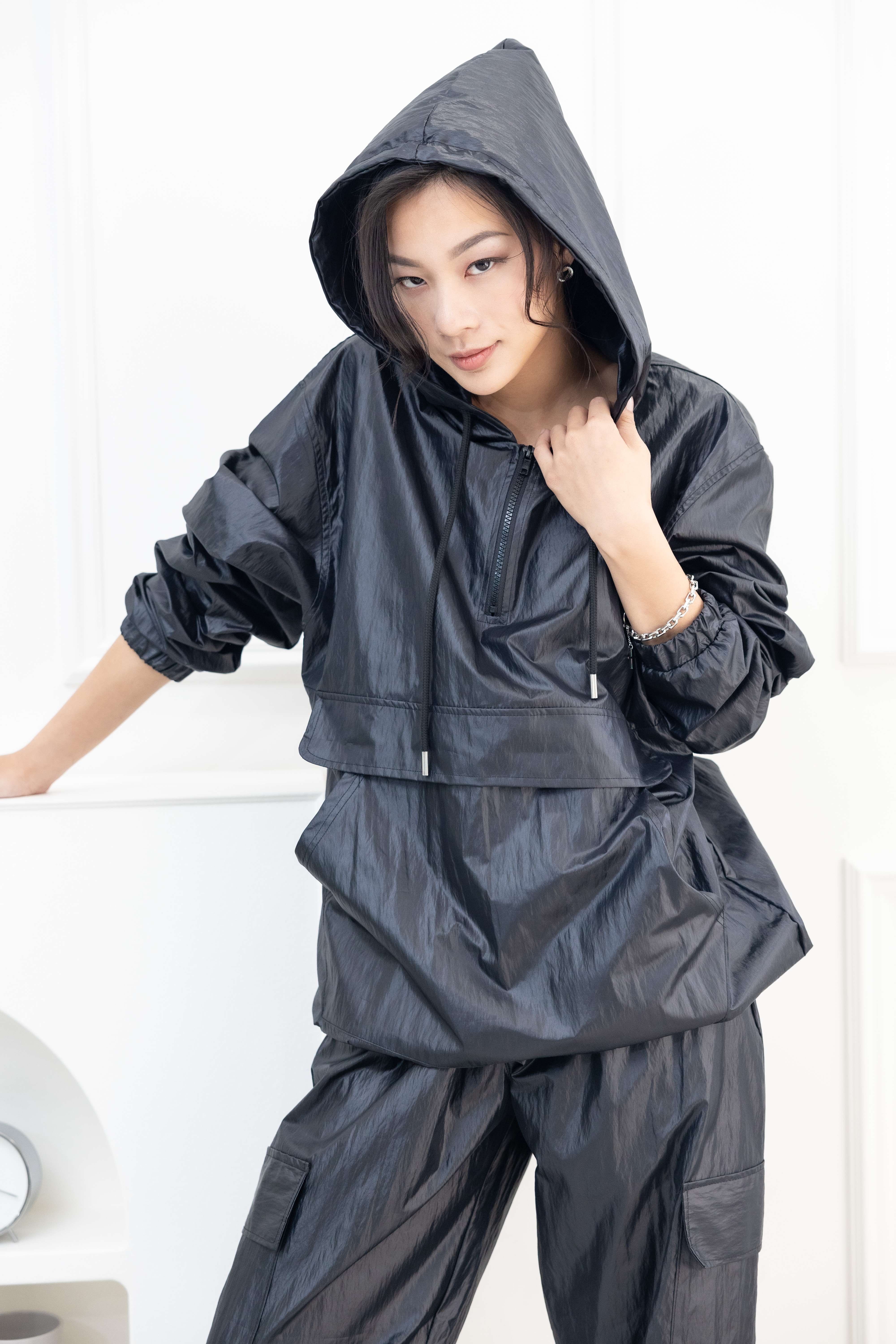 긴팔 防潑水連帽長袖上衣 / 黑色