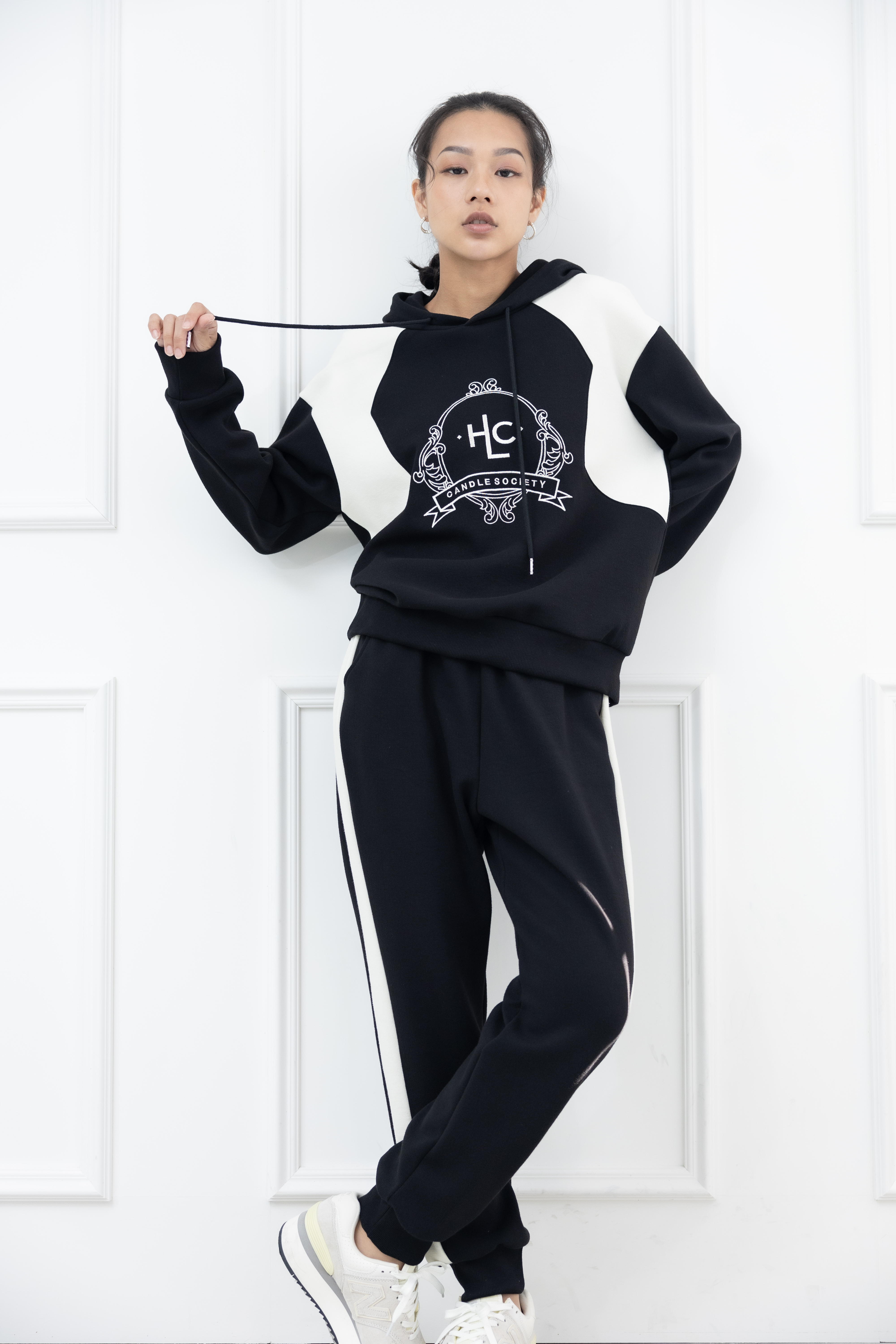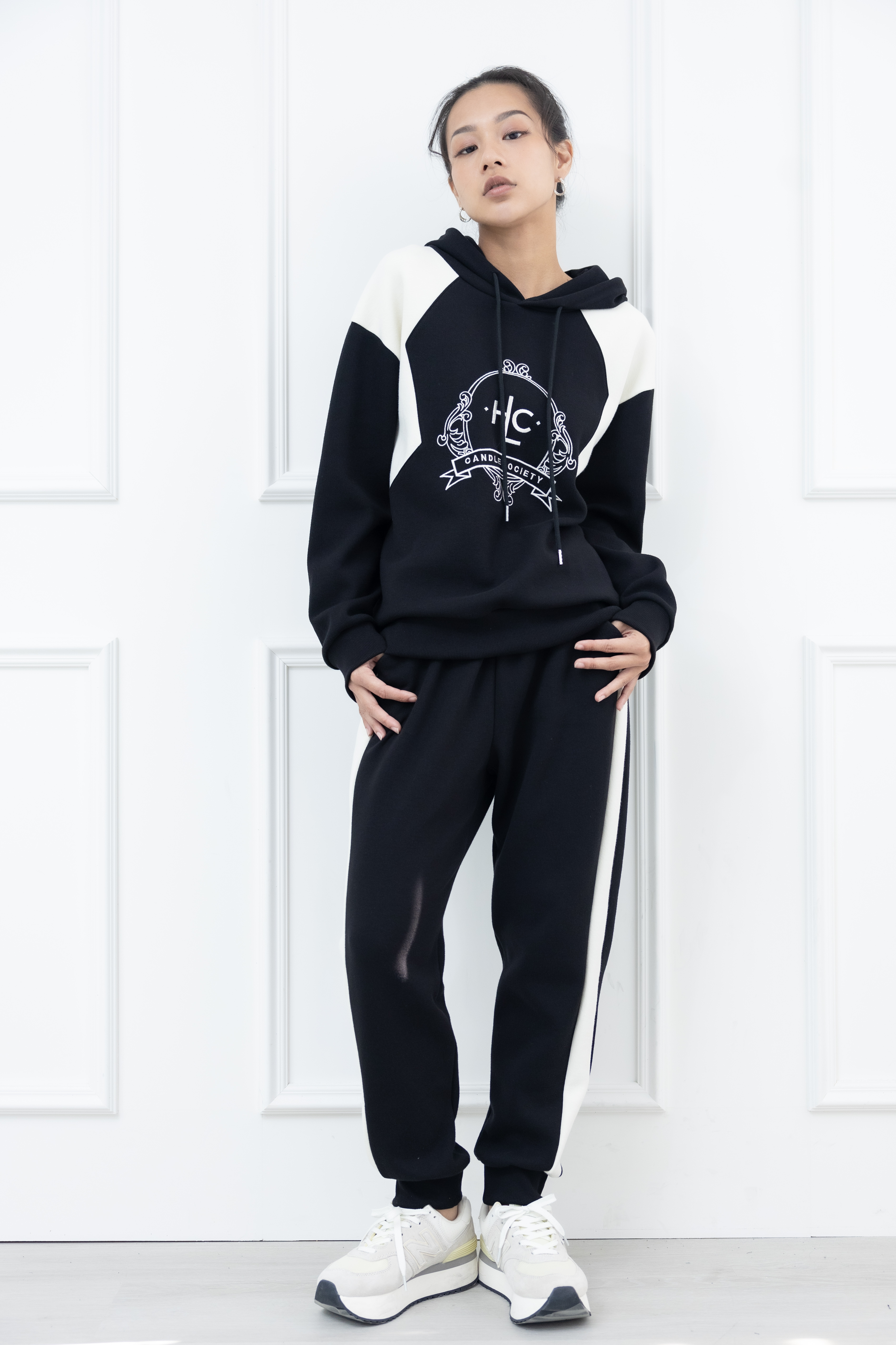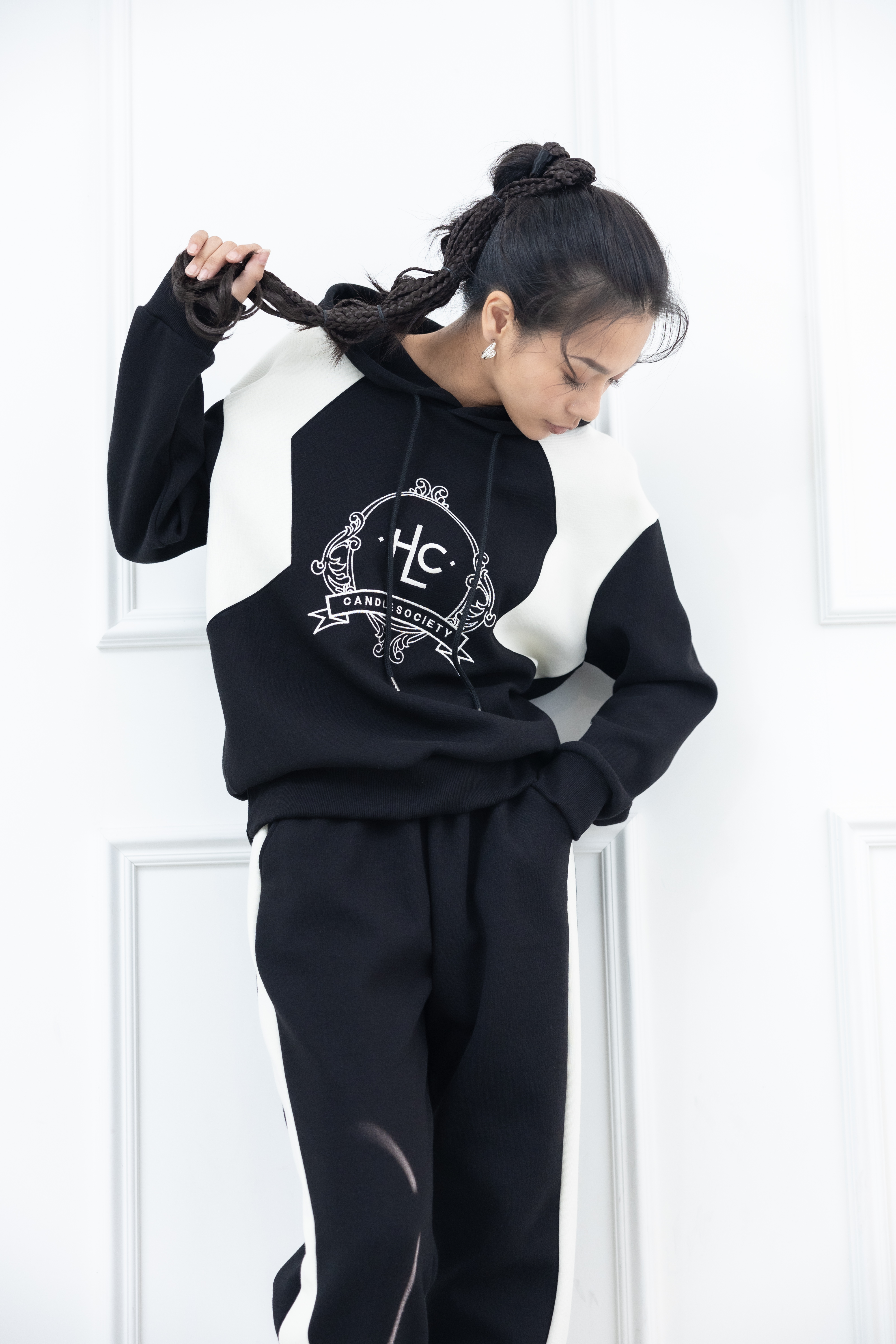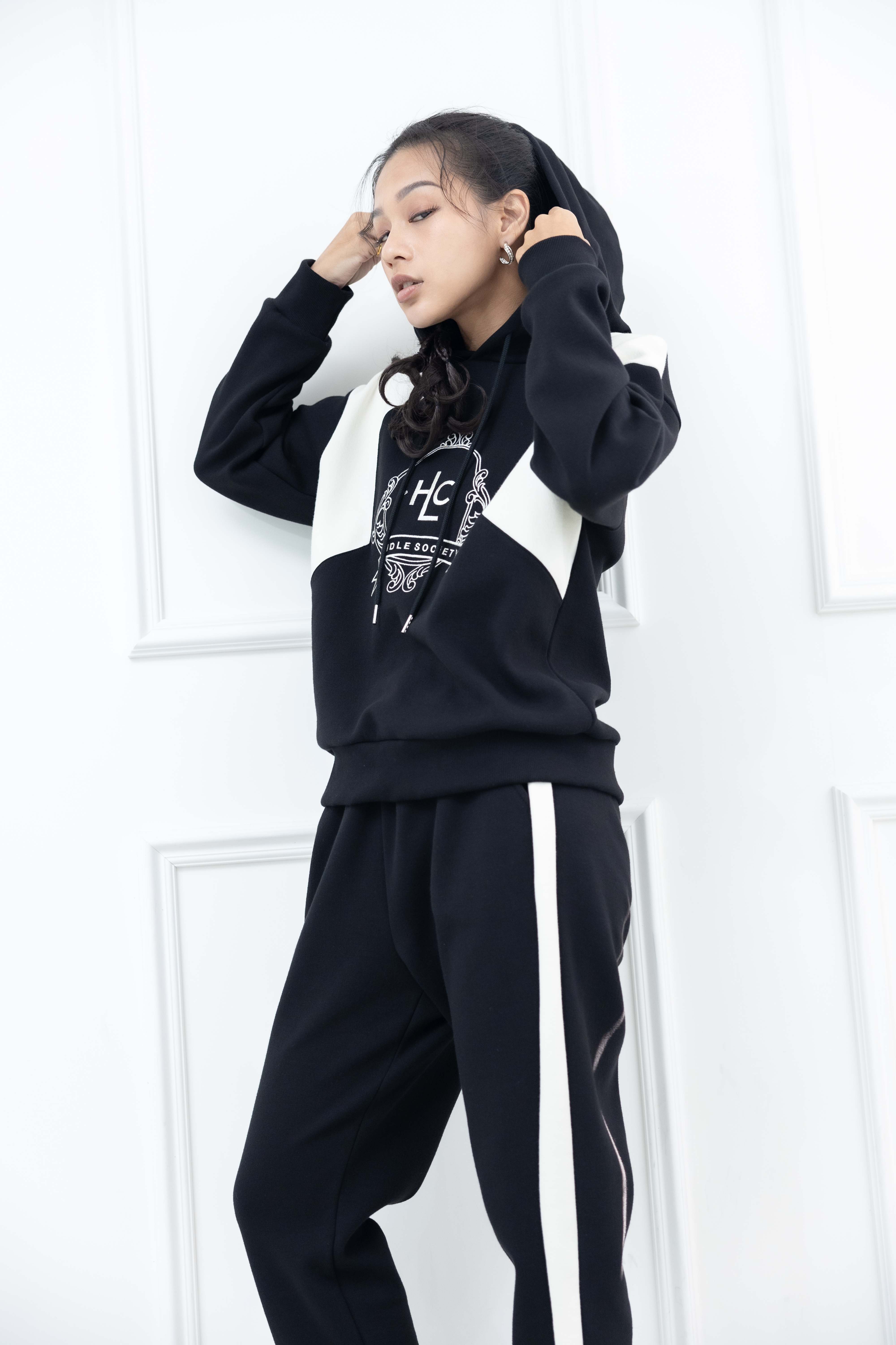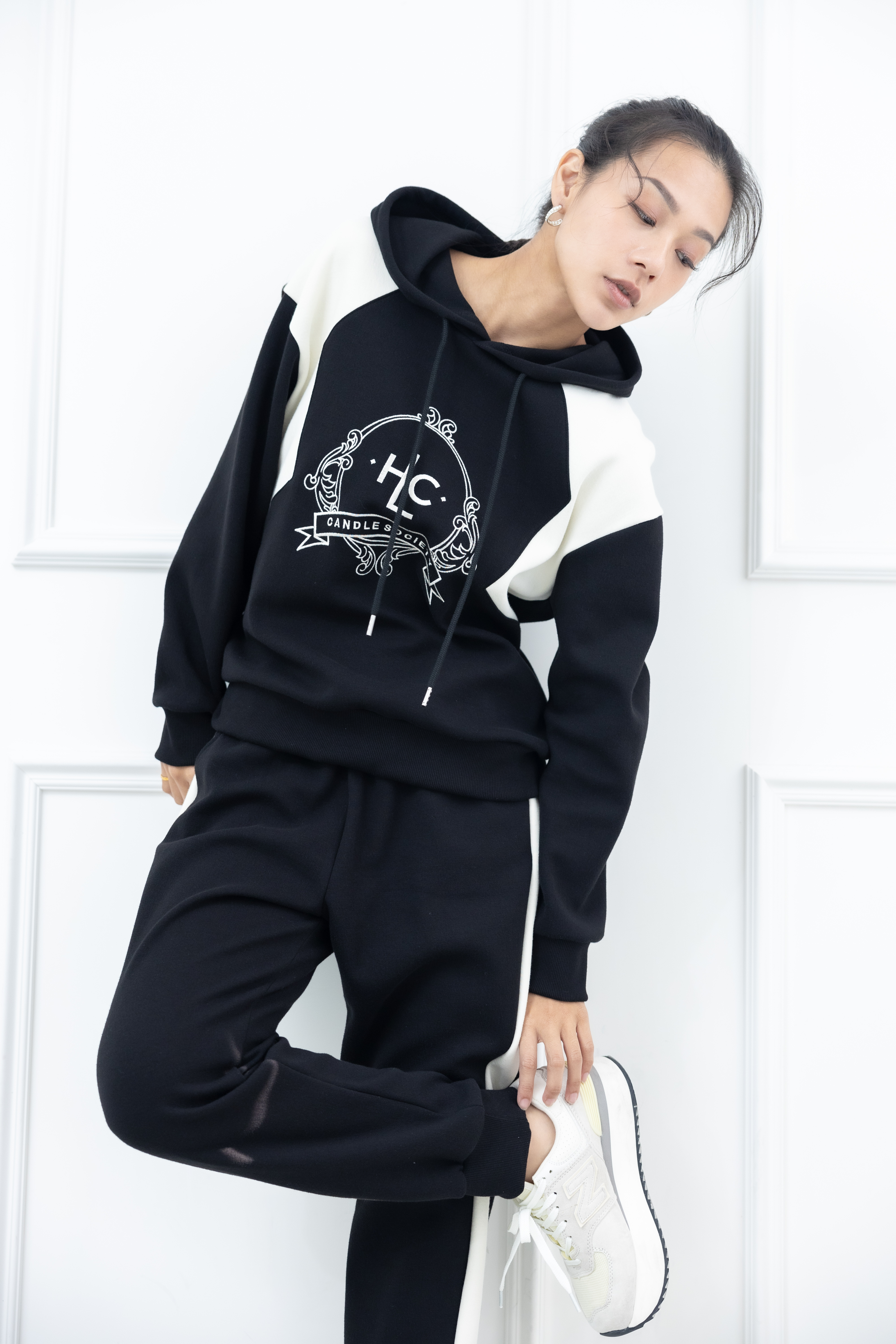 긴팔 電繡HLC連帽長袖上衣 / 黑白拼接