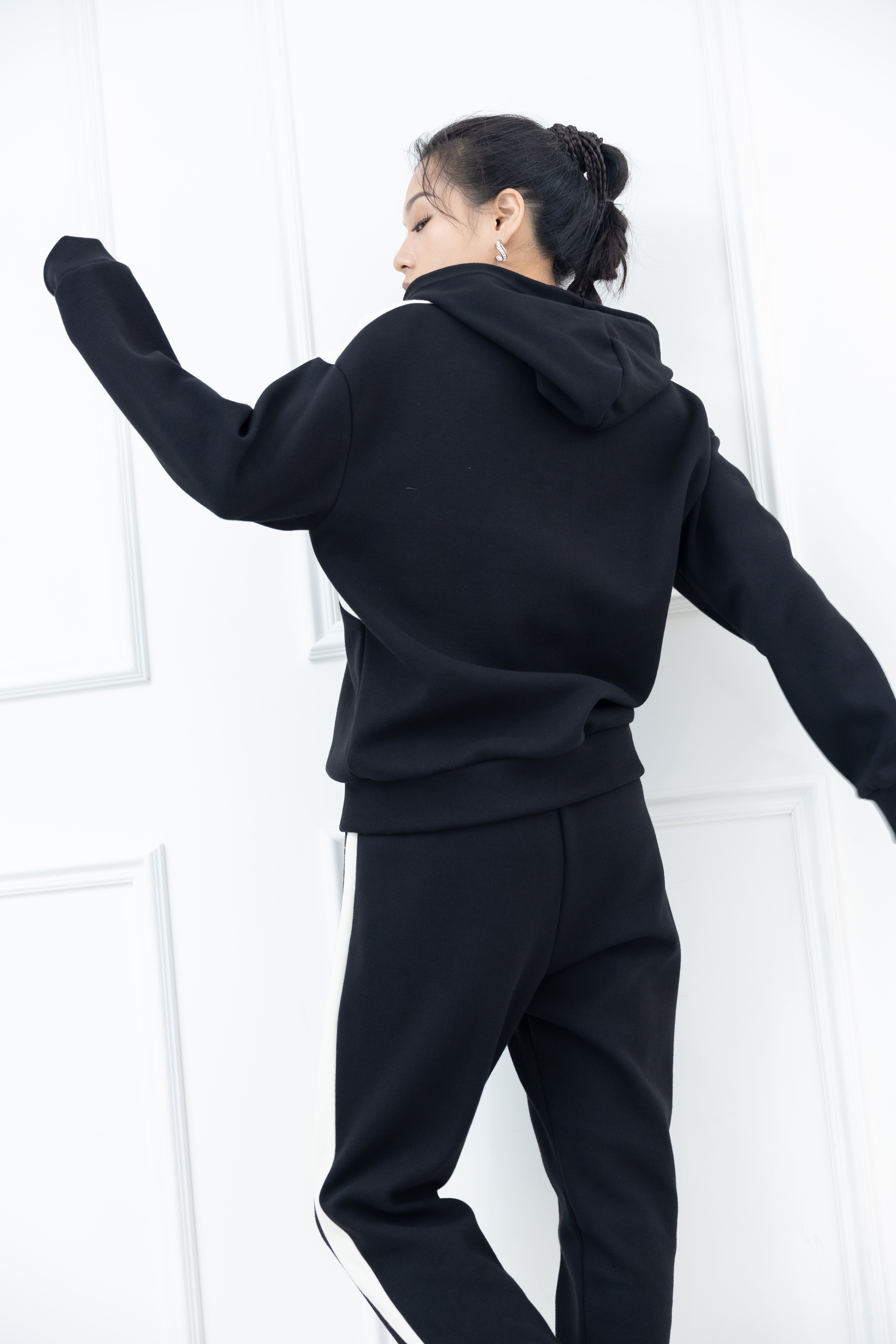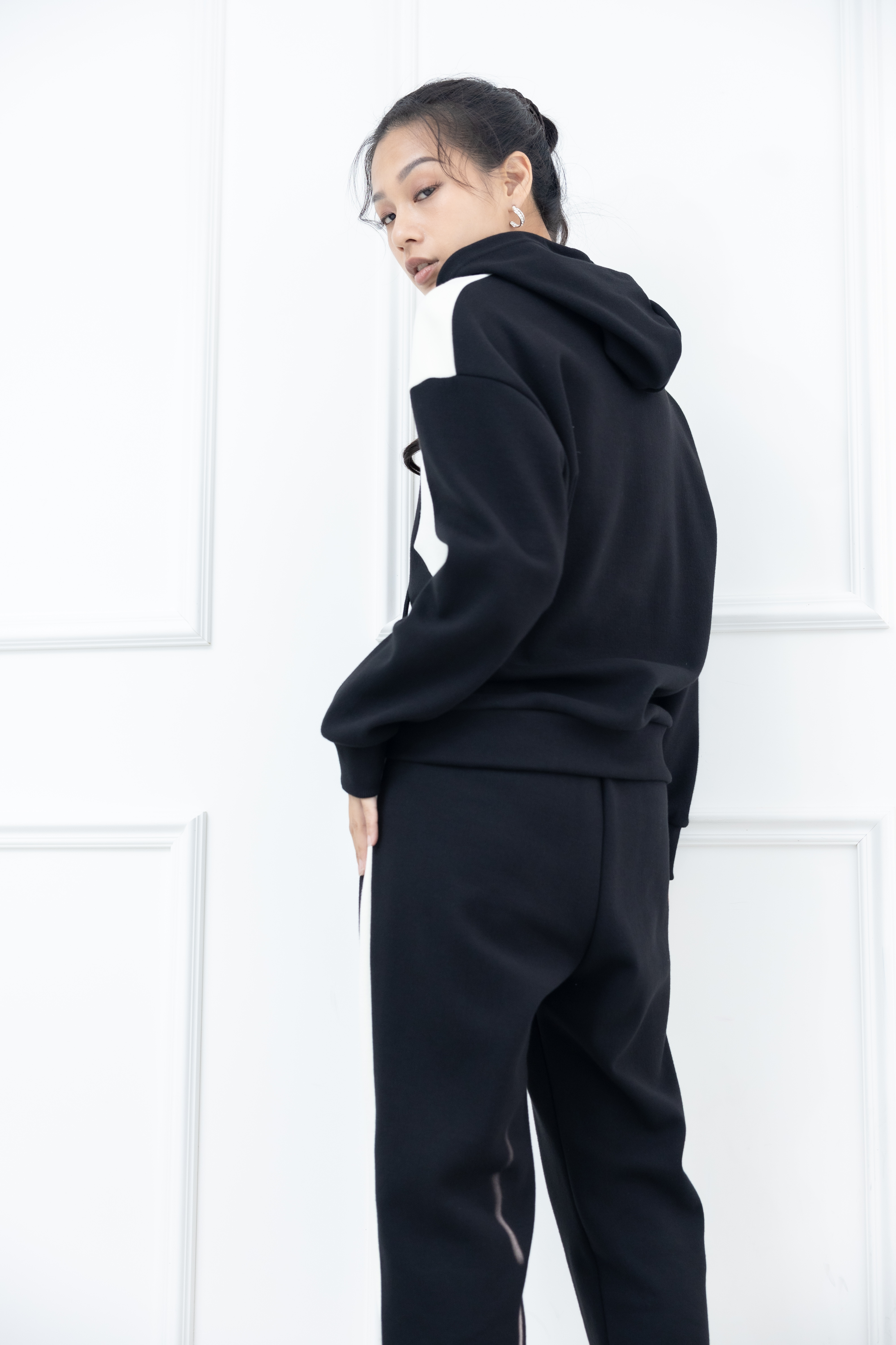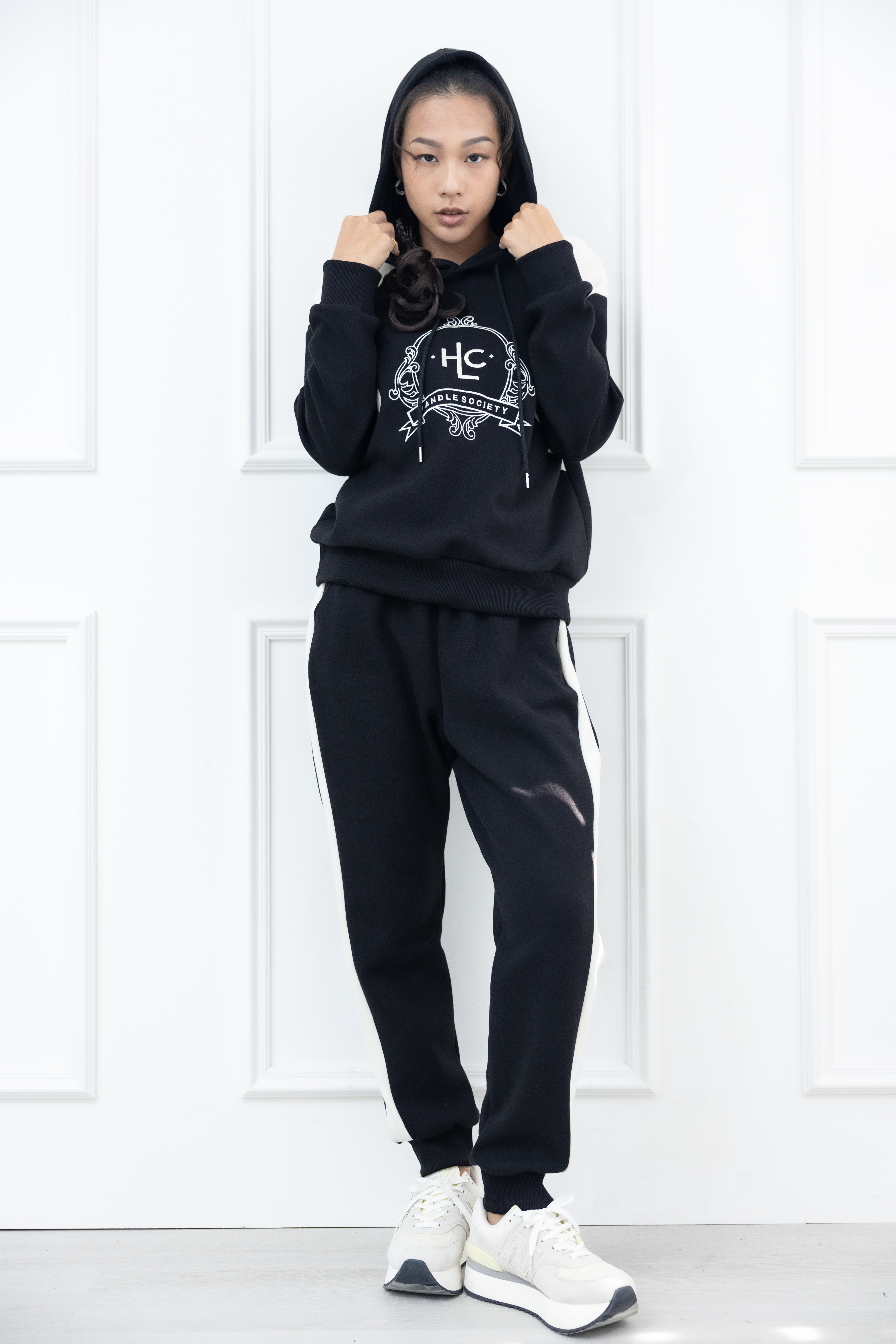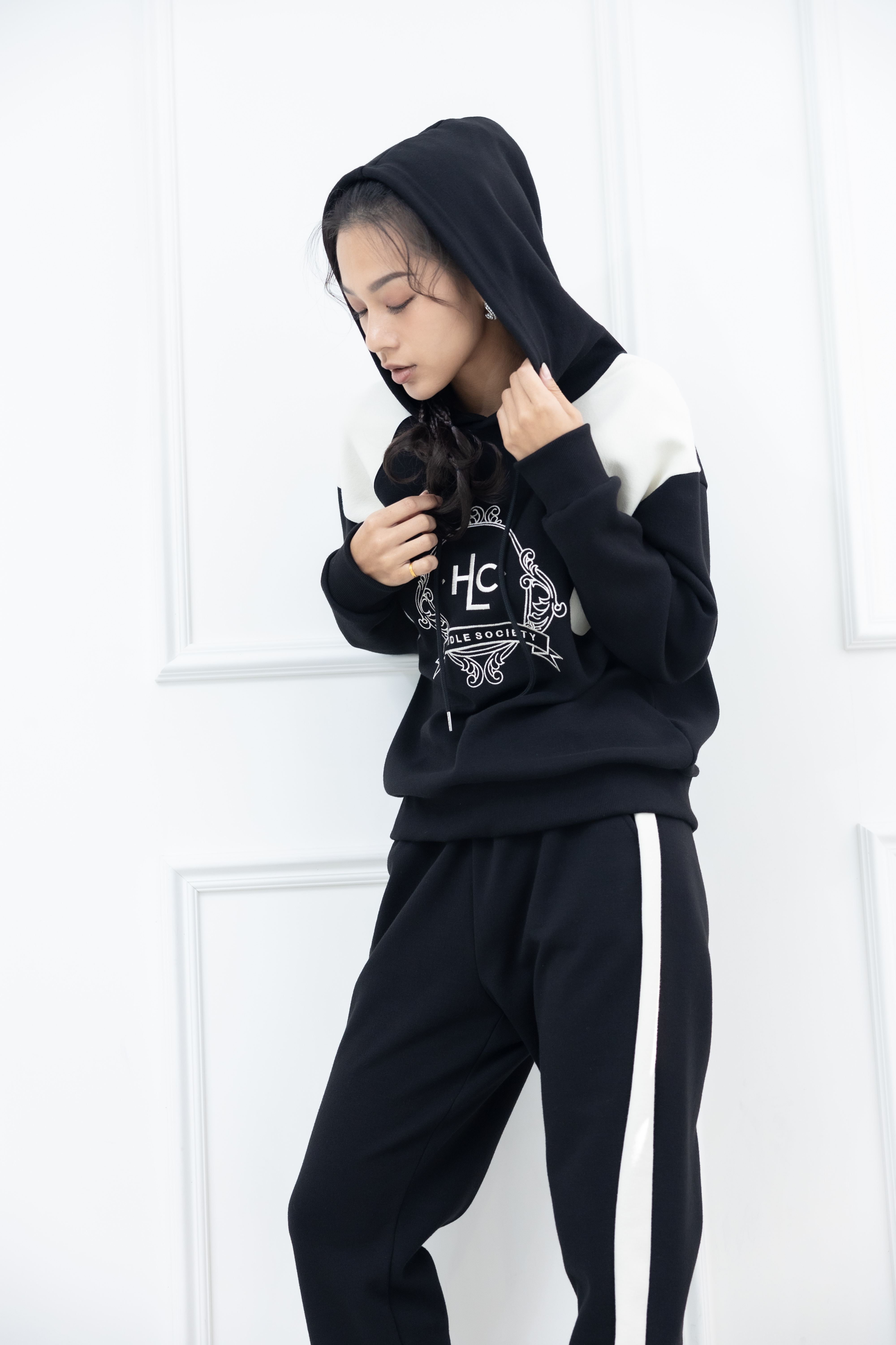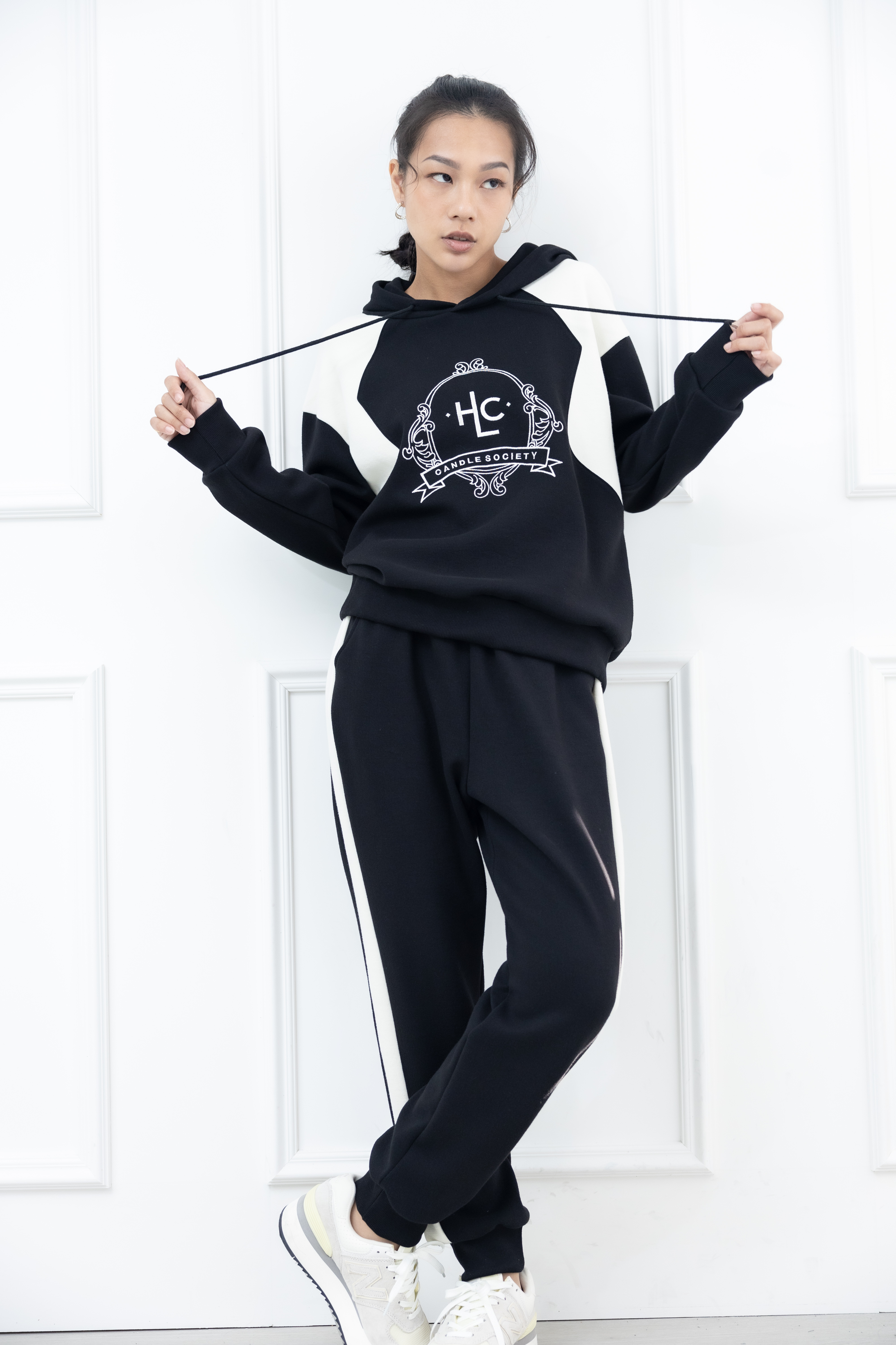 긴팔 電繡HLC連帽長袖上衣 / 黑白拼接
