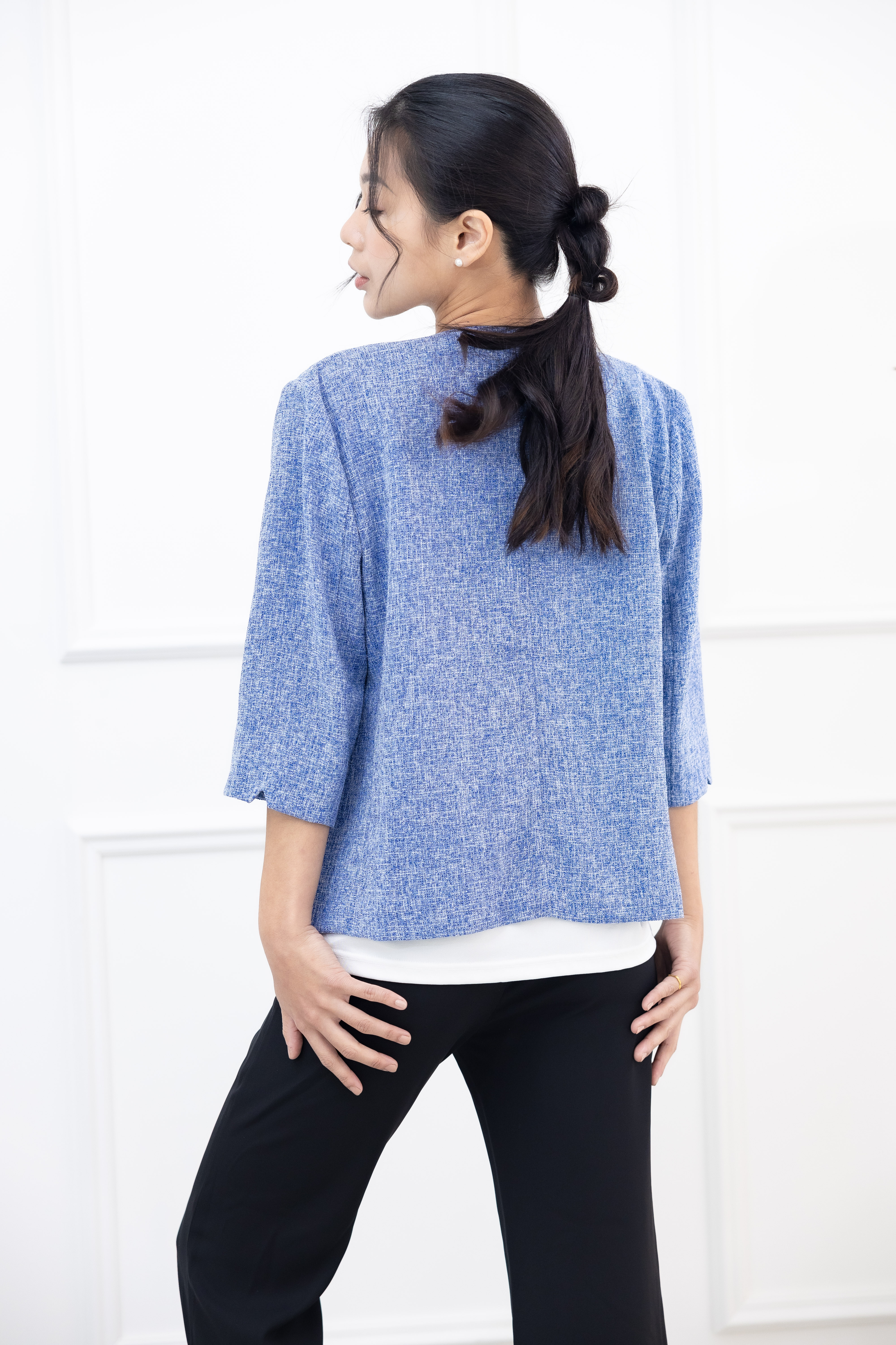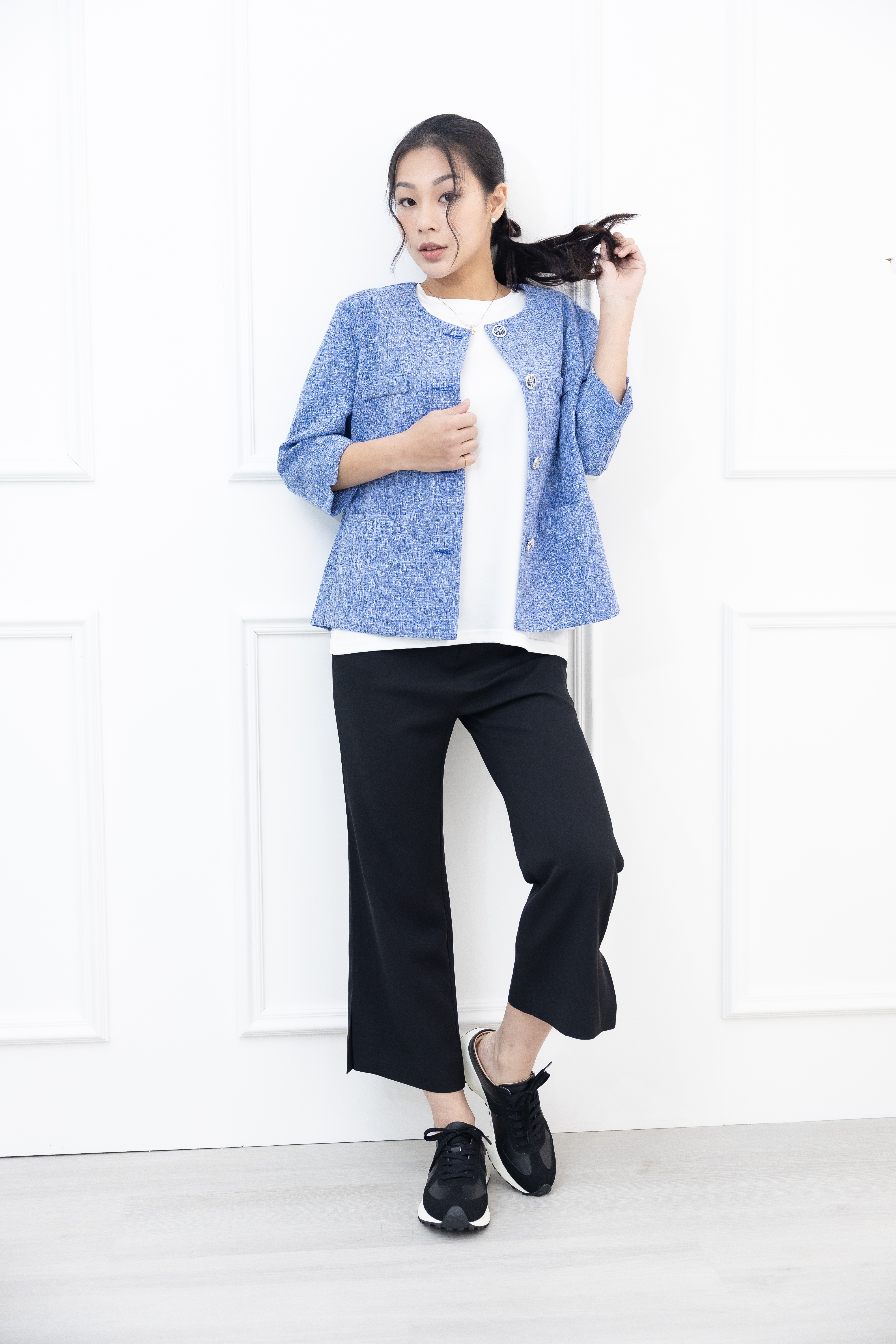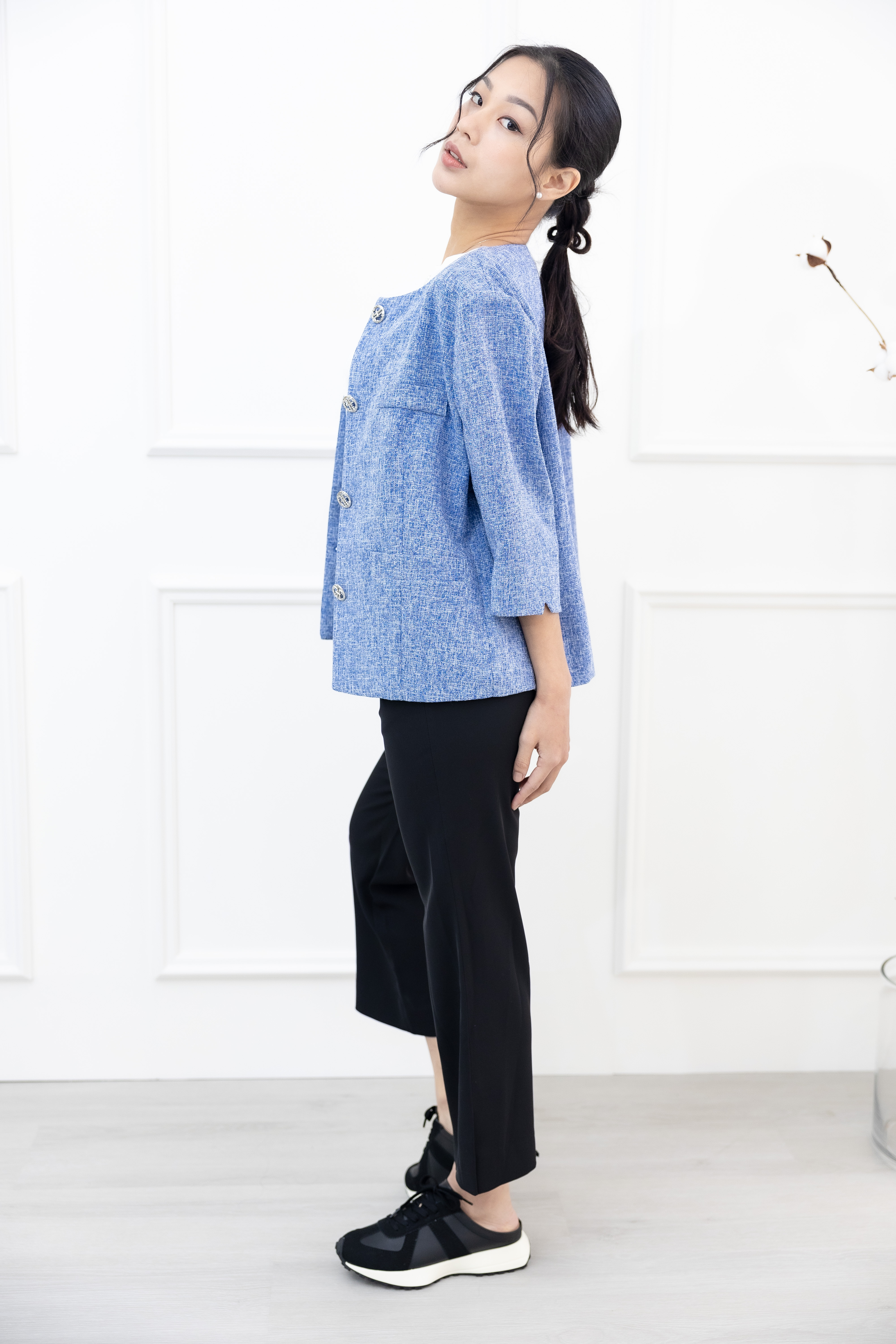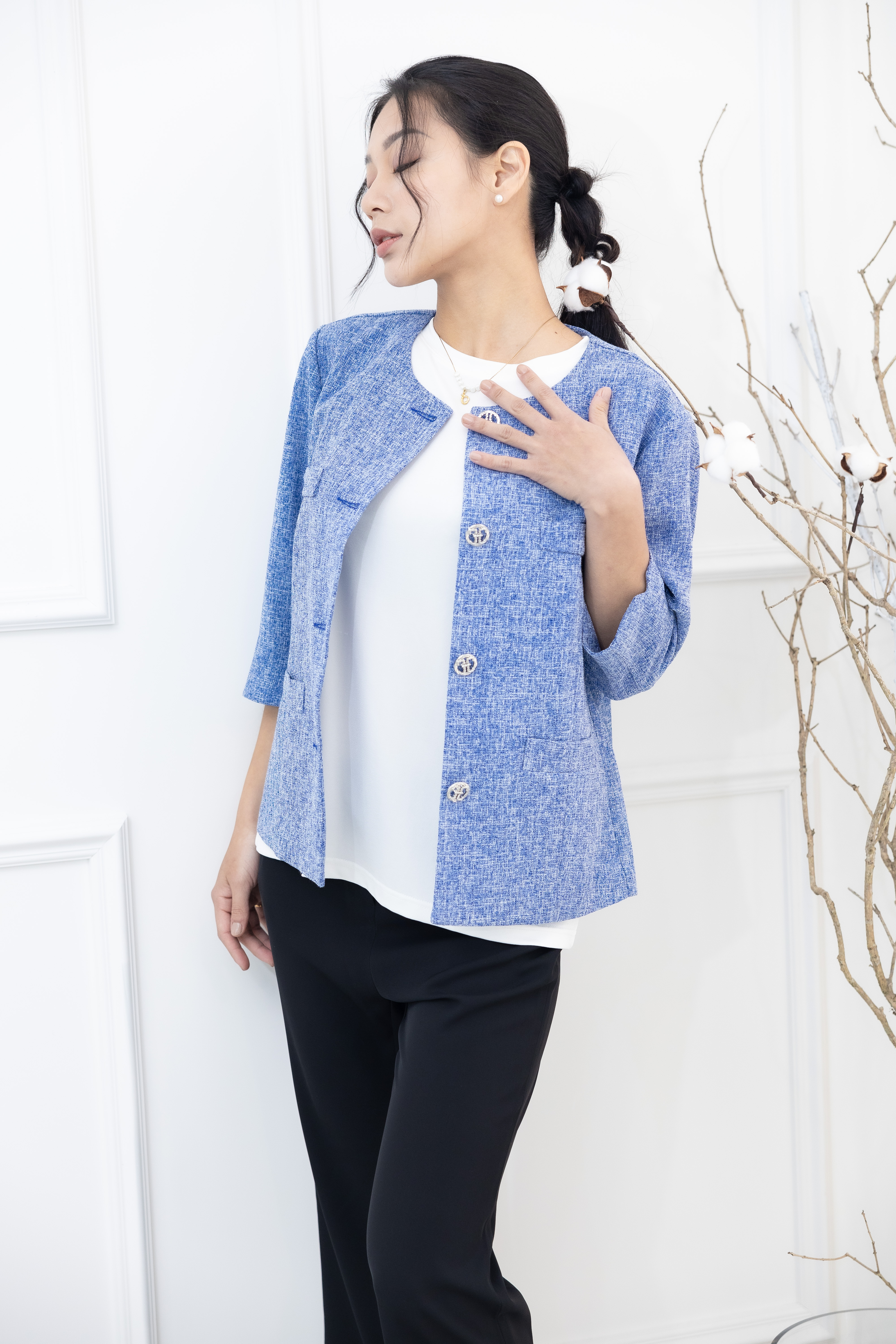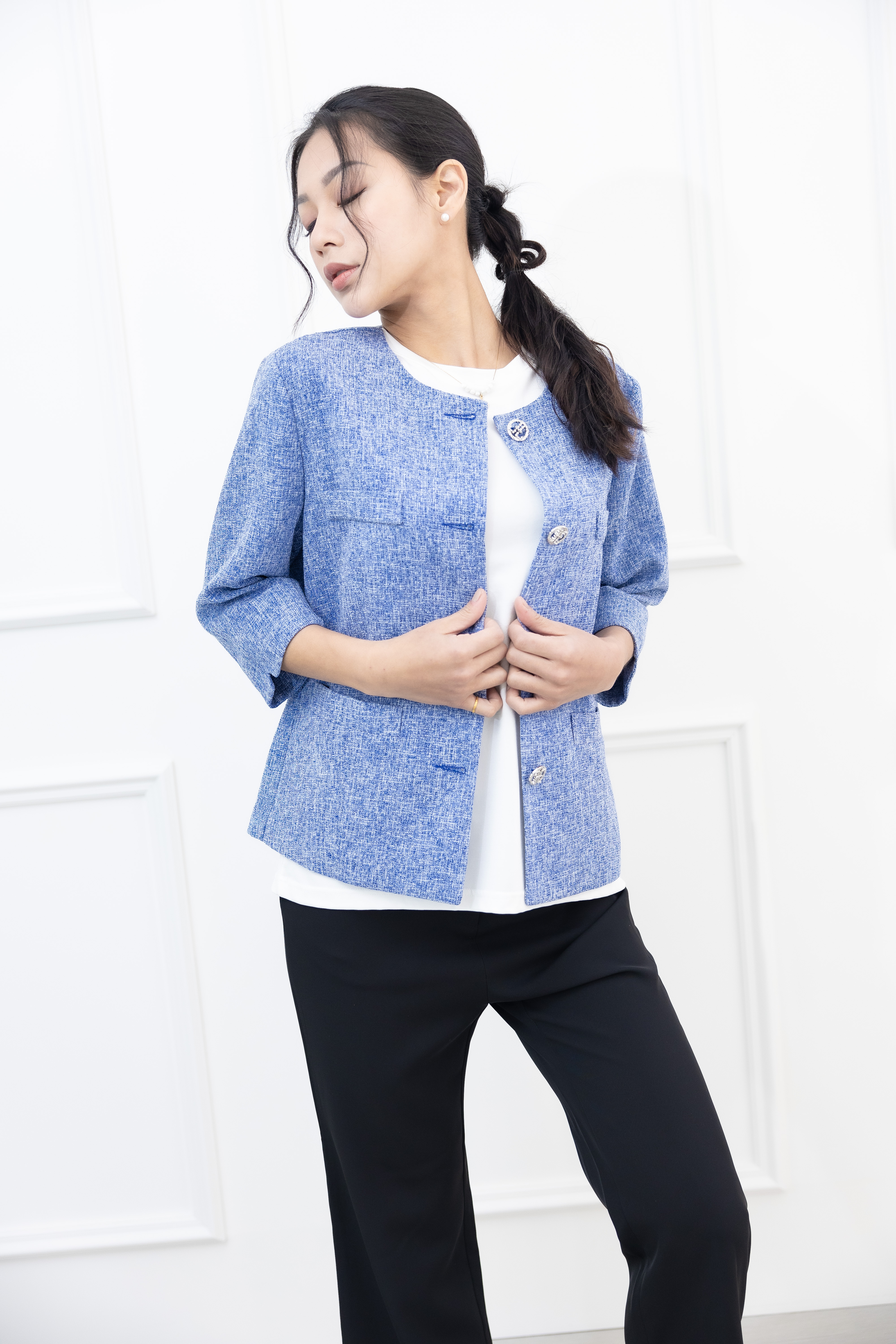 긴팔 코트 氣質小香風七分袖外套 / 藍色