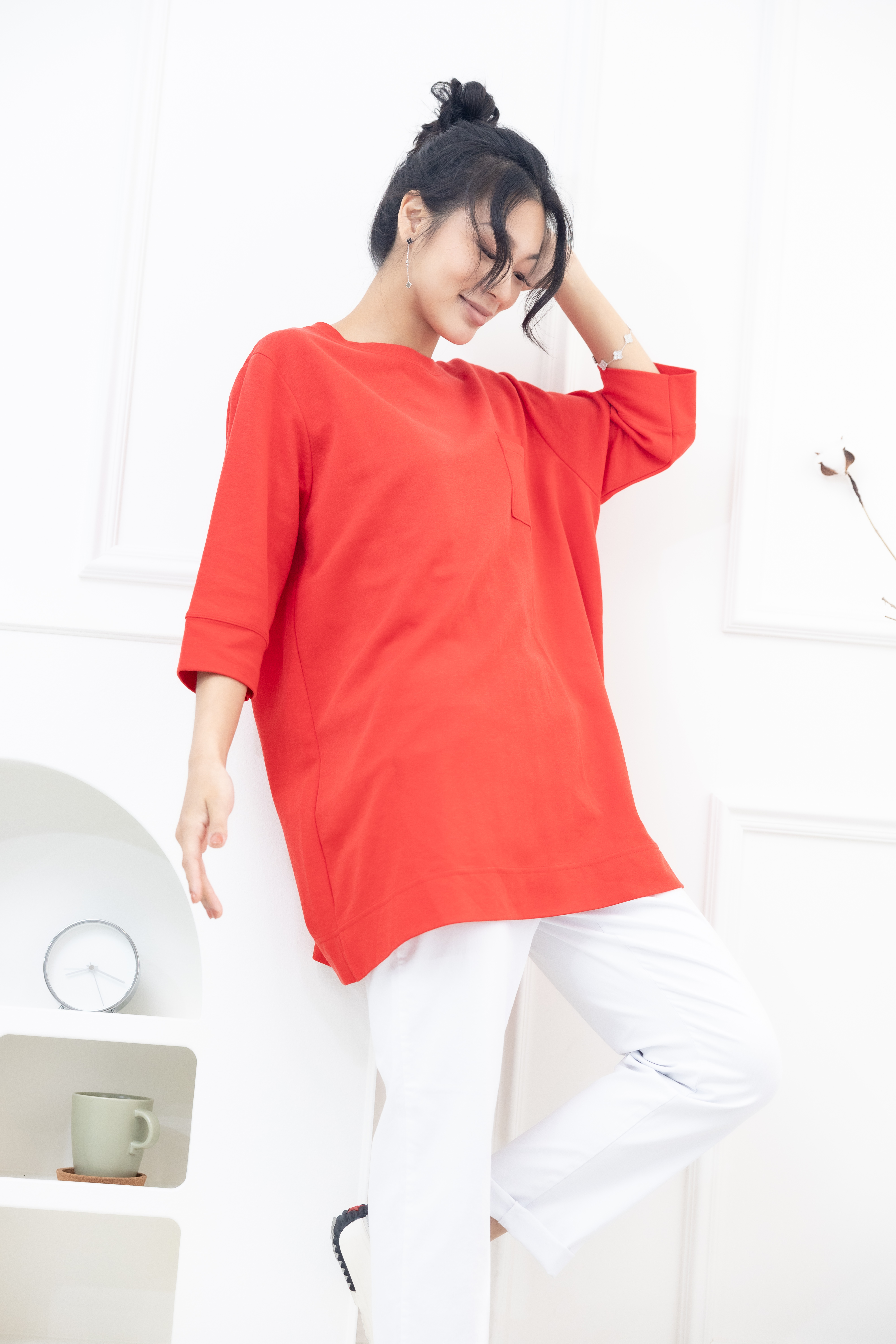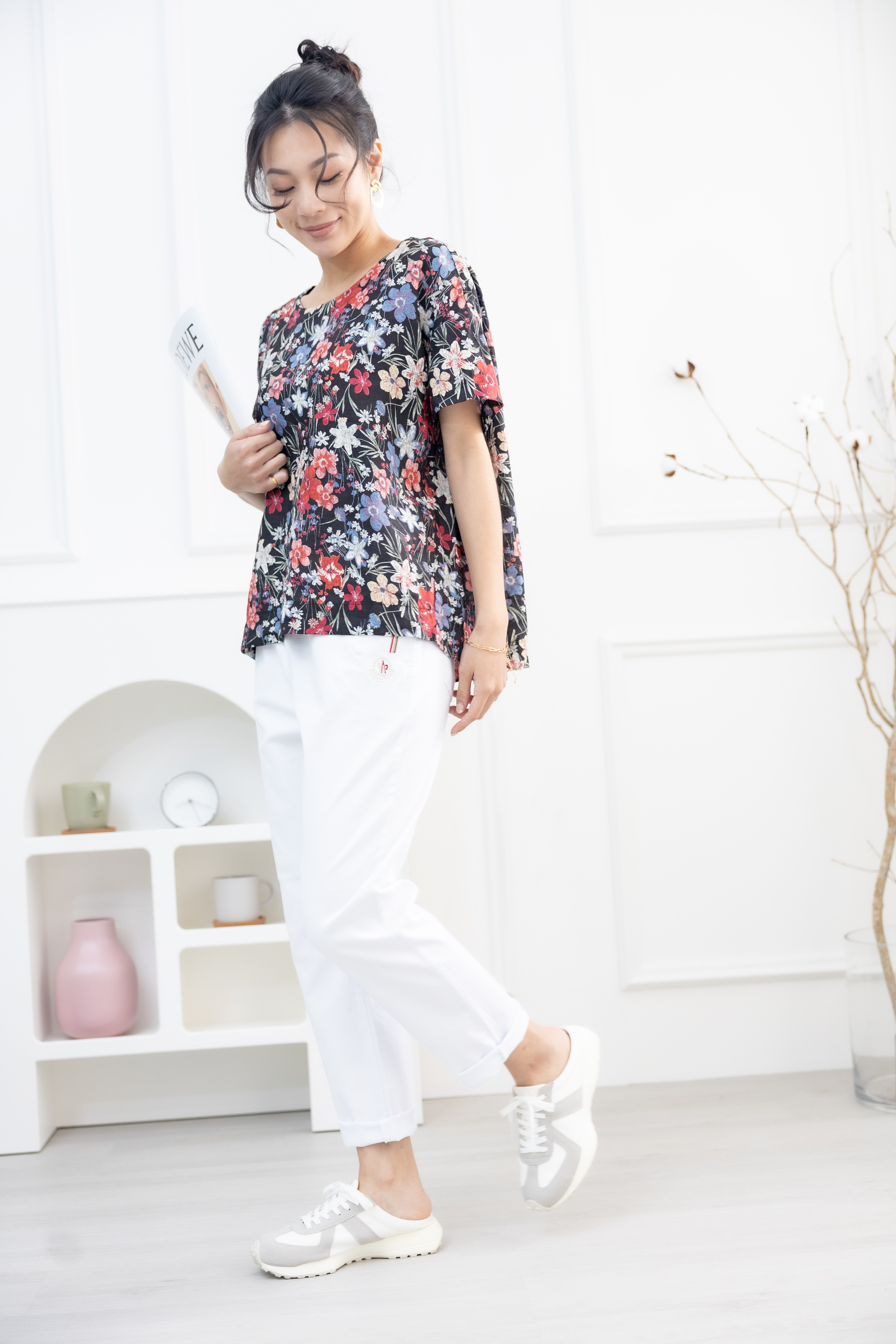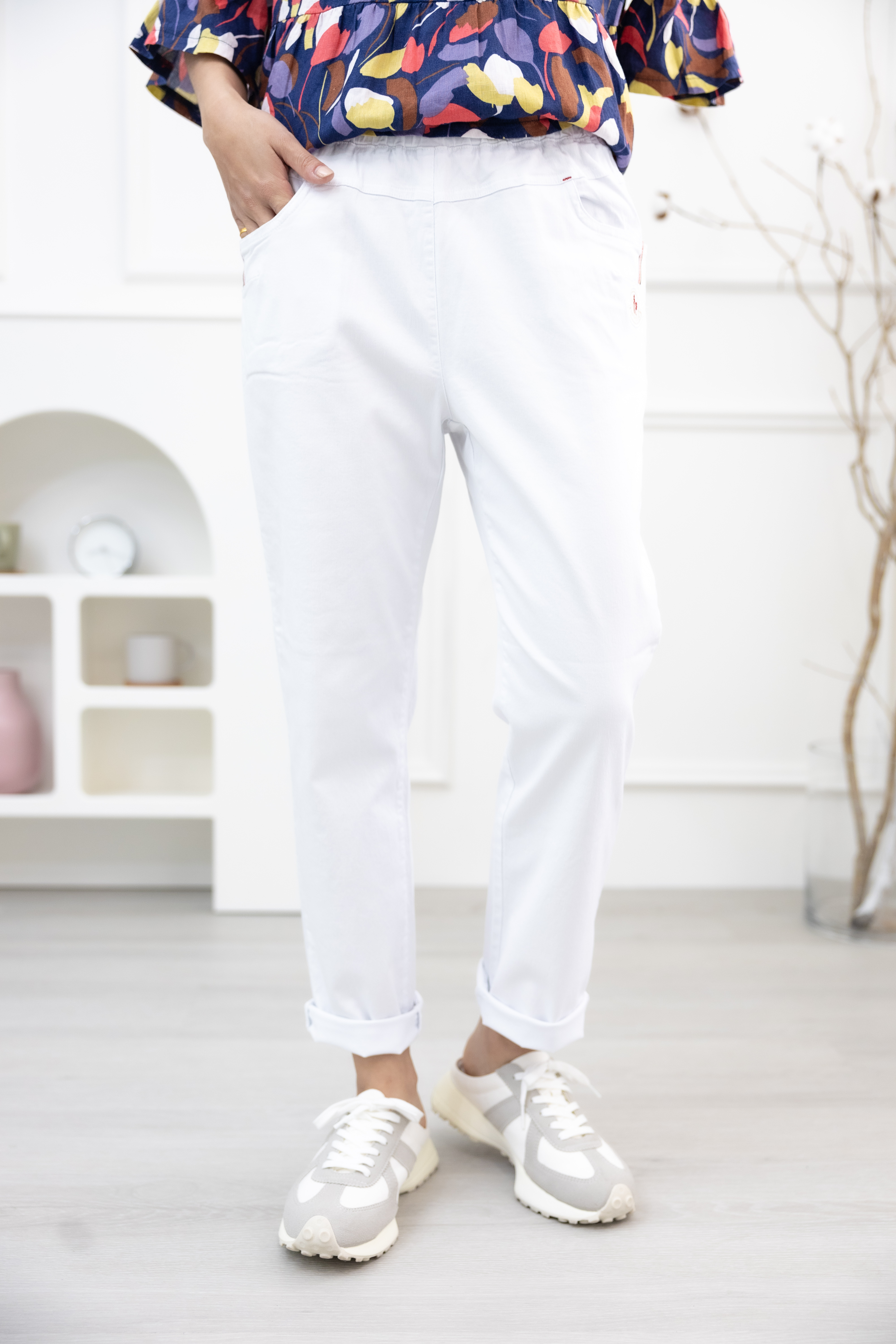 긴 바지 口袋電繡MONCOLF 直筒長褲 / 白色