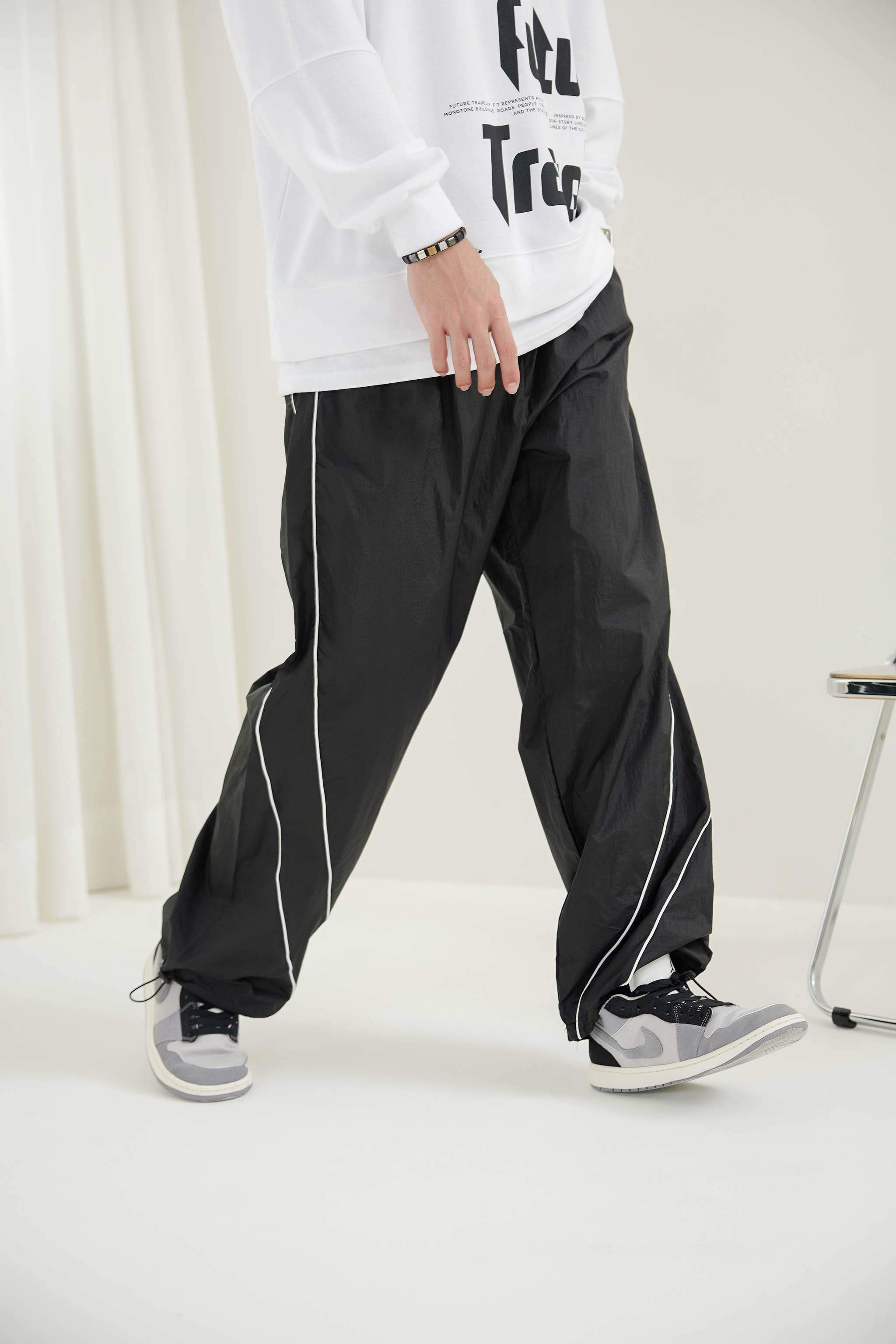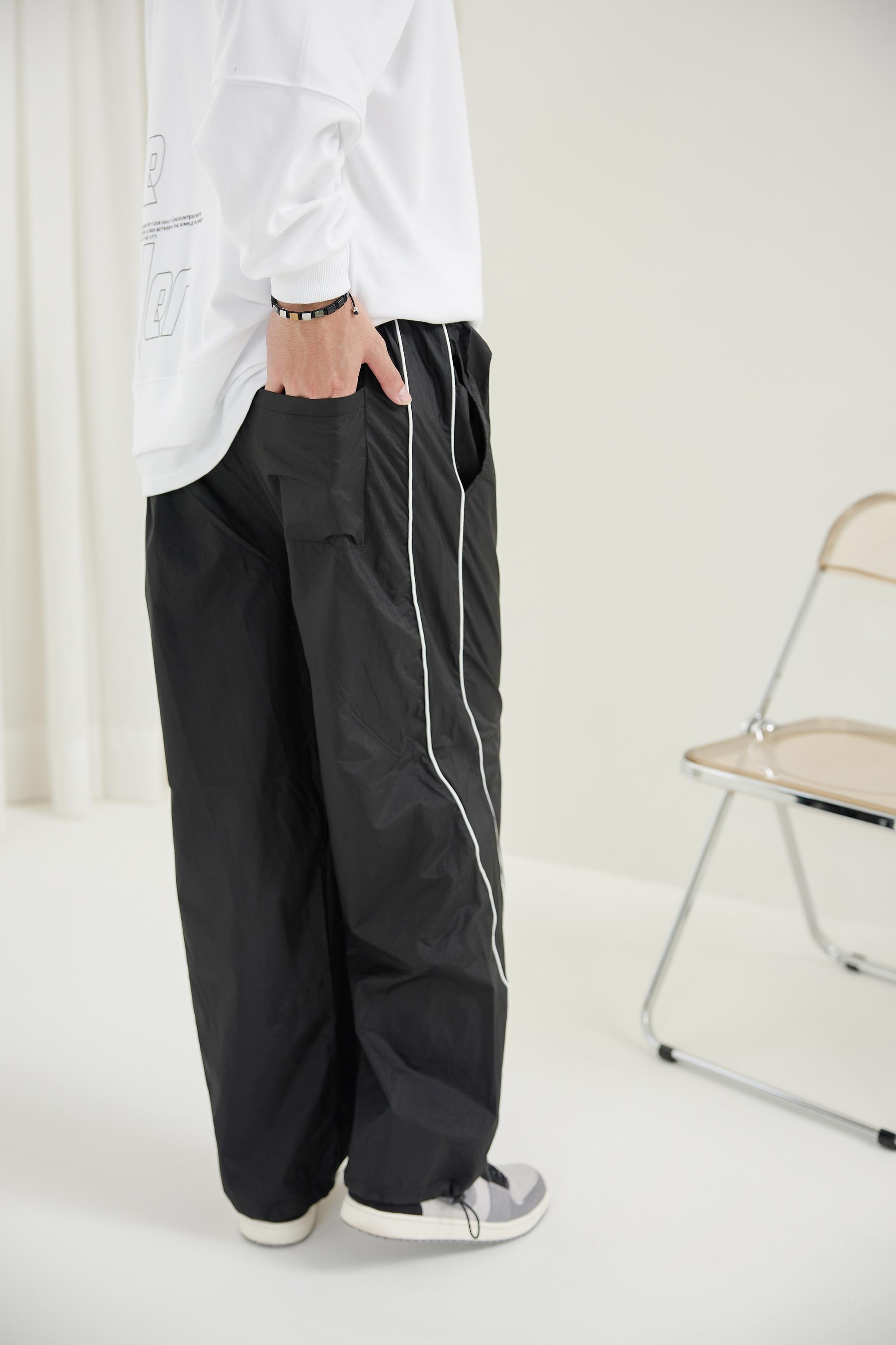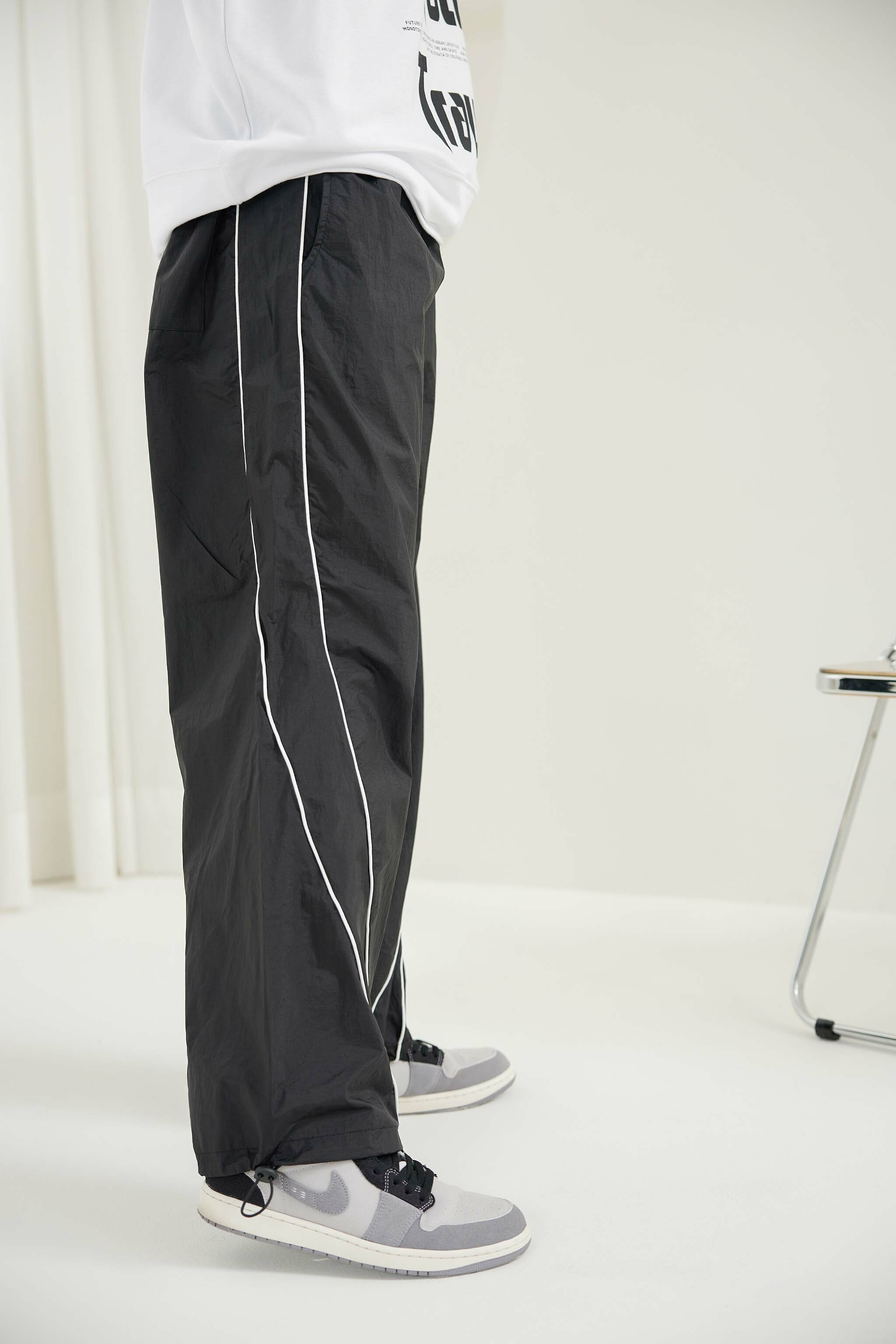 긴 바지 尼龍線條長褲 / 黑色