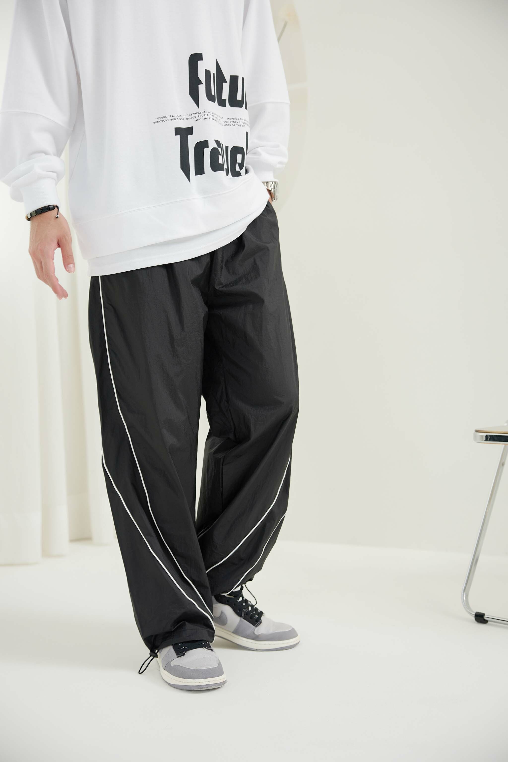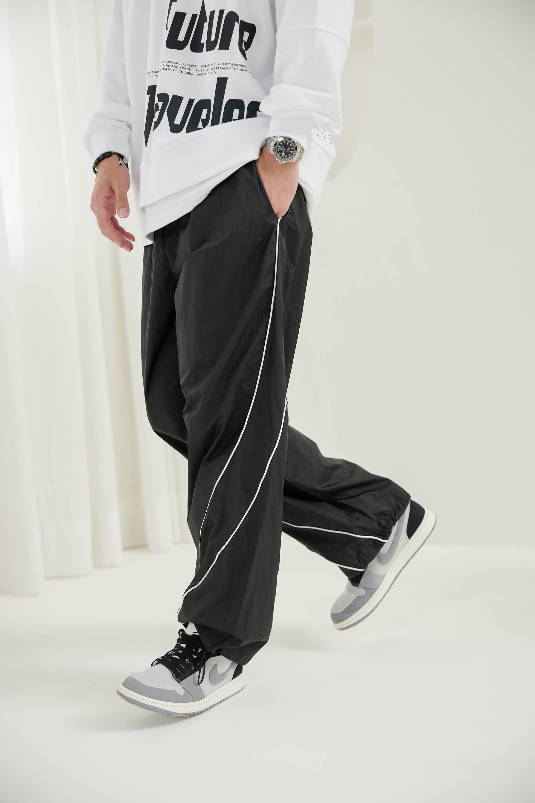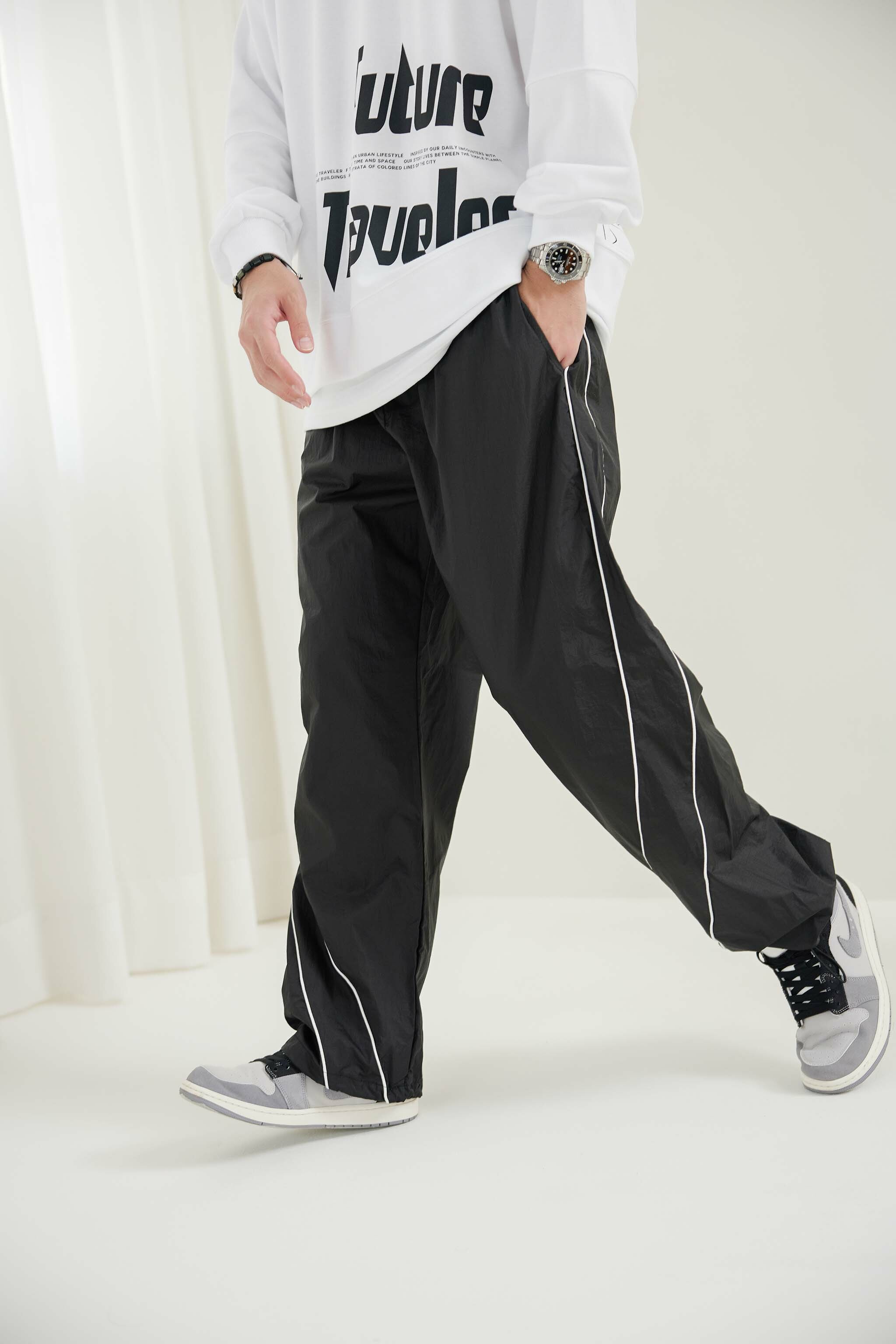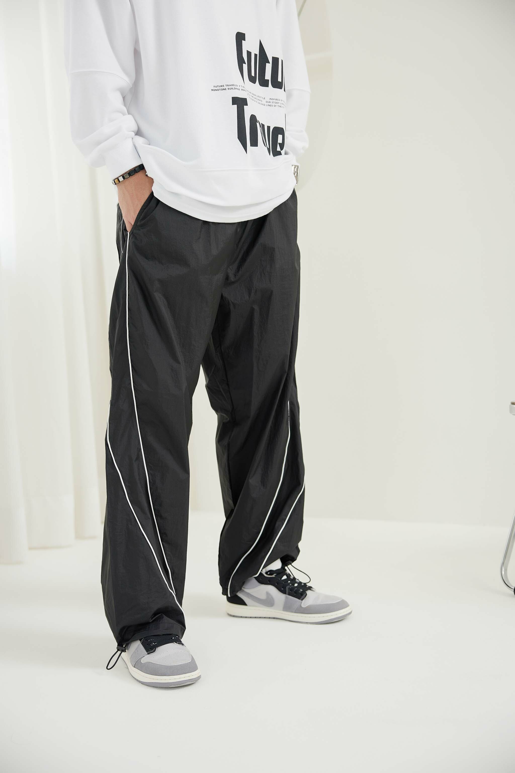 긴 바지 尼龍線條長褲 / 黑色