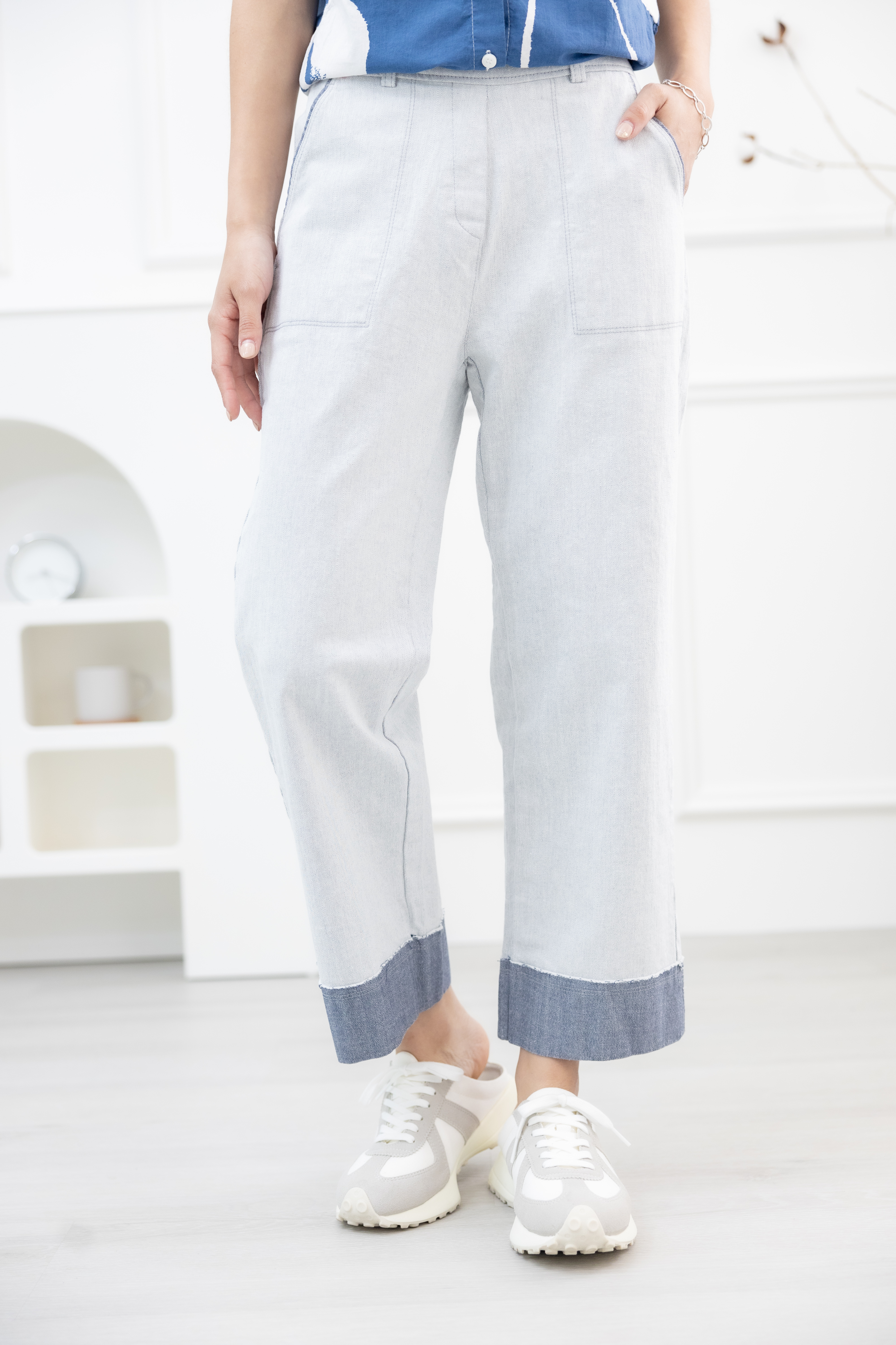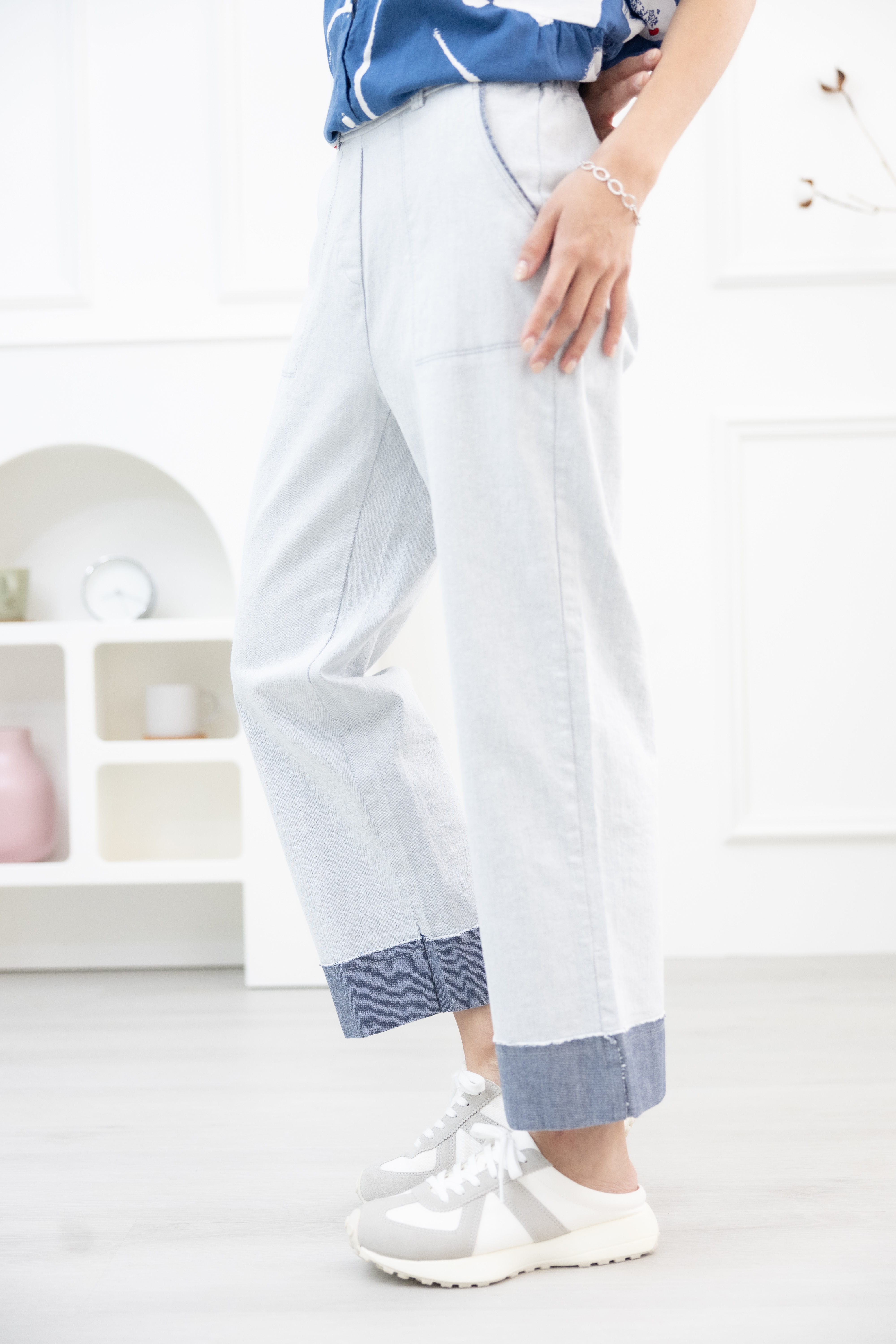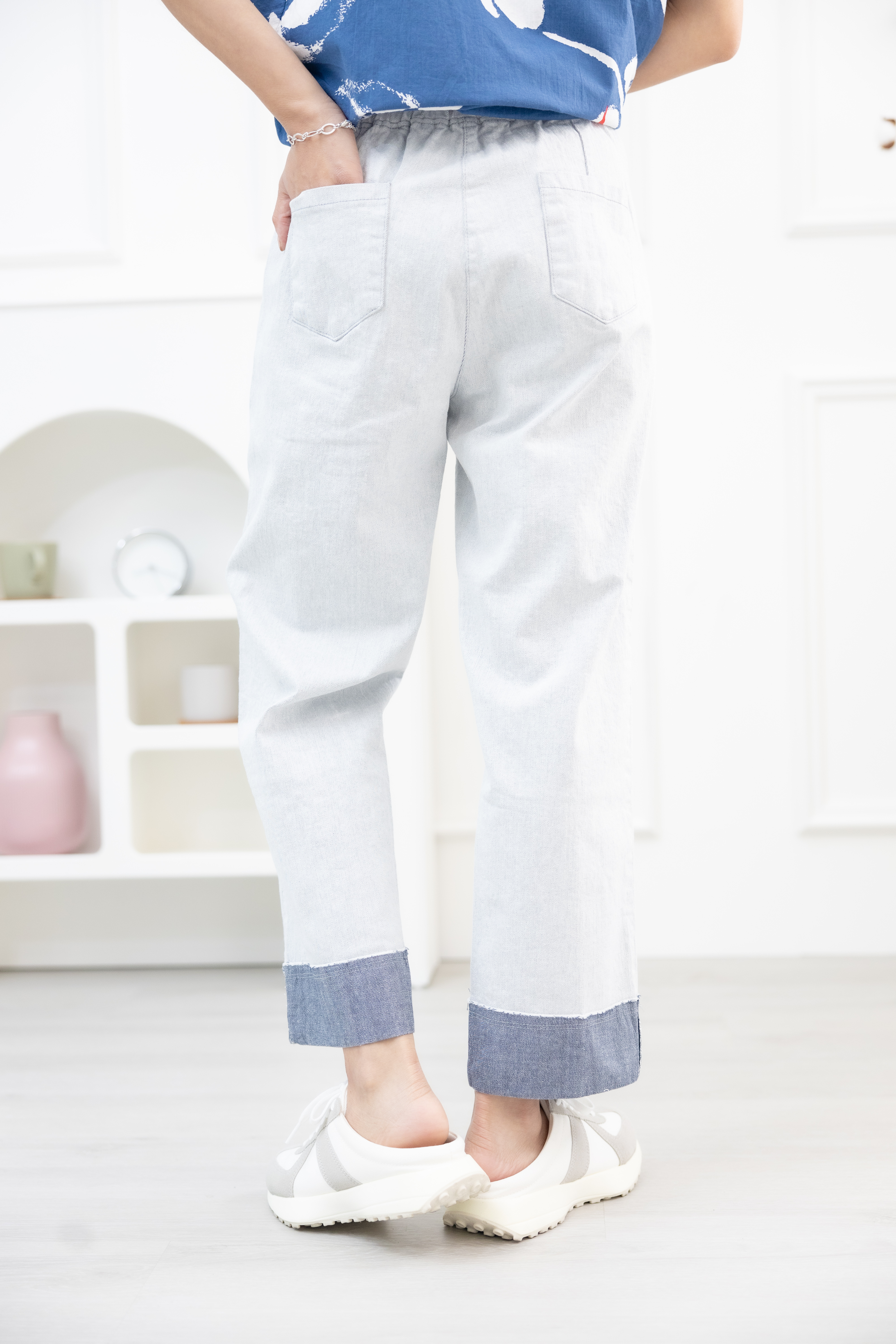 긴 바지 撞色水洗牛仔長褲 / 灰色