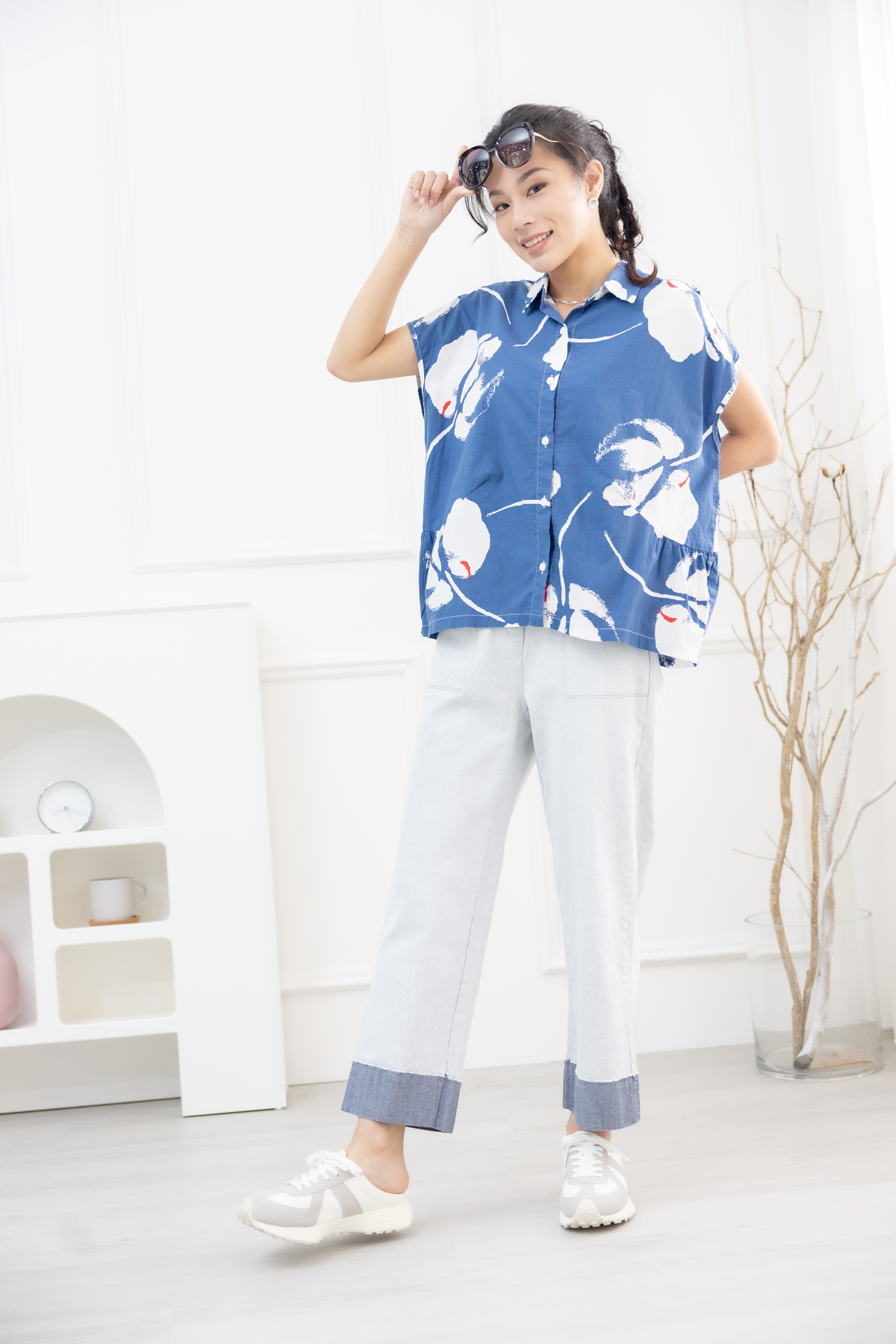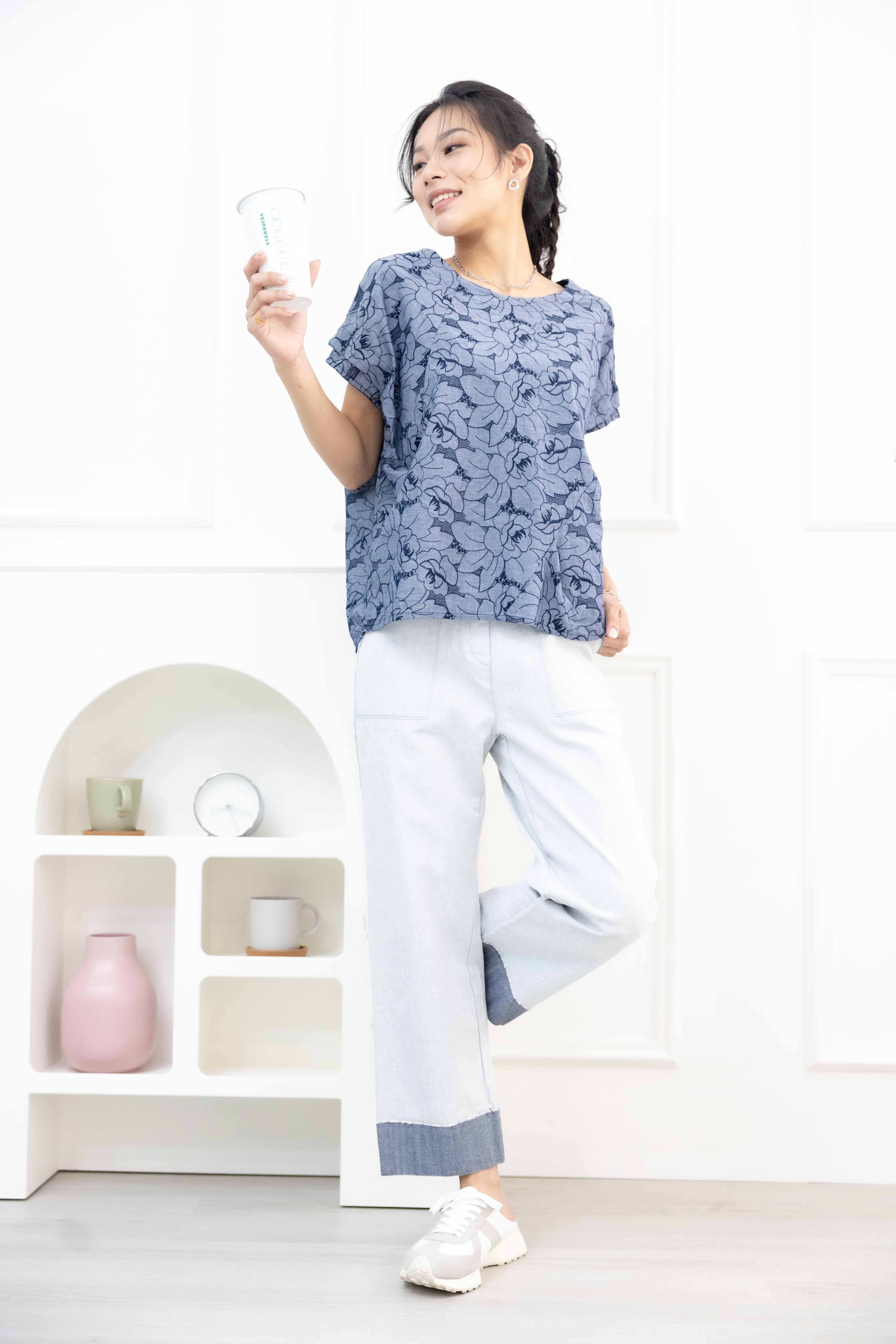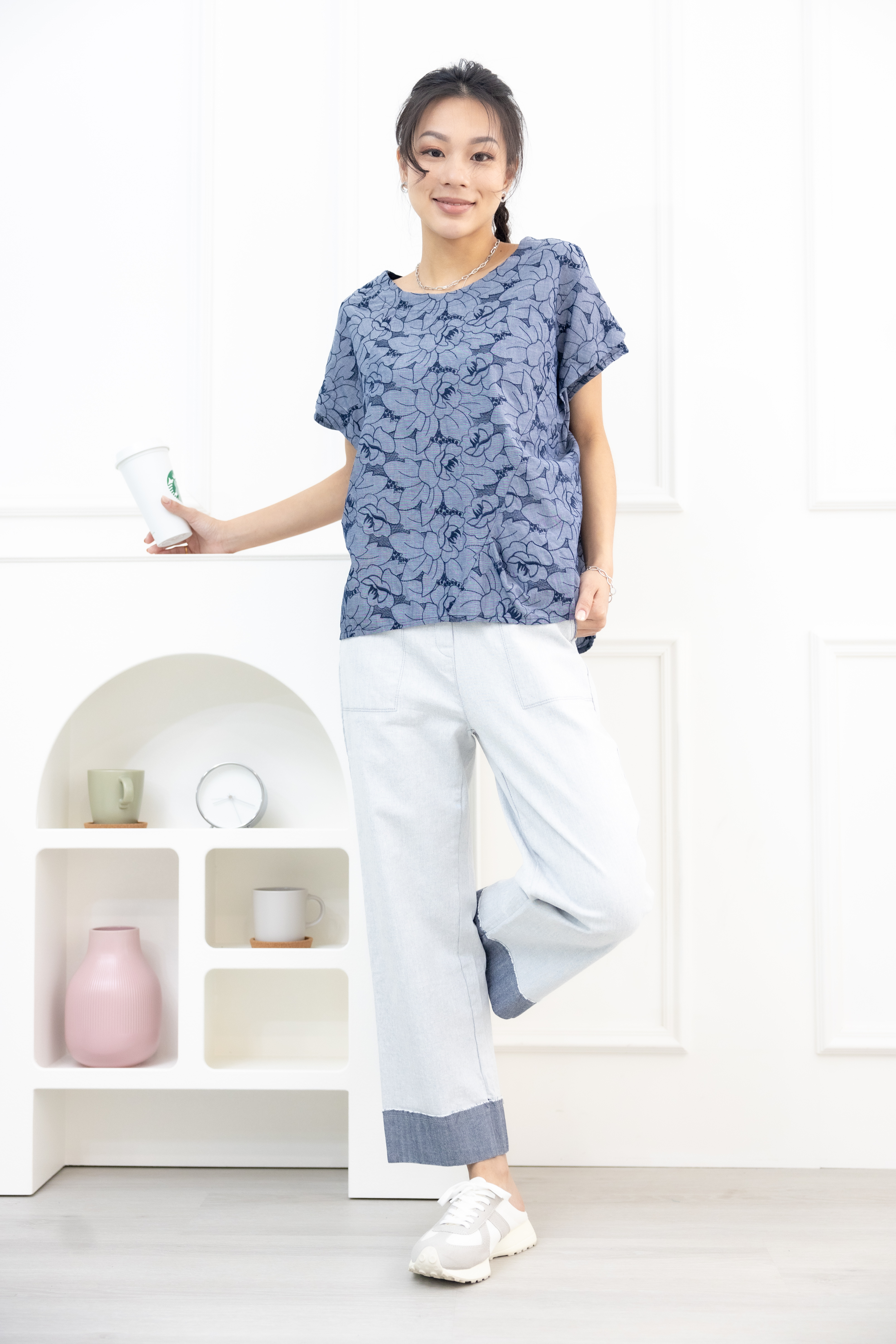 긴 바지 撞色水洗牛仔長褲 / 灰色
