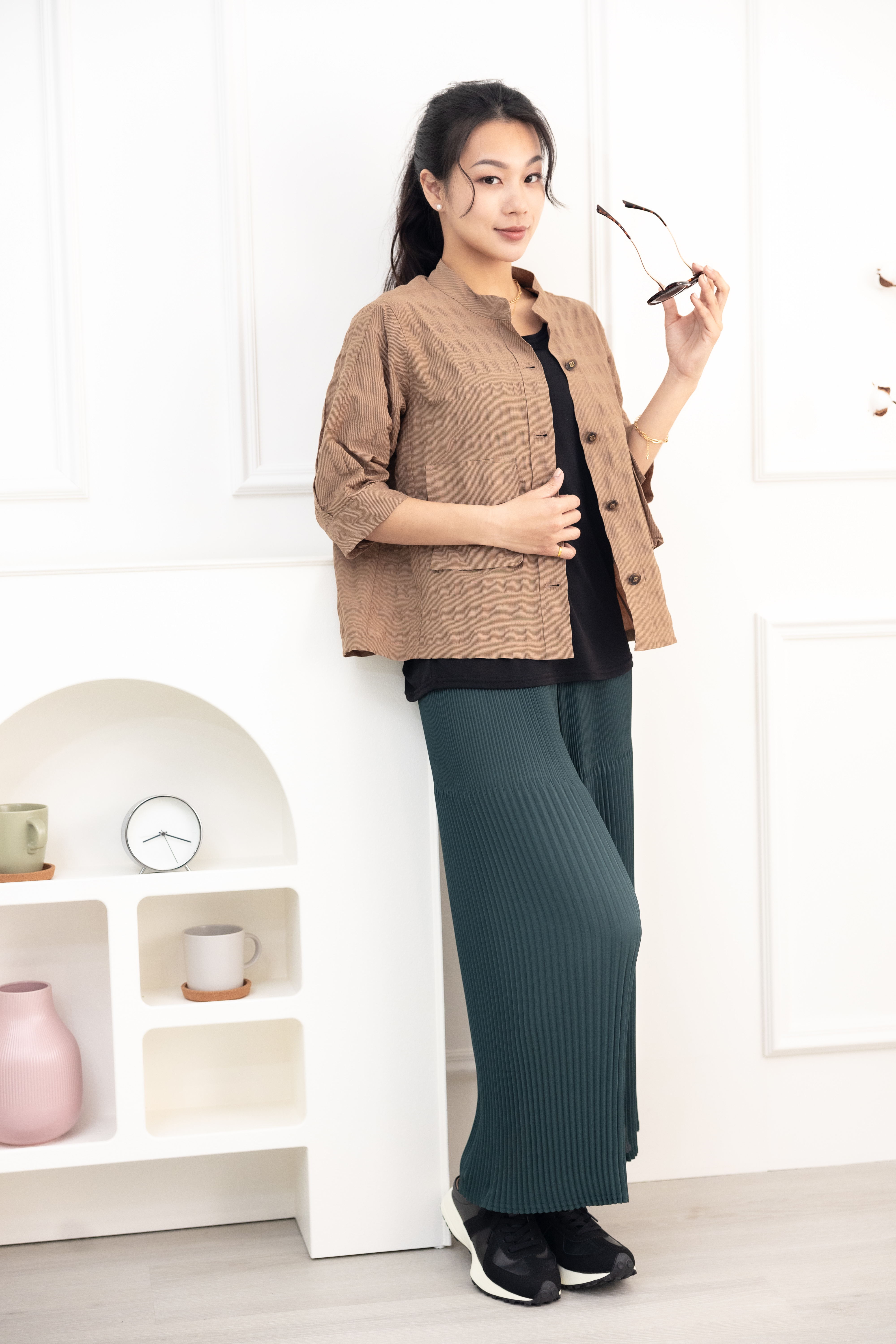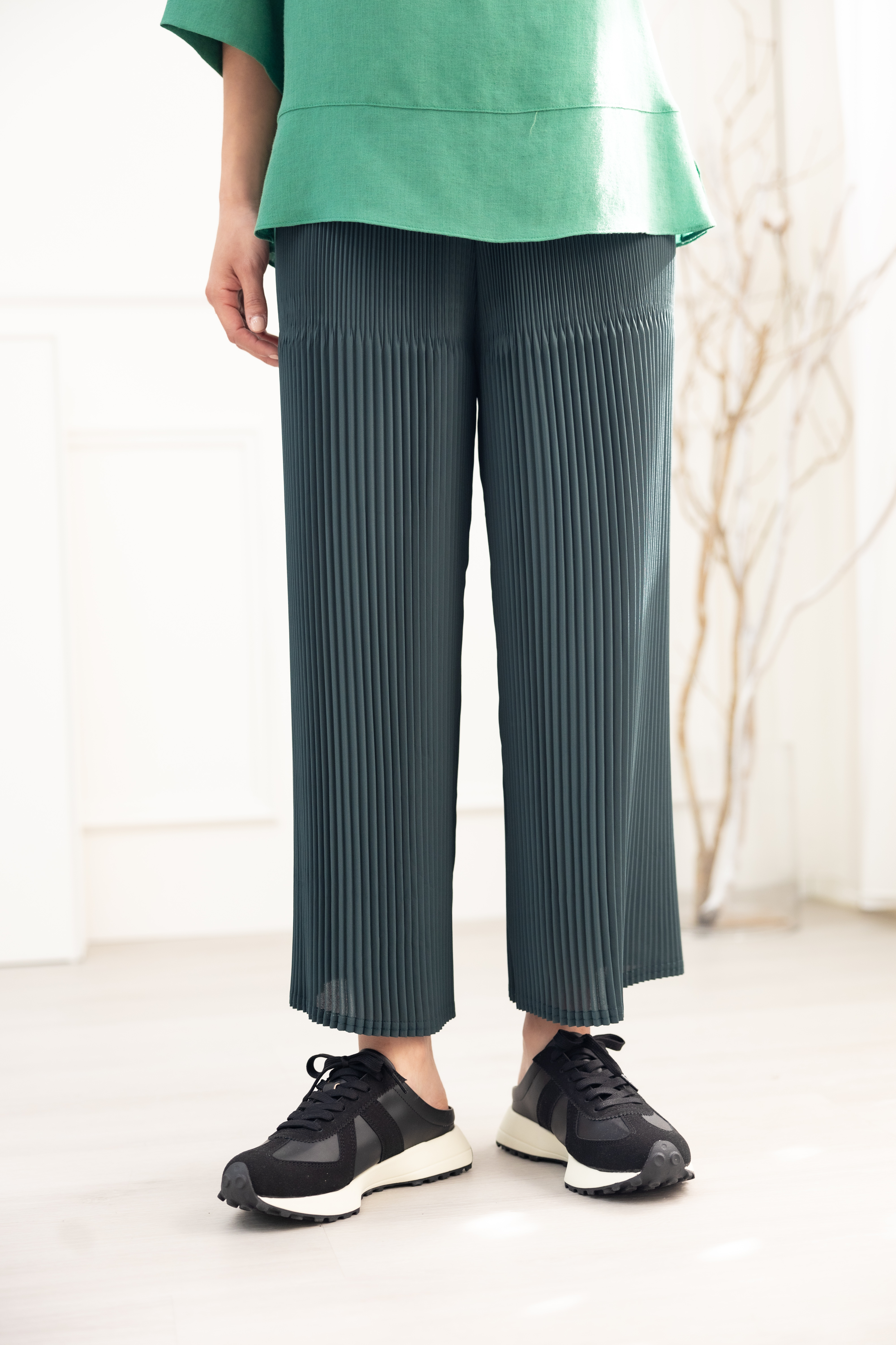 긴 바지 百褶雪紡長褲 / 深綠色