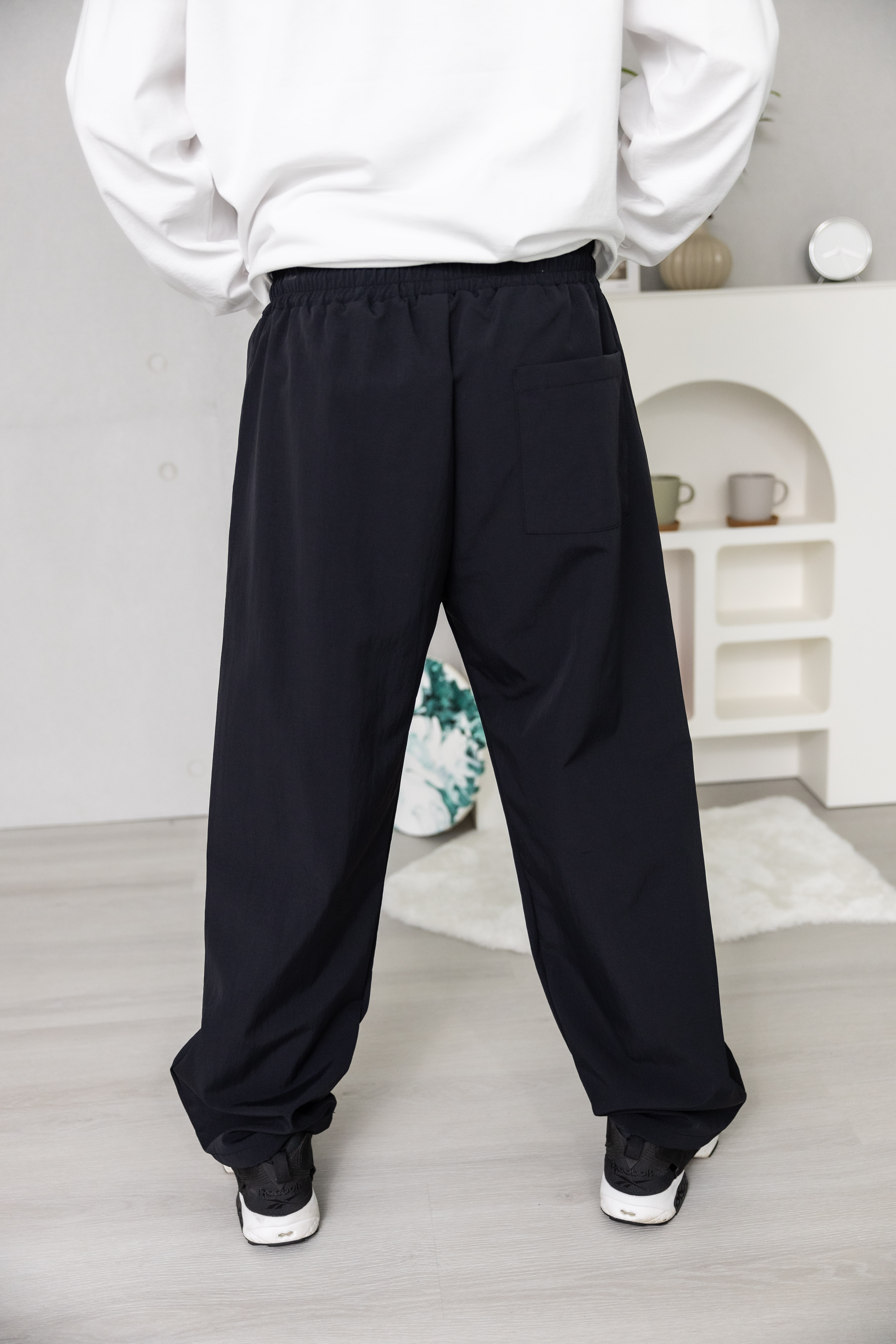 긴 바지 褲管曲線防潑水長褲 / 黑色